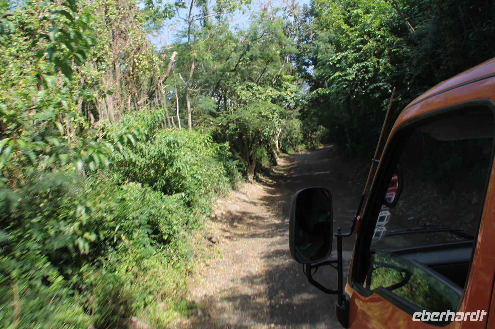 Heute steht ein weiterer Eberhardt-Inklusivausflug auf dem Programm. Mit unserem einheimischen und deutschsprachigen Reiseleiter - Christopher besichtigen wir die sogenannte Gewürzinsel Grenada. Zunächst fahren wir aus der quirligen Hauptstadt heraus auf einer Küstenstraße auf der Westseite der Insel entlang mit tollen Ausblicken auf das karibische Meer. Nach kurzer Zeit erreichen wir das kleine Fischerdorf Gouyave, wo sich eine Muskatnussfabrik befindet. Ein Drittel der weltweit verkauften Muskatnüssen kommt aus Grenada. Bei einer kurzen Führung erfahren wir von Christopher so einiges über die Muskatnuss. Man hat den Eindruck ein paar Jahrzehnte in der Zeit zurückgereist zu sein, aber dies macht auch den Charme dieser Fabrik aus. Unsere gemeinsame Fahrt geht weiter ins Inselinnere, dabei fahren wir an Fruchtplantagen vorbei, durch kleine Bergdörfer und bekommen einen guten Eindruck vom einfachen Leben auf dem Land. Ein paar Muskatnussbäume am Straßenrand können wir auch beobachten und somit sehen wir auch einmal die noch nicht gepflückten Nüsse am Baum. Kurze Zeit später erreichen die einen Aussichtspunkt im Etang Nationalpark mit Blick auf den Grand Etang Lake, einem Kratersee von einem erloschenen Vulkan. Dort legen wir eine längere Pause ein und aus dem Hause Eberhardt gibt es zwei Flaschen Rum-Punsch spendiert. Gut gelaunt stoßen wir auf ein paar weitere schöne Tage zusammen an blicken aus der Ferne über den See. Nach Besuch des kleinen Informationszentrums geht für ein Fotostopp an einen Wasserfall. Hier kann man den einheimischen 1$ geben, damit sie von den Klippen ins kühle Nass springen. Was für ein Spaß! :-)