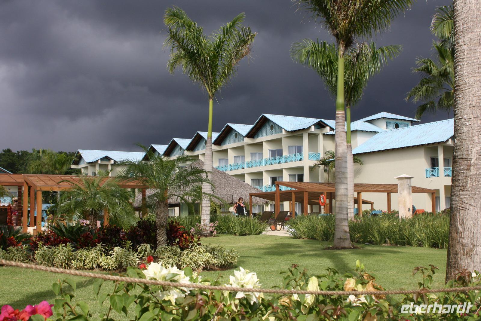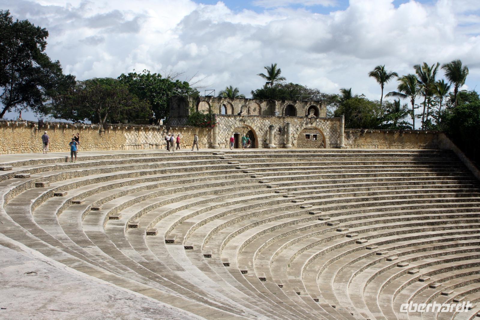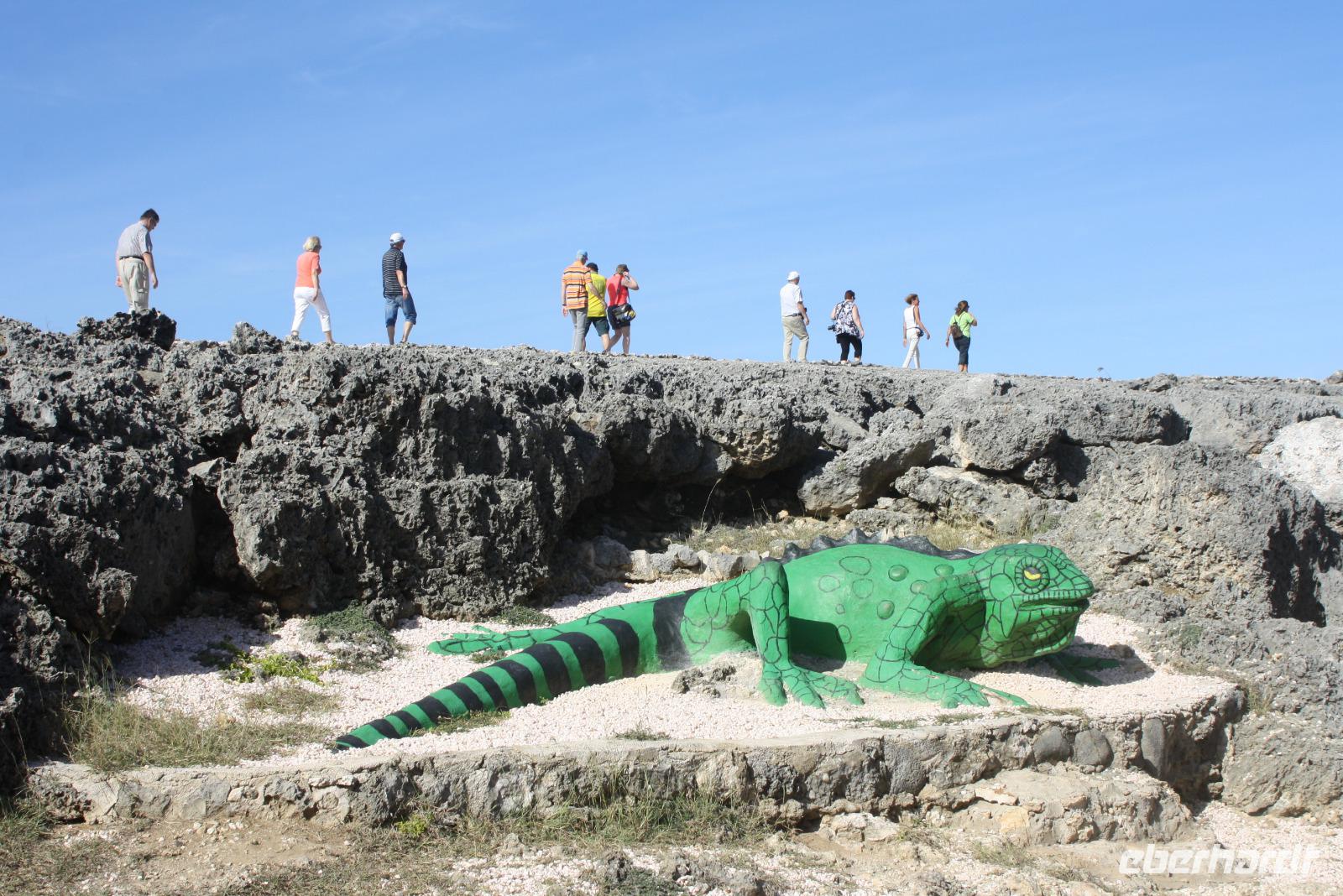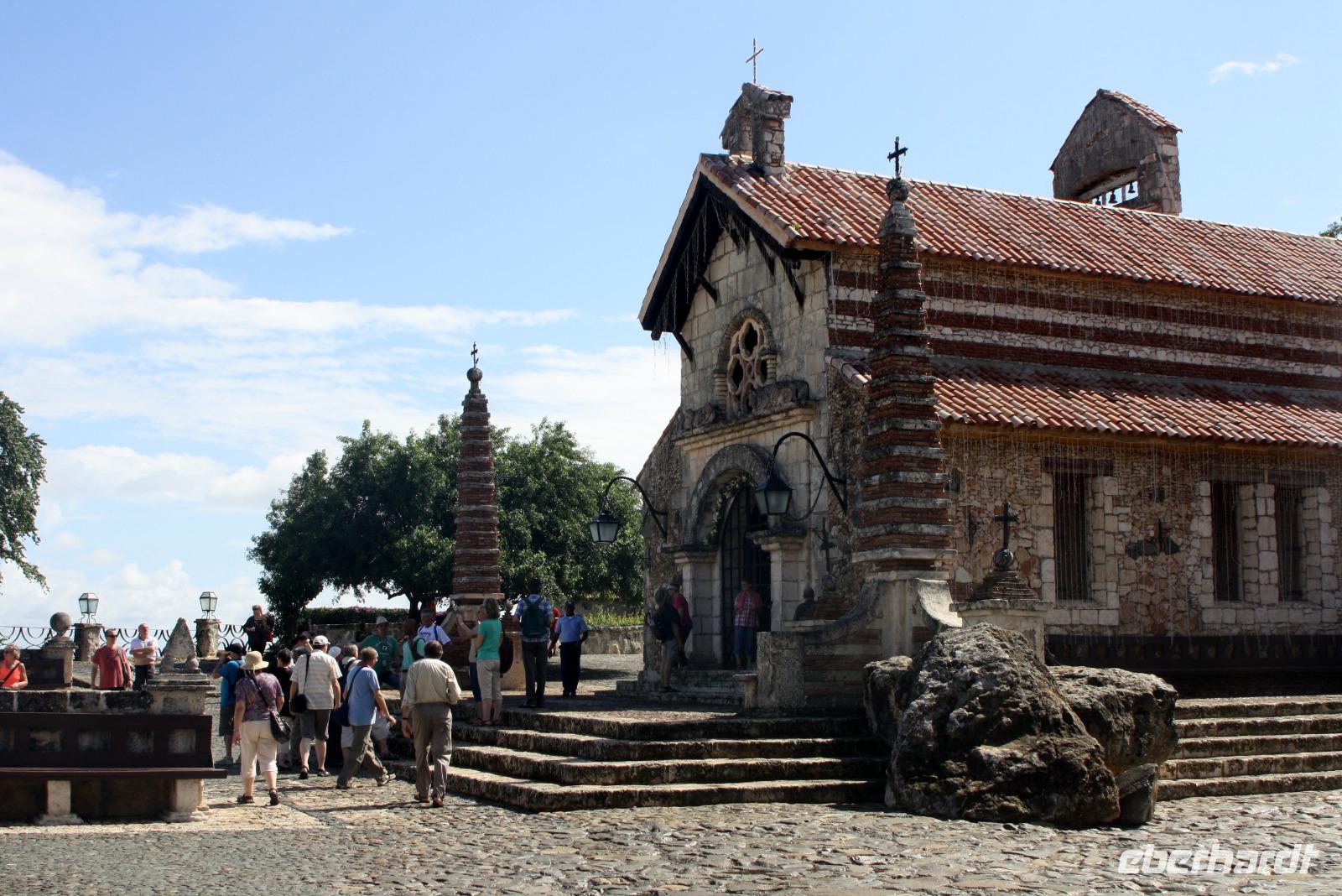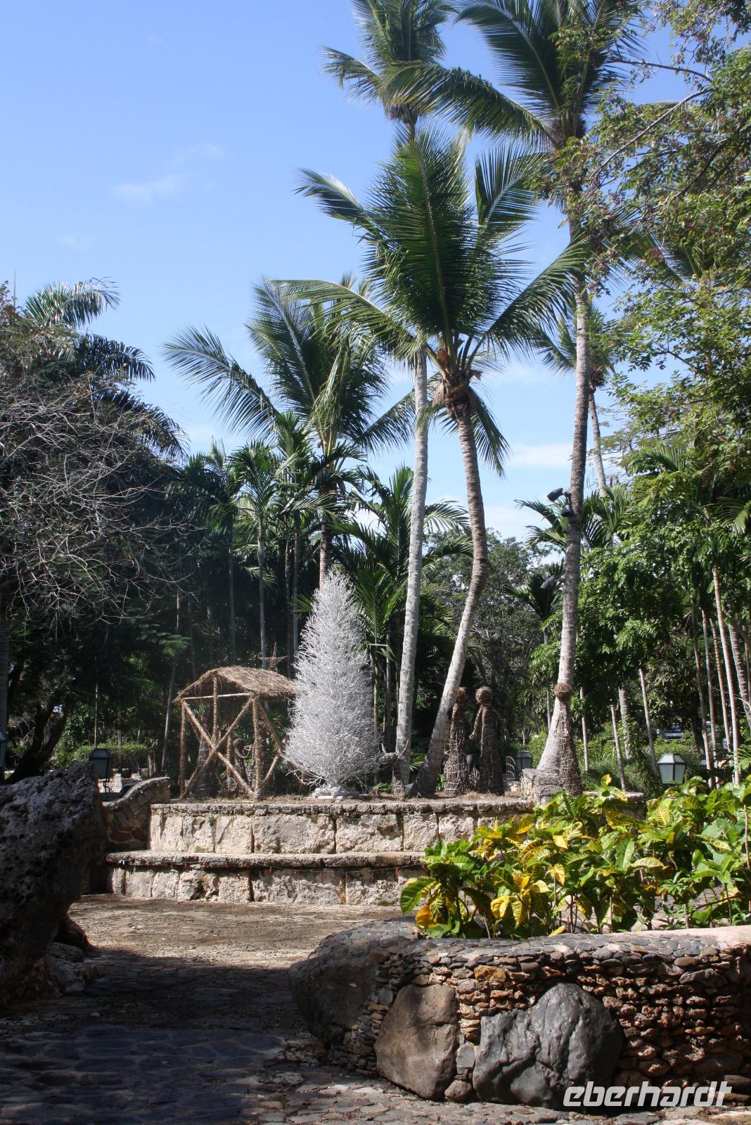 Willkommen in der Dominikanischen Republik - oder DomRep, wie das karibische Land oft genannt wird! Aufgrund der nächtlichen Ankunft gestern, haben wir noch nicht viel sehen können, daher freuen wir uns auf den heutigen Ausflug mit unserem örtlichen Reiseleiter Eduard. Nach einem ausgiebigen Frühstück fahren wir zuerst zur Tropfsteinhöhle „Cuevas de las Maravillas", die Wunderhöhle. Ein kurzer Spaziergang durch den tropischen Park (auf der Insel Hispaniola, die sich aus der Dominikanischen Republik und Haiti zusammen setzt, gibt es über 6.000 verschiedene Bäume!), führt uns zum Eingang der Höhle. Hier steigen wir hinab in eine Wunderwelt aus Stalaktiten und Stalakniten. Mit etwas Fantasie kann man verschiedenste Motive in den geologischen Formationen erkennen und besonders schön ist die Spiegelung in dem kleinen See. Ein Schatz der Höhle sind die Felsmalereien, die davon zeugen, dass die Taino, die Ureinwohner von Hispaniola, schon vor über tausend Jahren diese Höhle für religiöse Rituale nutzten. Anschließend fahren wir in das Künstlerdorf Altos de Chavón. Die Häuser sehen viel älter aus, als sie tatsächlich sind, denn das Dorf ist ein Nachbau im Stil des 16. Jahrhunderts. Von hier blickt man auf den Chavon-Fluss, der als Drehort für die Rambo-Filme berühmt wurde. Aber auch weitere Weltgrößen gaben sich hier ein Stelldichein: im Amphitheather im römischen Stil mit 5.000 Sitzplätzen traten unter anderem Frank Sinatra, Julio Iglesias und Andrea Bocelli auf. Zum Mittag erreichen wir wieder unser Hotel und können die Annehmlichkeiten der großzügigen Anlage genießen - Schwimmen im Meer, Sonnen am Pool oder ein Drink an der Bar. Nur das Wetter macht unseren sonnigen Plänen einen kleinen Strich durch die Rechnung. Die Regenzeit dauert auf der Insel normalerweise von Mai bis Oktober, aber am Nachmittag ereilt uns ein wahrhafter Wolkenbruch! Am Abend haben wir dann die Qual der Wahl mit verschiedenen Restaurants, ob a la carte oder Abendessen vom Buffet... für jeden Geschmack ist etwas dabei.