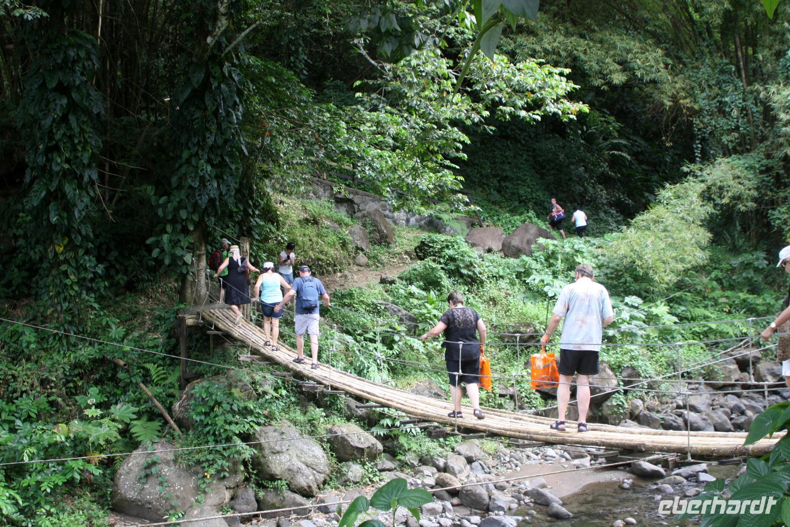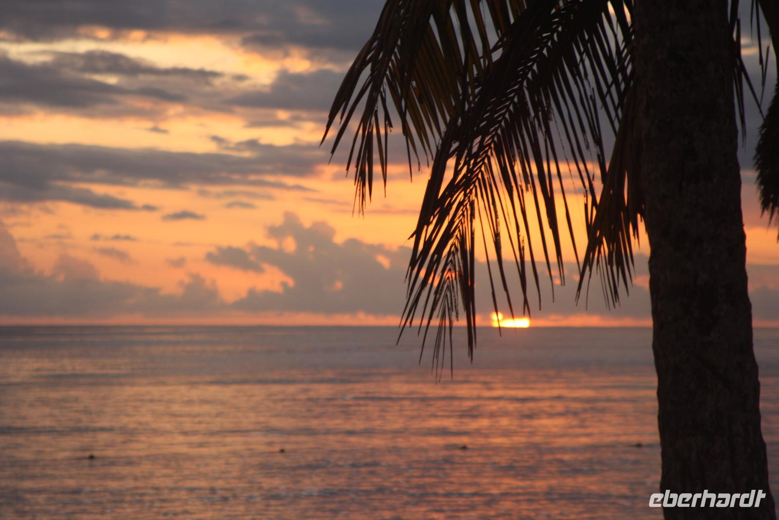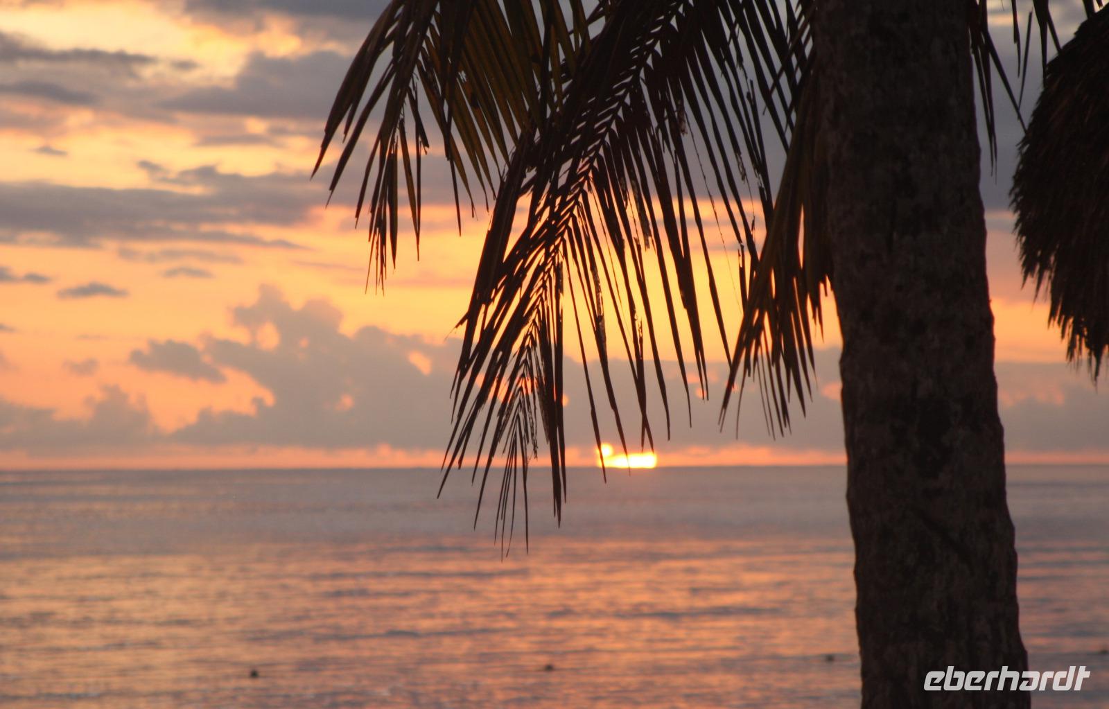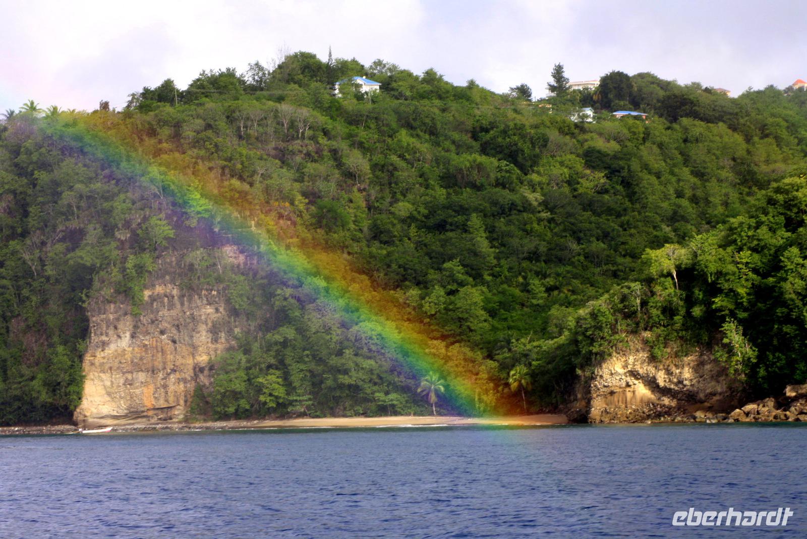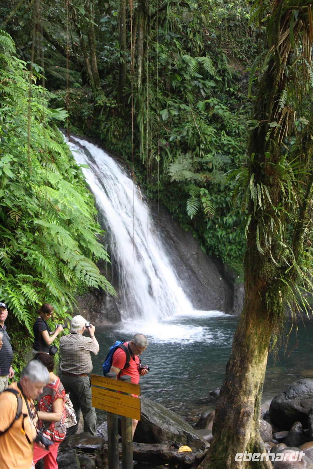 Die kleine Vulkaninsel Dominica geizt nicht mit ihren Reizen: üppig grüner Regenwald, tropische Früchte und farbenfrohe karibische Häuschen. Den Namen erhielt die Insel von dem spanischen Wort „Domingo" (Sonntag), da Kolumbus an einem Sonntag die Insel entdeckte. Ein Teil der Reisegruppe begibt sich mit mir auf den Ausflug „Panoramafahrt für Jedermann". Da heute ausschließlich Englisch sprechende Reiseleiter zur Verfügung stehen, übersetze ich wieder einmal nicht nur für unsere Eberhardt-Gäste - der ganze Bus ist wohl froh darüber. Vom Hafen in Roseau windet sich die Straße hinauf in den Regenwald, wo wir die Hibiskus-Wasserfälle mitten in der grünen Umgebung bestaunen. Eine Kostprobe tropischer Früchte und Rumpunsch steht ebenfalls bereit. Im Botanischen Garten von Roseau entdecken wir neben Pflanzen aus aller Welt auch die flinken Kolibris und Papageien. Abschließend fahren wir noch auf „Morne Bruce", den Hausberg von Roseau, und haben so eine tolle Aussicht auf die Inselhaupstadt. Am Nachmittag lade ich zum Eberhardt-Shuffleboard-Turnier ein - es ist der älteste Schiffssport und bringt jede Menge Spaß! Schließlich erwarten uns die Offiziere der AIDA diva zum Offiziers-Shaken auf dem Pooldeck. So ein kleiner Apero vor dem Abendessen kann ja nicht schaden. Und danach wird es spannend bei "Wer wird Millionär" im Theatrium.