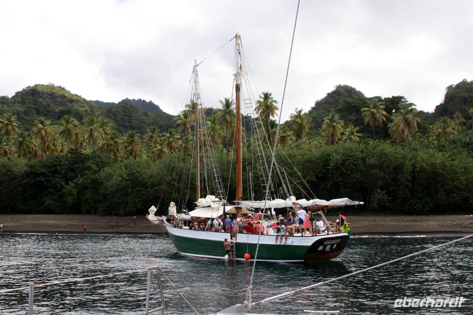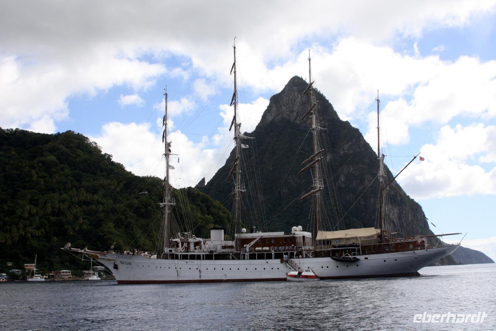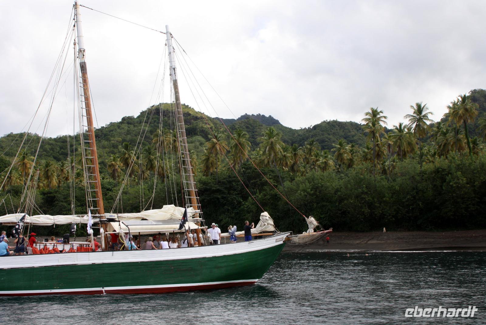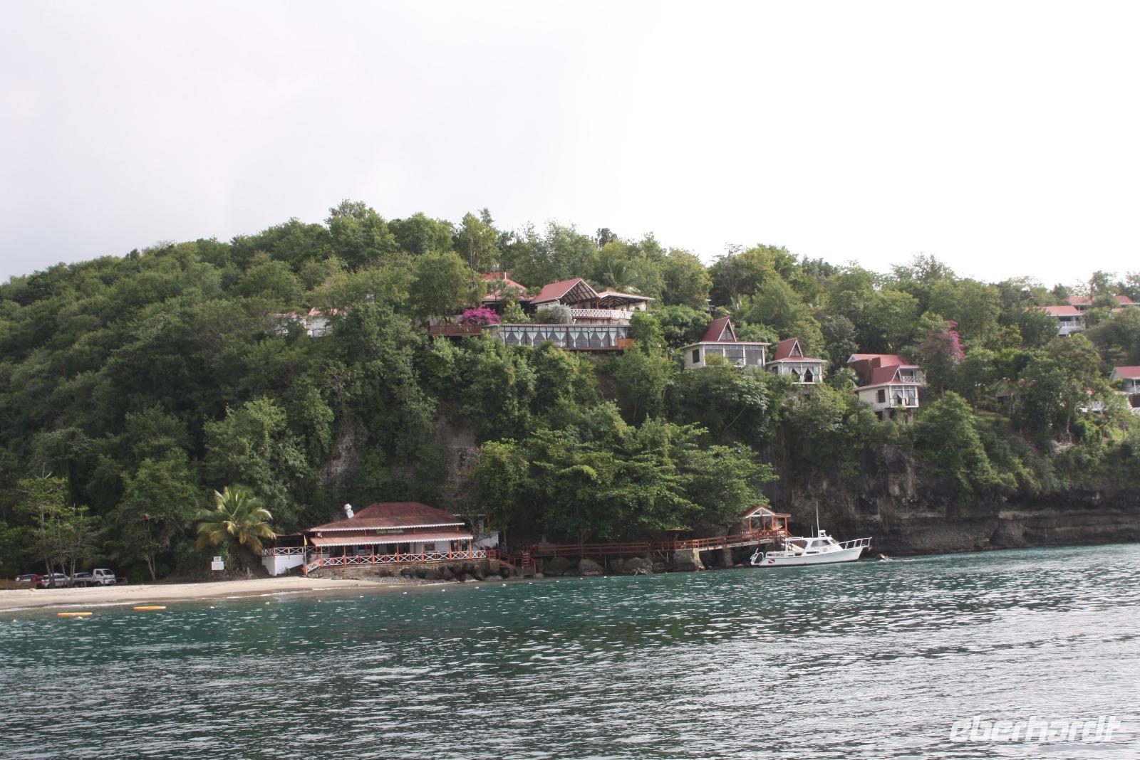 Neuer Morgen - neue Insel. Heute steht wieder einmal ein exklusiver Eberhardt-Ausflug auf dem Programm. Unser örtlicher Reiseleiter erwartete uns bereits an der Pier, um uns seine Wahlheimat näher zu bringen. Der erste Fotostopp bietet uns einen Blick auf Castries und den Hafen, wo unsere AIDA diva lächelt. Der nächste Stopp heißt Marigot Bay, bekannt durch den Film Dr. Doolittle - es ist eine der wohl meist fotografierten Buchten der Karibik! In einer kleinen Bäckerei bekommen wir eine leckere Kostprobe des süßen Gebäcks und auch die exotischen Früchte der Karibik werden genau begutachtet. Die Wahrzeichen von St. Lucia sind die Pitons: die großen grünen Kegel, die auch zum UNESCO Weltnaturerbe gehören, bieten ein tolles Fotomotiv. Haben Sie schon mal etwas von einem "Drive Inn Vulkan" gehört? Auf St. Lucia gibt es ihn! Bei den Sulphur Springs kann man die vulkanischen Aktivitäten sehen und riechen. Wir wollen die Insel aber nicht nur zu Land, sondern auch auf und im Wasser erleben. Somit geht es im Hafen von Soufriere (mit etwas Verspätung) auf ein Motorboot. Das kreolische Mittagessen ist zwar eine etwas wackelige Angelegenheit, aber durchaus schmackhaft. Dann beginnt unsere Seefahrt entlang der Westküste mit Blick auf die üppig grüne Landschaft, kleine Villen und malerische Buchten. Zwischendurch legen wir eine Badepause ein, die einige auch nutzen, um die Unterwasserwelt St. Lucias per Schnorchel kennenzulernen. Nach einem seeseitigen Abstecher in die Marigot Bay - welch eine tolle Kulisse - schippern wir mit Rumpunsch "bewaffnet" langsam aber sicher in Richtung AIDA zurück. Wieder am Hafen angekommen, verabschiedeten wir uns von der Crew und lassen beim gemeinsamen Abendessen den erlebnisreichen Tag Revue passieren. Im Theatrium begeistert uns heute noch einmal Comedian Benni Stark - ein echter Angriff auf die Lachmuskeln.