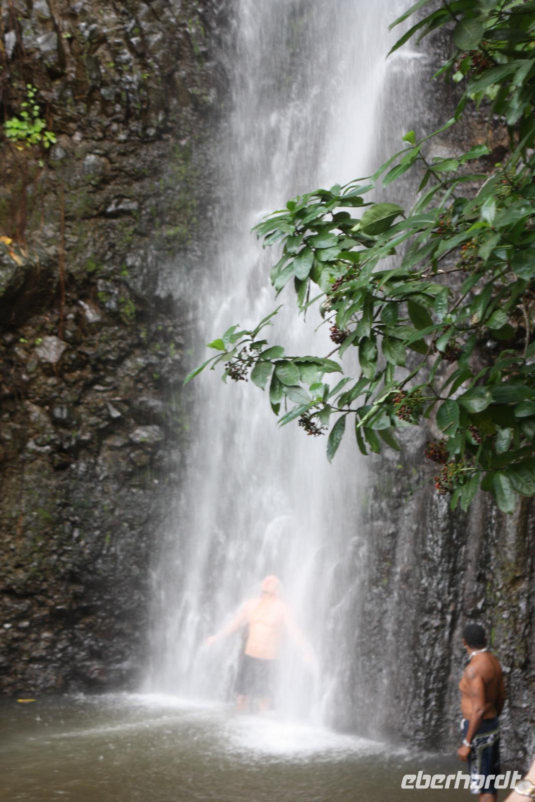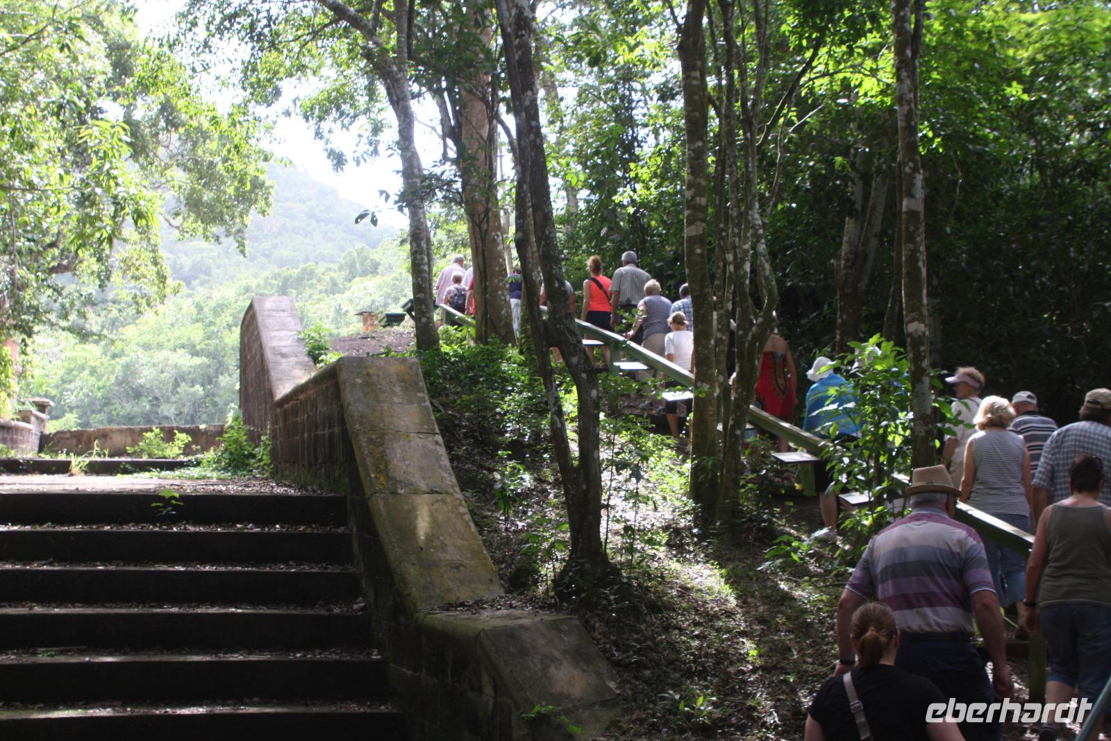 Willkommen auf der Gewürzinsel! Bei karibisch-sonnigem Wetter erwartete uns heute ein exklusiver Eberhardt-Ausflug auf Grenada. Unsere langjährige Eberhardt-Reiseleiterin Rahel erwartete uns bereits freudig am Kreuzfahrt-Terminal, um uns die schönsten Fleckchen der Insel zu zeigen und viele Informationen zu Land und Leuten zu geben. Grenada ist üppig grün und farbenfroh. Als erstes fahren wir in den Norden der Insel zum Annandale-Wasserfall, bei dem ein buntes Treiben herrscht. Ein Highlight sind die mutigen Klippenspringer, die sich aus 12 Metern in die Tiefe stürzen. Anschließend fahren wir zum Gran Etang Nationalpark mit Blick auf den gleichnamigen Kratersee inmitten des grün leuchtenden Regenwaldes. Hier besichtigen wir ein kleines Museum und können handgemachte Ketten mit inseleigenen Gewürzen erstehen. Das Zentrum der Vulkaninsel ist gebirgig und mit einem grünen Teppich überzogen: wir sehen Kakaopflanzen, Muskatnussbäume, Papayafrüchte und vieles mehr. Seit Hurricane Ivan 2004 hat sich die Natur der Insel unglaublich schnell erholt. Die Produktion eines der Hauptgewürze der Insel wollen wir nun etwas näher kennenlernen: wir besuchen die Muskatnuss-Fabrik in Grenville, denn das ist der Schatz der Insel. Wir erfahren, wie von der geschlossenen Frucht über den Reifeprozess nach und nach die kleine würzige Frucht produziert wird. Und es duftet...herrlich! Wer möchte, kann sich hier mit feinen Gewürzen für daheim versorgen. Unser letzter Stopp ist die Westerhall Rum Destillery, wo wir mehrere Sorten des edlen Rums verkosten und uns die verschiedensten Sorten erklärt werden. Nun führt uns Rahel noch zu einem tollen Aussichtspunkt mit Blick auf unser schwimmendes Hotel und die Bucht von St. George - eine super Kulisse für ein Gruppenfoto. Bitte lächeln! Zurück am Hafen bietet sich ein Bummel in die hübsche Stadt an oder ein Ausflug zu einem der malerischen Strände.
