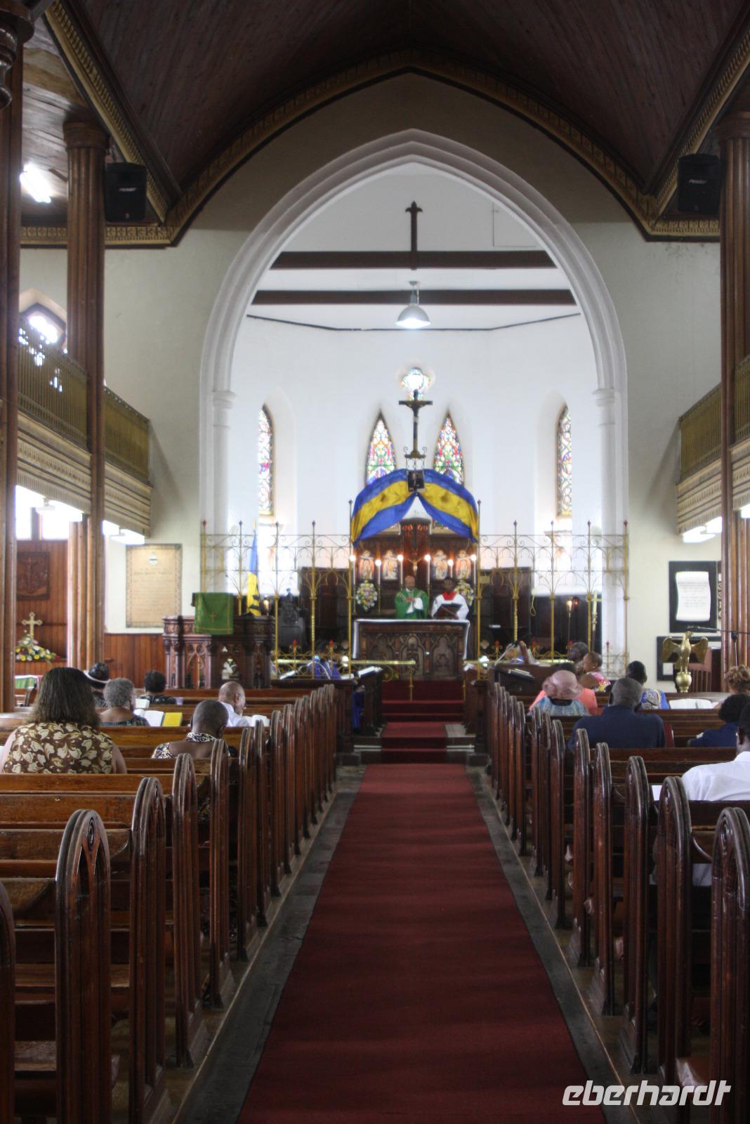Leider meint es das Wetter heute nicht so gut mit uns, aber einen Regentag können wir wohl verkraften während der Reise. Schließlich ist es gutes Wetter für die Insulaner, die froh sind über den "flüssigen Sonnenschein". Eine charmante Mischung aus britischer Tradition und karibischer Lebensart konnte sich die Inselhauptstadt Bridgetown bis heute bewahren. Beim Ausflug "Barbados auf einen Blick" bekommen wir aber auch einen Eindruck vom Rest der Insel. Der Stadtteil Port St. Charles ist bekannt für die Prominenz der Insel: auf der einen Seite stehen die noblen Luxusappartements und auf der anderen Seite die einfachen Holzhütten - ein seltsamer Kontrast. Über den Cherry Tree Hill fahren wir ins Inselinnere entlang der Mahagoni-Allee, Barbados' Nationalbaum. Vorbei an Baumwoll- und Zuckerrohrplantagen geht es an die Ostküste, wo wir im kleinen Fischerort Bathsheba einen Stopp am Atlantikstrand einlegen. Anschließend halten wir an der St. Johns Church, wo gerade der Gottesdienst abgehalten wird. Es ist schön zu beobachten, wie sich die Einheimischen schick gekleidet haben und mit viel Verbundenheit die Kirche besuchen. Der Hafen von Barbados ist für AIDA-Gäste auch Wechselhafen, d. h. es sind zahlreiche neue Gäste an Bord gekommen... wieder einmal Gelegenheit, auf den neuen Reiseabschnitt anzustoßen !
