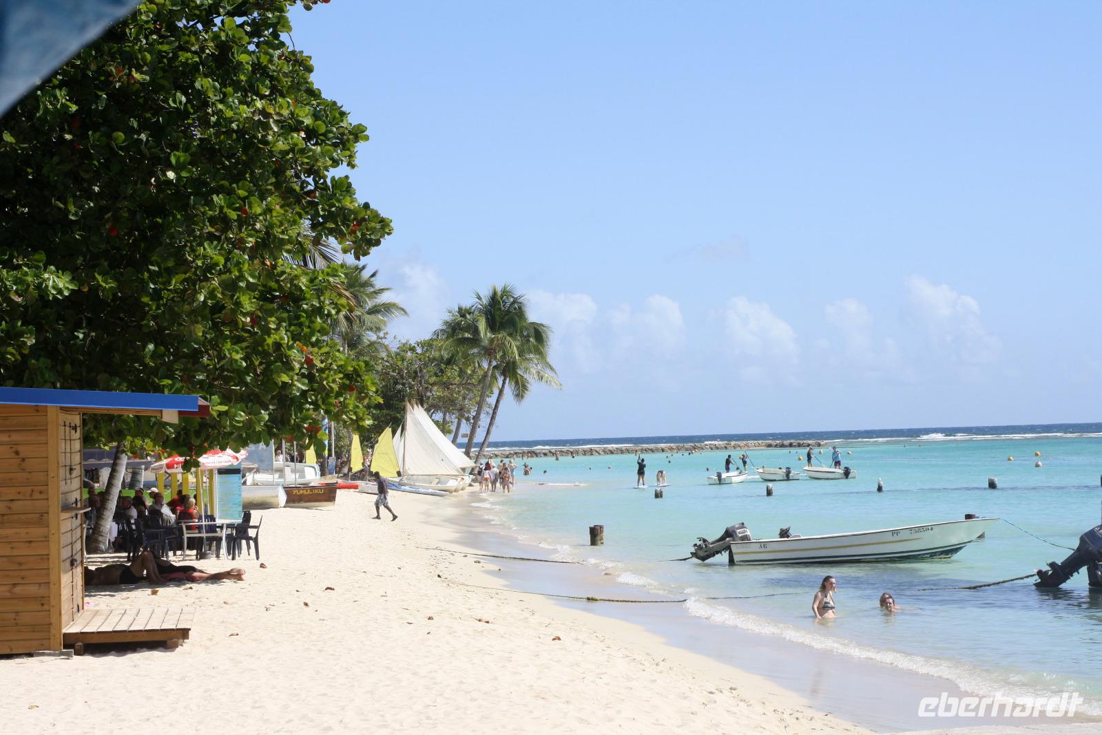 Wie ein Schmetterling wirken die beiden Hauptinseln Grande-Terre und Basse-Terre aus der Luft betrachtet. Beide Inseln entpuppen sich als völlig unterschiedlich: auf Basse-Terre leuchten tausend Grüntöne des Tropenwaldes, auf Grande-Terre hingegen glänzen weiße Sandstrände am türkisblauen Meer. Ein besonderes Schmuckstück von Guadeloupe ist der Friedhof Morne-á-l'Eau mit seinen schwarz-weiß gekachelten Grabbauten. Da wo am Pointe des Chateaux das Karibische Meer auf den Atlantik trifft, lohnt ein längerer Aufenthalt. An kleinen Souvenirständen kann man bummeln oder ein leckeres Sorbet aus den alten Bottichen probieren. Apropos probieren, auch auf dem Markt von Sainte Anne kann man vorzüglich Gewürze und Mitbringsel für daheim erwerben. Direkt neben dem farbenfrohen Markt ist ein herrlicher weißer Sandstrand - eine tolle Kulisse mit ausgesprochen gastfreundlichen Menschen. Und es kann sogar bequem in Euro gezahlt werden, denn Guadeloupe ist ein Übersee-Department Frankreichs. Den Abend lassen wir - passend zur Reise - bei der Carribean Poolparty ausklingen.