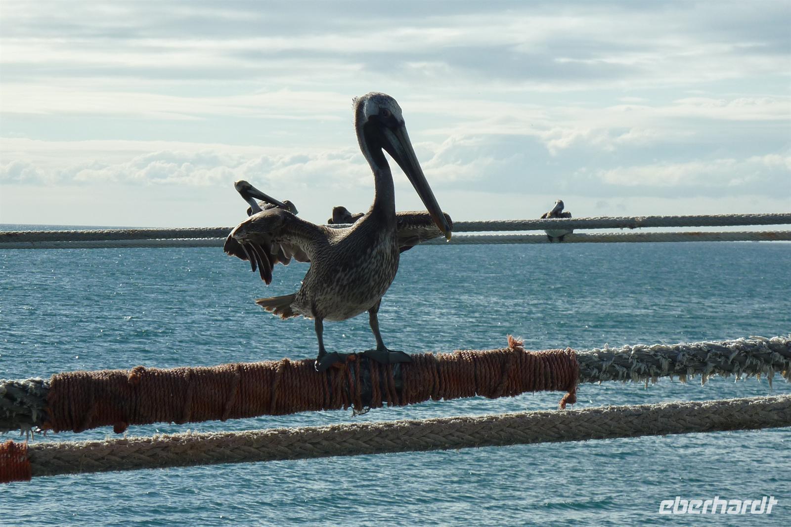 El Guamache heißt unser heutiger Ankerplatz und es steht wieder eine Vielzahl an Ausflügen zur Wahl: mit dem Chiva-Bus zum Strand, Wellness auf der Isla Coche, Naturerlebnis im Nationalpark La Restinga oder eine Inselrundfahrt. Isla Margarita bietet Mangroven, Monumente und Meer! Besonders beeindruckend ist die schöne, koloniale Architektur in der Haupstadt La Asunción und in Pampatar. Die Insel ist aber auch ein Shopping-Paradies und so besteht die Möglichkeit in einer Perlen-Fabrik einige Kostbarkeiten zu erwerben. Auch die Pelikane fühlen sich wohl auf dem zu Venezuela gehörenden Eiland und tummeln sich direkt neben unserem Schiff.