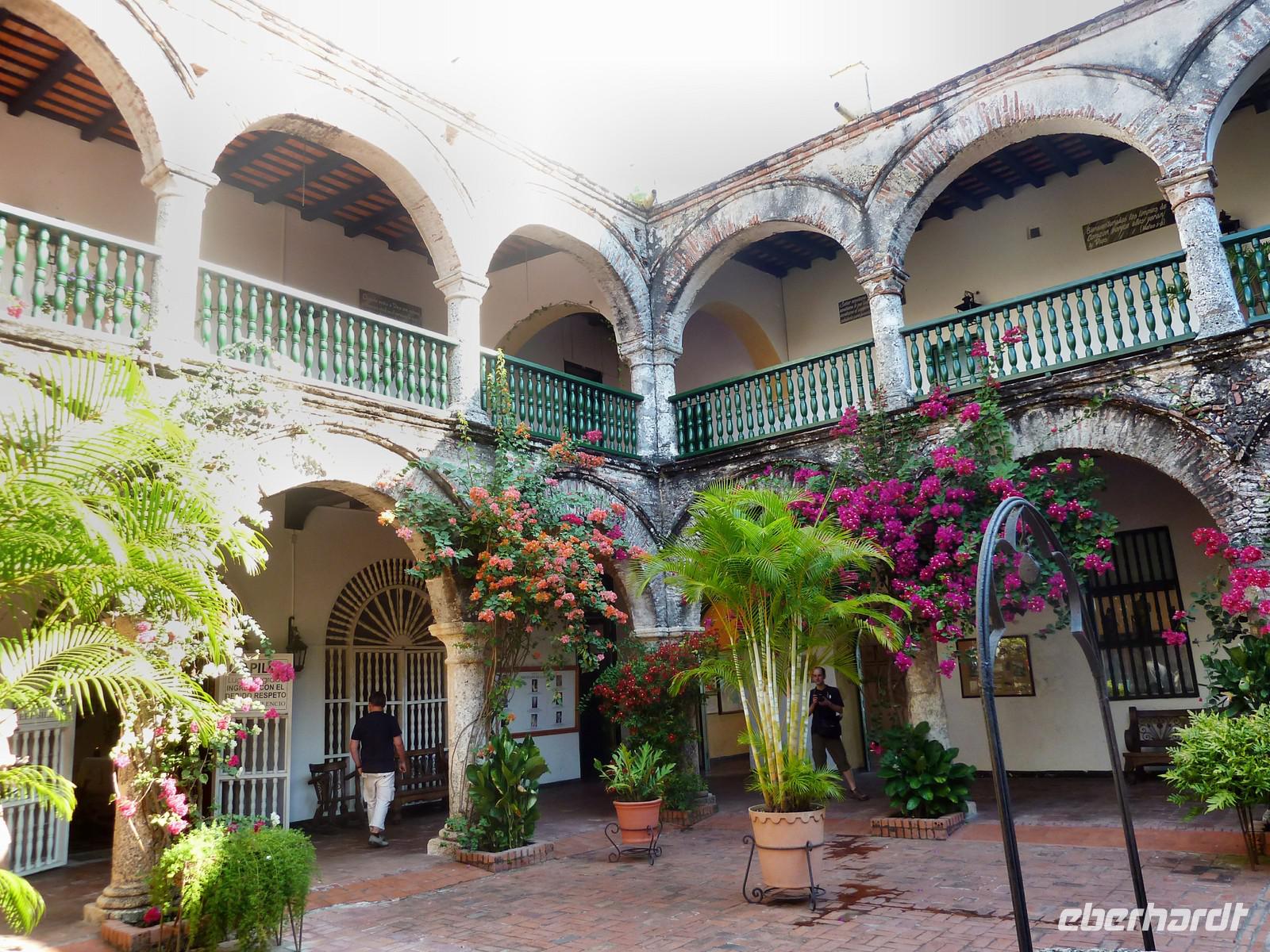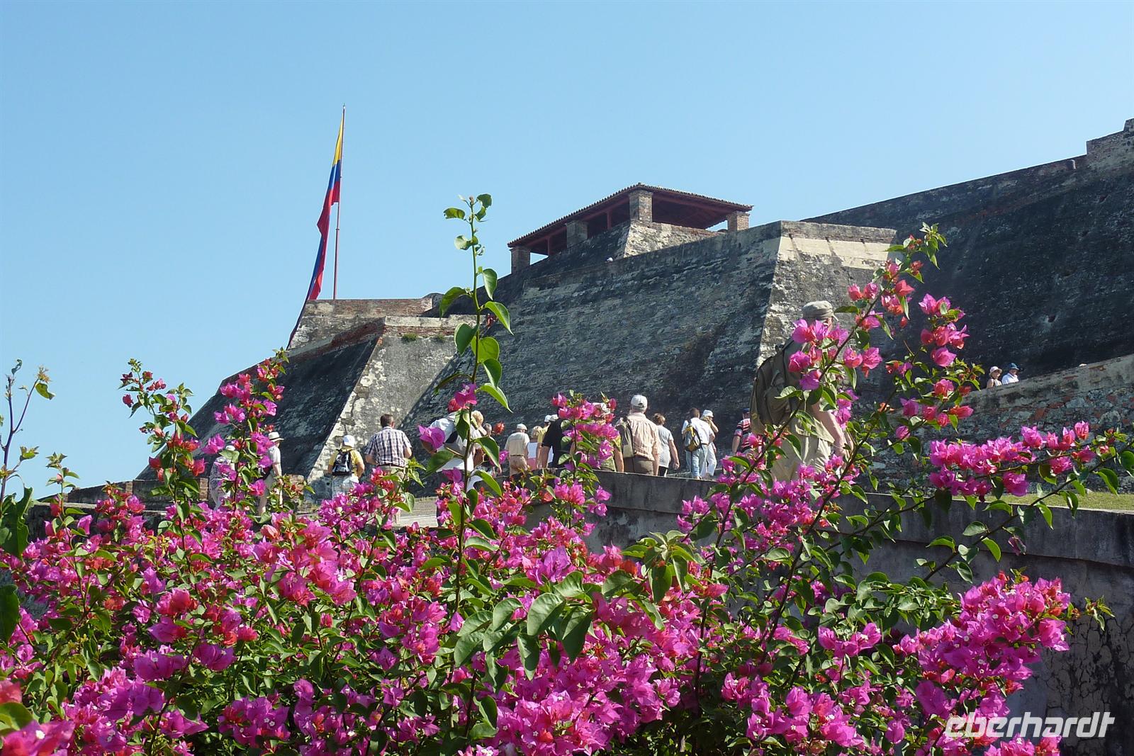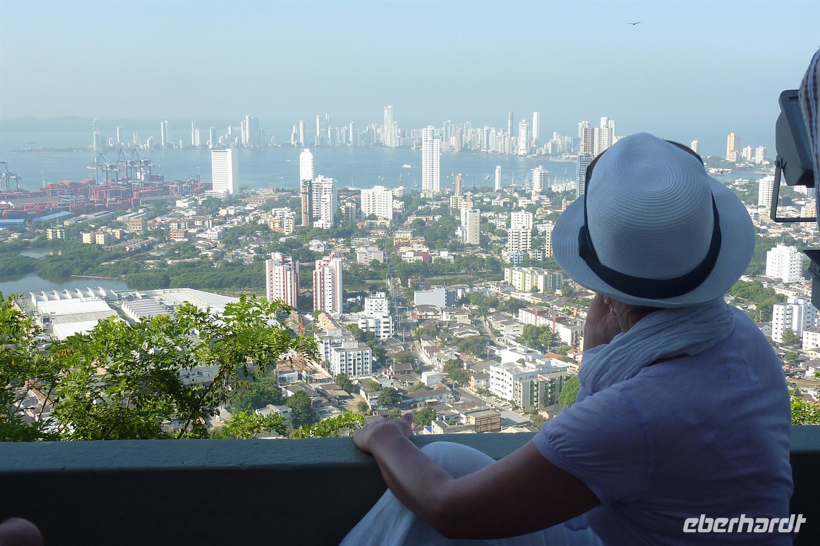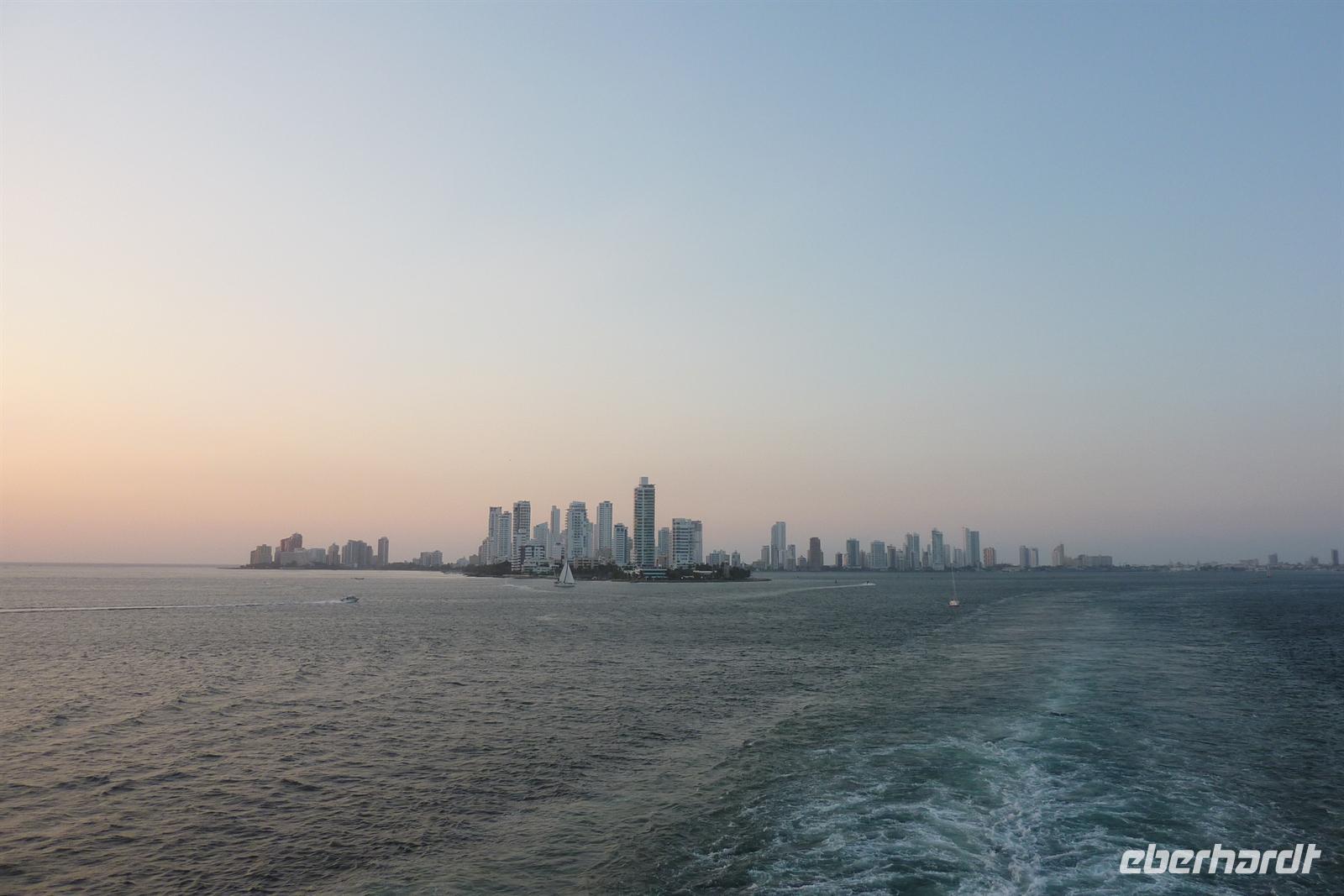 Cartagena gehört zweifelsohne zu einem der Höhepunkte unserer Reise. Die ?schönste Stadt Mittelamerikas? soll es sein und wir können dem nur zustimmen. Der Großteil der Gruppe entscheidet sich für den AIDA-Ausflug "Typisch Cartagena" wobei wir im landestypischen Chiva-Bus eine Stadtrundfahrt unternehmen. Wir dürfen bereits als erste Gruppe zu den Bussen, wo uns unser Deutsch sprechender Reiseleiter Cesar begrüßt. Sitzplätze in den ersten Reihen für unsere Eberhardt-Gäste - perfekt, es kann los gehen! Trotz dem Samstag ist, herrscht reges Treiben auf den Straßen. Zunächst führt uns die Tour auf den Hausberg der Stadt zum Kloster der Jungfrau Candelaria. Von hier bietet sich ein fantastisches Panorama auf die gesamte Stadt und den Hafen, wo auch unsere AIDAvita liegt. Im malerischen Innenhof des Klosters leuchten Bouganvilla und auf dem Platz bieten fliegende Händler ihre Waren an. Anschließend fahren wir zum Fort San Felipe de Barajas. Die kolumbianische Flagge weht stolz am Mast und wir werden mit Trompeten-Musik eines Straßenkünstlers begrüßt. In den Souvenirläden des ehemaligen Munitionslagers herrscht rege Betriebsamkeit, denn es liegen gleich drei Kreuzfahrtschiffe im Hafen von Cartagena. Nach diesem Trubel tut die Erfrischungspause auf der Terrasse des "Café del Mar" besonders gut - garniert mit lateinamerikanischer Musik und Tänzen! Nun möchten wir endlich die malerische Altstadt entdecken. Bei einem Spaziergang durch die engen Gassen und über die schönen Plätze bestaunen wir die hübschen Fassaden mit ihren schmucken Balkonen. Nach dem Besuch der Jesuitenkirche San Pedro Claver haben wir etwas Freizeit, um die Stadt auf eigene Faust zu entdecken. Zum Mittagessen sind wir zurück am Hafen und zurück an Bord. Das "Sail away" aus Cartagena lässt sich am besten bei einem Sundowner an der schönen Ocean Bar auf Deck 7 genießen. Die Skyline der Neustadt verschwindet langsam am Horizont und die Sonne taucht als glutroter Feuerball ins Meer. Beim Abendessen ist leichter Seegang zu spüren, aber so lässt es sich später leichter zur Poolparty schunkeln. Die legendären "Schlagertörtchen" spielen live und in Farbe - es darf getanzt werden!