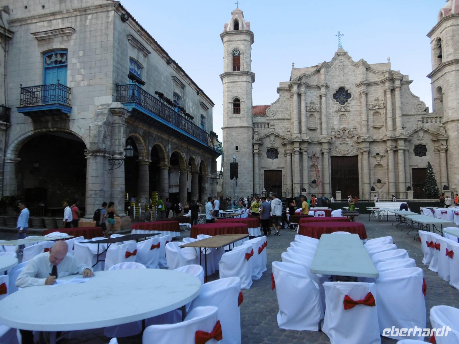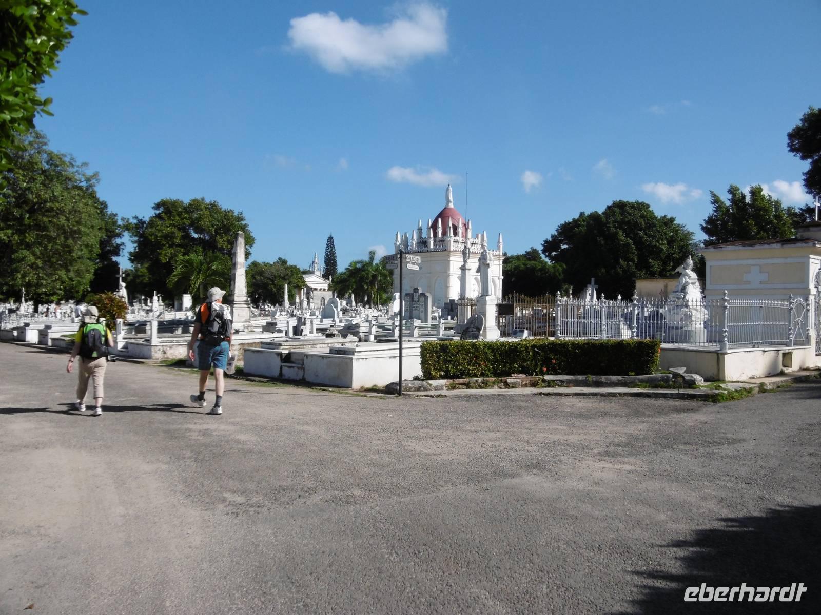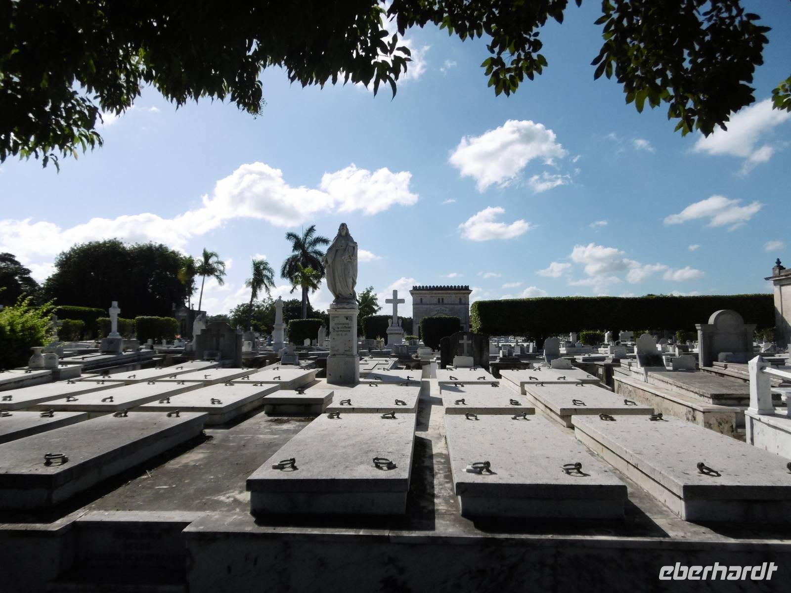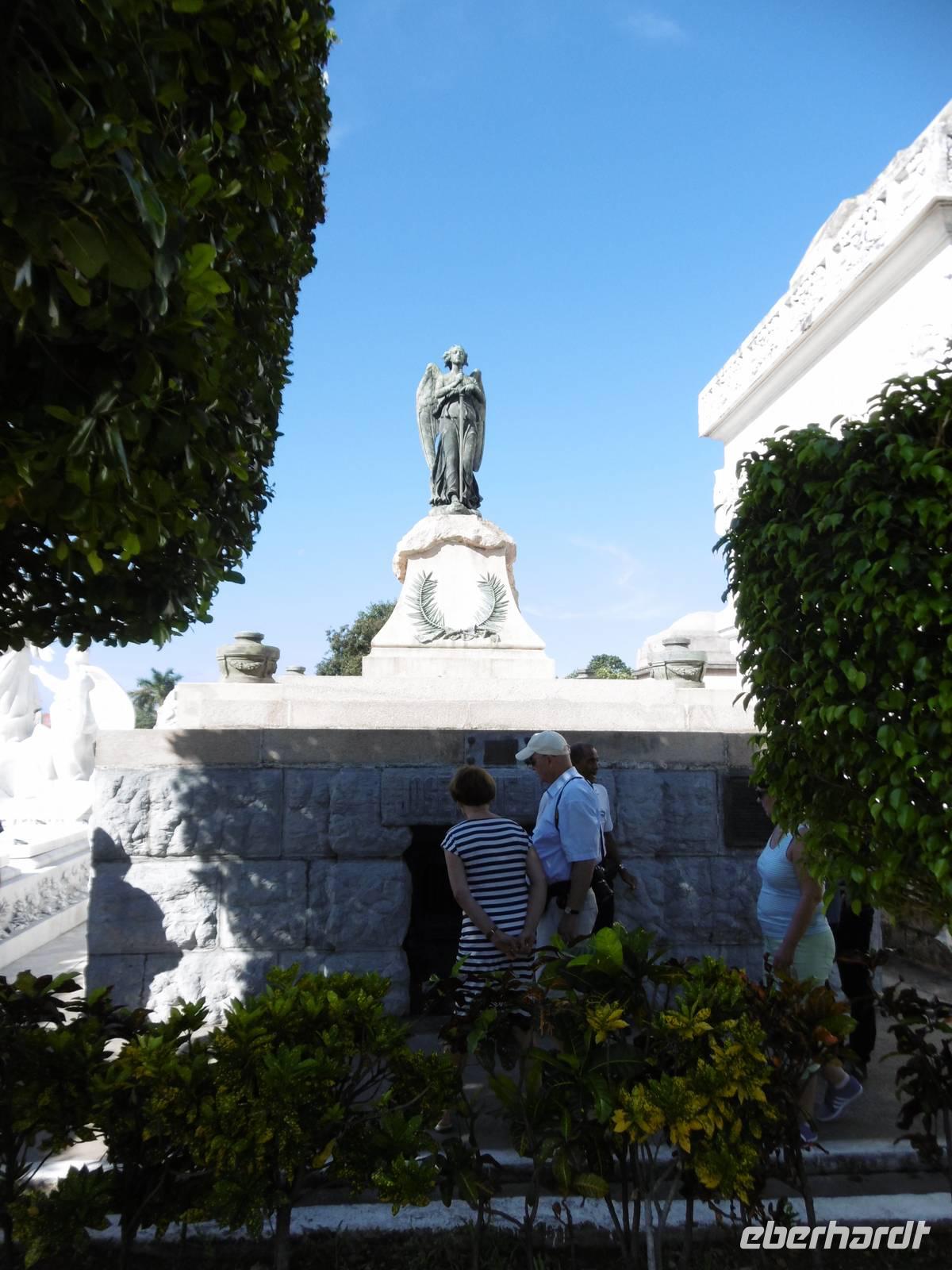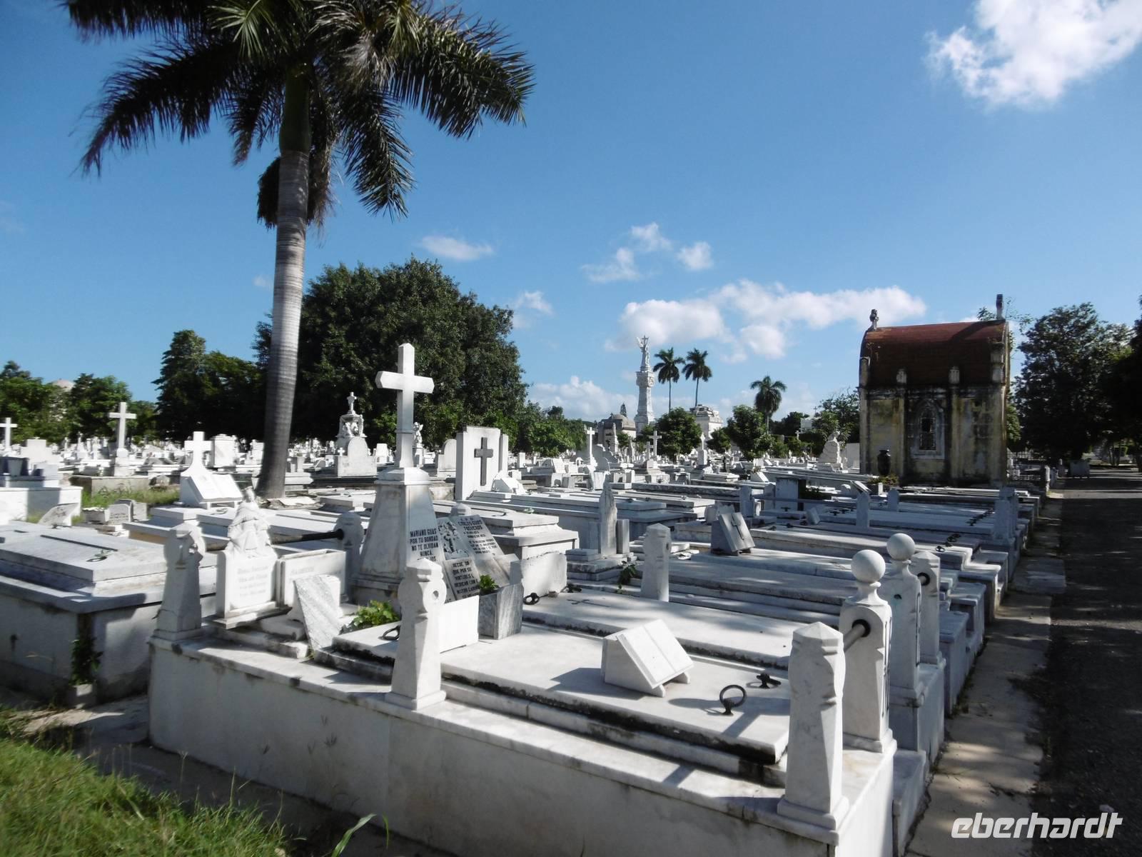 Nach einen späten Frühstück beginnen wir heute mit neuen Kräften den Tag. Havanna begrüßt uns bei strahlenden Sonnenschein. Wir fahren durch das Villenviertel Miramar mit der berühmten 5ten Allee. Unser erstes Ziel ist der Kolumbus Friedhof. Dieser wurde nach Christopher Columbus benannt, allerdings liegt dieser hier nicht begraben. Marcos zeigt uns das riesige Eingangstor, in welchem sich das Grab einer kubanischen Persönlichkeit befindet, das ganze gekrönt mit einer Statue, welche die drei Tugenden darstellt. Marcos führt uns durch den Friedhof und wir sehen interessante Gräber und erfahren nebenbei viel über die kubanische Geschichte, Vergangenheit und auch so manche Legende mit welchen die Traditionen aufrecht erhalten werden. Unser nächster Stopp ist der Revolutionsplatz, wie ihn jede Stadt in Kuba hat. Havannas Revolutionsplatz wird majestätisch vom Jose Marti Denkmal überragt und ist, von den sich an zwei Häuserblocks befindenden, überdimensionalen Gesichern von Che Guevara und Camilo Cienfuegos umgeben. Anschließend fahren wir weiter in ein unscheinbar wirkendes Randviertel. Hier versteckt sich unser heutiges Mittagsrestaurant La Casa - ein Paladar, ein in Familienbetrieb privat geführtes Restaurant. Wir kosten kubanische Tapas und dann erstmalig ganz typisch Reis mit schwarzen Bohnen und Hühnchen. Weiter geht es in Richtung Innenstadt. Wir fahren am Malecon entlang, wo (laut Marcos) die Kubaner Zärtlichkeiten und Gefühle austauschen. ;) Vorbei am Flaggenwald, dem Hotel National, der Festung El Morro geht es zum Hafen. Von hier aus spazieren wir zum Franz von Assisi Platz mit der Kathedrale. Hier wird heute Abend eine riesige Veranstaltung stattfinden, die Vorbereitungen sind in vollem Gange - der Platz ist voller weißer Tische und geschmückter Stühle. Nach einem Fotostopp gelangen wir zur Bodeguita del Medio. In dieser Bar hat Hemingway immer seinen Mojito getrunken - und wir tun es ihm gleich und stoßen gemeinsam an. Durch die verwinkelten Gassen Havannas spazieren wir zum Waffenplatz, der Plaza de Armas. Hier findet täglich ein großer Antiquitäten-Büchermarkt statt. Wir schlendern über den Platz und fahren mit unserem Busfahrer weiter zum Capitol. Bei Tag wirken dieses und das Theater Alicia Alonso ganz anders! Der Silvesterabend naht und so fahren wir zum Hotel um uns frisch zu machen. Um Acht Uhr holen uns Marcos und Amauri ab und wir begeben uns auf dem Weg. Vor genau 58 Jahren wurde in der Silvesternacht das Ende der Revolution bekanntgegeben, welches die Bevölkerung ausgelassen feierte. Dazu hören wir eine Geschichte. Vor dem TROPICANA erwartet uns eine riesige Schlange, denn diesem Event wollen viele beiwohnen. Dank Marcos Connections schaffen wir es eher rein und werden schon bald am Eingang mit kleinen Geschenken begrüßt. Auf unseren Plätzen lassen wir das Ambiente der Tropicana Locations bei klassischer Musik auf uns wirken und nehmen unser 5 Gang Menü mit Lachs, Muscheln, Garnelen, Tischenfischchen, Hummer, Hähnchen und Rindfleisch ein. Circa 22.30 beginnt die Show und wir kommen in den Genuss farbenfroher und faszinierender Kostüme, bewegender Tanzkünste, einer Akrobatikshow und als Highlight des Abends eines Auftritts von Sängern von Havannas Oper. Das neue Jahr begrüßen wir mit Sekt und Havana Club Rum und ganz traditionel mit zwölf Trauben. Dann beginnt die Party, es gibt viel Animation, Musik und wir genießen die tolle Stimmung. Gegen zwei Uhr begeben wir uns zurück zum Hotel. Einige von uns zieht es anschließend nochmals auf den Malecon, wo wir die Nacht ausklingen lassen.
