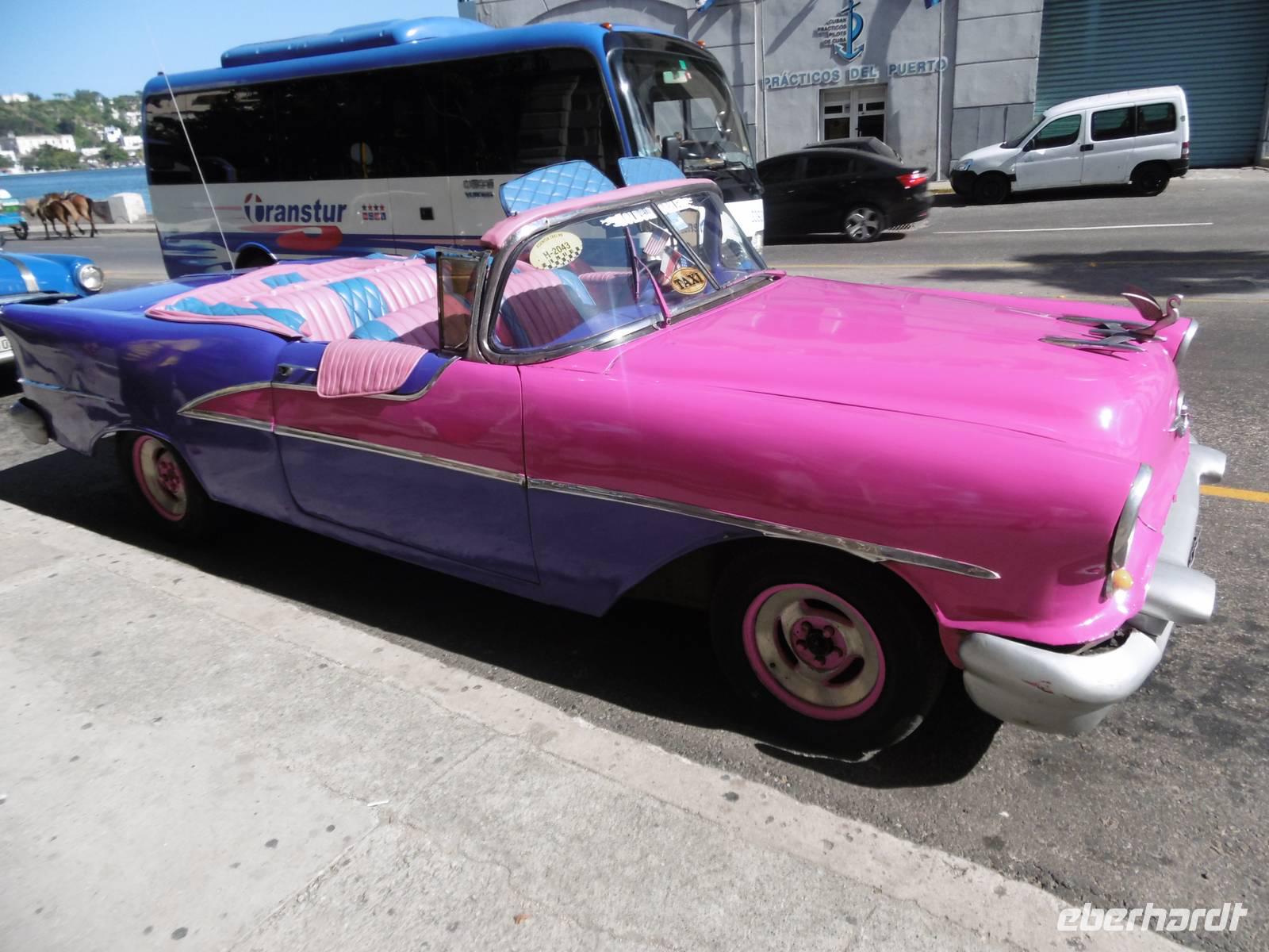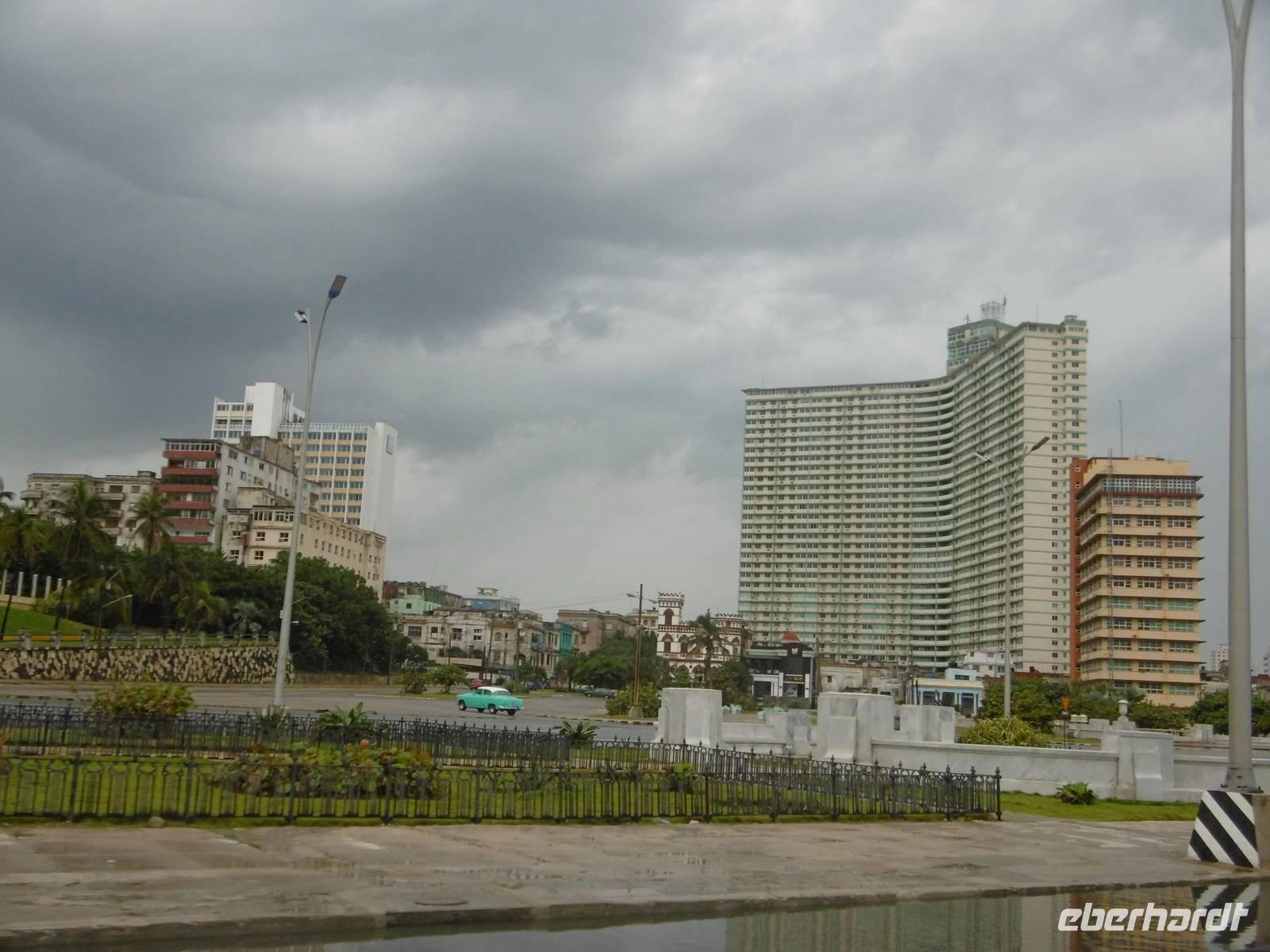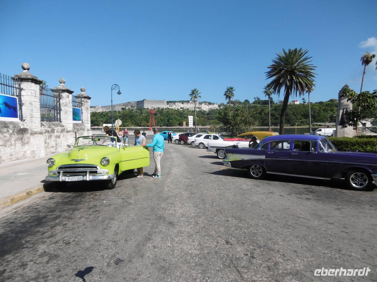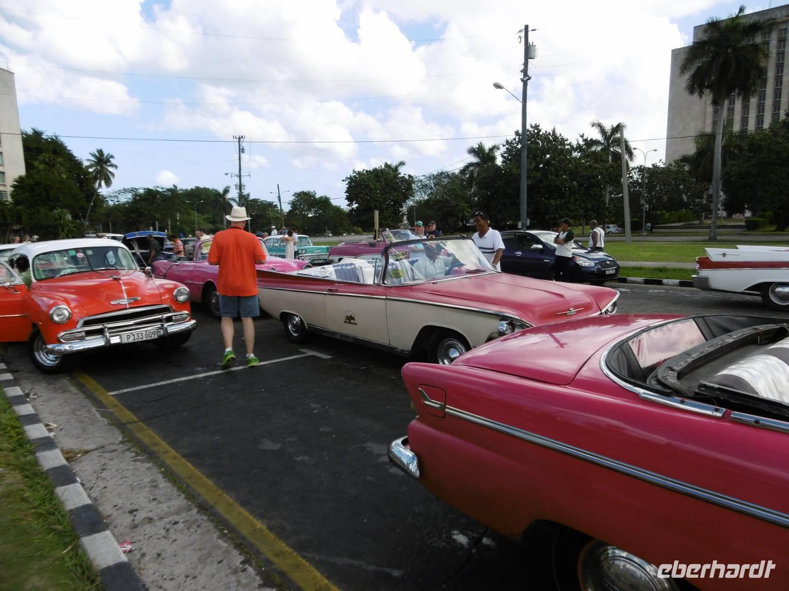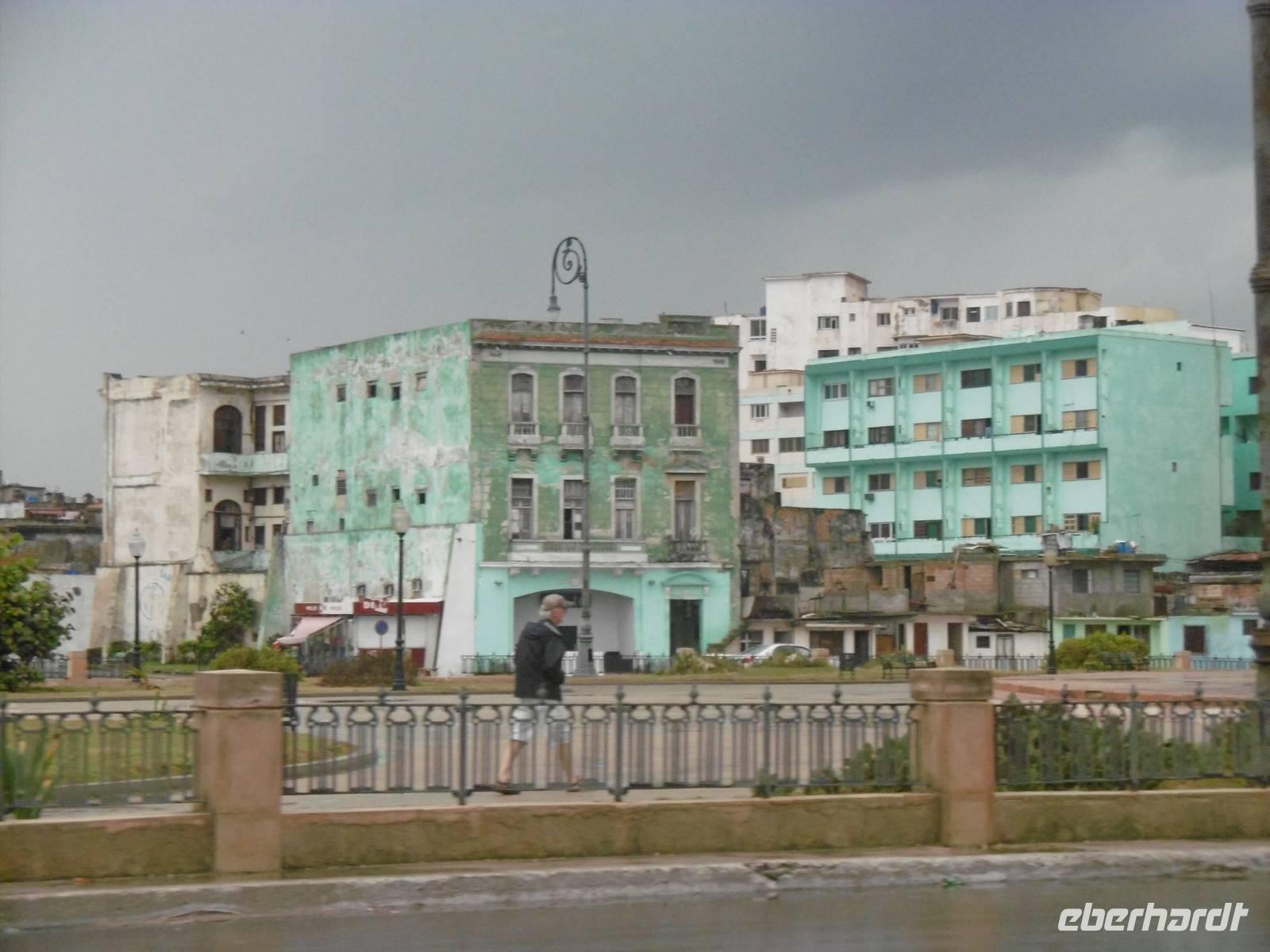 Nach dem Frühstück fahren wir zurück nach Havanna. Unsere Reise neigt sich dem Ende entgegen, doch noch haben wir einige tolle Sachen für die Hauptstadt geplant. Wir fahren an der größten Erdölraffinerie Kubas vorbei und halten auch nochmal an unserer Lieblings Pina Colada Bar. Dann begrüßt uns schon die Hauptstadt und wir spazieren in die Alstadt, wo wir im Restaurant La Moneda Kubana zu Mittag essen. Dabei werden wir auf der Terrasse von einem heftigen Regenschauer überrascht wie er hier in der Karibik üblich ist. Dieses Regenwetter hält den übrigen Tag an, denn über Westkuba zieht gerade eine Kältefront. Marcos war so lieb und hat uns Eintritt ins Hemingway Zimmer im Hotel Ambos Mundos beschafft, da dieses ja am Neujahrstag geschlossen gewesen war. Nach dem Besuch gibt es auf der Dachterrasse noch einen Mojito für alle. Weiter geht es zu Fuß zum Havana Club Rummuseum. Hier zeigt und erklärt uns eine deutschsprachige Führerin die Geschichte, den Anbau und die Produktion von Zuckerrohr und die verschiedenen Havana Club Rumsorten. Im Anschluss daran probieren wir den 7-jährigen Rum und haben im Souvenirshop die Möglichkeit die Flaschen zu einem unschlagbaren Preis zu kaufen. Unsere Oldtimer für die nachmittägliche Rundfahrt erwarten uns schon am Ausgang des Museums. Vier tolle Cabrios! So starten wir gen Malecon und fahren dann durch die damaligen Reichenviertel Vedado und Miramar. Mitten drin werden wir wieder vom Regen überrascht, doch gottseidank haben unsere Cabrios ein Regendach. :) Den Abend lassen wir aufgrund des schlechten Wetters gemütlich im Hotel ausklingen.