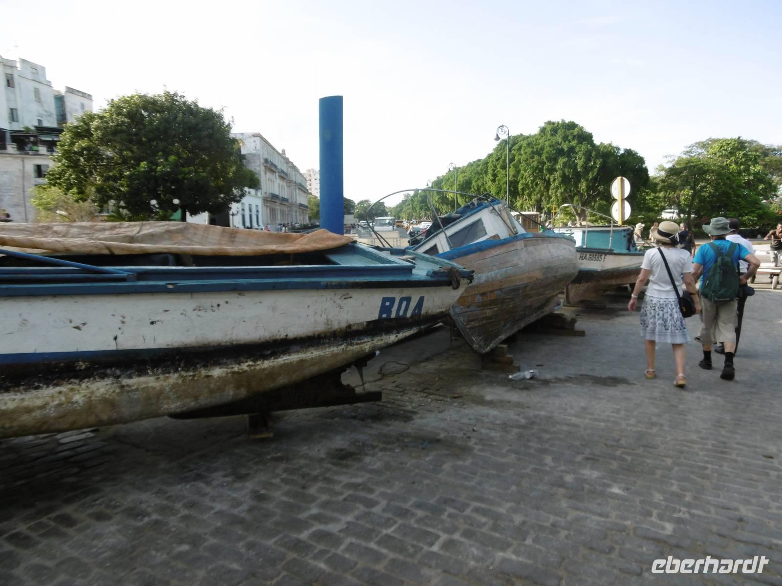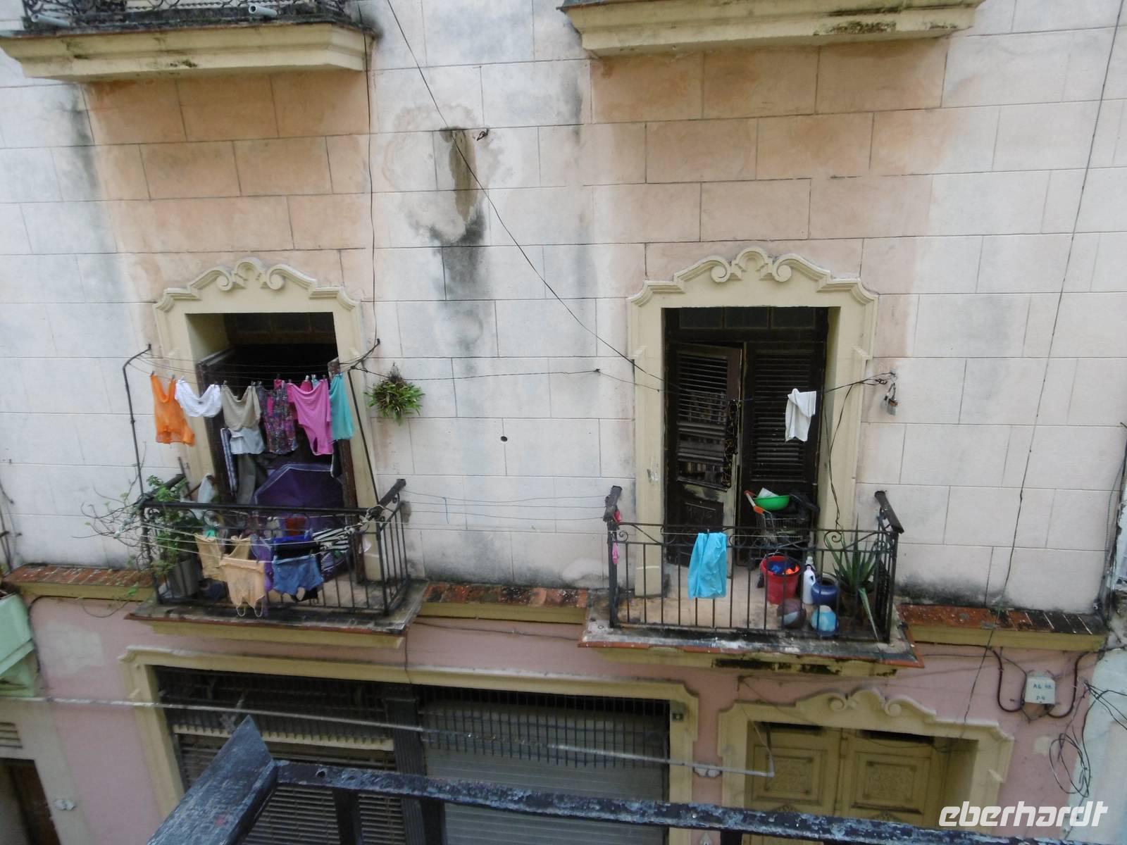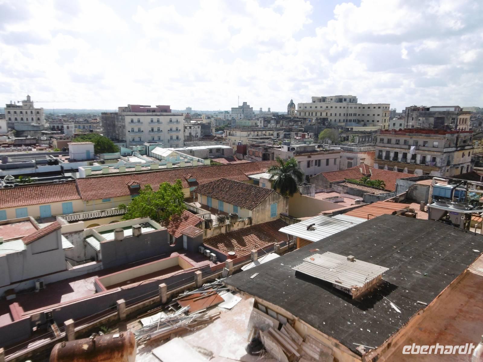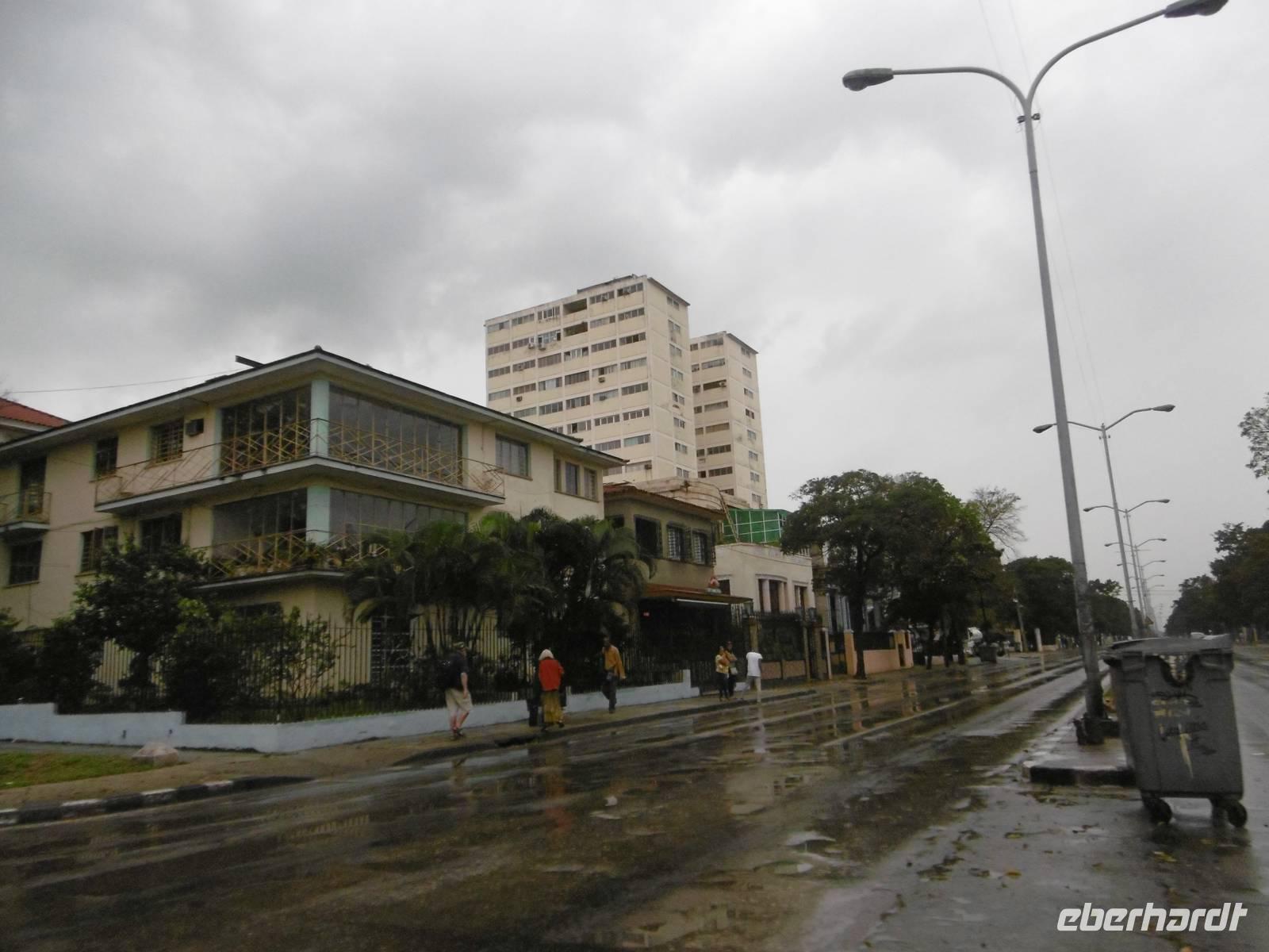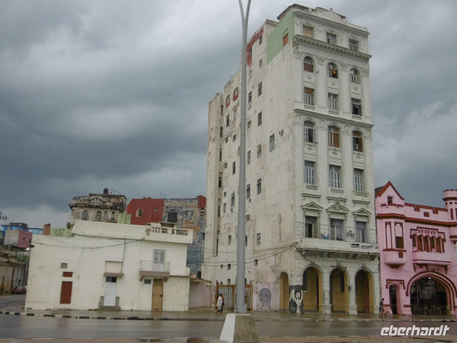 Nach dem Frühstück fahren wir zurück nach Havanna. Unsere Reise neigt sich dem Ende entgegen, doch noch haben wir einige tolle Sachen für die Hauptstadt geplant. Wir fahren an der größten Erdölraffinerie Kubas vorbei und halten auch nochmal an unserer Lieblings Pina Colada Bar. Dann begrüßt uns schon die Hauptstadt und wir spazieren in die Alstadt, wo wir im Restaurant La Moneda Kubana zu Mittag essen. Dabei werden wir auf der Terrasse von einem heftigen Regenschauer überrascht wie er hier in der Karibik üblich ist. Dieses Regenwetter hält den übrigen Tag an, denn über Westkuba zieht gerade eine Kältefront. Marcos war so lieb und hat uns Eintritt ins Hemingway Zimmer im Hotel Ambos Mundos beschafft, da dieses ja am Neujahrstag geschlossen gewesen war. Nach dem Besuch gibt es auf der Dachterrasse noch einen Mojito für alle. Weiter geht es zu Fuß zum Havana Club Rummuseum. Hier zeigt und erklärt uns eine deutschsprachige Führerin die Geschichte, den Anbau und die Produktion von Zuckerrohr und die verschiedenen Havana Club Rumsorten. Im Anschluss daran probieren wir den 7-jährigen Rum und haben im Souvenirshop die Möglichkeit die Flaschen zu einem unschlagbaren Preis zu kaufen. Unsere Oldtimer für die nachmittägliche Rundfahrt erwarten uns schon am Ausgang des Museums. Vier tolle Cabrios! So starten wir gen Malecon und fahren dann durch die damaligen Reichenviertel Vedado und Miramar. Mitten drin werden wir wieder vom Regen überrascht, doch gottseidank haben unsere Cabrios ein Regendach. :) Den Abend lassen wir aufgrund des schlechten Wetters gemütlich im Hotel ausklingen.