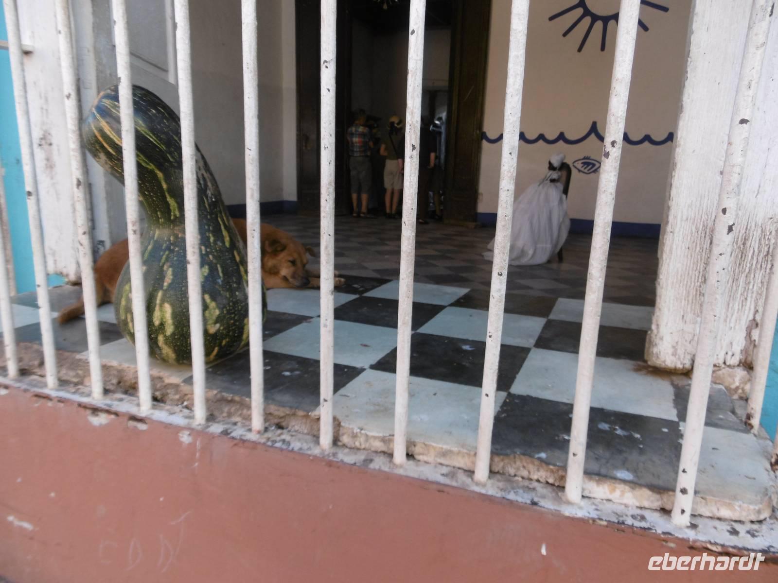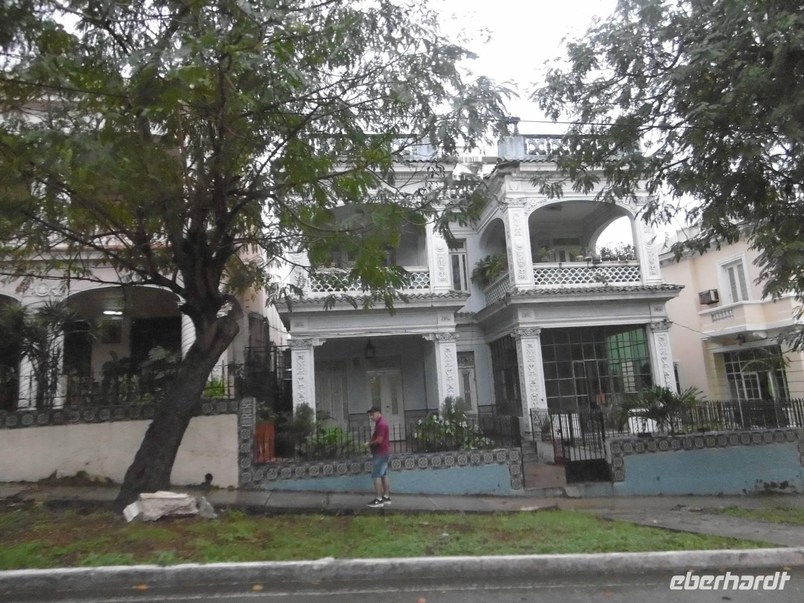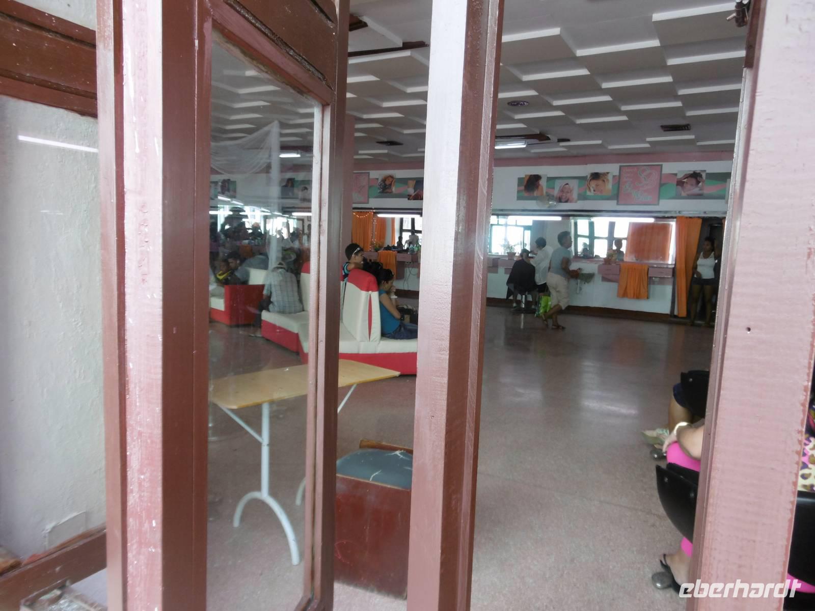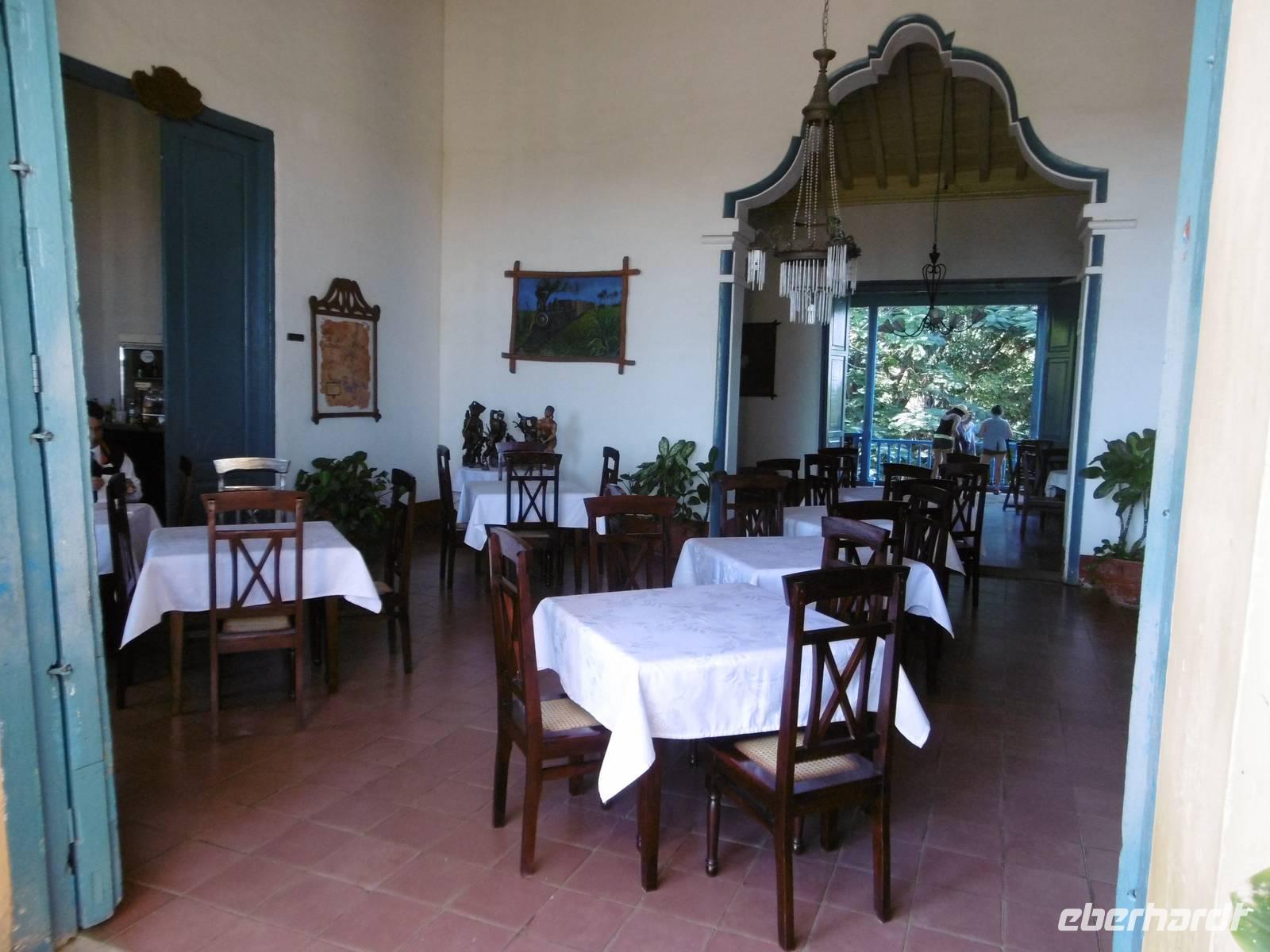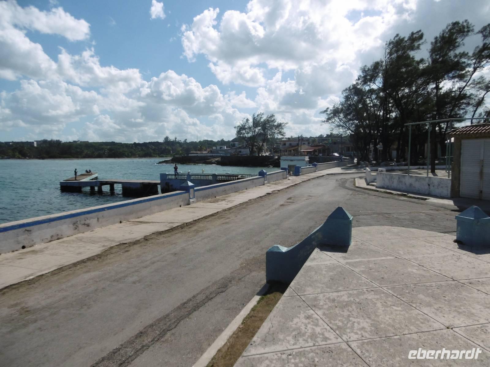 Und wieder haben wir Glück mit dem Wetter - die Sonne strahlt und wir frühstücken heute auf der Terrasse des Hotels Faro Luna mit Blick aufs Meer. Dann brechen wir auf in Richtung Stadt Cienfuegos. Auf halber Höhe befindet sich der Botanische Garten. Diesen hat ein Amerikaner entworfen und Gewächse aus aller Welt gesammelt und gezüchtet. 97 Hektar umfasst der Garten, doch wir schauen uns nur einen kleinen Teil der Anlage an. Da wir kurz vor neun Uhr da sind, sind wir die einzigen Touristen und können die morgendliche Stimmung im Garten in Ruhe aufnehmen. Eine Botanikerin erklärt uns die ulkigsten Gewächse und Marcos übersetzt. So sehen wir zum Beispiel einen Kanonenkugelbaum, Mahagonibaum, Leberwurstbaum, Paranussbaum, Bambus, verschiedene Palmenarten, wunderschöne Fikusbäume und eine vielfältige Blütenpracht. Nach dem Spaziergang geht es weiter in Richtung Cienfuegos - wieder mit einem Quiz und kleinen Santiago Rum Chupitos als Belohnung für die richtigen Antworten. In Cienfuegos besuchen wir zunächst das Teatro Terry - ein wichtiger Schauplatz Kubas Tanz- und Gesangstalente. Hier findet gerade eine Probe für die abendliche Vorstellung statt. Dann erklärt uns Marcos den Hauptplatz. Wir haben Zeit selbst durch die Straßen zu schlendern. Auf dem Boulevard bieten sich typische Szenen. So entdecken wir zum Beispiel einen rustikalen Friseursalon, eine Zahnarztpraxis, riesige Schlangen vor den Lebensmittelläden (heute gibt es Eier) und in den Haushaltwarenläden. Am Samstag ist Cienfuegos voller kauflustiger Kubaner. Das Mittagessen nehmen wir heute in einem unscheinbaren Paladar am Prado mit ausgezeichnetem Essen und herzlichen Service ein. Am Malecon entlang geht es zurück in Richtung Hotel und Überraschung: wir halten am schönsten Gebäude Cienfuegos - dem Palacio del Valle. Marrokanische Baukunst trifft hier auf französiches Flair. Oben auf der Dachterrasse bietet sich ein traumhafter Ausblick über die Bahia de Cienfuegos und wir stoßen mit einem Cocktail an. Anschließend geht es zurück zum Hotel, wo wir bei viel Sonne den Rest des Tages am Strand ausklingen lassen.