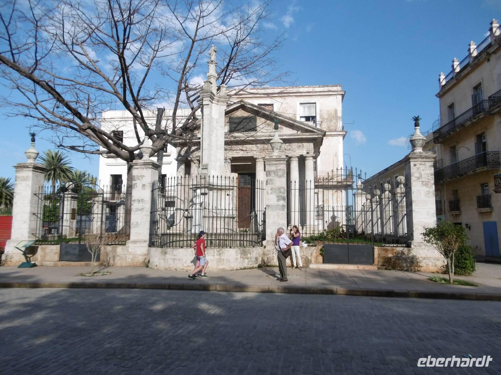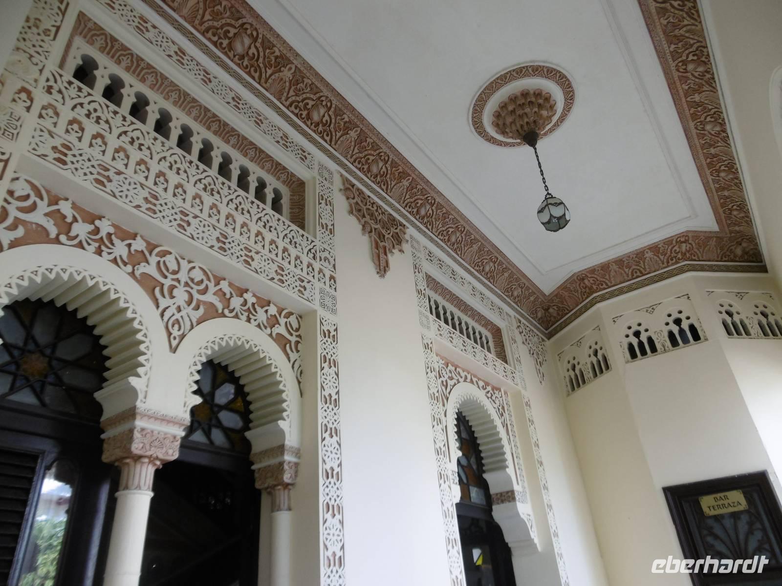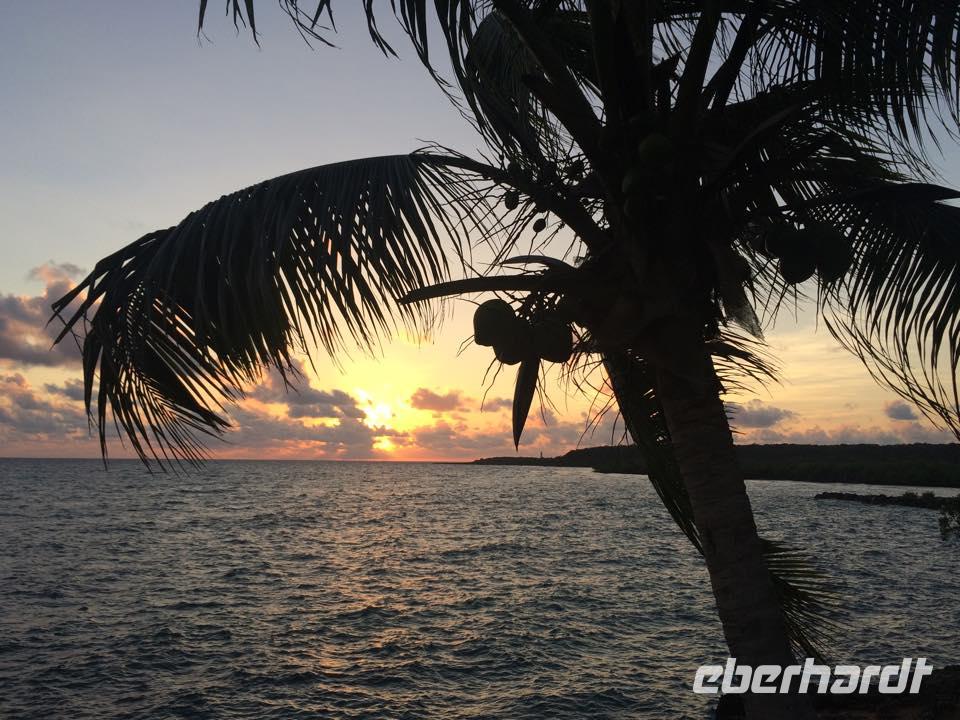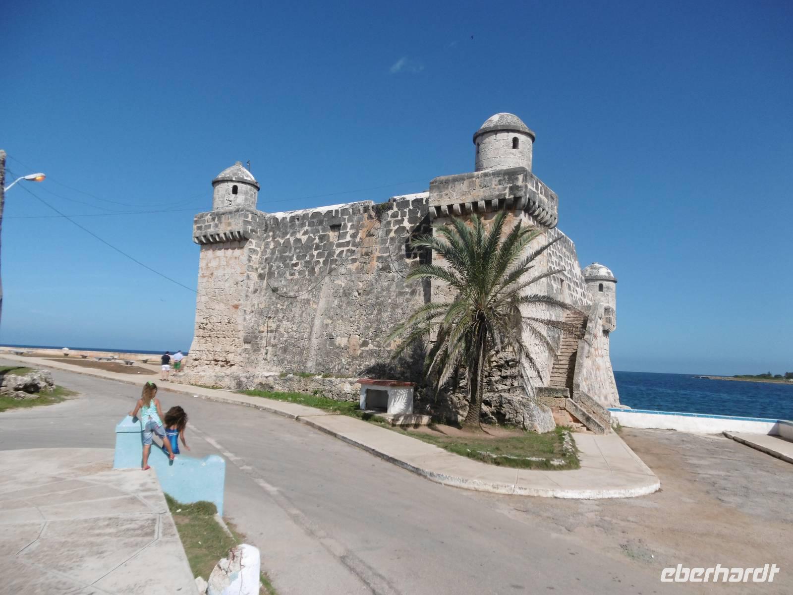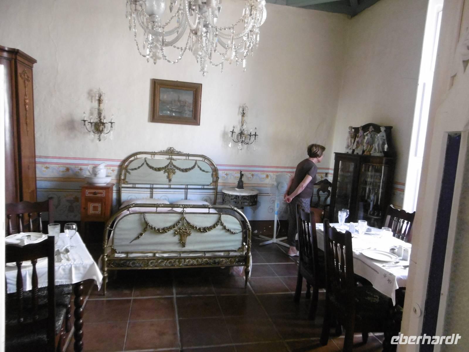 Und wieder haben wir Glück mit dem Wetter - die Sonne strahlt und wir frühstücken heute auf der Terrasse des Hotels Faro Luna mit Blick aufs Meer. Dann brechen wir auf in Richtung Stadt Cienfuegos. Auf halber Höhe befindet sich der Botanische Garten. Diesen hat ein Amerikaner entworfen und Gewächse aus aller Welt gesammelt und gezüchtet. 97 Hektar umfasst der Garten, doch wir schauen uns nur einen kleinen Teil der Anlage an. Da wir kurz vor neun Uhr da sind, sind wir die einzigen Touristen und können die morgendliche Stimmung im Garten in Ruhe aufnehmen. Eine Botanikerin erklärt uns die ulkigsten Gewächse und Marcos übersetzt. So sehen wir zum Beispiel einen Kanonenkugelbaum, Mahagonibaum, Leberwurstbaum, Paranussbaum, Bambus, verschiedene Palmenarten, wunderschöne Fikusbäume und eine vielfältige Blütenpracht. Nach dem Spaziergang geht es weiter in Richtung Cienfuegos - wieder mit einem Quiz und kleinen Santiago Rum Chupitos als Belohnung für die richtigen Antworten. In Cienfuegos besuchen wir zunächst das Teatro Terry - ein wichtiger Schauplatz Kubas Tanz- und Gesangstalente. Hier findet gerade eine Probe für die abendliche Vorstellung statt. Dann erklärt uns Marcos den Hauptplatz. Wir haben Zeit selbst durch die Straßen zu schlendern. Auf dem Boulevard bieten sich typische Szenen. So entdecken wir zum Beispiel einen rustikalen Friseursalon, eine Zahnarztpraxis, riesige Schlangen vor den Lebensmittelläden (heute gibt es Eier) und in den Haushaltwarenläden. Am Samstag ist Cienfuegos voller kauflustiger Kubaner. Das Mittagessen nehmen wir heute in einem unscheinbaren Paladar am Prado mit ausgezeichnetem Essen und herzlichen Service ein. Am Malecon entlang geht es zurück in Richtung Hotel und Überraschung: wir halten am schönsten Gebäude Cienfuegos - dem Palacio del Valle. Marrokanische Baukunst trifft hier auf französiches Flair. Oben auf der Dachterrasse bietet sich ein traumhafter Ausblick über die Bahia de Cienfuegos und wir stoßen mit einem Cocktail an. Anschließend geht es zurück zum Hotel, wo wir bei viel Sonne den Rest des Tages am Strand ausklingen lassen.