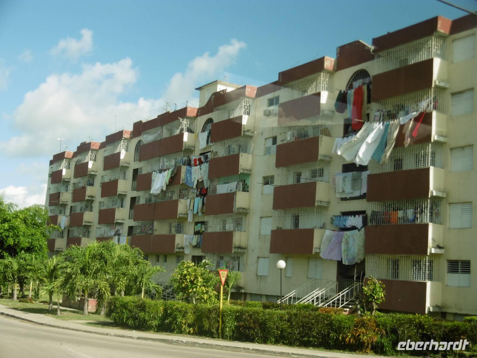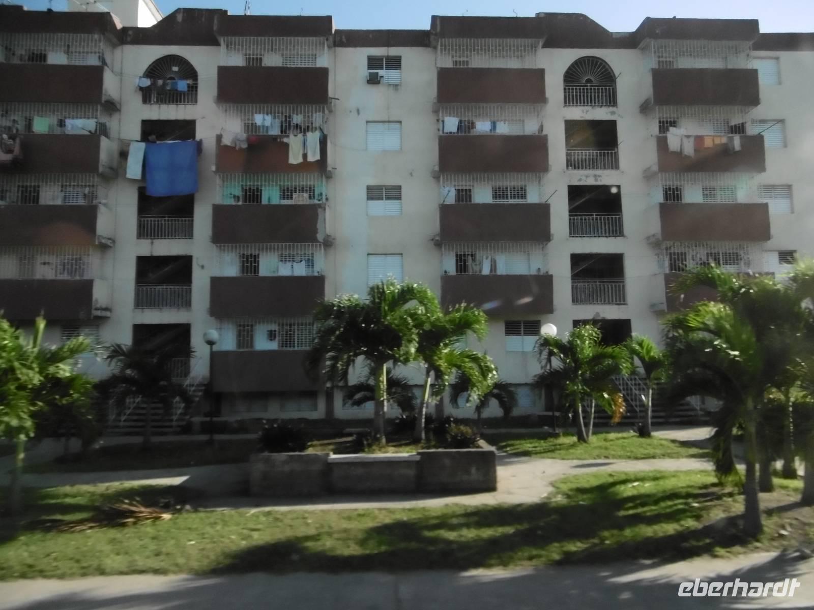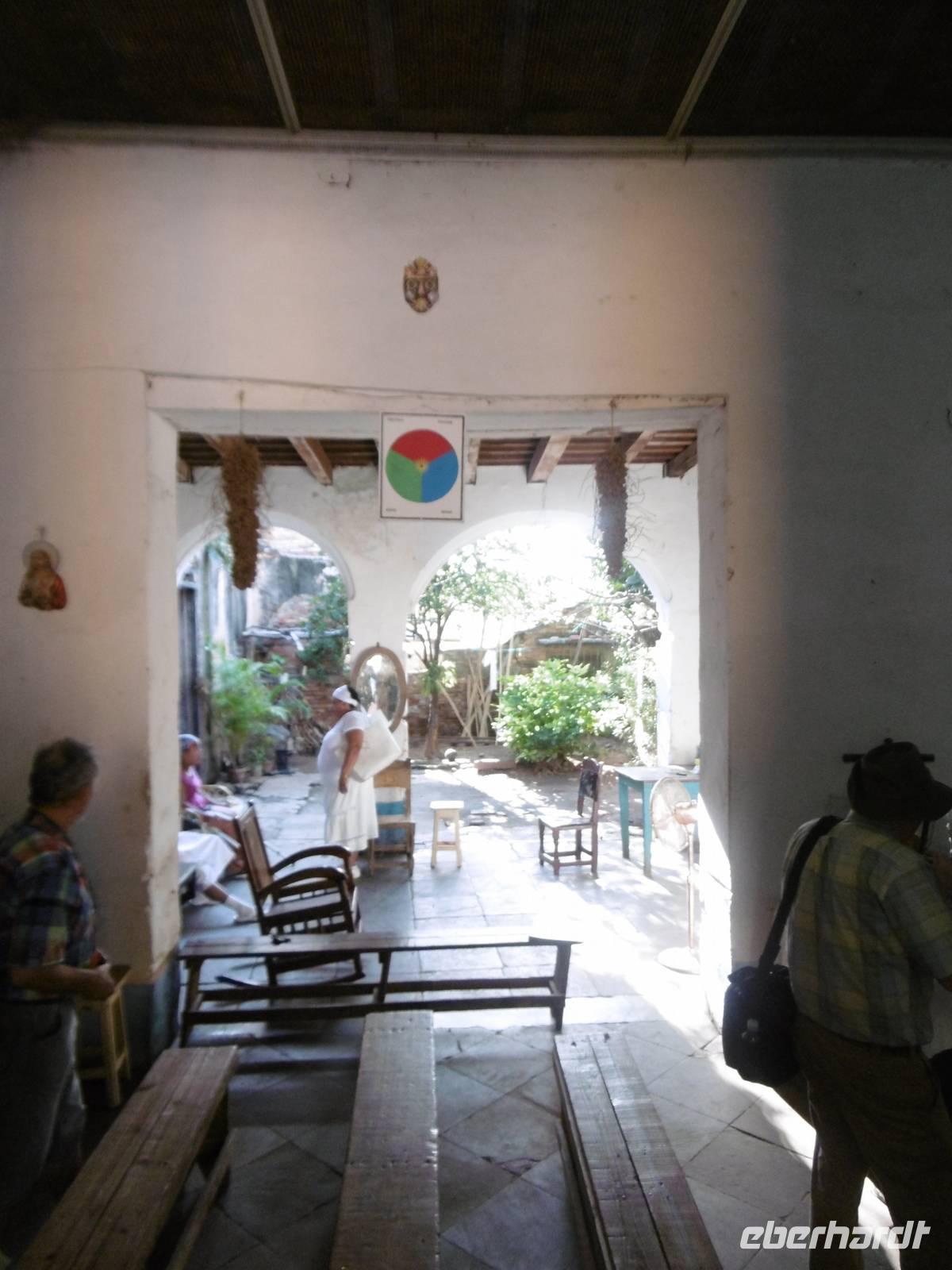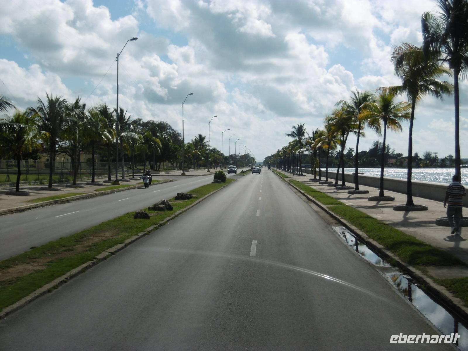 Und wieder haben wir Glück mit dem Wetter - die Sonne strahlt und wir frühstücken heute auf der Terrasse des Hotels Faro Luna mit Blick aufs Meer. Dann brechen wir auf in Richtung Stadt Cienfuegos. Auf halber Höhe befindet sich der Botanische Garten. Diesen hat ein Amerikaner entworfen und Gewächse aus aller Welt gesammelt und gezüchtet. 97 Hektar umfasst der Garten, doch wir schauen uns nur einen kleinen Teil der Anlage an. Da wir kurz vor neun Uhr da sind, sind wir die einzigen Touristen und können die morgendliche Stimmung im Garten in Ruhe aufnehmen. Eine Botanikerin erklärt uns die ulkigsten Gewächse und Marcos übersetzt. So sehen wir zum Beispiel einen Kanonenkugelbaum, Mahagonibaum, Leberwurstbaum, Paranussbaum, Bambus, verschiedene Palmenarten, wunderschöne Fikusbäume und eine vielfältige Blütenpracht. Nach dem Spaziergang geht es weiter in Richtung Cienfuegos - wieder mit einem Quiz und kleinen Santiago Rum Chupitos als Belohnung für die richtigen Antworten. In Cienfuegos besuchen wir zunächst das Teatro Terry - ein wichtiger Schauplatz Kubas Tanz- und Gesangstalente. Hier findet gerade eine Probe für die abendliche Vorstellung statt. Dann erklärt uns Marcos den Hauptplatz. Wir haben Zeit selbst durch die Straßen zu schlendern. Auf dem Boulevard bieten sich typische Szenen. So entdecken wir zum Beispiel einen rustikalen Friseursalon, eine Zahnarztpraxis, riesige Schlangen vor den Lebensmittelläden (heute gibt es Eier) und in den Haushaltwarenläden. Am Samstag ist Cienfuegos voller kauflustiger Kubaner. Das Mittagessen nehmen wir heute in einem unscheinbaren Paladar am Prado mit ausgezeichnetem Essen und herzlichen Service ein. Am Malecon entlang geht es zurück in Richtung Hotel und Überraschung: wir halten am schönsten Gebäude Cienfuegos - dem Palacio del Valle. Marrokanische Baukunst trifft hier auf französiches Flair. Oben auf der Dachterrasse bietet sich ein traumhafter Ausblick über die Bahia de Cienfuegos und wir stoßen mit einem Cocktail an. Anschließend geht es zurück zum Hotel, wo wir bei viel Sonne den Rest des Tages am Strand ausklingen lassen.