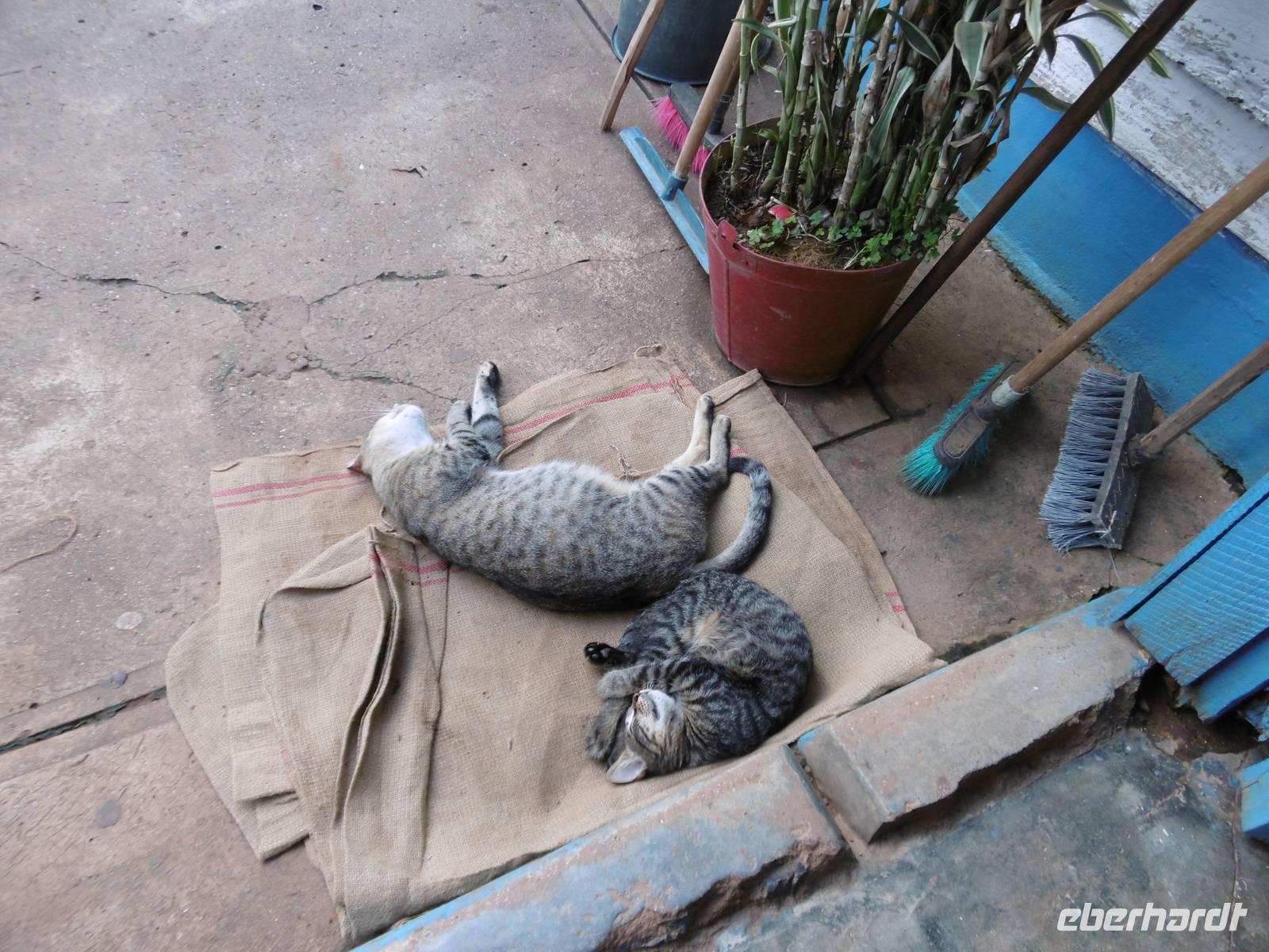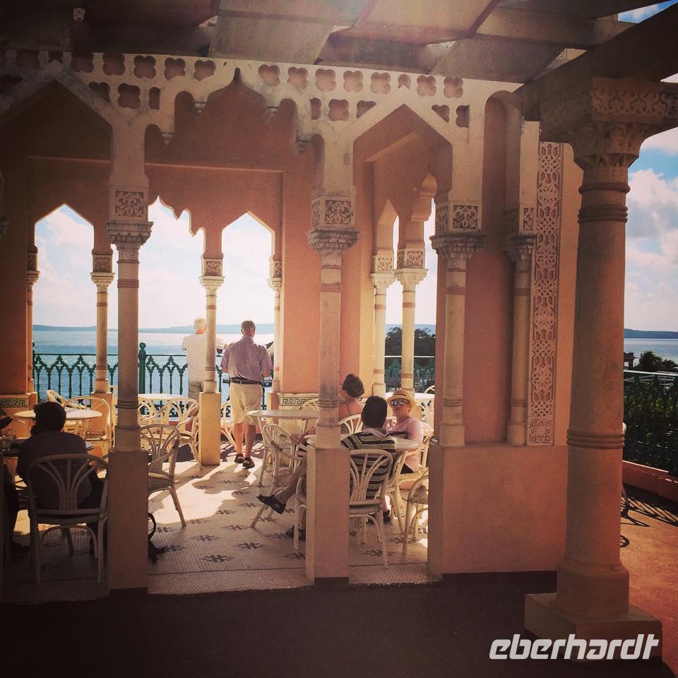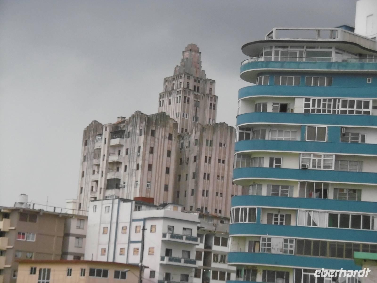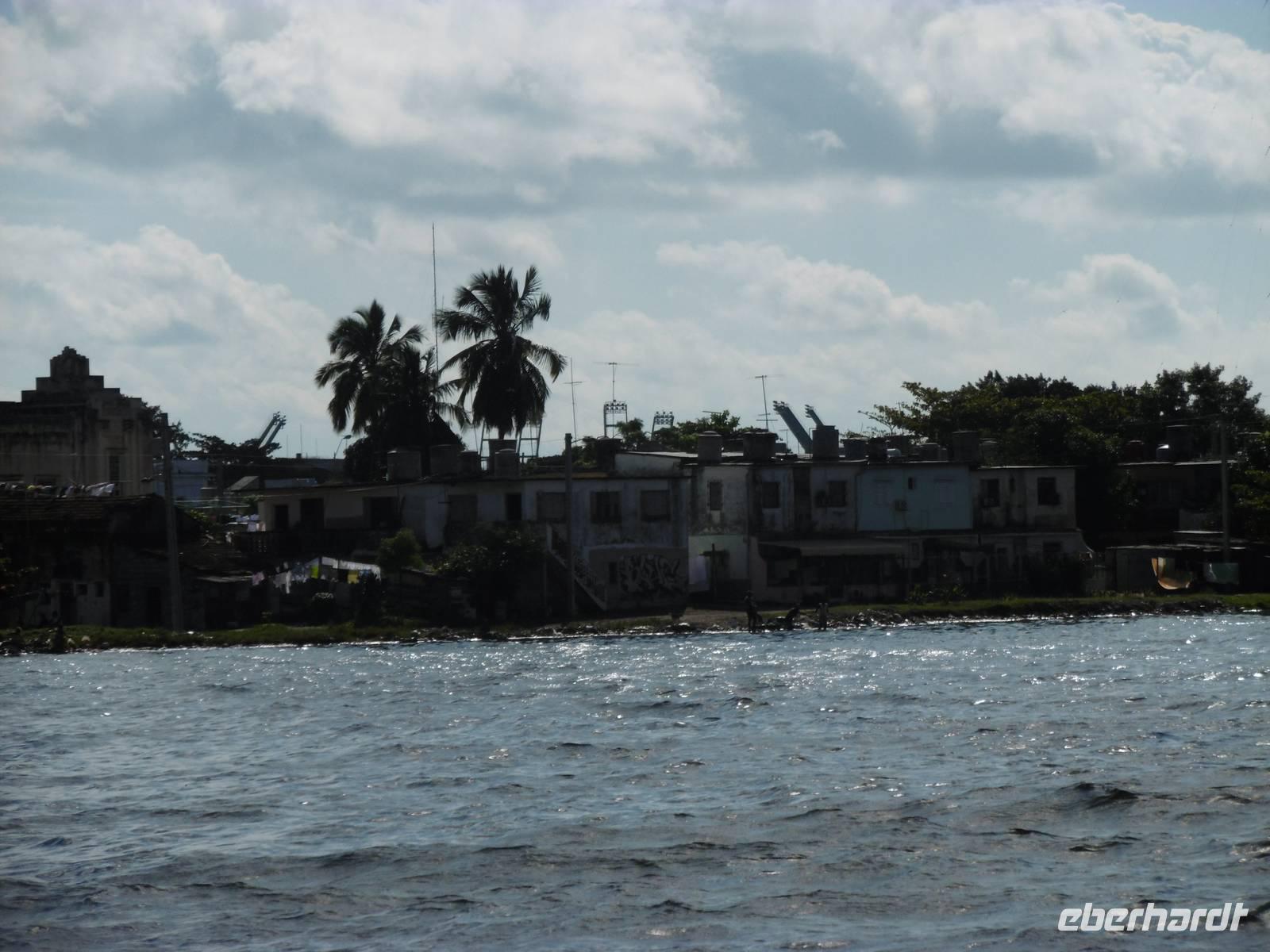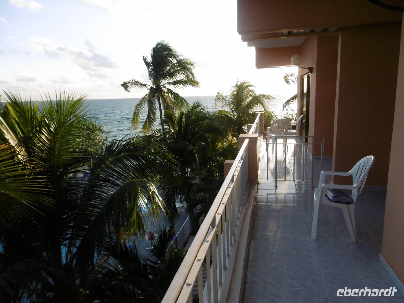 Und wieder haben wir Glück mit dem Wetter - die Sonne strahlt und wir frühstücken heute auf der Terrasse des Hotels Faro Luna mit Blick aufs Meer. Dann brechen wir auf in Richtung Stadt Cienfuegos. Auf halber Höhe befindet sich der Botanische Garten. Diesen hat ein Amerikaner entworfen und Gewächse aus aller Welt gesammelt und gezüchtet. 97 Hektar umfasst der Garten, doch wir schauen uns nur einen kleinen Teil der Anlage an. Da wir kurz vor neun Uhr da sind, sind wir die einzigen Touristen und können die morgendliche Stimmung im Garten in Ruhe aufnehmen. Eine Botanikerin erklärt uns die ulkigsten Gewächse und Marcos übersetzt. So sehen wir zum Beispiel einen Kanonenkugelbaum, Mahagonibaum, Leberwurstbaum, Paranussbaum, Bambus, verschiedene Palmenarten, wunderschöne Fikusbäume und eine vielfältige Blütenpracht. Nach dem Spaziergang geht es weiter in Richtung Cienfuegos - wieder mit einem Quiz und kleinen Santiago Rum Chupitos als Belohnung für die richtigen Antworten. In Cienfuegos besuchen wir zunächst das Teatro Terry - ein wichtiger Schauplatz Kubas Tanz- und Gesangstalente. Hier findet gerade eine Probe für die abendliche Vorstellung statt. Dann erklärt uns Marcos den Hauptplatz. Wir haben Zeit selbst durch die Straßen zu schlendern. Auf dem Boulevard bieten sich typische Szenen. So entdecken wir zum Beispiel einen rustikalen Friseursalon, eine Zahnarztpraxis, riesige Schlangen vor den Lebensmittelläden (heute gibt es Eier) und in den Haushaltwarenläden. Am Samstag ist Cienfuegos voller kauflustiger Kubaner. Das Mittagessen nehmen wir heute in einem unscheinbaren Paladar am Prado mit ausgezeichnetem Essen und herzlichen Service ein. Am Malecon entlang geht es zurück in Richtung Hotel und Überraschung: wir halten am schönsten Gebäude Cienfuegos - dem Palacio del Valle. Marrokanische Baukunst trifft hier auf französiches Flair. Oben auf der Dachterrasse bietet sich ein traumhafter Ausblick über die Bahia de Cienfuegos und wir stoßen mit einem Cocktail an. Anschließend geht es zurück zum Hotel, wo wir bei viel Sonne den Rest des Tages am Strand ausklingen lassen.