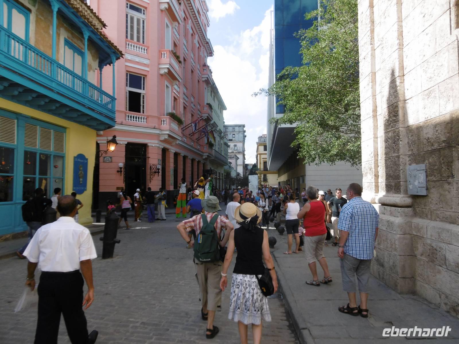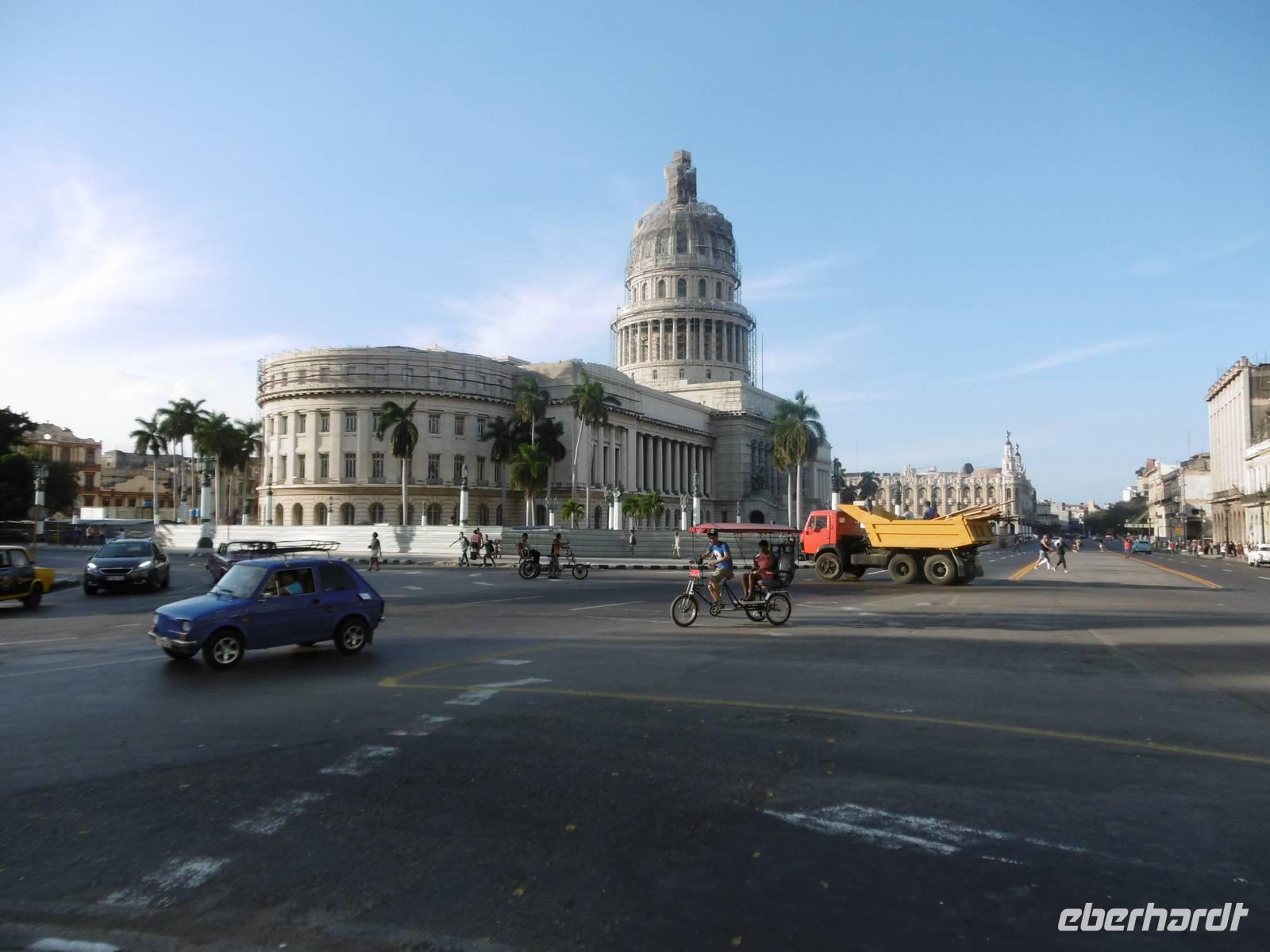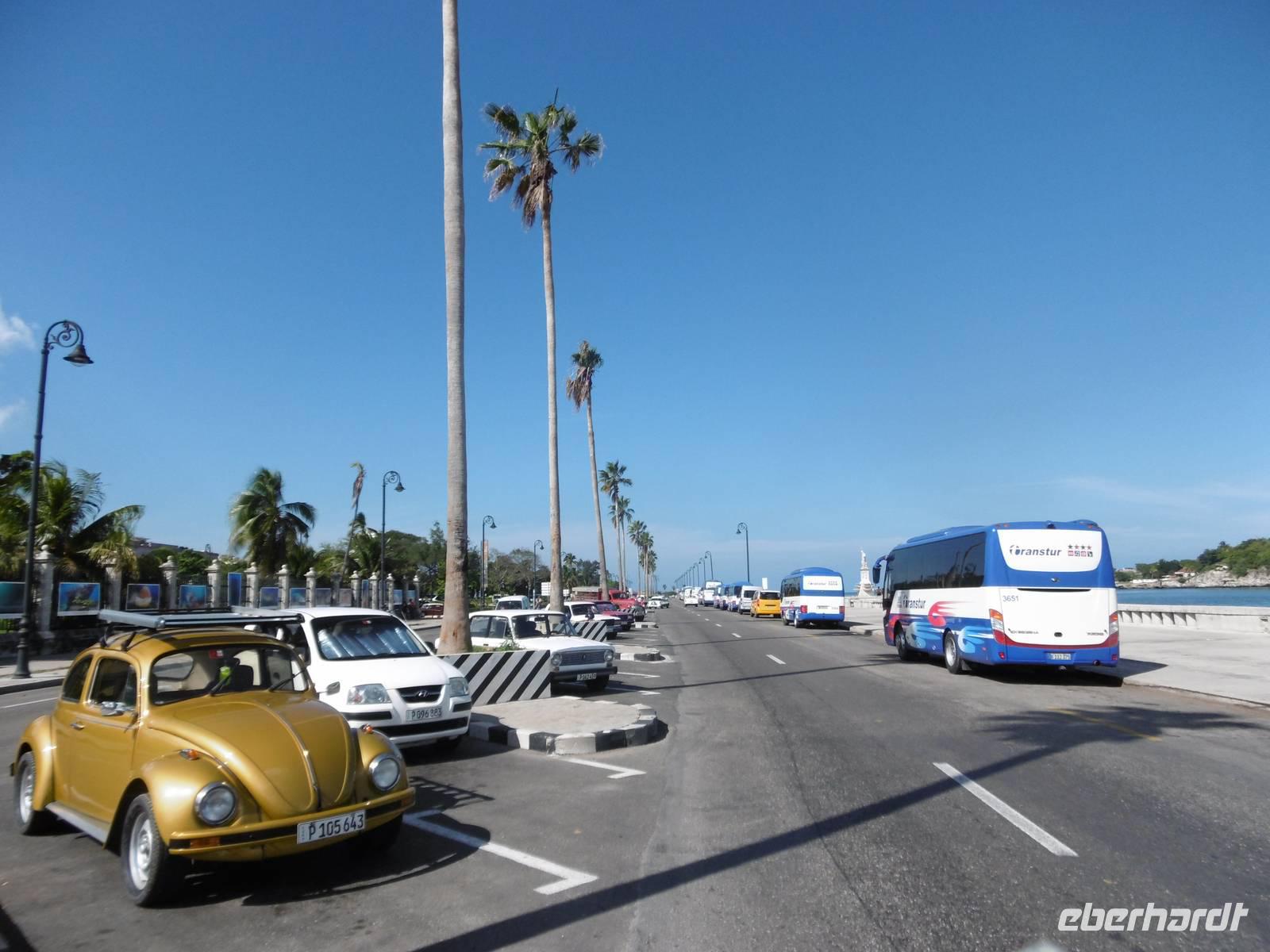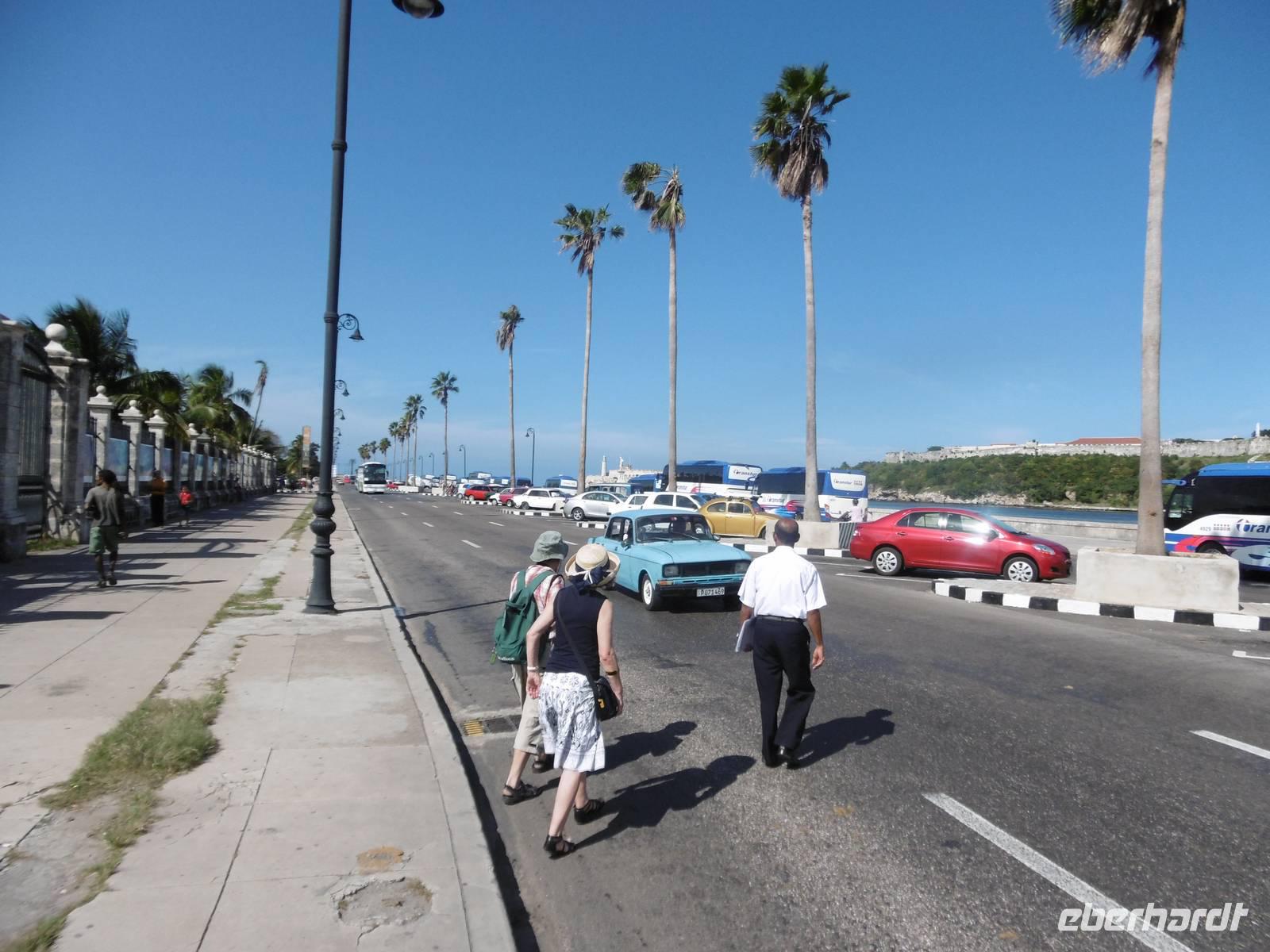 Ganz früh am Morgen begeben wir uns auf dem Weg. Tschüß frostiges Deutschland - Hola Havanna heißt es nach ca. 10 Stunden Flug von Amsterdam aus. Die Einreise verläuft zügig, jedoch bekommen wir bei der Annahme der Koffer sogleich einen ersten Eindruck vom der kubanischen Organisation. Vier Flieger werden am gleichen Kofferband abgefertigt - das Chaos ist vorprogrammiert. Nach zwei Stunden Wartezeit haben wir alle unsere Koffer und unsere erste Lektion gelernt: man muss ganz viiiiiel Zeit für Kuba mitbringen ;). Wir werden von unserem Reiseleiter Marcos und Busfahrer Amauri begrüßt, welche uns zum Hotel Memories Miramar direkt an der berühmten Quinta Avenida fahren. Wir checken ein und begeben uns zum Abendessen. Anschließen stoßen wir bei einem ersten Moijto auf die Reise an. Ein Teil der Gruppe begibt sich noch auf einen nächtlichen Spaziergang durch Alt-Havanna. Wir beginnen am neuen Hafengelände und schlendern dann durch die nächtlichen Straßen von Habana Vieja zur Plaza Vieja. Bei Nacht bekommt man ein besonders authentisches Bild von Havanna, denn zu diesem Zeitpunkt ist es nicht mehr von Touristen überlaufen. Wir bekommen einen Eindruck vom Leben in dieser Stadt und es bieten sich uns viele unvergessliche Bilder. Nach einem Bierchen an der belebten Plaza Vieja fahren wir mit Amauri zum Capitol - so war es jedenfalls geplant. Doch wir stoßen auf einige gesperrte Straßen und müssen (zu unserem Glück) auf die abgelegenen Innenstadtstraßen von Centro Habana ausweichen, in welche Touristenbusse eher unüblich sind. Wir sehen viele Kubaner, welche vor Ihrer offenen Haustür sitzen mit den Nachbarn quatschen und den Tag ausklingen lassen. Anschließen erreichen wir das sich noch im Bau befindende Capitol und das neu restaurierte und toll beleuchtete Teatro, welches vor Kurzem auf den neuen Namen Alicia Alonso, zu Ehren Cubas Primaballerina, umgetauft wurde. Um Mitternacht fallen wir müde, jedoch voller neuer Eindrücke ins Bett.