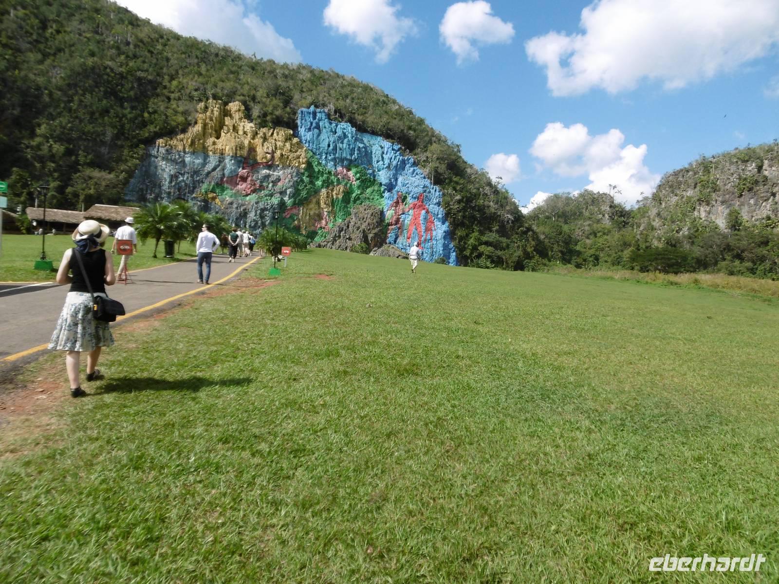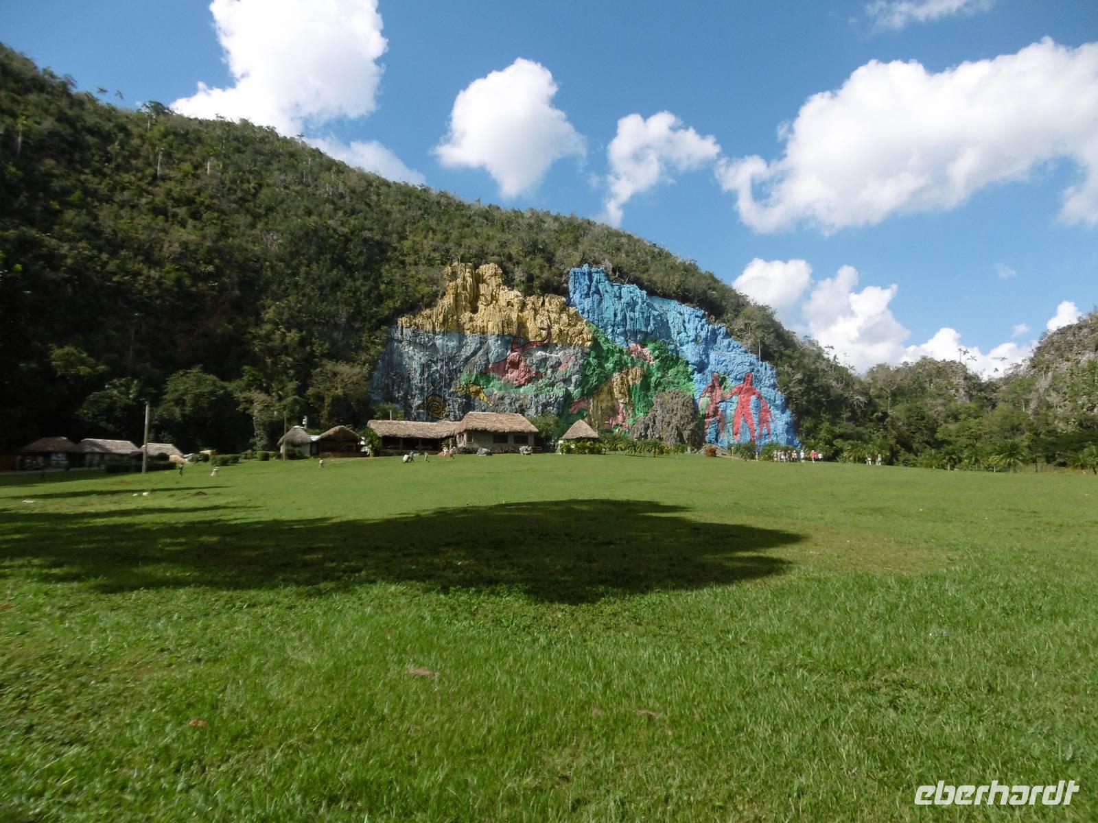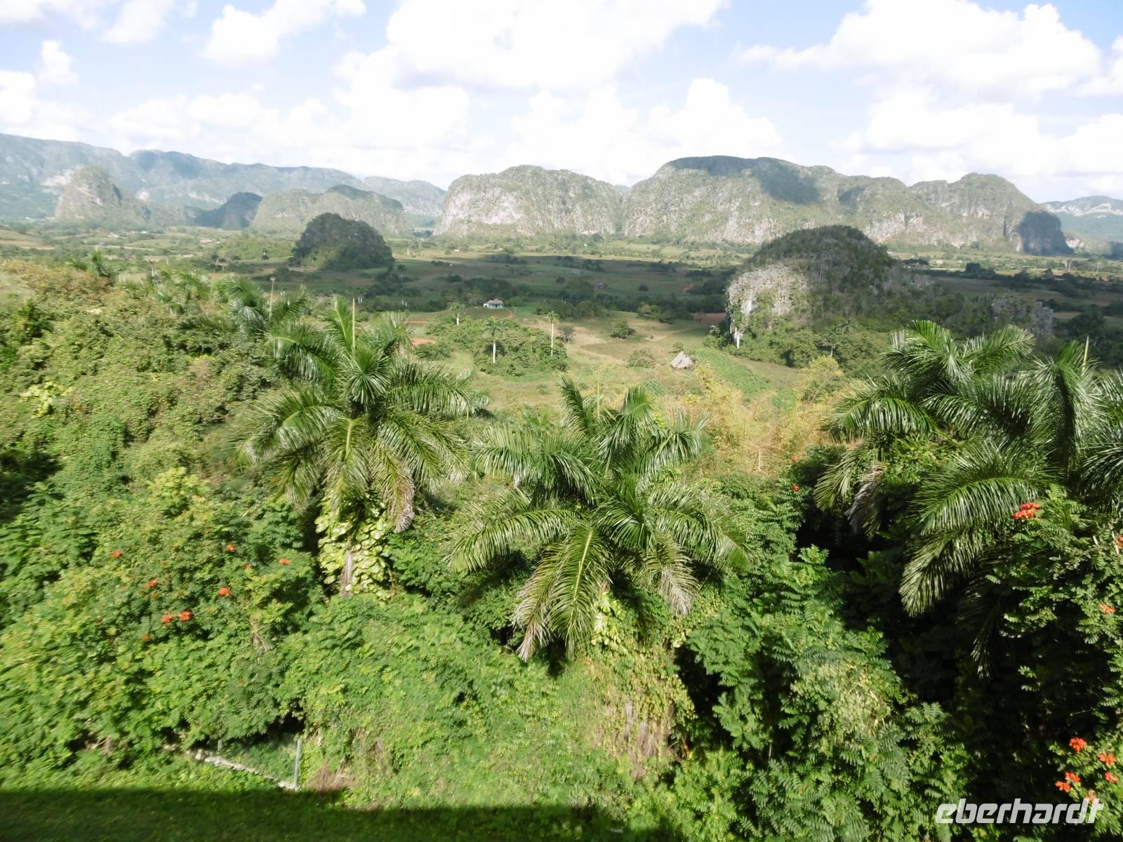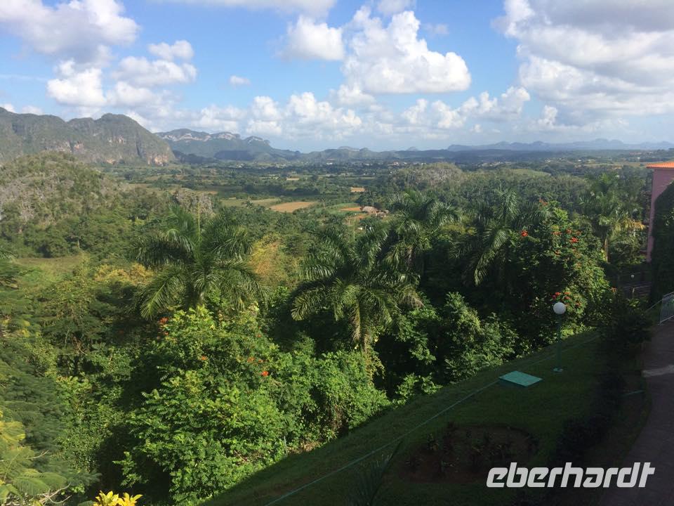 Heute starten wir recht zeitig, denn uns steht ein erlebnisreicher und unvergesslicher Tag vor. Bis ins Vinales Tal sind es ca. drei Stunden Fahrt im Bus von Havanna aus. Doch bei Marcos Erzählungen und vielfältigen Erklärungen wir es nicht langweilig. Wir sehen das tolle Villenvietel El Lagito, das Leichtathletikstation und den Zirkus mit den ehemaligen Casinos. Hier wohnen einige der reichsten Menschen Kubas. Dann beginnt schon die Autobahn - in Kuba ein wahres Erlebnis! Maximal 100 km/h darf man hier fahren. Die Autobahn wir von Fußgängern, Radfahrern, Kutschen, Bussen und Autos gelichzeitig genutzt. Vorbei an schönen Stausees kommen wir in den Genuss von auf der Autobahn wendenden Rinderkarren, mitten auf der Straße quatschenden Kubanern, Cowboys mit Kühen usw. Über den Mais-, Ananas- und Manjokplantagen zieht sich der Himmel zu. Doch kurz vor Ankunft im Vinalestal klärt es wieder auf und der strahlende Sonnenschein verlässt uns bis zur Rückreise nicht mehr. Zunächst stoppen wir am Aussichtspunkt beim Hotel Los Jazmines, denn von hier hat man den besten Blick auf das unter uns liegende Tal mit den Karststeinfelsen (Mogotes), Tabakhäuschen und Feldern. Das möchten wir nun auch hautnah erleben! In der Finca Paraiso werden wir vom hier lebenden Tabakbauern begrüßt. Zunächst wird uns bei einem Tabakfeld der Anbau erklärt. In der danebenliegenden Tabakhütte erfahren und sehen wir mehr darüber wie es getrocknet und aufbereitet wird. Anschließend sehen wir die Phasen des Zigarrendrehens - und dürfen selbst die frisch gedrehte Zigarre probieren.Der Tabakbauer führt uns in sein Wohnhaus wo wir herzlich mit Cafe und Likör begrüßt werden. Nun geht es wieder weiter durch das traumhafte Tal. Unser nächster Stopp ist die Felsmalerei Mural der la Prehistoria, welche die Evolution des Menschen darstellt. Nach einen Fotostopp geht es zum Mittagessen ins Restaurant Rancho San Vicente. Dieses liegt direkt neben der Höhle Cueva de los Indios. Hier erwartet uns als Tagesabschluss eine Bootsfahrt durch die Höhle mit faszinierenden Stalaktiten. Am Abend begeben wir uns alles zum Hotel Melia Cohiba. Hier im Cafe Habana erleben wir eine tolle Show mit Künstlern, welche bei tänzerischer Untermalung die berühmten Werke der Buenavista Social Club Musiker wiedergeben. Kubanischer Son pur!