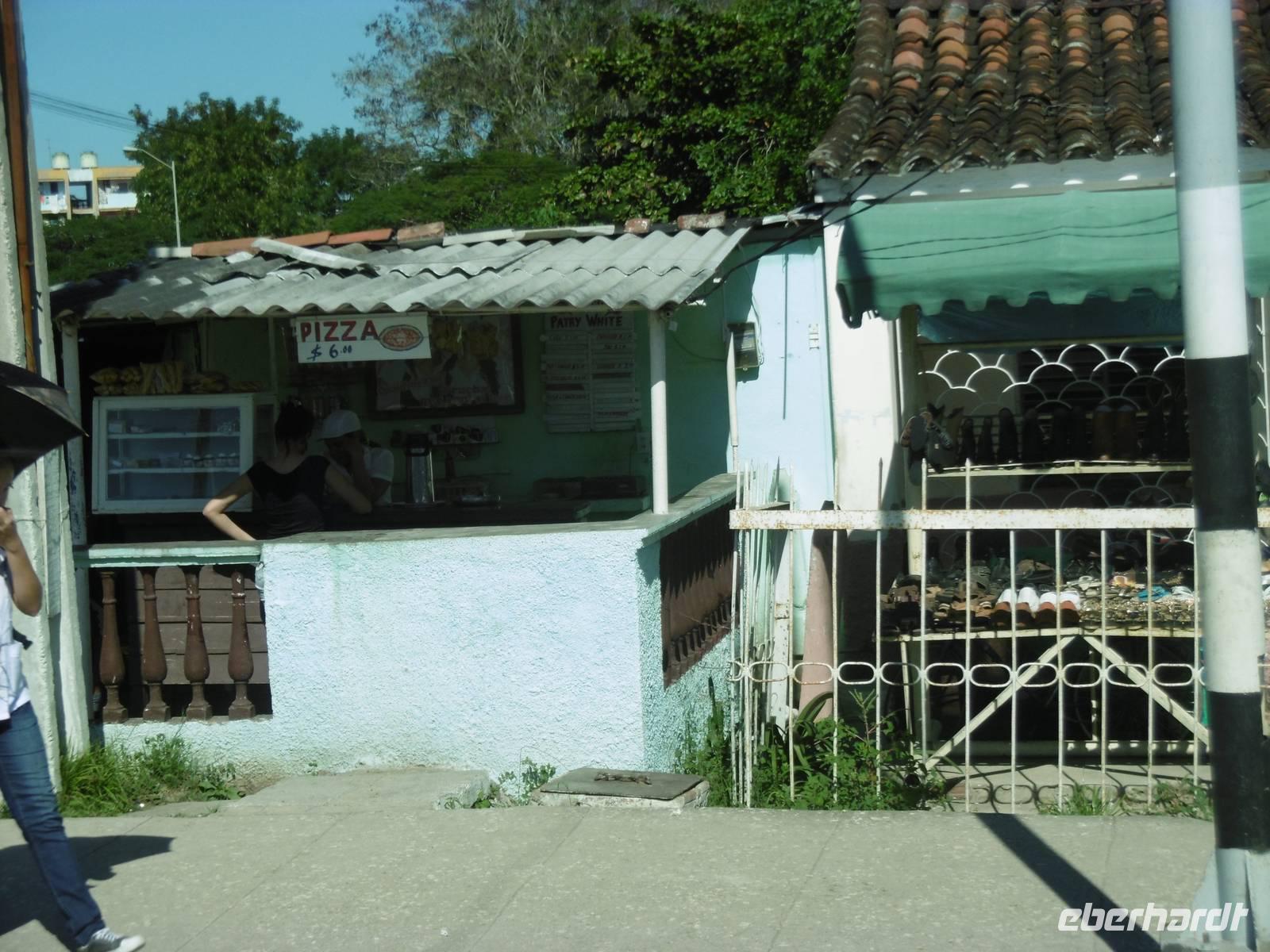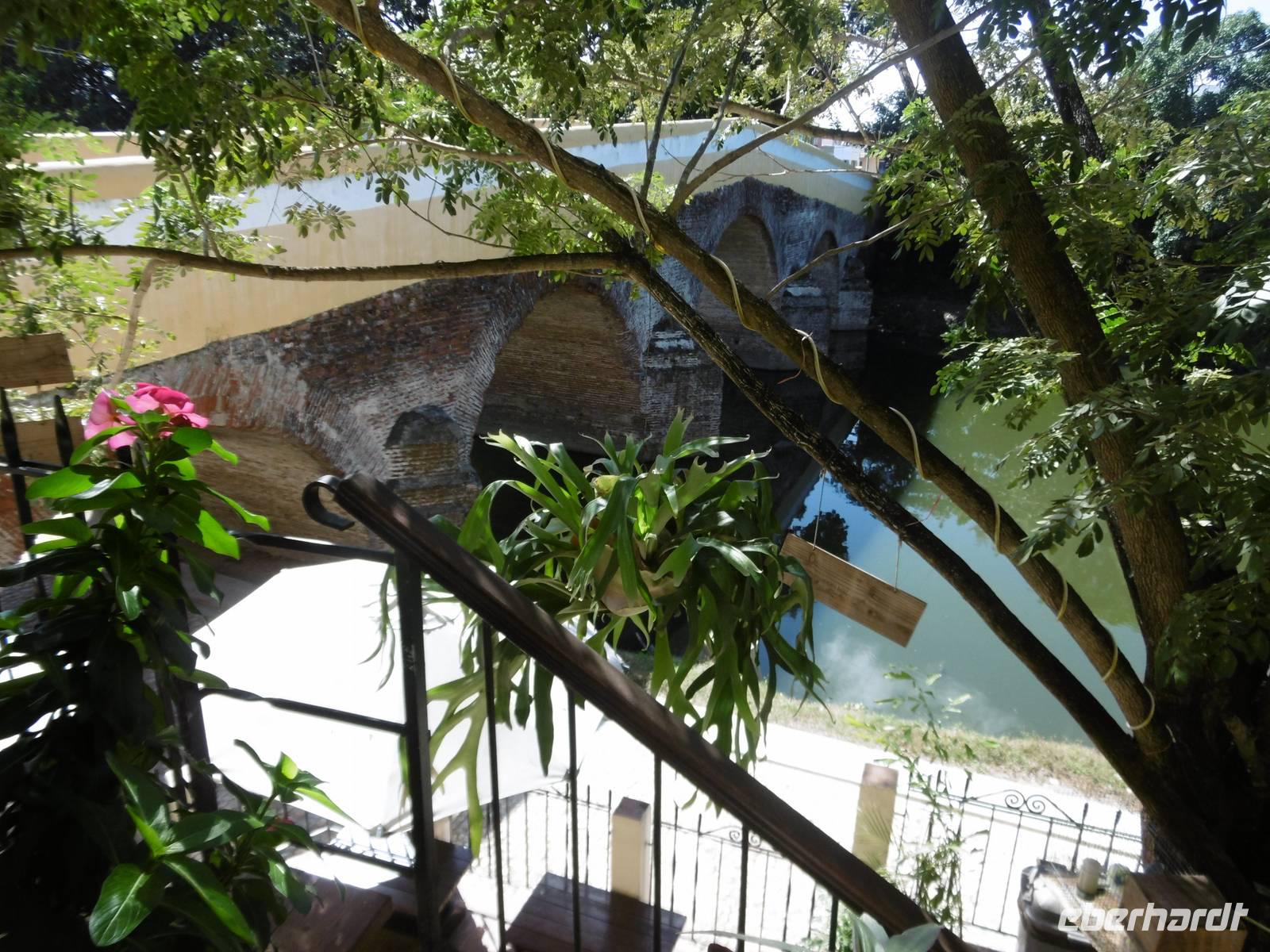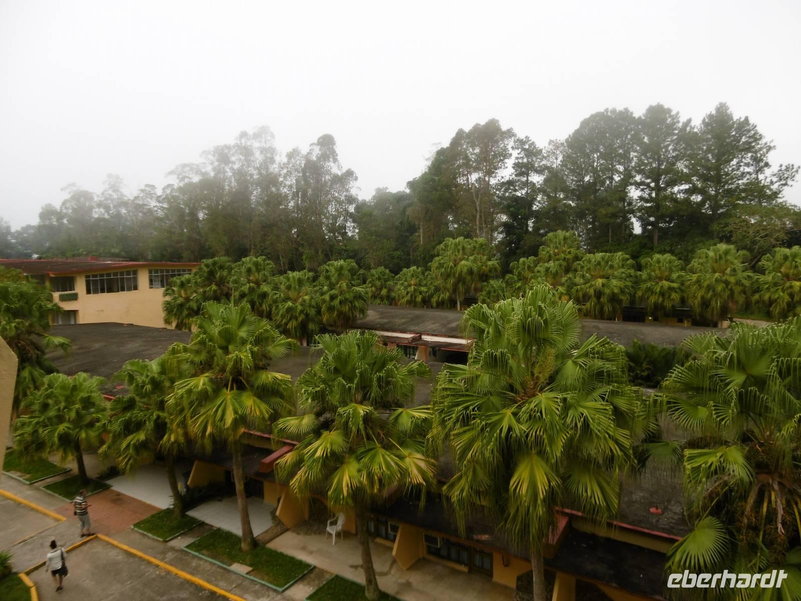 Leider müssen wir das tolle Camagüey schon verlassen, und so starten wir aus Ostkuba wieder gen Westen. Den Vormittag vertreiben wir uns mit einem Trinkquizspiel und durchqueren interessante Orte wie Florida und Ciego de Avila. Sancti Spiritus begrüßt uns mit viel Sonne. Wir spazieren durch die hübschen Straßen mit den buntgestrichenen Bauten. Hier gibt es viele interessante Läden, wie zum Beispiel einen An-und Verkauf, Lebensmittelladen und so weiter zu entdecken. Wir schauen uns die Kathedrale an und und gehen dann weiter in Richtund Puente Yayabo, der einzigen Bogenbrücke von Kuba. Im gleichnamigen Restaurant gibt es heute Shrimps. Anschließend haben wir Freizeit zum Bummeln oder Cafetrinken. Im Hotel Rijo gibt es eine tolle Aussichtsterasse. Am frühen Nachmittag fahren wir weiter und gelangen in hügeligeres Gelände der Sierra Escambray und durchqueren das Städtchen Banao mit dem tollen Friedhof. Unser Ziel ist das Anwesen des ehemaligen Zuckerrohrbarons und dessen Sklaventurms. Um diesem Turm rankt sich eine Legende zweier Brüder, die um die Gunst der gleichen Frau kämpften. Die Mutigen unter uns steigen auf den Turm und haben von Oben einen tollen Ausblick. Selbstgestickte Tischdecken, Wendepuppen und Schmuck aus Naturmaterialien kann man hier erwerben. Nachdem wir am Kolonialhaus die Zuckerrohrpresse angeschaut hatten müssen wir auch weiter, denn es beginnt langsam dunkel zu werden. Nach Trinidad beginnt die gefährliche Serpentinenstraße hoch nach Topes de Collantes - ein Kunststück für unseren Busfahrer und geschmückt mit vielen Schlaglöchern und tödlichen Kurven. Doch wir erreichen das Hotel Los Helechos noch vor Sonnenuntergang. Hier übernachten wir heute ganz urig mitten im Regenwald umgeben von vielen Urwaldlauten.