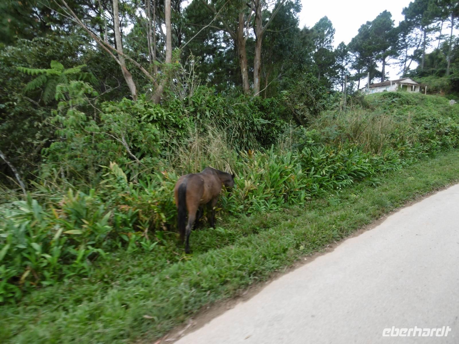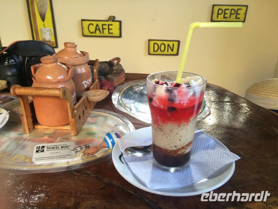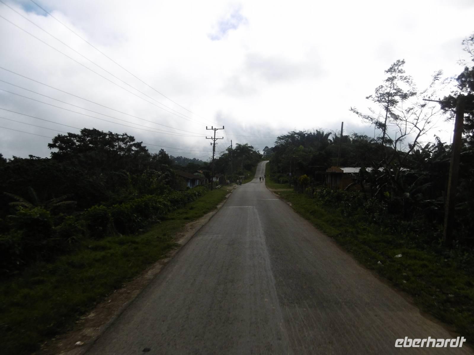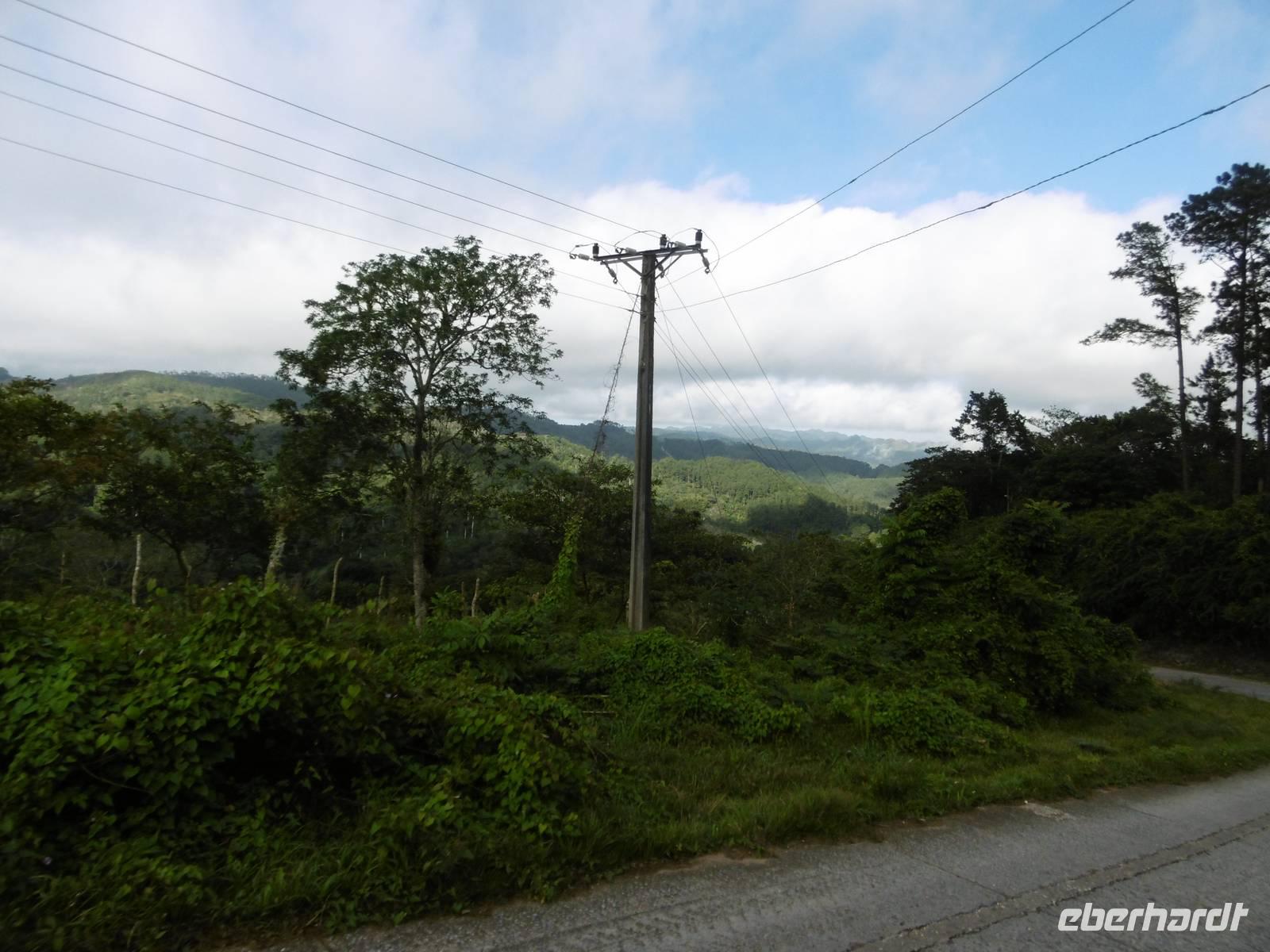 Leider müssen wir das tolle Camagüey schon verlassen, und so starten wir aus Ostkuba wieder gen Westen. Den Vormittag vertreiben wir uns mit einem Trinkquizspiel und durchqueren interessante Orte wie Florida und Ciego de Avila. Sancti Spiritus begrüßt uns mit viel Sonne. Wir spazieren durch die hübschen Straßen mit den buntgestrichenen Bauten. Hier gibt es viele interessante Läden, wie zum Beispiel einen An-und Verkauf, Lebensmittelladen und so weiter zu entdecken. Wir schauen uns die Kathedrale an und und gehen dann weiter in Richtund Puente Yayabo, der einzigen Bogenbrücke von Kuba. Im gleichnamigen Restaurant gibt es heute Shrimps. Anschließend haben wir Freizeit zum Bummeln oder Cafetrinken. Im Hotel Rijo gibt es eine tolle Aussichtsterasse. Am frühen Nachmittag fahren wir weiter und gelangen in hügeligeres Gelände der Sierra Escambray und durchqueren das Städtchen Banao mit dem tollen Friedhof. Unser Ziel ist das Anwesen des ehemaligen Zuckerrohrbarons und dessen Sklaventurms. Um diesem Turm rankt sich eine Legende zweier Brüder, die um die Gunst der gleichen Frau kämpften. Die Mutigen unter uns steigen auf den Turm und haben von Oben einen tollen Ausblick. Selbstgestickte Tischdecken, Wendepuppen und Schmuck aus Naturmaterialien kann man hier erwerben. Nachdem wir am Kolonialhaus die Zuckerrohrpresse angeschaut hatten müssen wir auch weiter, denn es beginnt langsam dunkel zu werden. Nach Trinidad beginnt die gefährliche Serpentinenstraße hoch nach Topes de Collantes - ein Kunststück für unseren Busfahrer und geschmückt mit vielen Schlaglöchern und tödlichen Kurven. Doch wir erreichen das Hotel Los Helechos noch vor Sonnenuntergang. Hier übernachten wir heute ganz urig mitten im Regenwald umgeben von vielen Urwaldlauten.