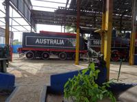 Um 09:30 sind wir wieder froh und munter und rollen los zum Badehotel Playa Cayo Santa Maria. Die Fahrt nimmt einige Zeit in Anspruch und so unterbrechen wir sie einmal an einer Raststätte, die bekannt ist für die gute Pina Colada, zum zweiten Mal halten wir an der früheren Zuckerfabrik Australia, jetzt ein kleines Museum. Mit einer Dampflok fahren wir ein Stück in die Felder hinein, sehen einige der typischen Kulturen Kubas und können einem Palmkletterer bei der Arbeit zusehen. Nur mit einem Seil steigt er auf die Königspalmen, um deren Früchte, die als Viehfutter dienen, abzuschneiden.