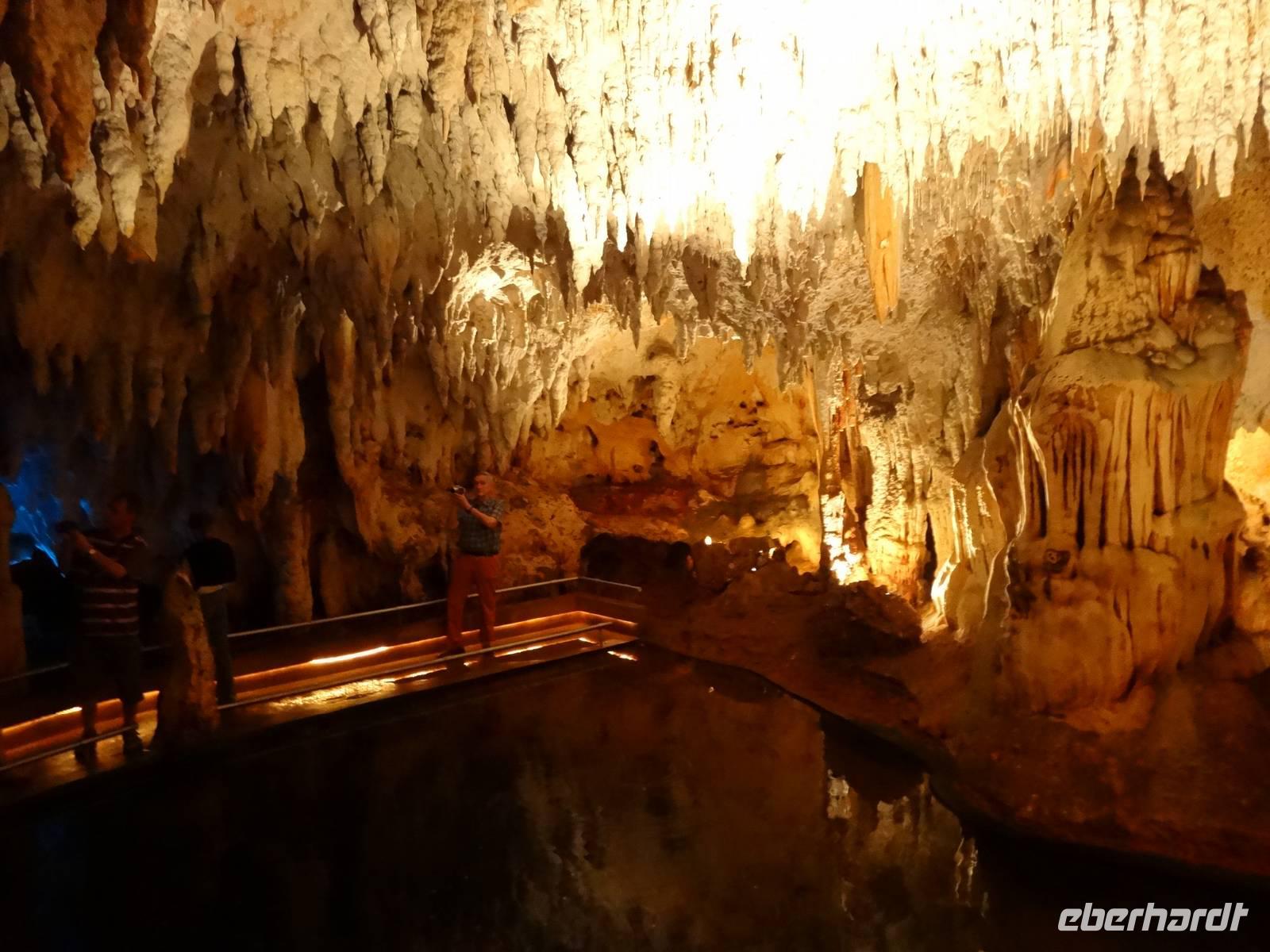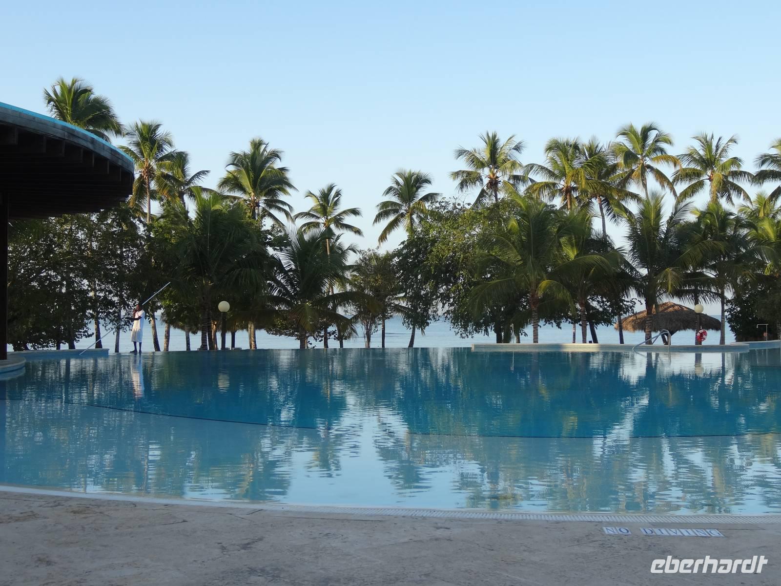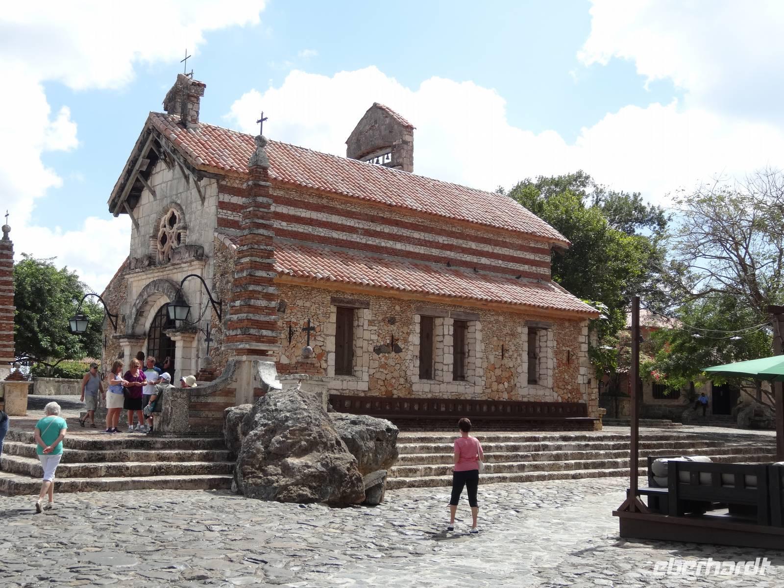 Nach einem reichhaltigen Frühstück mit tropischen Säften und Früchten erwartet uns der einheimische Reiseleiter José, der uns heute Vormittag einen Teil seiner Insel zeigen wird. Unser Ausflug beginnt mit dem Besuch der Tropfsteinhöhle Cueva de las Maravillas, die mit faszinierender Beleuchtung und unglaublicher Akustik beeindruckt. Bei einem Rundgang genossen wir die kühle Ruhe dieser unterirdischen Welt aus Stalagmiten und Stalagtiten, die durch ihre fantasievollen Gebilde eine mystische Geschichte erzählten. Weiter ging die Fahrt zum Künstlerdorf Altos de Chavon, welches einer mediterranen Siedlung aus dem 16. Jahrhundert nachempfunden wurde. Auf dem Weg dorthin fahren wir durch das Resort Casa de Campo, einem Luxusdistrikt, das über fünf Golfplätze, dutzende Luxusvillen, einen Yachthafen und privaten Flugplatz verfügt. Nach einem kleinen Spaziergang durch die engen Gassen von Altos de Chavon und der Besichtigung des Amphitheaters traten wir die Rückfahrt zu unserem Resort an, wo uns 13:30 Uhr ein köstliches Mittagsbuffet erwartete. Gegrilltes Hähnchen, frittierte Yuca, gebackene Banane, Fischsuppe und vieles mehr ließen wir uns schmecken. Den Rest des Tages nutzten wir zum Schwimmen, Sonnen und Entspannen. Der hoteleigene Strand und die zahlreichen Bars ließen keine Wünsche offen.