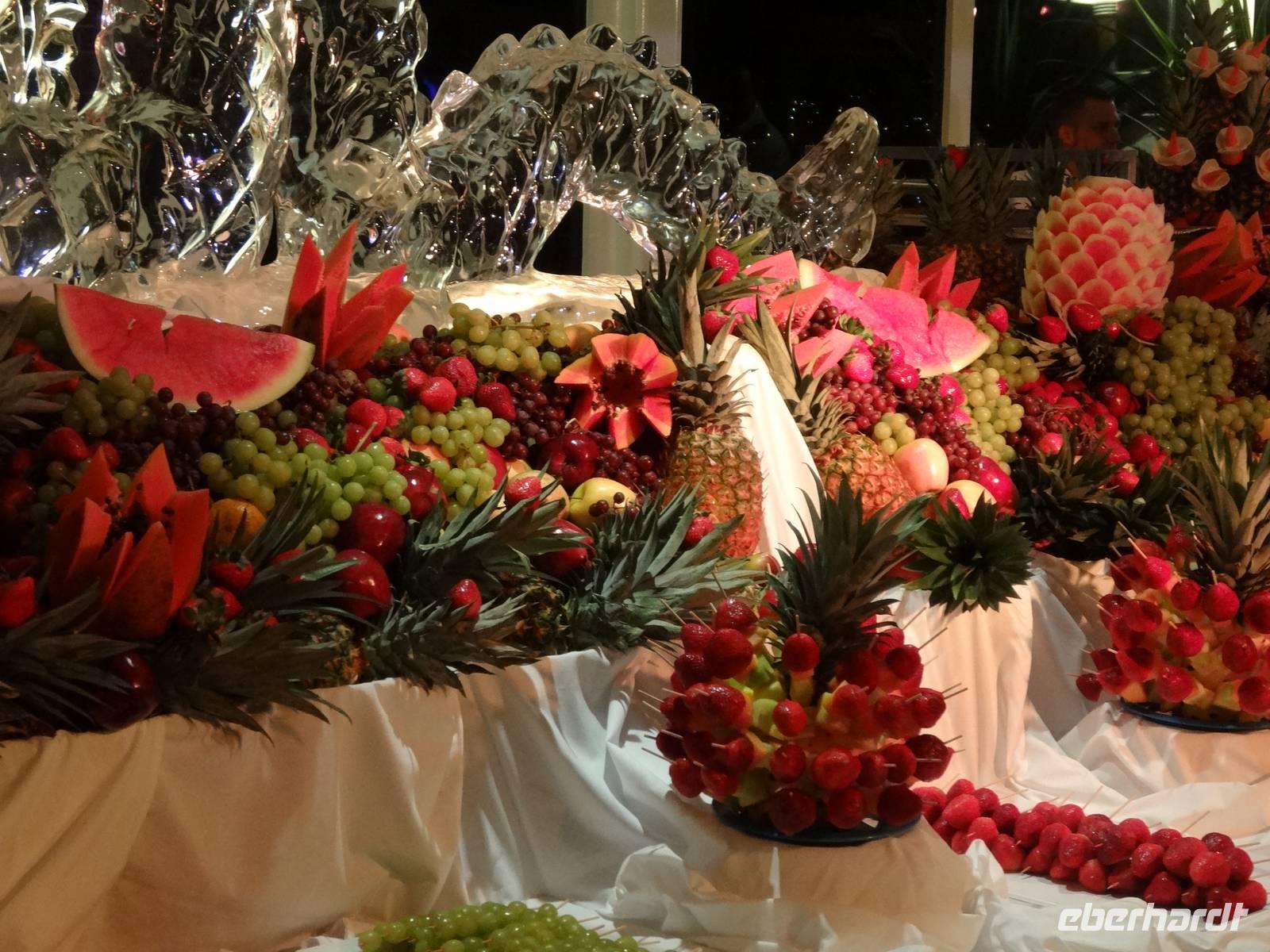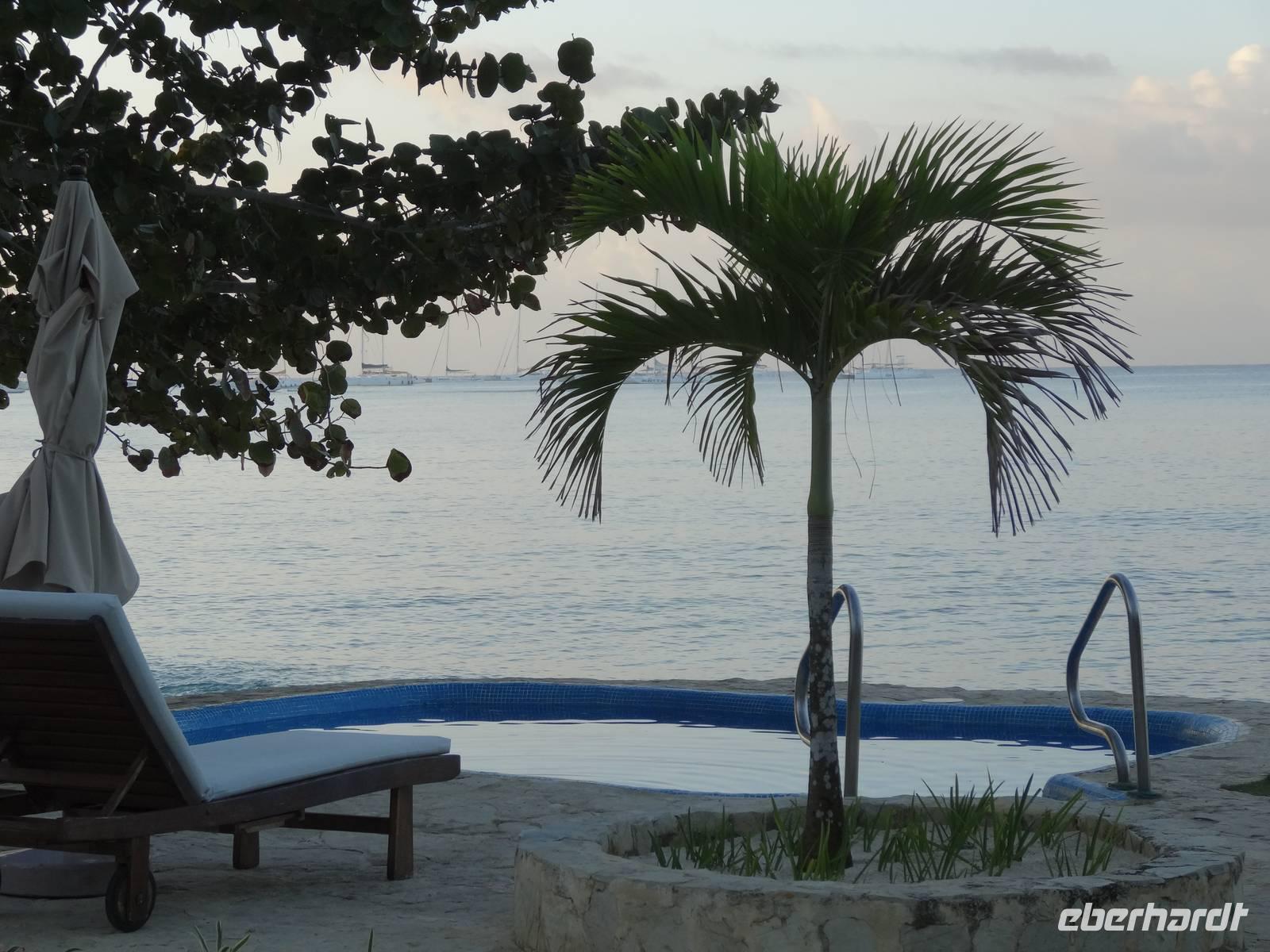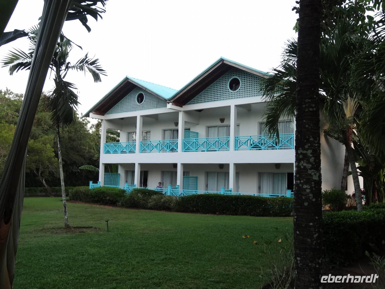 Nach einem kleinen Erfrischungssekt machten wir uns an den Check-In, bezogen unsere großräumigen Zimmer in den verschiedenen Gebäudekomplexen der Anlage und trafen uns dann zum Abendessen im Hauptrestaurant „World Café und ließen uns das karibische Buffet schmecken und genossen den ersten Abend bei karibischen Temperaturen.
