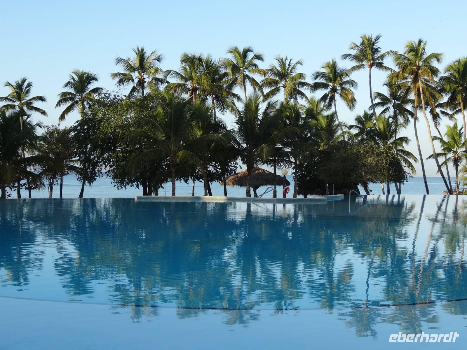 Früh am Morgen wurden wir per Transfer zum Flughafen nach Berlin-Tegel gebracht. Gestern wurden 50 Jahre deutsch-französische Freundschaft in Berlin gefeiert. Gemeinsam mit einem Teil der französischen Abgeordneten traten wir unseren ersten Schritt in Richtung Karibik - den Flug nach Paris - an und nahmen im hinteren Drittel des Flugzeuges Platz, da 2/3 der Maschine für unsere französischen Freunde zur Business Class umfunktioniert worden war. In Punta Cana landeten wir dann ca. 8,5 Stunden später gegen 18.00 Uhr Ortszeit und wurden von angenehmer tropischer Wärme empfangen. Die Passkontrolle verlief zügig und so waren wir nach einer Stunde Fahrt gegen 20.00 Uhr in unserem 5-Sterne Hotel „Dreams La Romana Resort" in Bayahibe nahe La Romana.