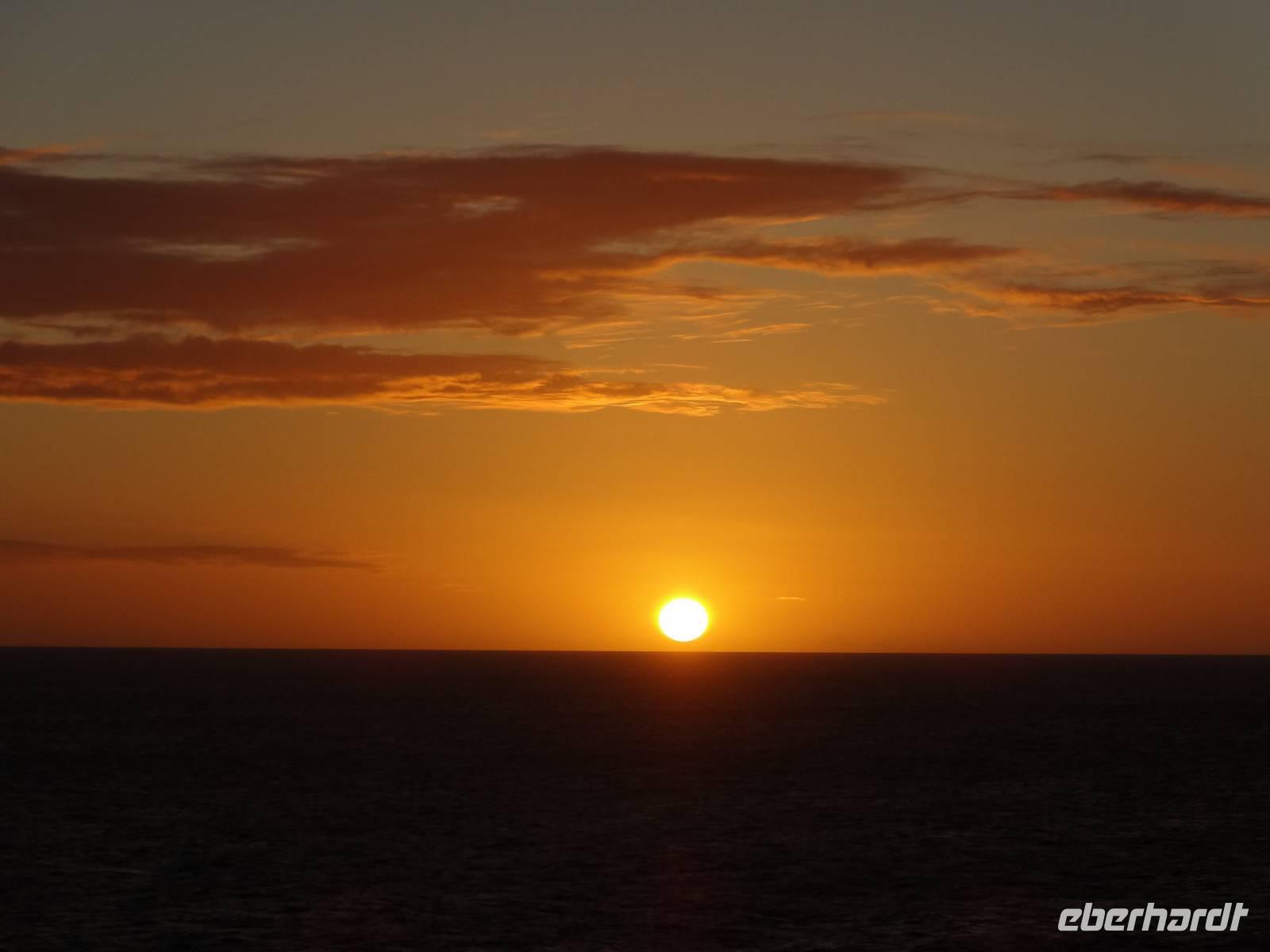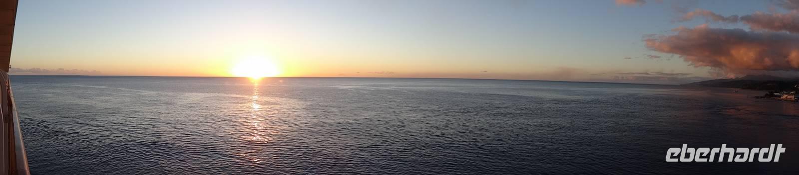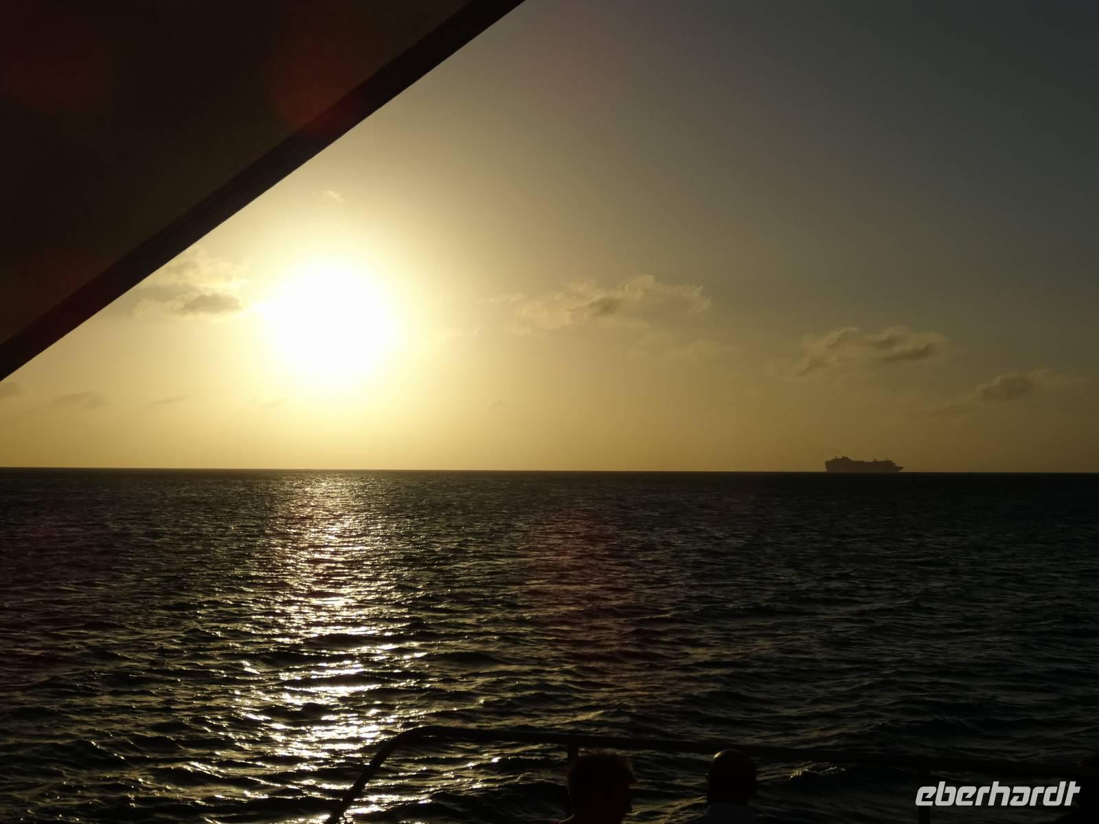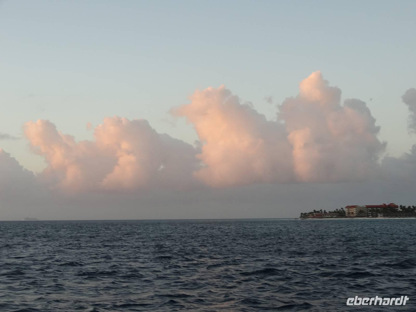 Nach einem ausgiebigen Frühstück und freien Vormittag checkten wir 11:00 Uhr aus und fuhren Richtung Hafen nach La Romana. Auf dem Weg hielten wir an einer schönen Zigarrenfabrik, wo uns die Herstellung der handgerollten Zigarren typisch dominikanischer Art genau gezeigt wurde und im Anschluss die Möglichkeit zum Kauf bestand.Wir waren nahezu die ersten „neuen" Gäste dieser Kreuzfahrt, die bereits am Schiff waren. Bevor der Check-In gegen 13.00 Uhr öffnete, füllten wir in Ruhe unsere Ausreisekarten aus und alsbald wurden wir herzlich an Bord der „Mein Schiff 1" begrüßt. Nach einem leckeren Mittagsbuffet konnten wir 15.00 Uhr unsere Kabinen beziehen, die über Dusche/WC, Föhn, TV, Minibar, Telefon, Safe und Espresso-Maschine verfügen. Bei einem ersten Rundgang bestaunten wir unser „schwimmendes Hotel" und genossen den Nachmittag an Bord. Nach dem Abendessen erfolgte die Seenotrettungsübung, die sehr geordnet und professionell verlief. Im Anschluss daran trafen wir uns auf dem Pooldeck, um einen gemeinsamen Aperitif in Form eines kühlen Sekts zu genießen und auf die gemeinsame kommende Fahrt anzustoßen. Dann hieß es in musikalischer Form „Herzlich Willkommen"! Bei einem kühlen Glas Prosecco begrüßte die Crew ihre Gäste und die Hymne „Große Freiheit" wurde live vorgestellt. Auch das Tanz- und Theaterensemble zeigte eine erste Kostprobe aus den bevorstehenden Shows. Nach diesem herrlichen Auftakt verbrachten wir dann unsere erste Nacht auf hoher und ruhiger See.