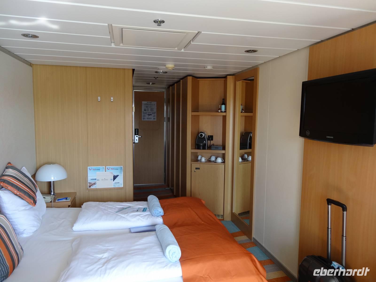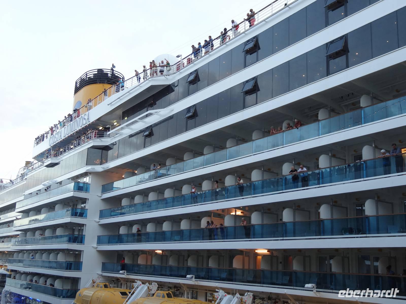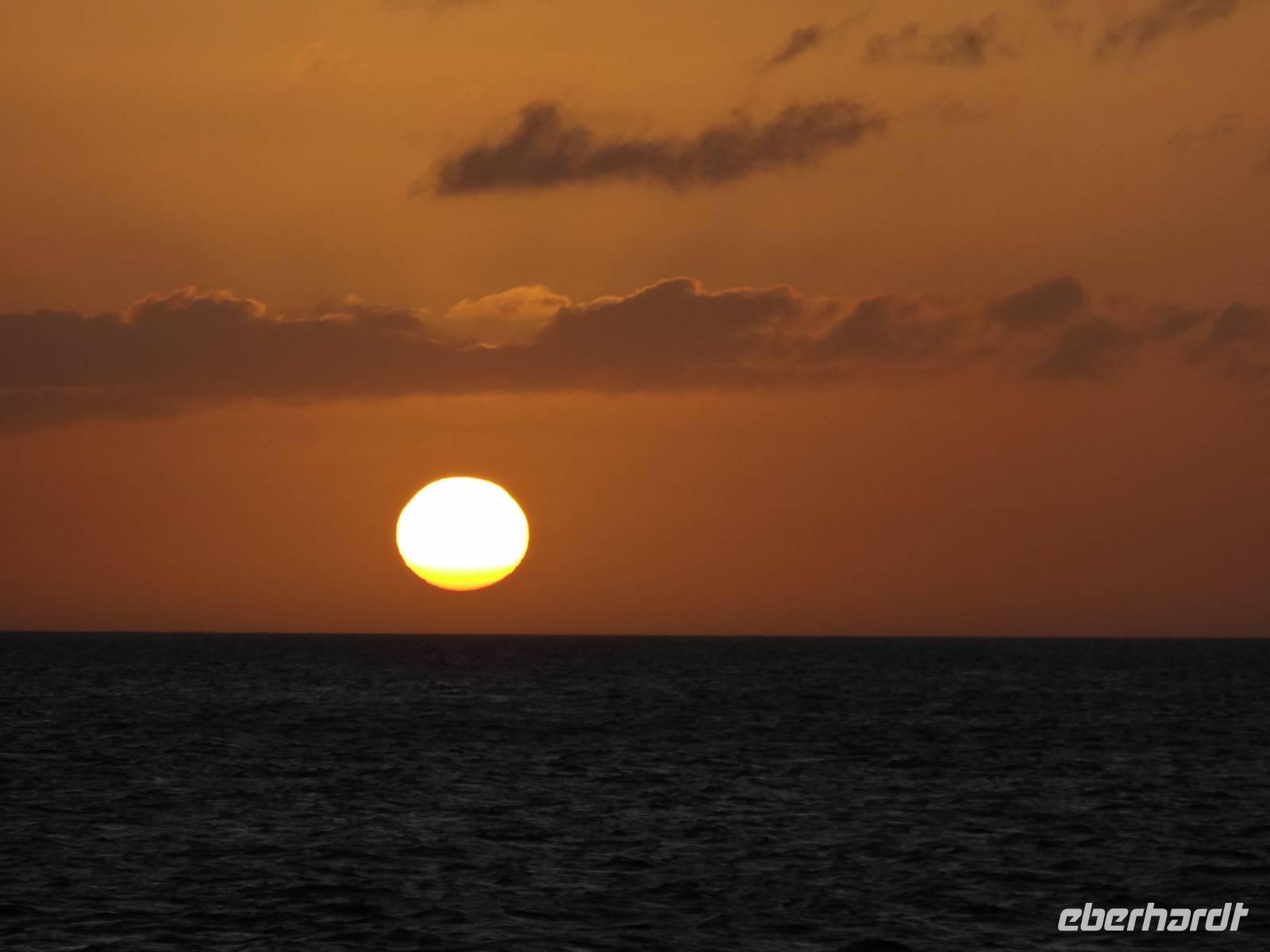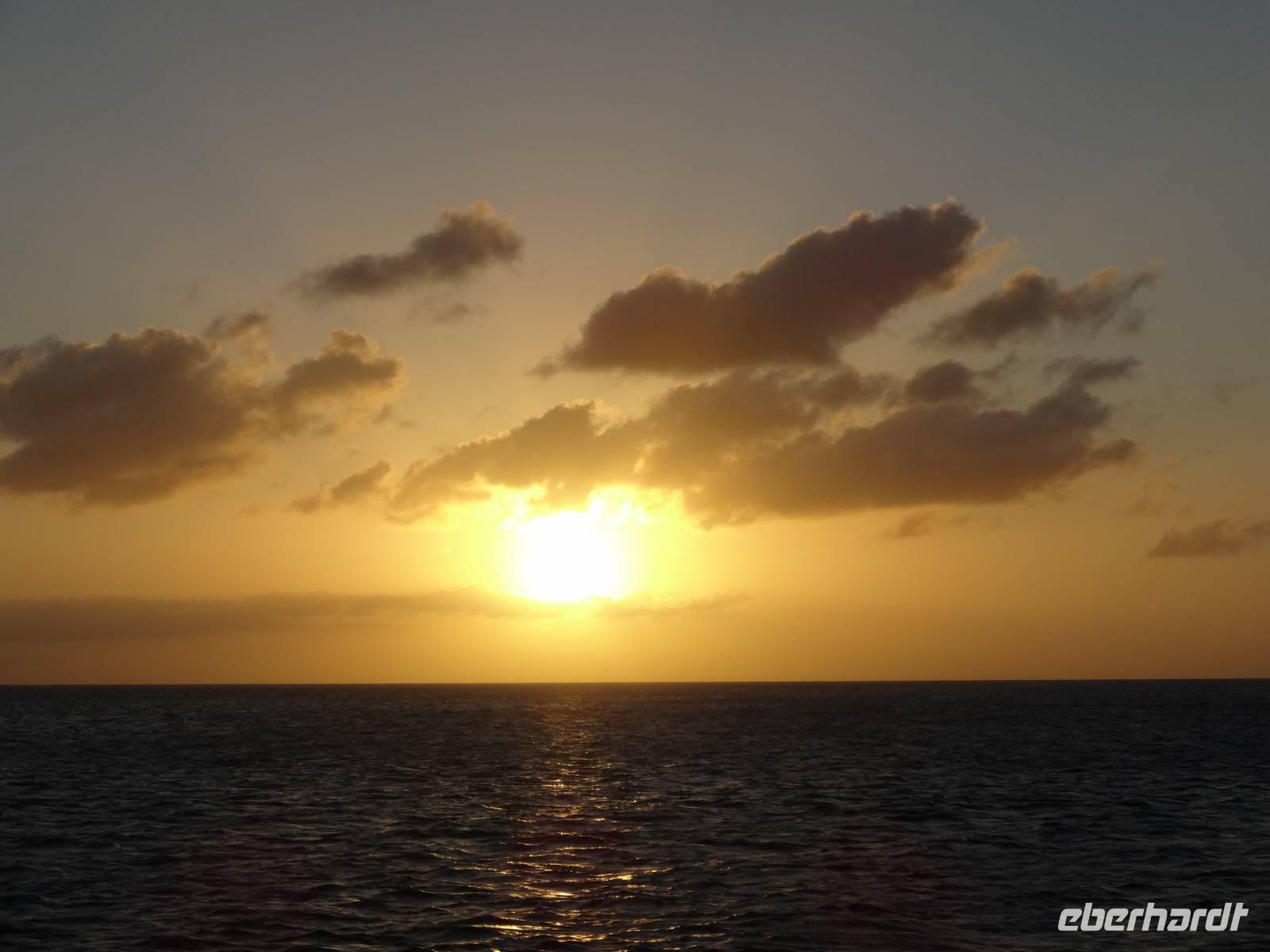 Nach einem ausgiebigen Frühstück und freien Vormittag checkten wir 11:00 Uhr aus und fuhren Richtung Hafen nach La Romana. Auf dem Weg hielten wir an einer schönen Zigarrenfabrik, wo uns die Herstellung der handgerollten Zigarren typisch dominikanischer Art genau gezeigt wurde und im Anschluss die Möglichkeit zum Kauf bestand.Wir waren nahezu die ersten „neuen" Gäste dieser Kreuzfahrt, die bereits am Schiff waren. Bevor der Check-In gegen 13.00 Uhr öffnete, füllten wir in Ruhe unsere Ausreisekarten aus und alsbald wurden wir herzlich an Bord der „Mein Schiff 1" begrüßt. Nach einem leckeren Mittagsbuffet konnten wir 15.00 Uhr unsere Kabinen beziehen, die über Dusche/WC, Föhn, TV, Minibar, Telefon, Safe und Espresso-Maschine verfügen. Bei einem ersten Rundgang bestaunten wir unser „schwimmendes Hotel" und genossen den Nachmittag an Bord. Nach dem Abendessen erfolgte die Seenotrettungsübung, die sehr geordnet und professionell verlief. Im Anschluss daran trafen wir uns auf dem Pooldeck, um einen gemeinsamen Aperitif in Form eines kühlen Sekts zu genießen und auf die gemeinsame kommende Fahrt anzustoßen. Dann hieß es in musikalischer Form „Herzlich Willkommen"! Bei einem kühlen Glas Prosecco begrüßte die Crew ihre Gäste und die Hymne „Große Freiheit" wurde live vorgestellt. Auch das Tanz- und Theaterensemble zeigte eine erste Kostprobe aus den bevorstehenden Shows. Nach diesem herrlichen Auftakt verbrachten wir dann unsere erste Nacht auf hoher und ruhiger See.