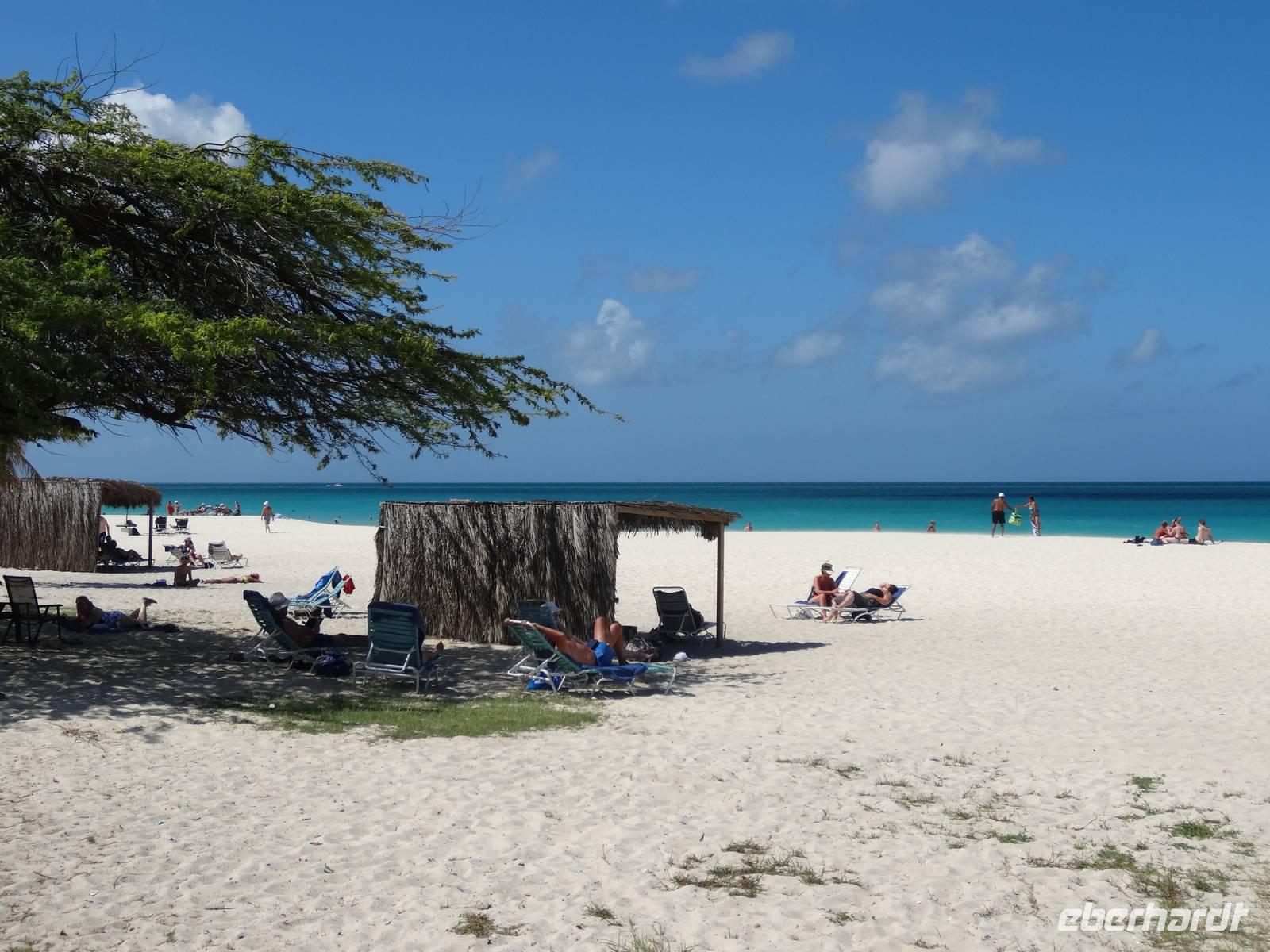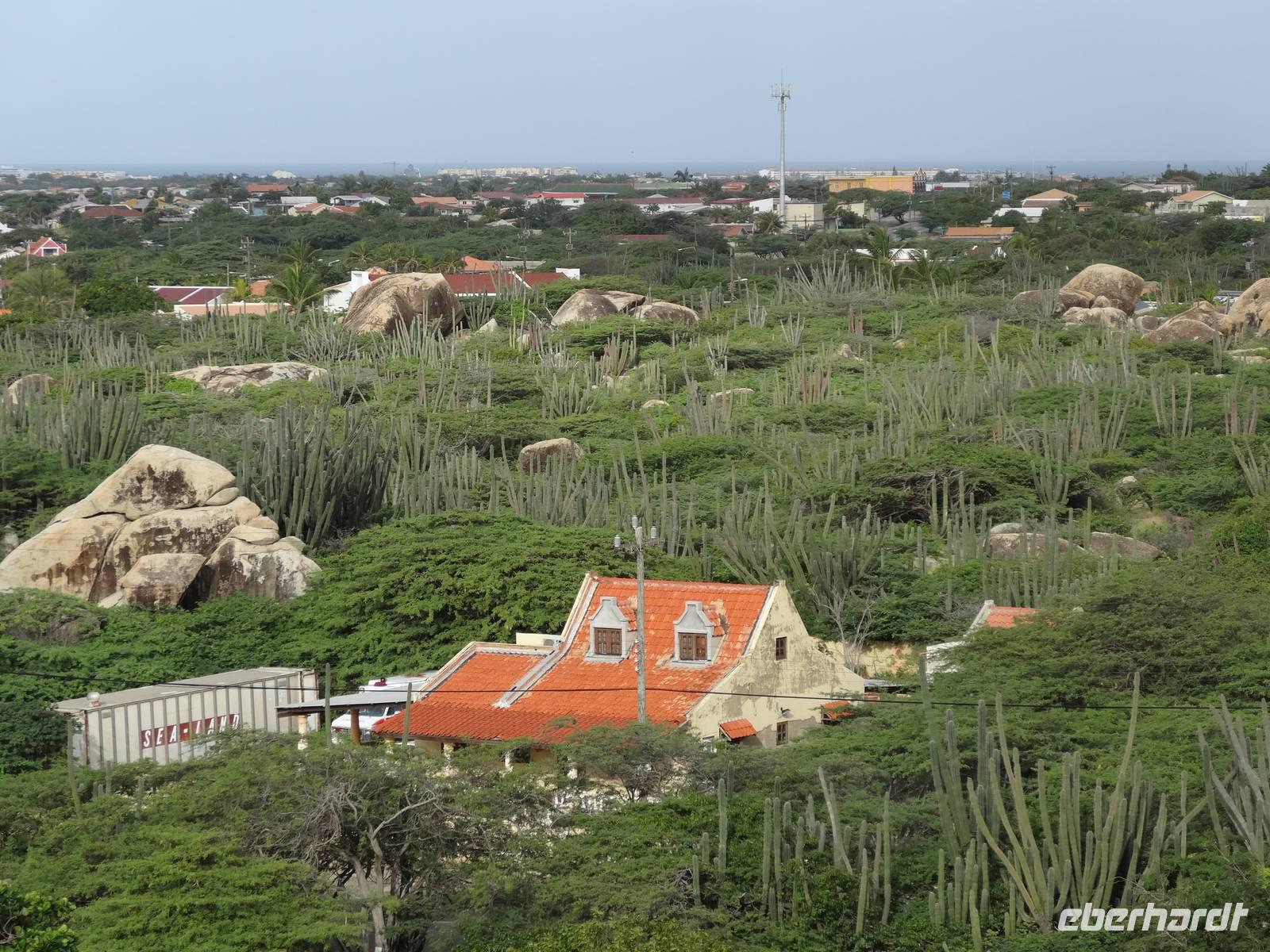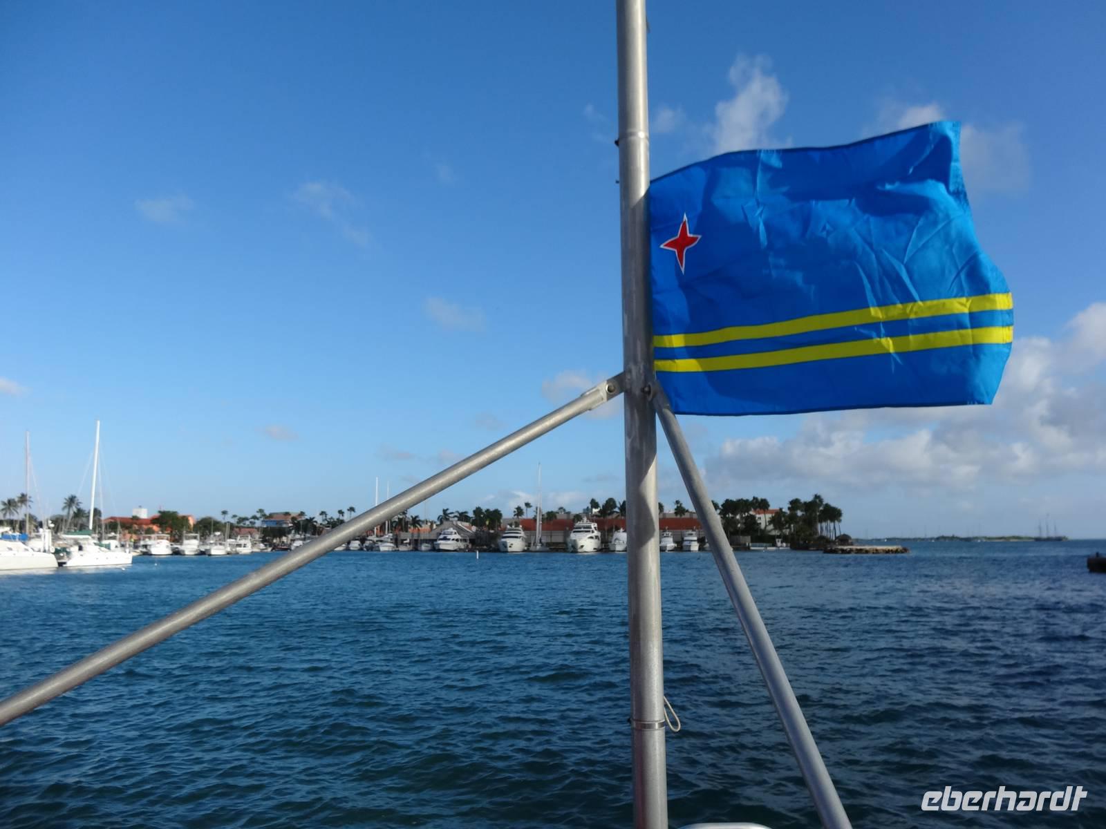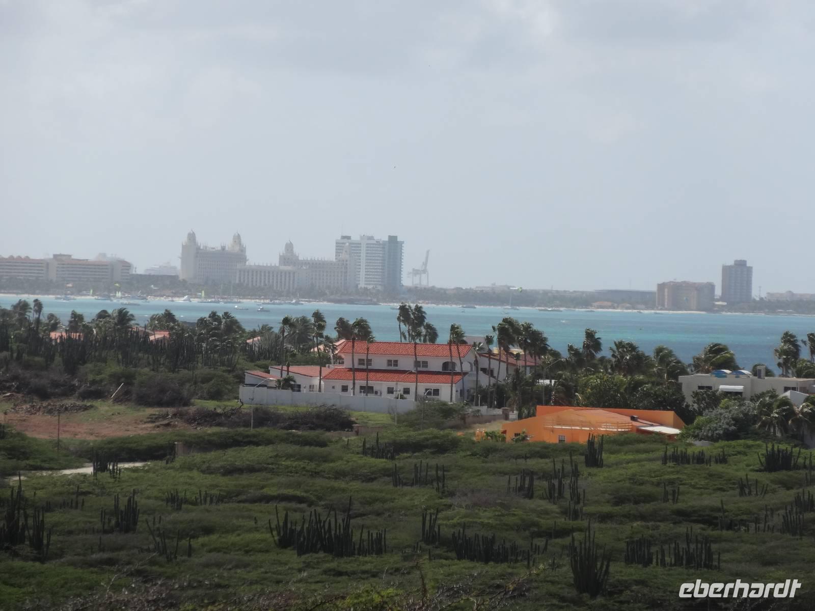 Aruba, eine der ABC-Inseln, zählt zu den schönsten der Karibik mit exotischer Fischpracht, üppigen Kakteen, den typischen Divi-Divi-Bäumen sowie fröhlichen Inselbewohnern. Am Vormittag lernten wir bei unserem Halbtagesausflug die kleine Insel gut kennen. Ich übersetzte alles ins Deutsche, was unser freundlicher, Englisch sprechender Driver Guide erzählte. Wir sahen das zauberhafte Oranjestad mit seinen farbenfrohen Kolonialbauten im alten holländischen Stil, die alte und die kleine neue „Natural Bridge", Naturbrücken aus Korallengestein, die Chapel Alto Vista sowie den Leuchtturm „California", Arubas Wahrzeichen. Die Rückfahrt erfolgte entlang der Küste am Palm Beach mit Fotostopp am Eagle Beach. Dieser Strand war nicht weit vom Schiff und entfernt und wir haben alle Gästen empfohlen, den Nachmittag an diesem traumhaften Karibik-Strand zu verbringen. Im hübschen Oranjestad waren leider die meisten Geschäfte geschlossen, da wir am sonnigen Sonntag vor Ort waren.