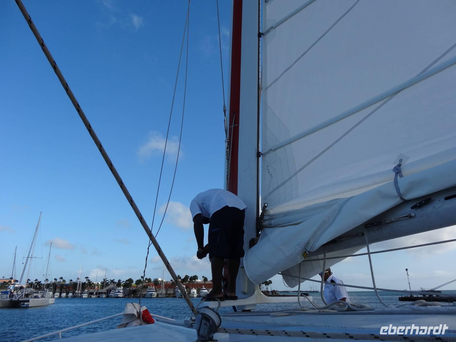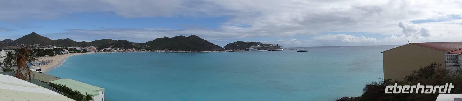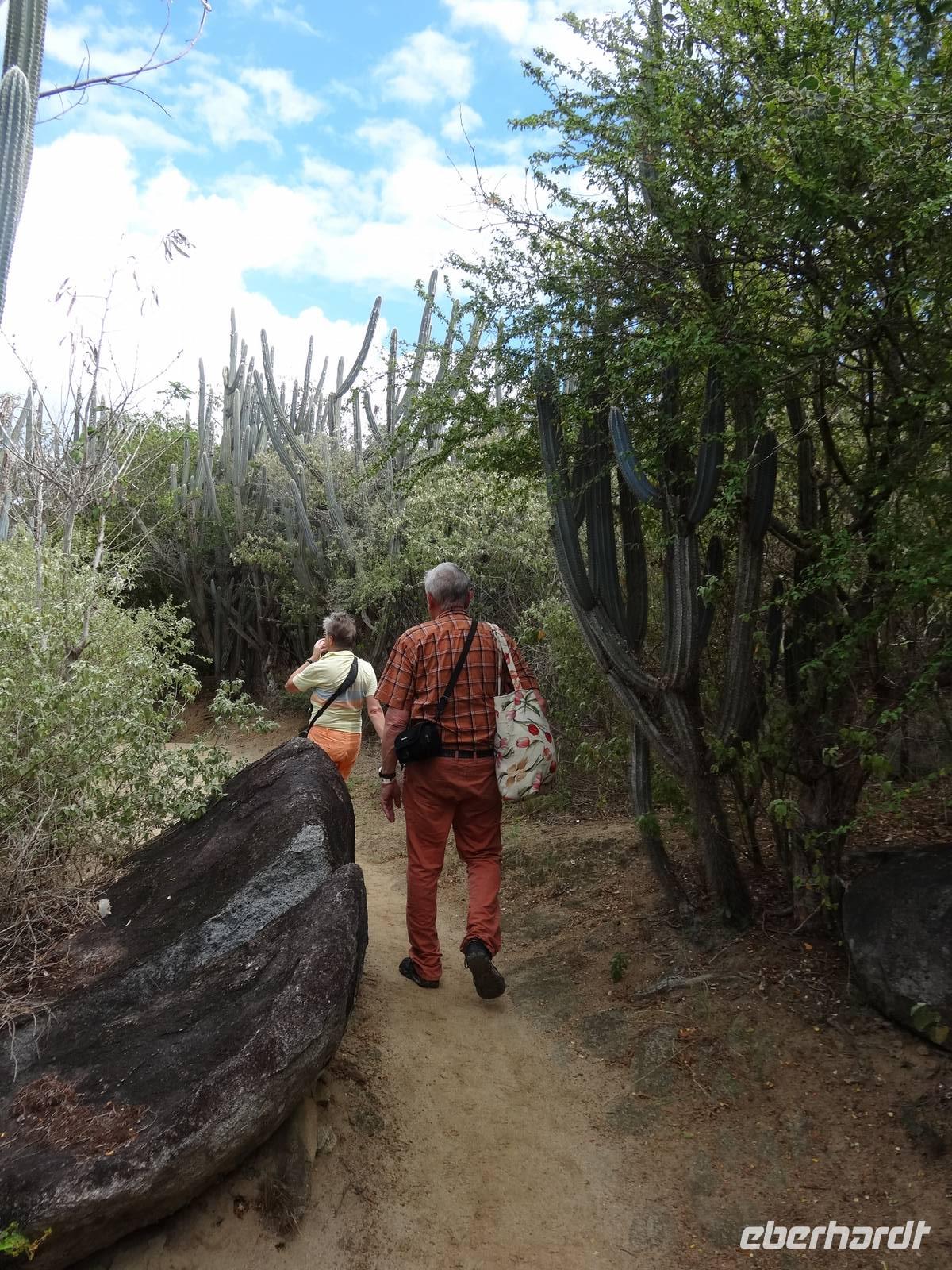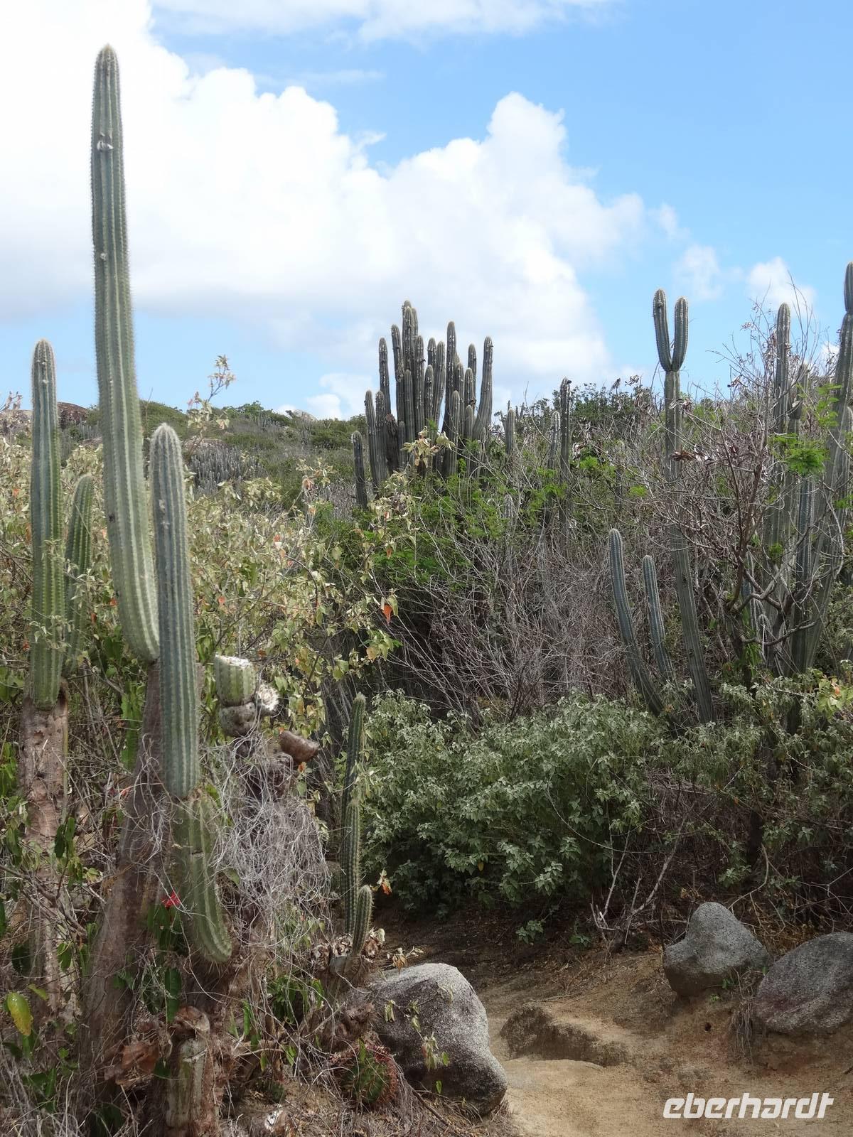 Aruba, eine der ABC-Inseln, zählt zu den schönsten der Karibik mit exotischer Fischpracht, üppigen Kakteen, den typischen Divi-Divi-Bäumen sowie fröhlichen Inselbewohnern. Am Vormittag lernten wir bei unserem Halbtagesausflug die kleine Insel gut kennen. Ich übersetzte alles ins Deutsche, was unser freundlicher, Englisch sprechender Driver Guide erzählte. Wir sahen das zauberhafte Oranjestad mit seinen farbenfrohen Kolonialbauten im alten holländischen Stil, die alte und die kleine neue „Natural Bridge", Naturbrücken aus Korallengestein, die Chapel Alto Vista sowie den Leuchtturm „California", Arubas Wahrzeichen. Die Rückfahrt erfolgte entlang der Küste am Palm Beach mit Fotostopp am Eagle Beach. Dieser Strand war nicht weit vom Schiff und entfernt und wir haben alle Gästen empfohlen, den Nachmittag an diesem traumhaften Karibik-Strand zu verbringen. Im hübschen Oranjestad waren leider die meisten Geschäfte geschlossen, da wir am sonnigen Sonntag vor Ort waren.