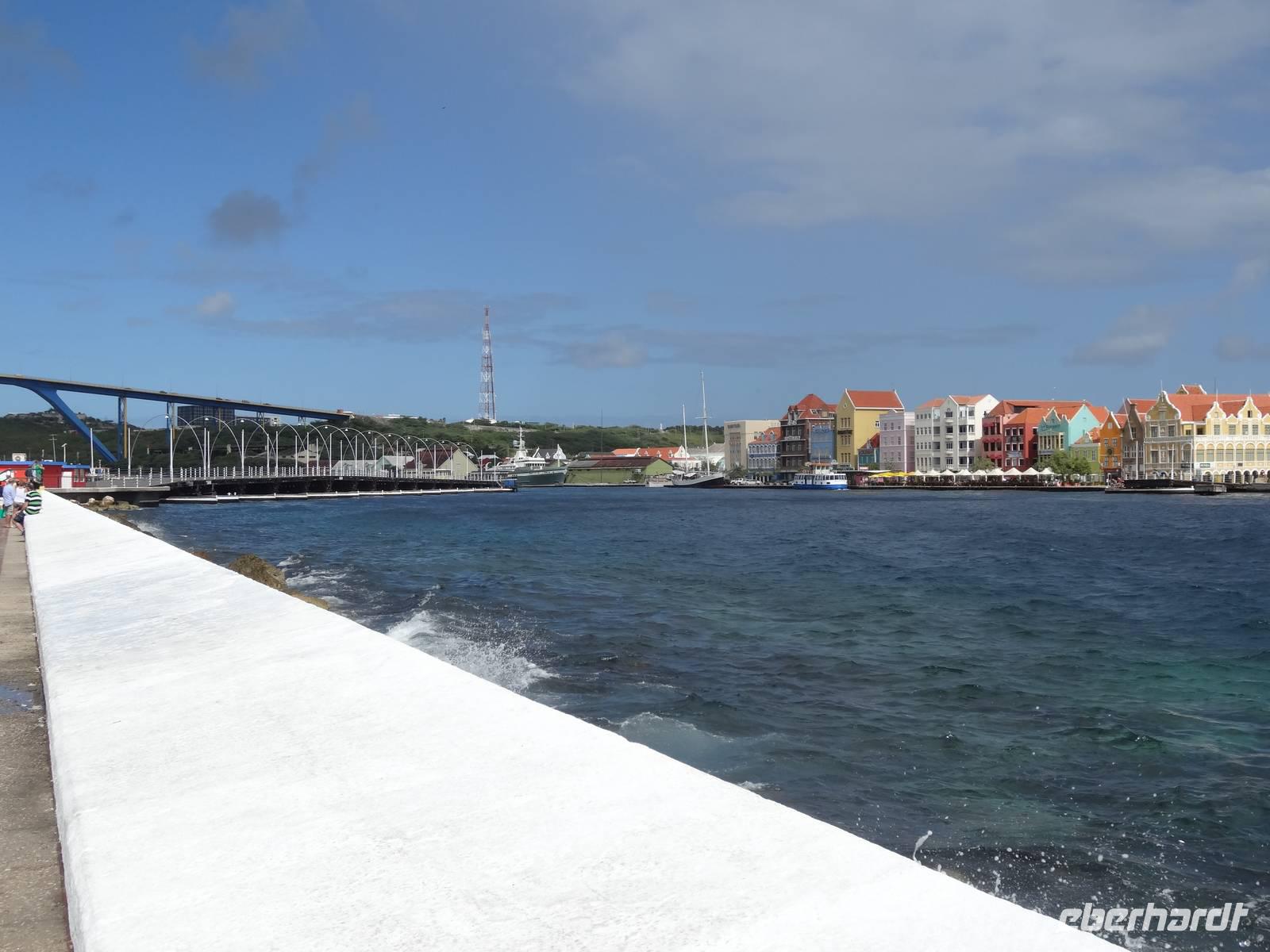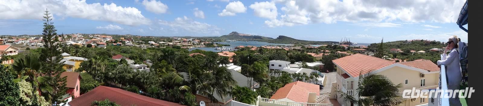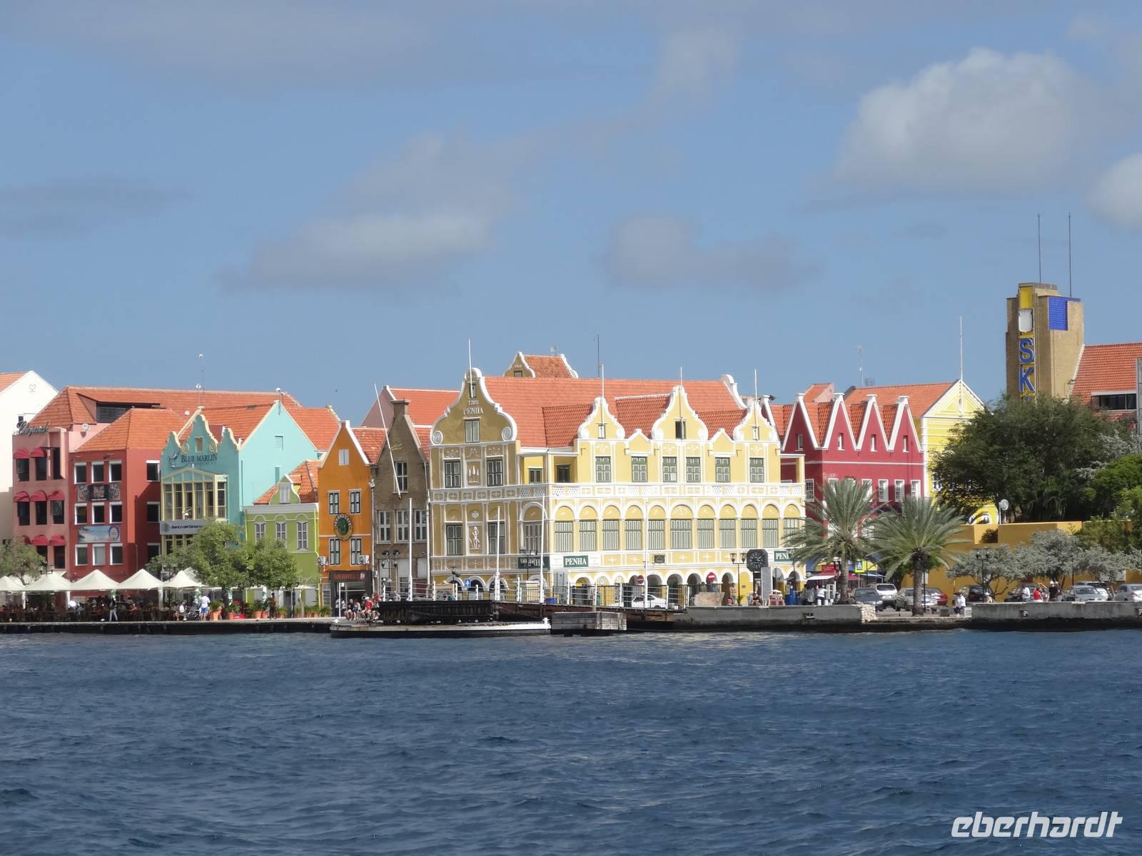 Die Hauptstadt Willemstad, unverkennbar holländischen Ursprungs, verzaubert mit farbenfrohen Giebelhäusern aus dem 18. Jahrhundert. Bei einer kurzweiligen Panoramafahrt am Vormittag führte die Fahrt vorbei an der Königin-Emma-Brücke und zu diversen Aussichtspunkten. Im Anschluss fuhren wir zur Chobolobo-Fabrik und erfuhren mehr über denberühmten Bitterlikör „Blue Curaçao" und konnten einige Kostproben dieses typischen Getränkes genießen.
