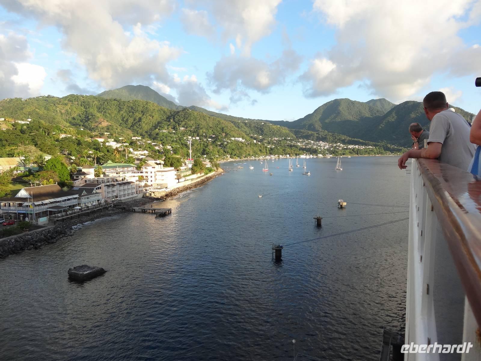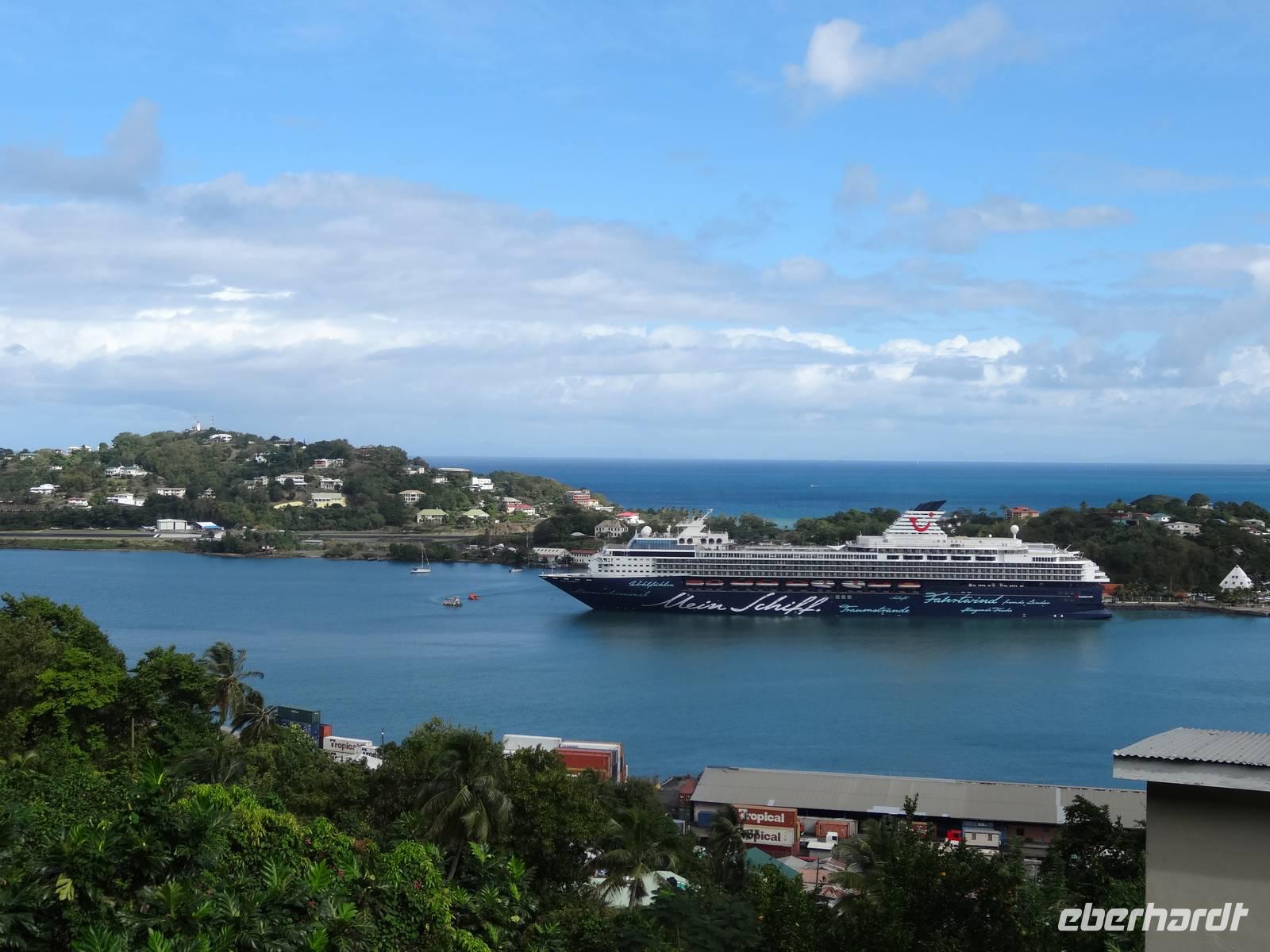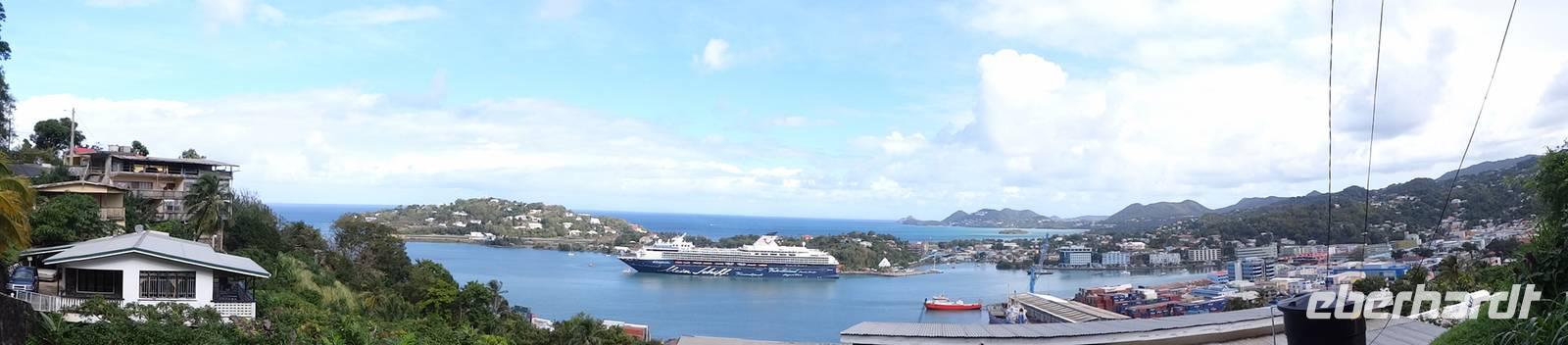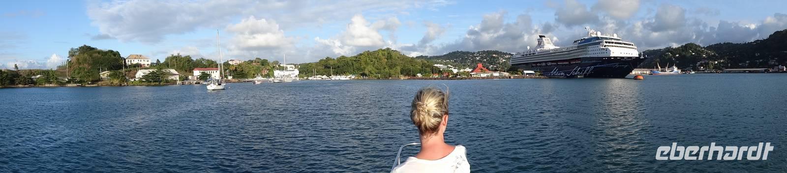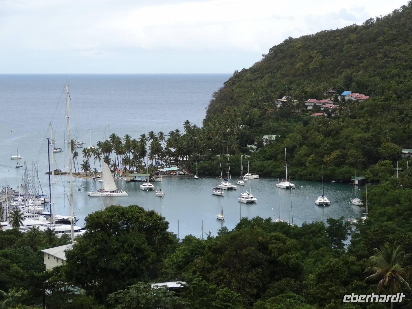 Über Nacht setzten wir nach St. Lucia über, wo wir pünktlich 7:00 Uhr unsere Anker vor der Hauptstadt Castries setzten. Bei unserem Eberhardt-Ganztagesausflug lernten wir die natürliche Vielfalt dieser karibischen Perle kennen. Zuerst fuhren wir zu einem besonderen Aussichtspunkt, von wo wir den Blick auf die berühmte Marigot-Bay genießen konnten.