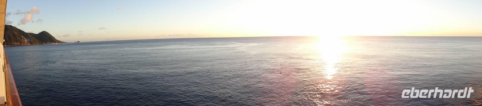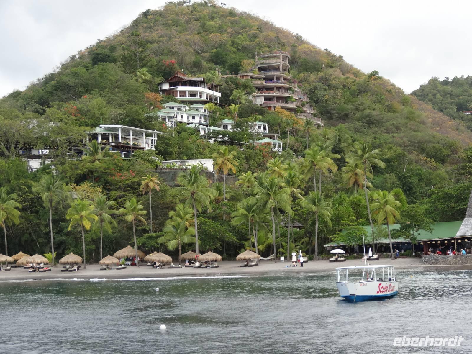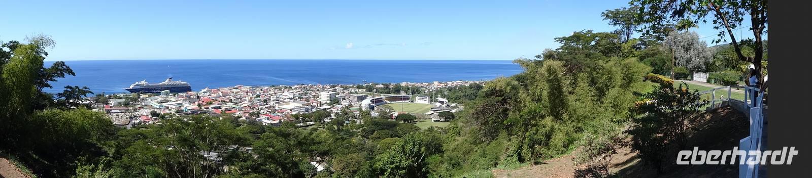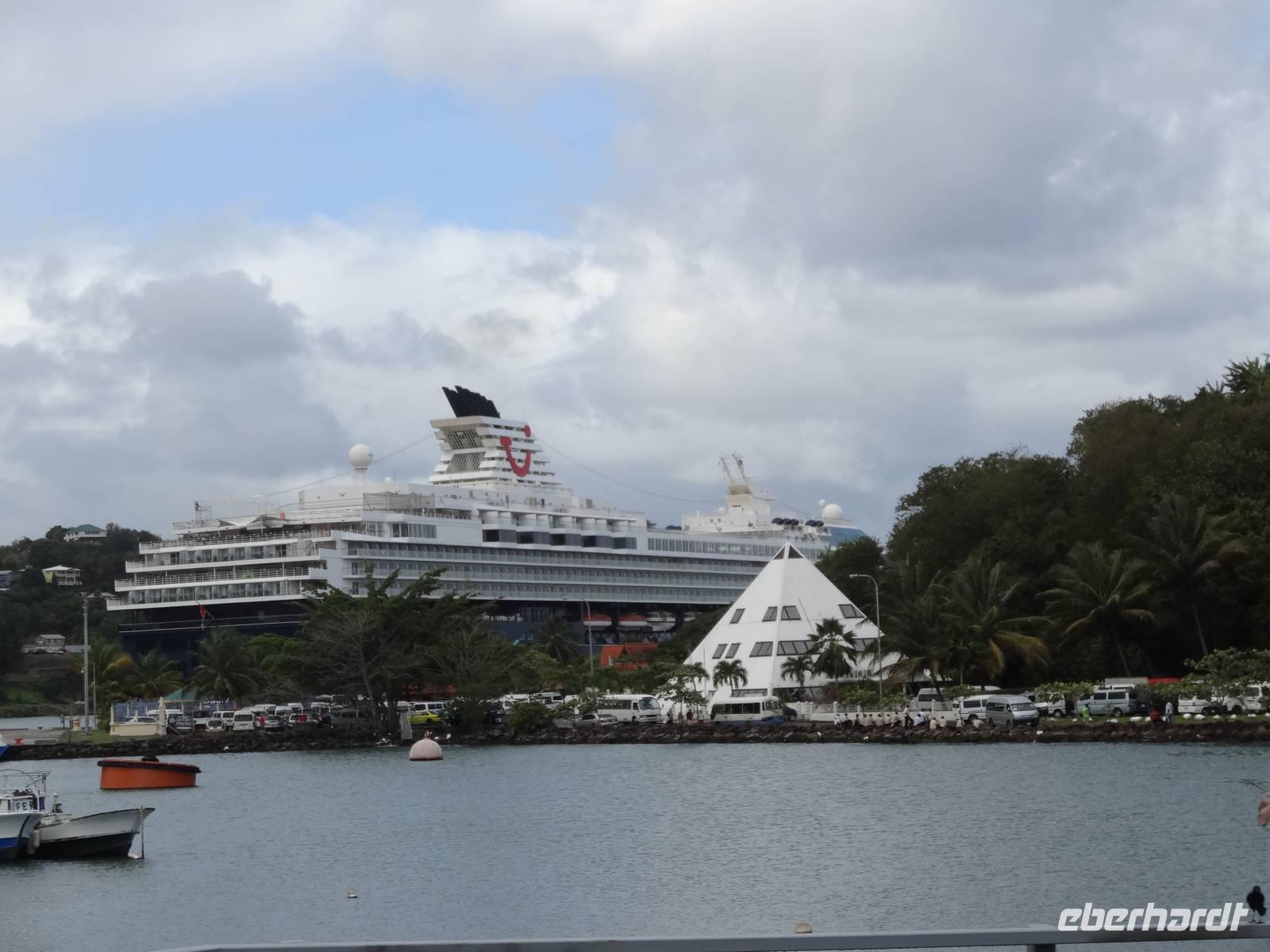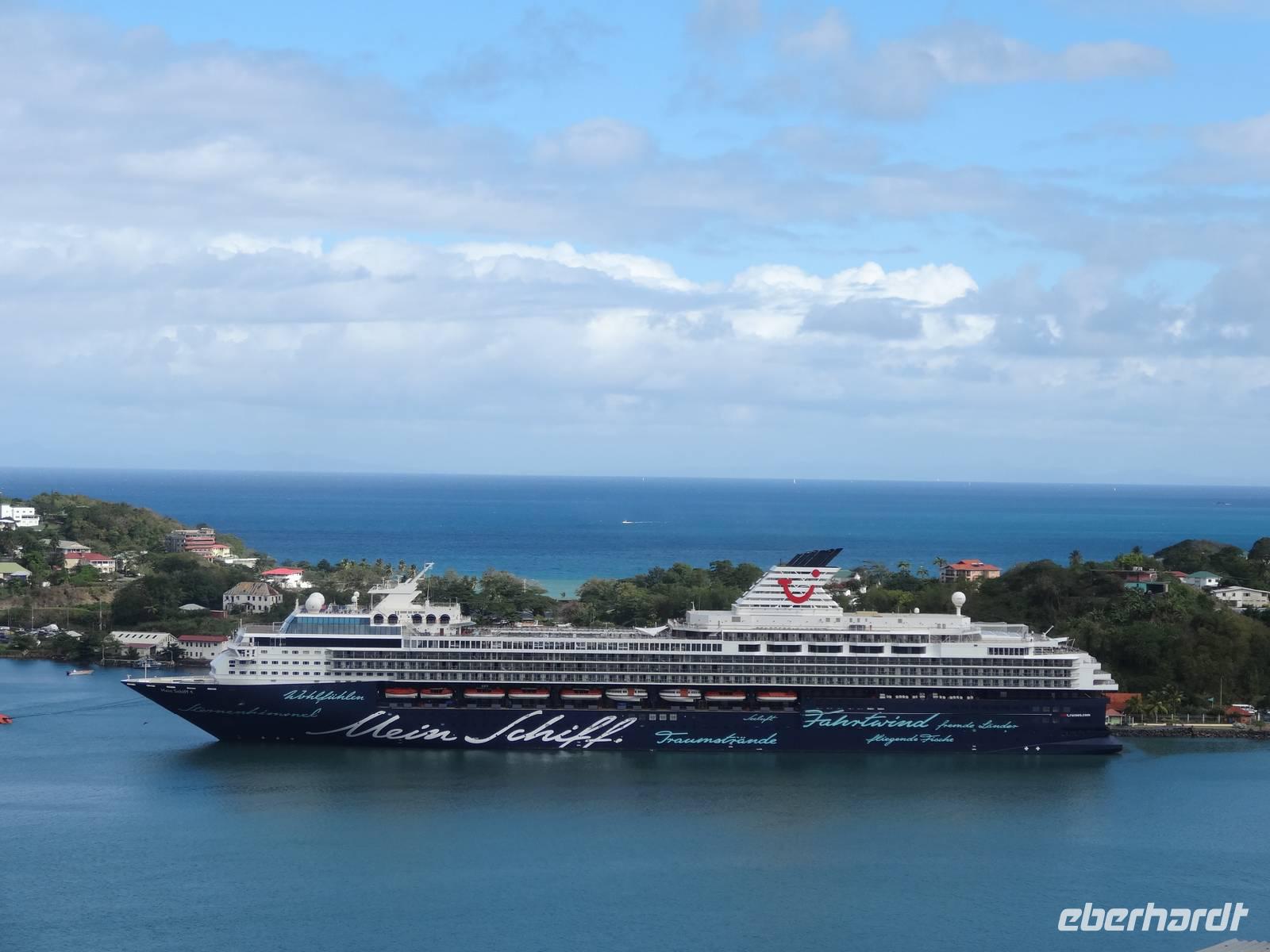 Über Nacht setzten wir nach St. Lucia über, wo wir pünktlich 7:00 Uhr unsere Anker vor der Hauptstadt Castries setzten. Bei unserem Eberhardt-Ganztagesausflug lernten wir die natürliche Vielfalt dieser karibischen Perle kennen. Zuerst fuhren wir zu einem besonderen Aussichtspunkt, von wo wir den Blick auf die berühmte Marigot-Bay genießen konnten.