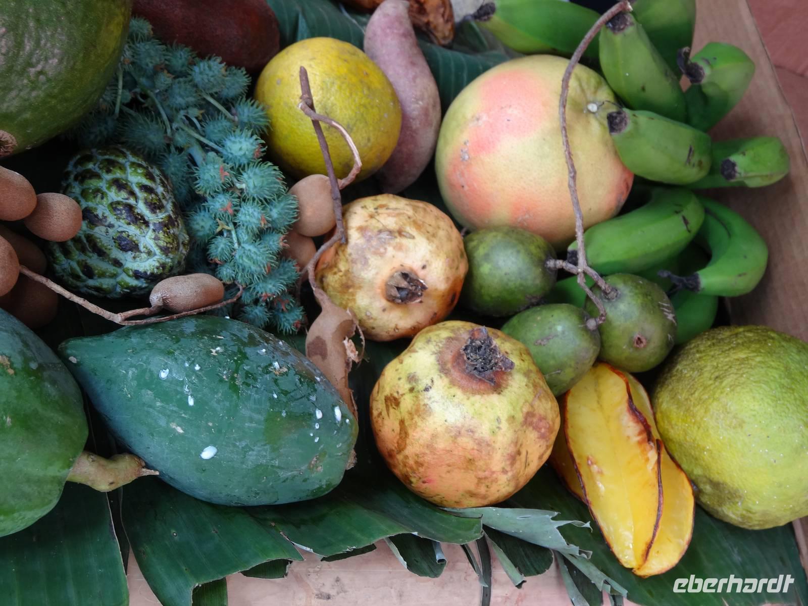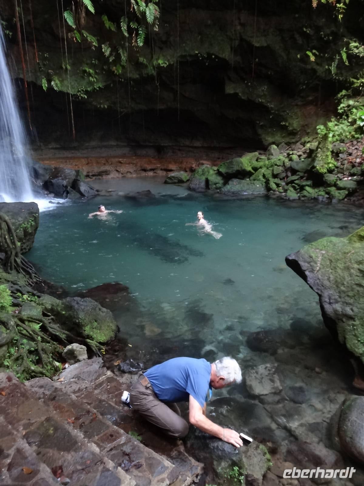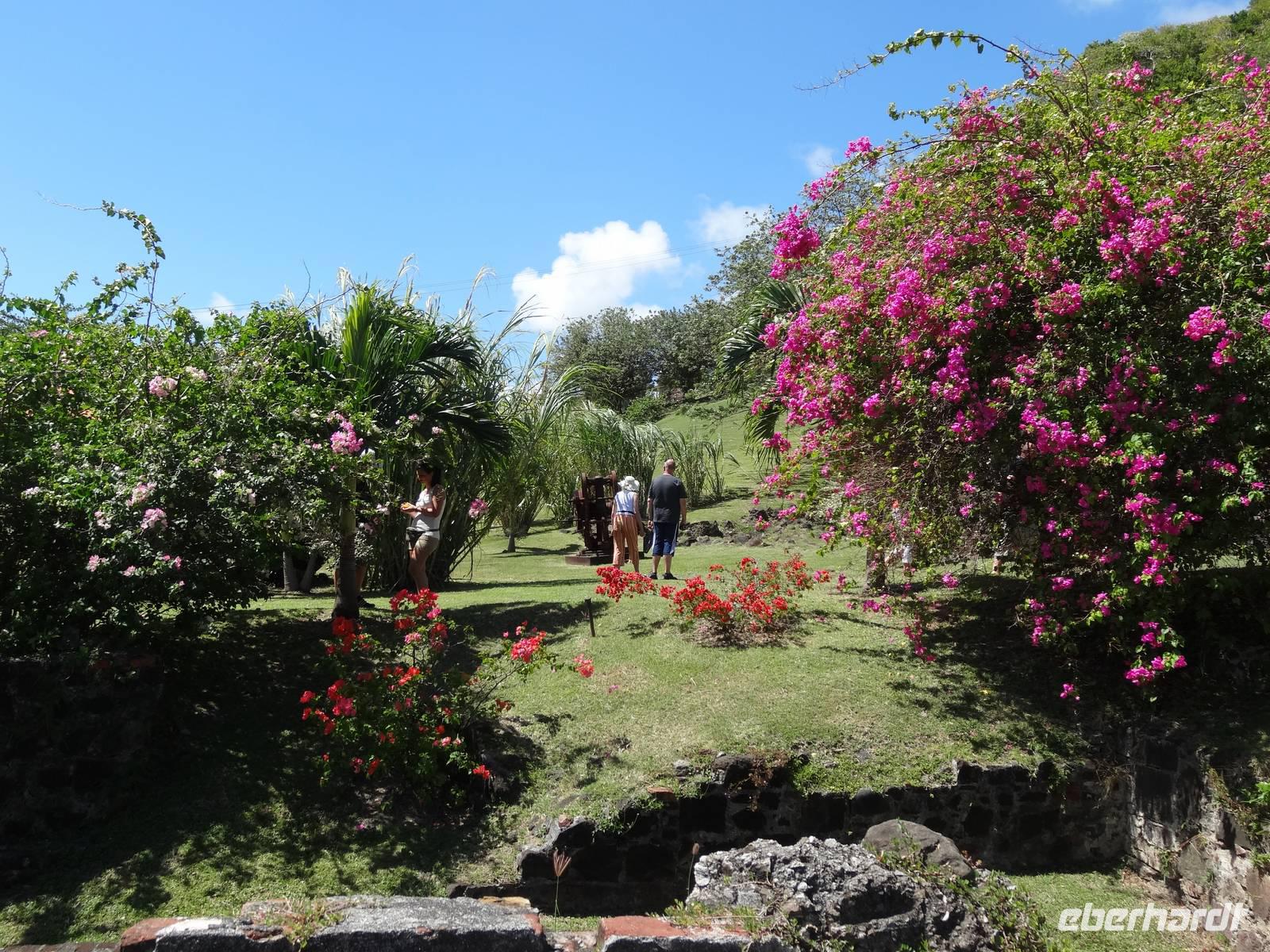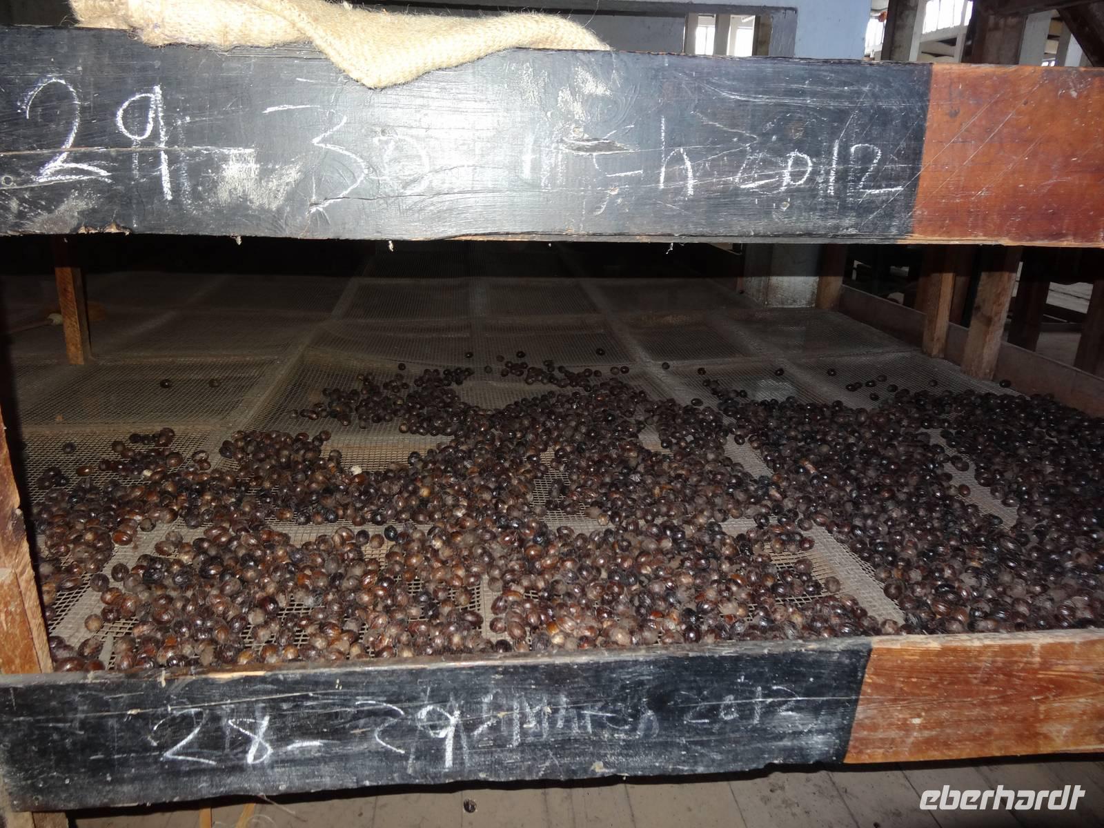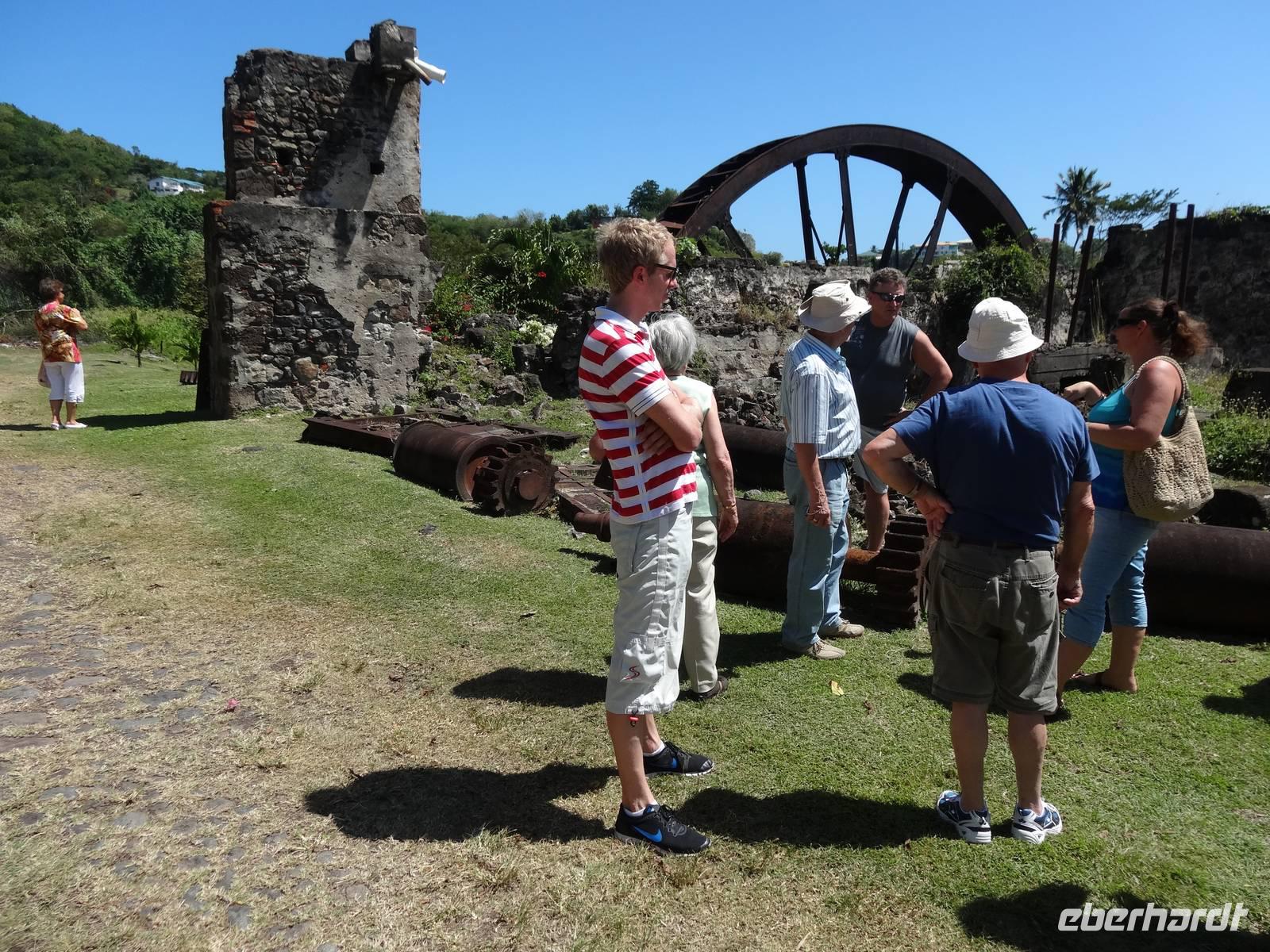 Zunächst fuhren wir ins Inselinnere zum Grand Etang Nationalpark und bestaunten den Kratersee. Über malerische Serpentinen ging es bis zu unserem nächsten Besichtigungsstopp, einer ehemaligen Muskatnussfabrik, wo uns Rahel die mühsame Handarbeit früherer Zeiten nahe brachte. Natürlich konnte man auch kleine Platiktütchen mit frischen Muskatnüssen kaufen, um diese dann als Souvenirs zu verteilen bzw. selbst daheim mit der exotischen Würze zu experimentieren.