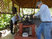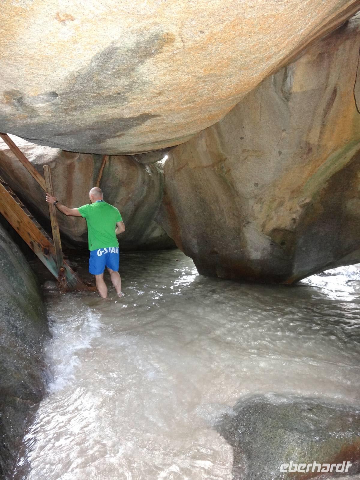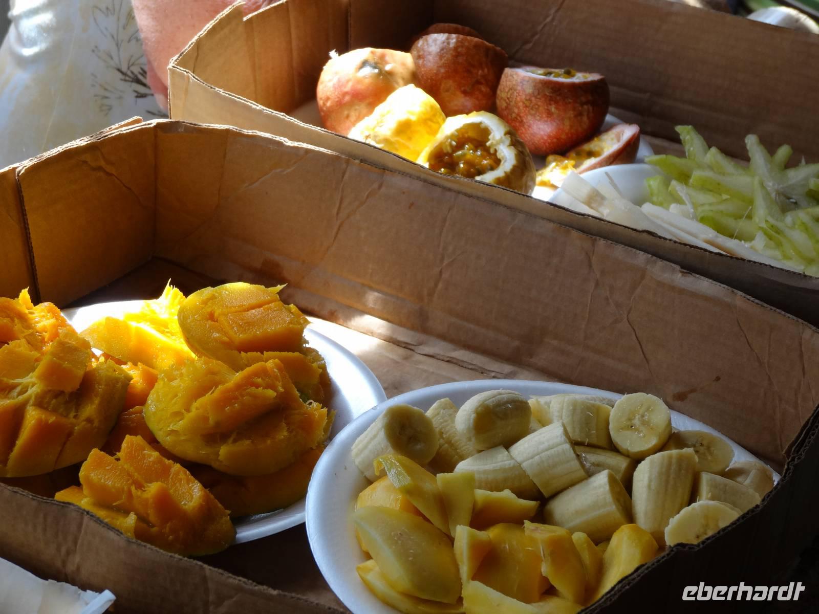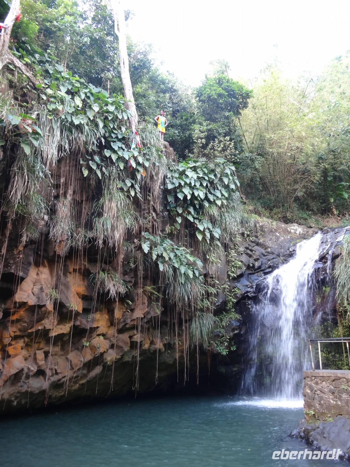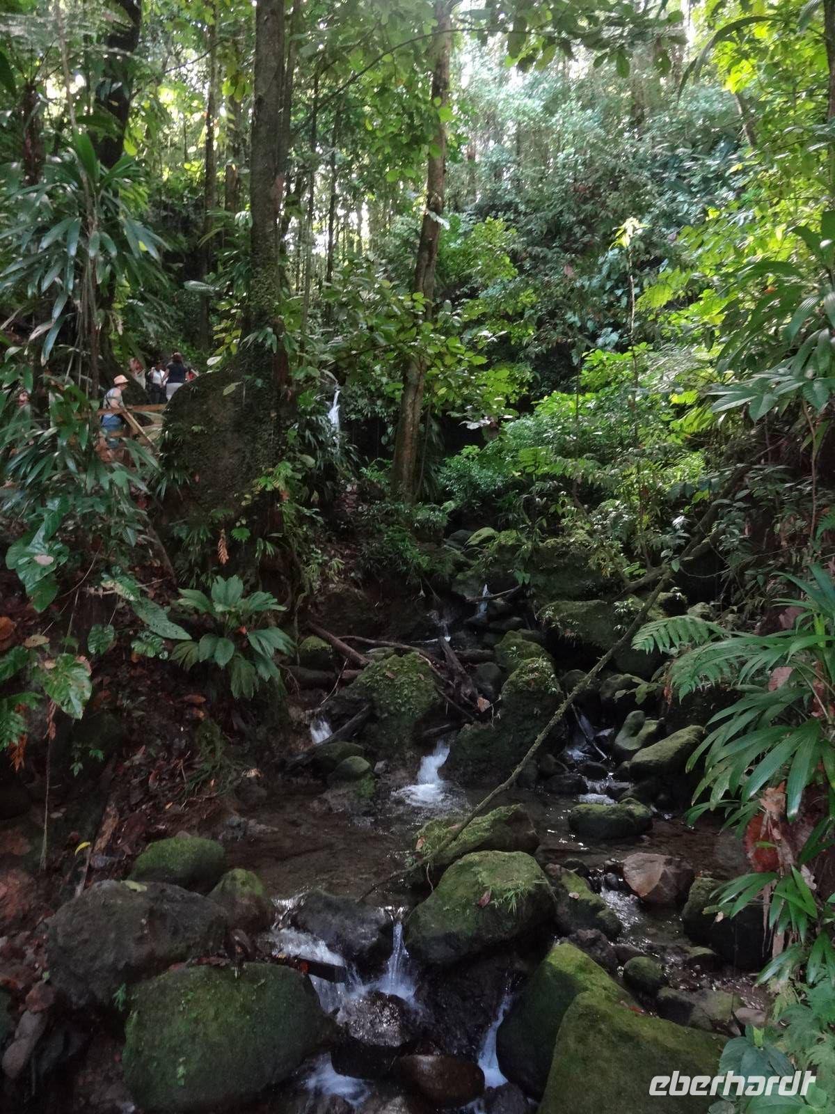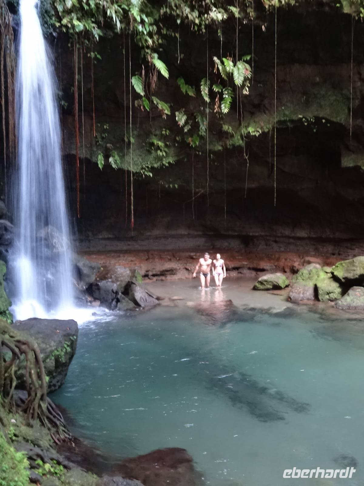 Zunächst fuhren wir ins Inselinnere zum Grand Etang Nationalpark und bestaunten den Kratersee. Über malerische Serpentinen ging es bis zu unserem nächsten Besichtigungsstopp, einer ehemaligen Muskatnussfabrik, wo uns Rahel die mühsame Handarbeit früherer Zeiten nahe brachte. Natürlich konnte man auch kleine Platiktütchen mit frischen Muskatnüssen kaufen, um diese dann als Souvenirs zu verteilen bzw. selbst daheim mit der exotischen Würze zu experimentieren.