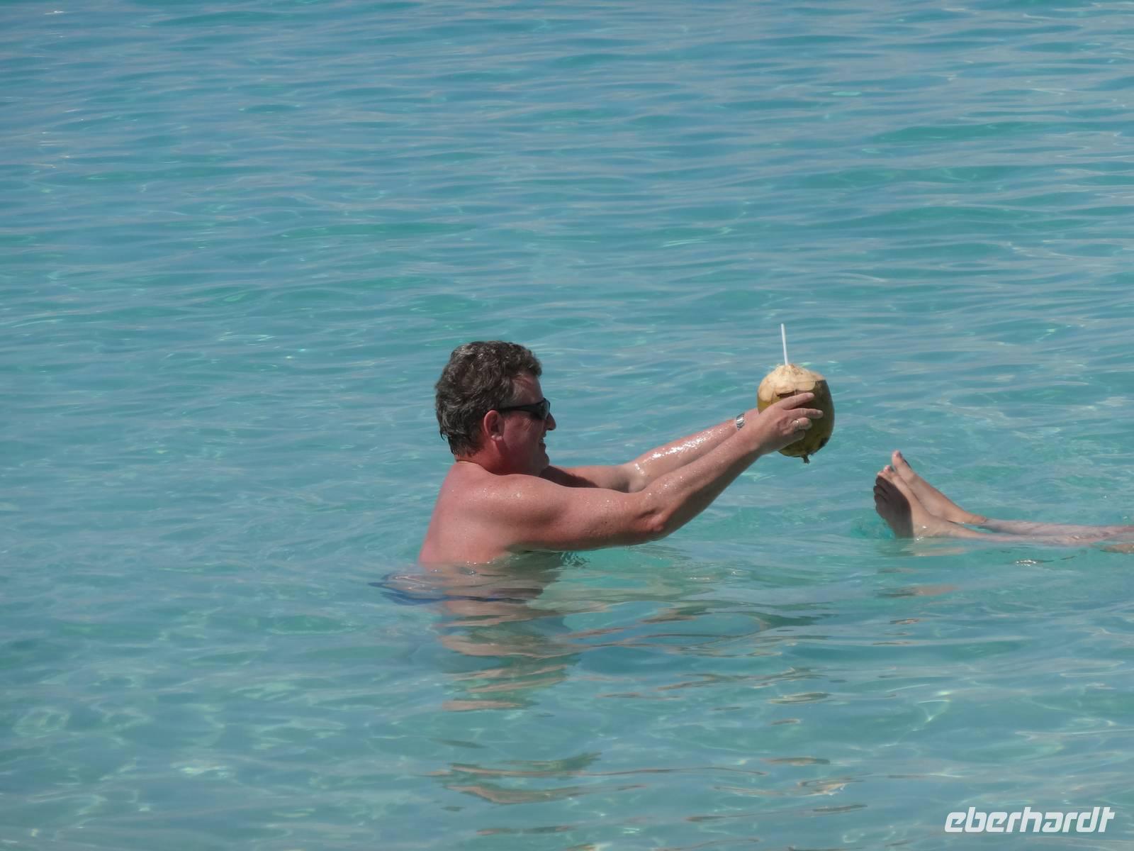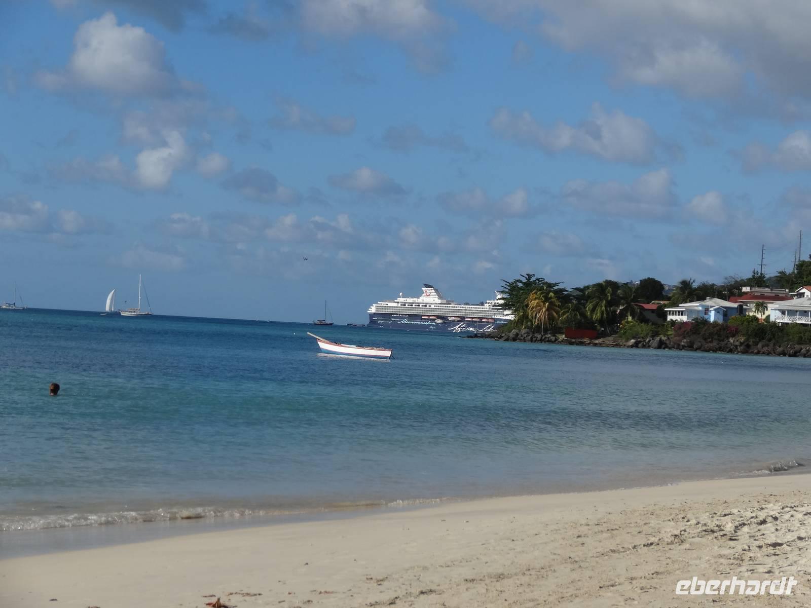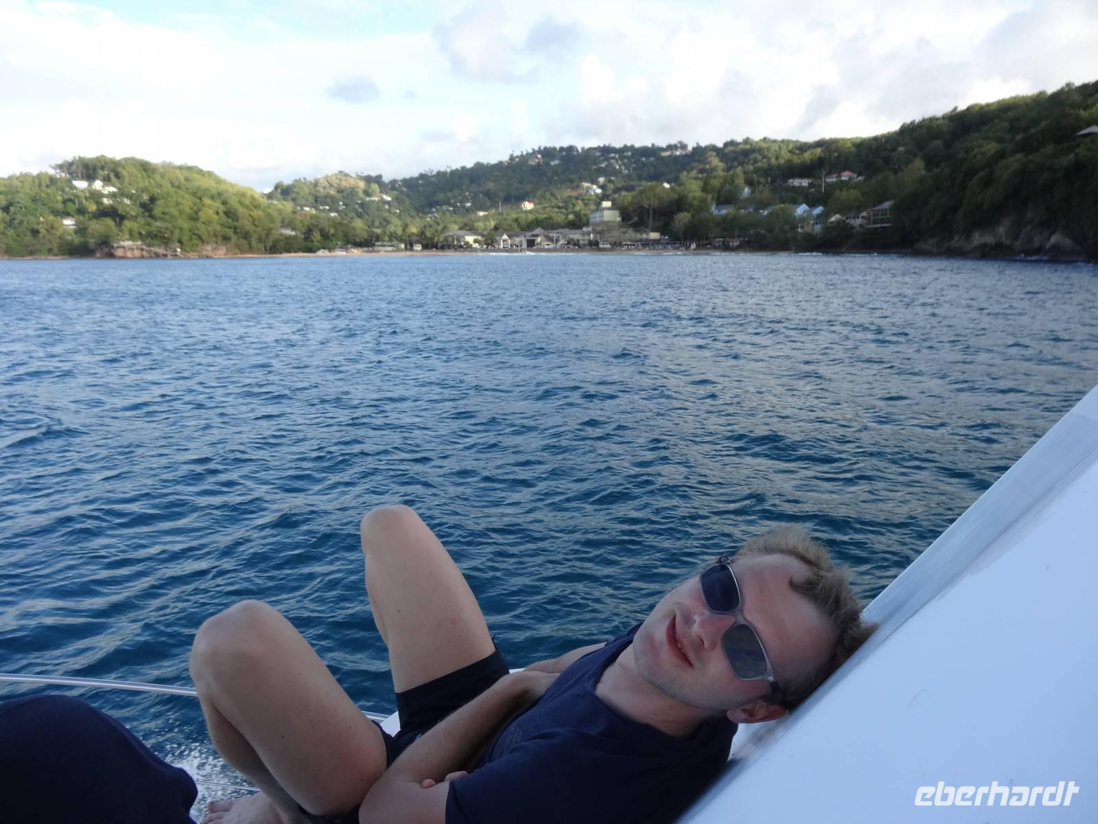Nach dem Mittagessen an Bord ging es mit einigen Gästen via einer 15-minütigen Bootsfahrt zum nahe gelegenen Grand Anse Beach, wo wir noch ein paar herrliche Stunden am karibischen Strand erlebten.
