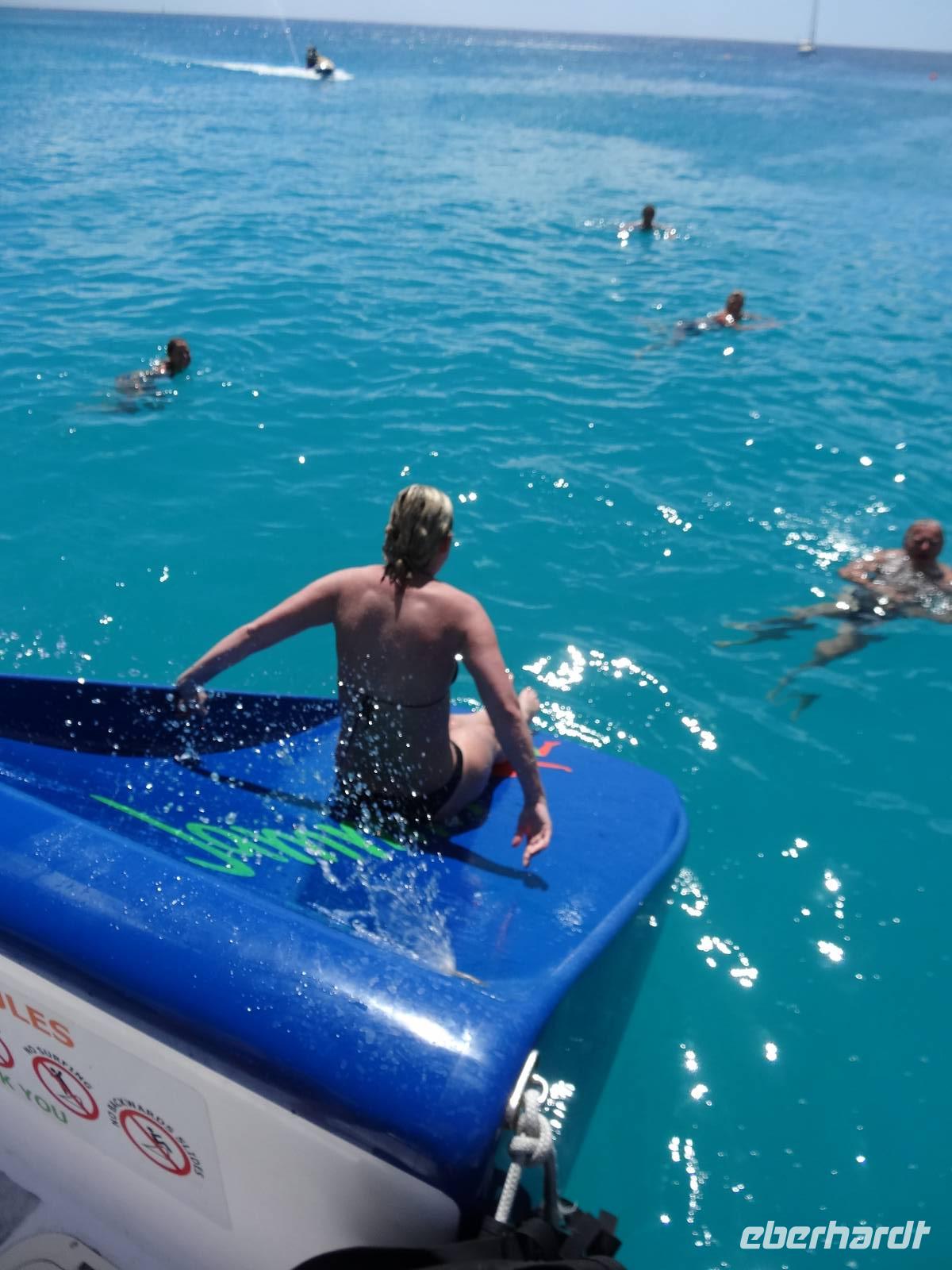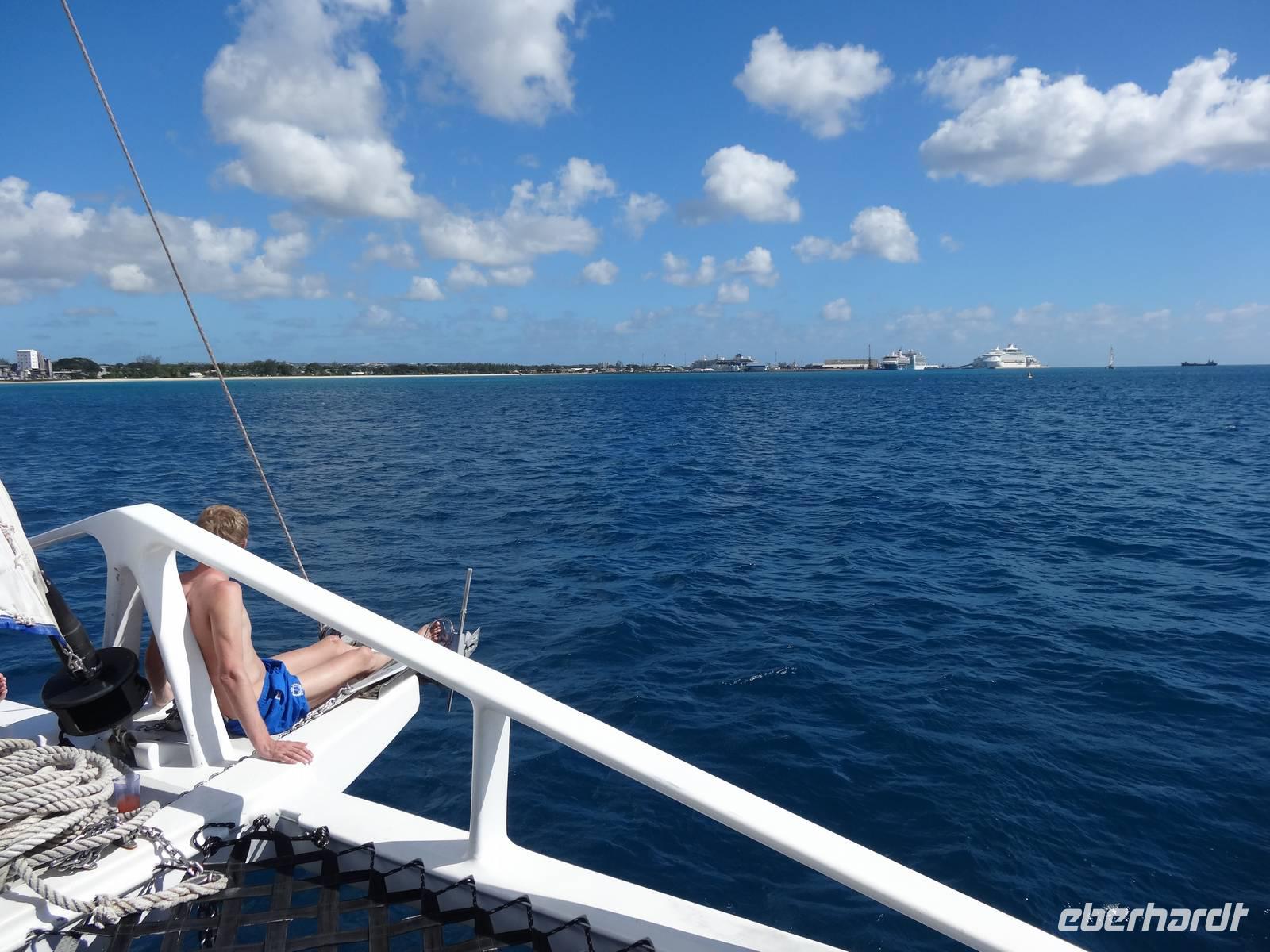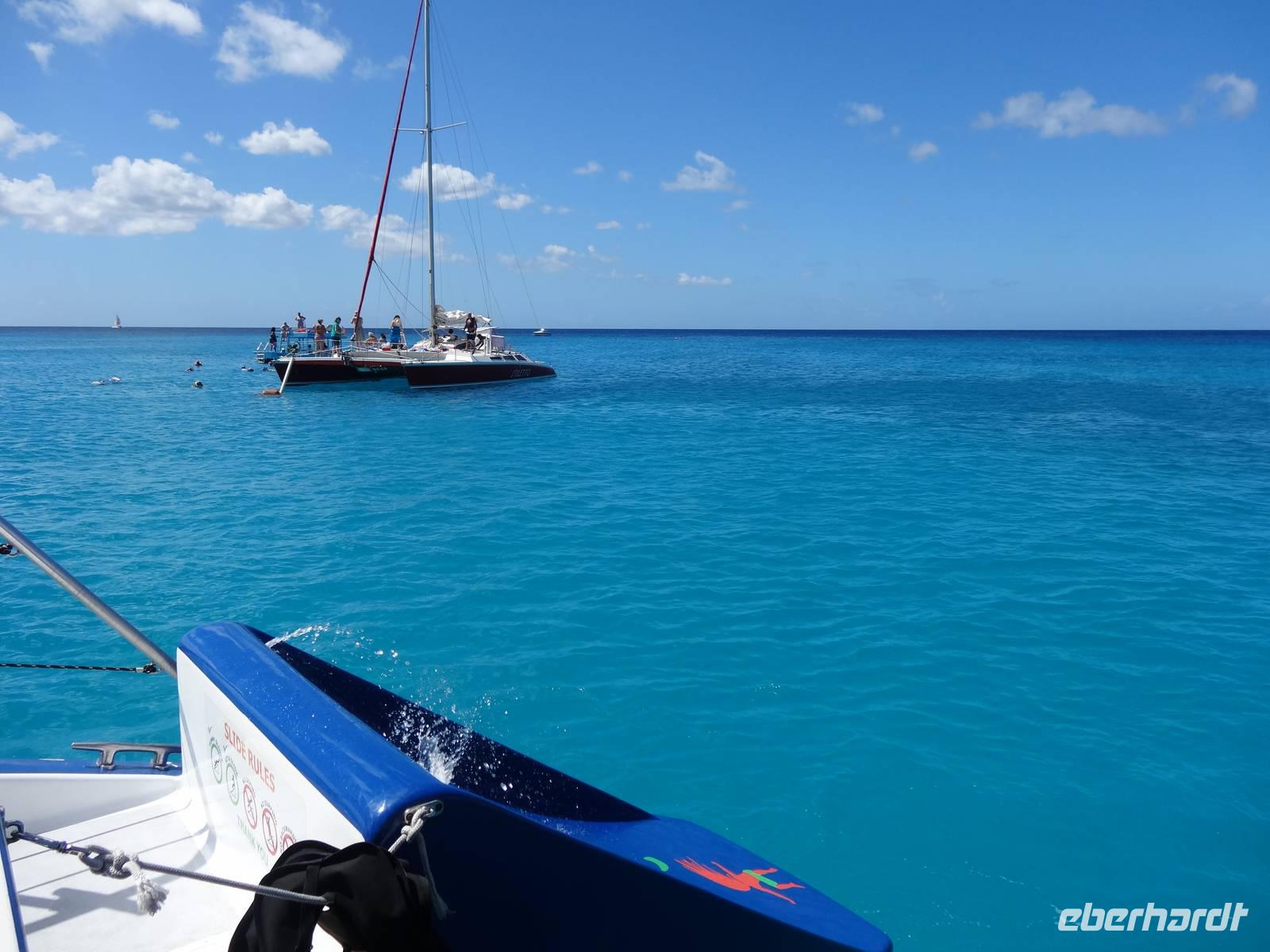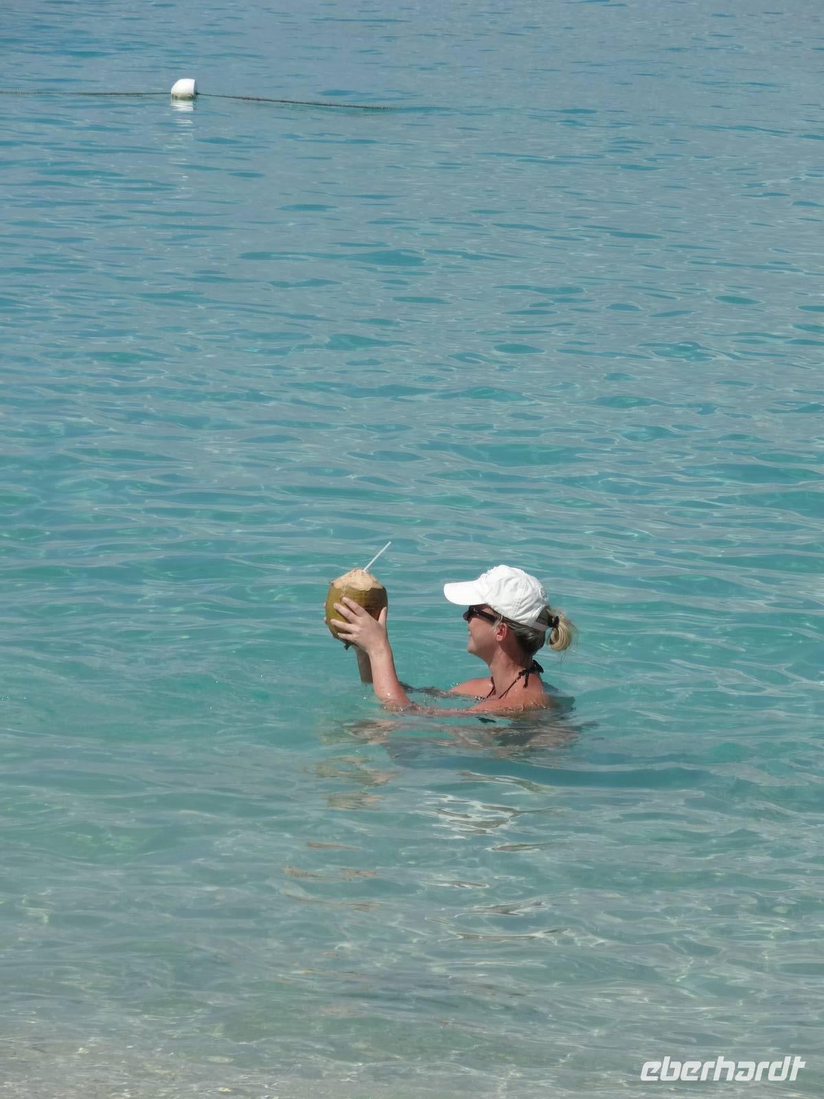 Nach dem Mittagessen an Bord ging es mit einigen Gästen via einer 15-minütigen Bootsfahrt zum nahe gelegenen Grand Anse Beach, wo wir noch ein paar herrliche Stunden am karibischen Strand erlebten.