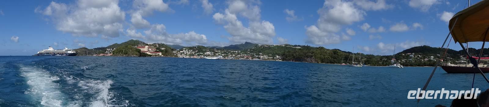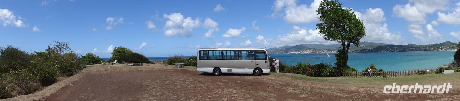 Beim heutigen exklusiven Eberhardt-Ausflug wurden wir durch die örtliche Reiseleitung Rahel betreut, die uns 8:30 Uhr im Hafenterminal in Empfang nahm und uns ihre zweite Heimat zeigte. Mit sehr viel Charme und unterhaltsamen Geschichten aus ihrem Leben brachte uns die gebürtige Schweizerin die Liebe zur größten Karibikinsel Grenada nahe.