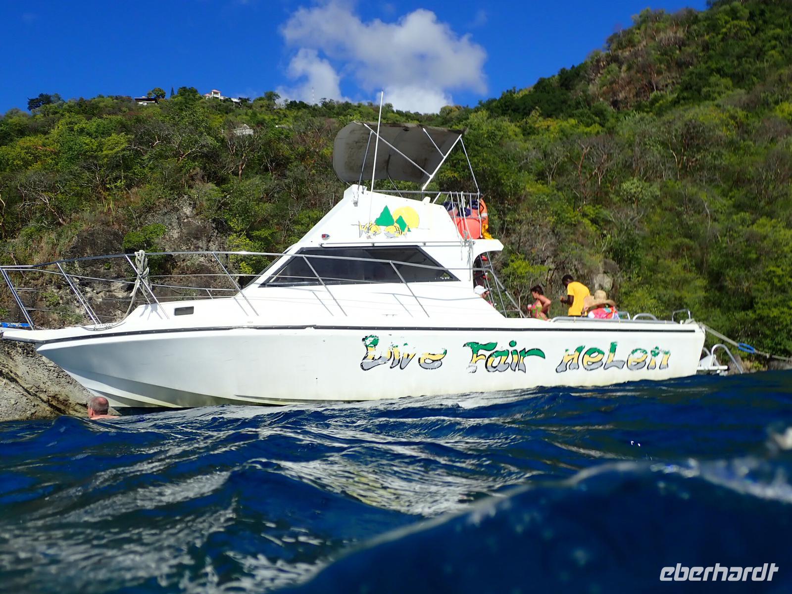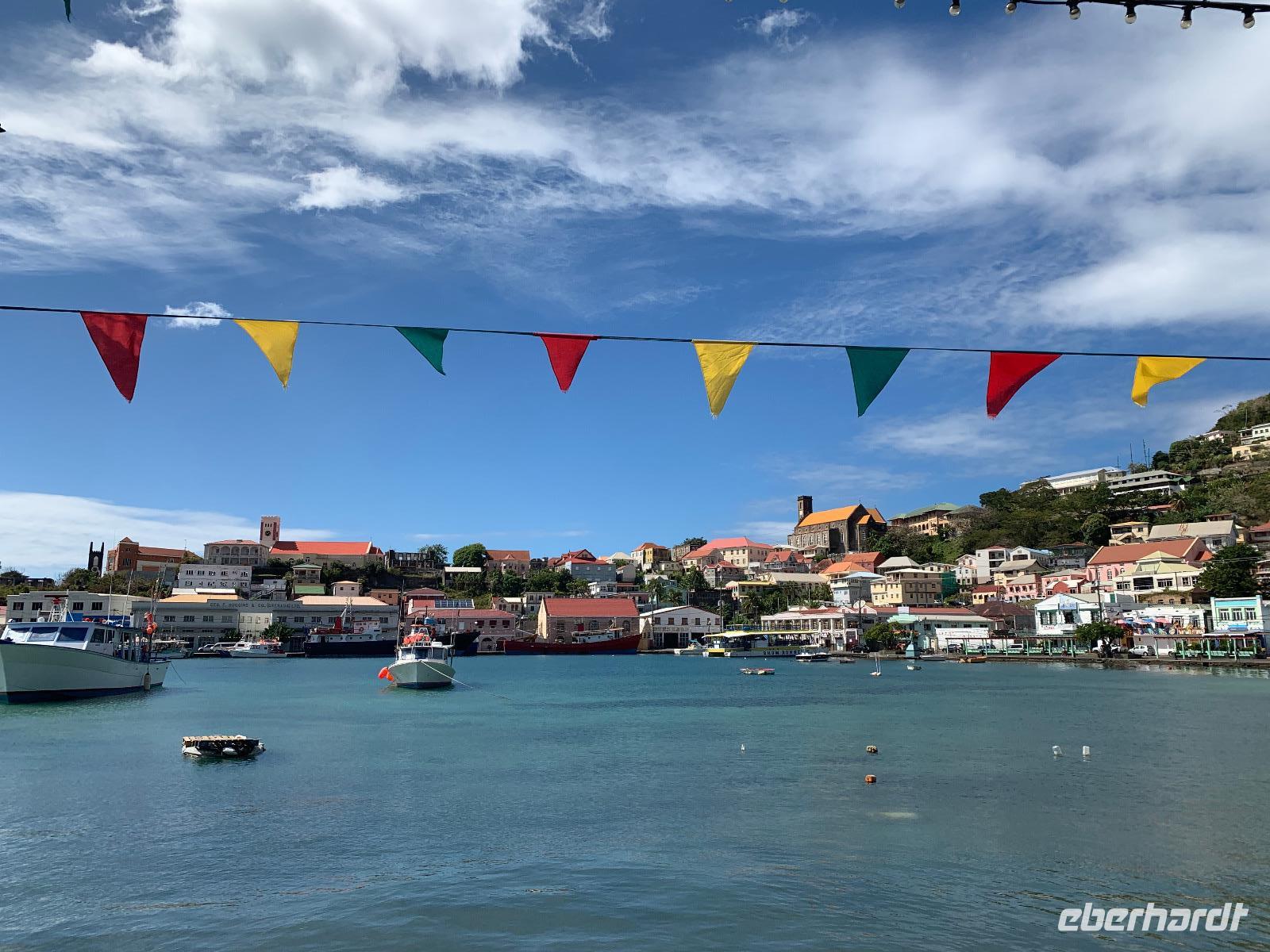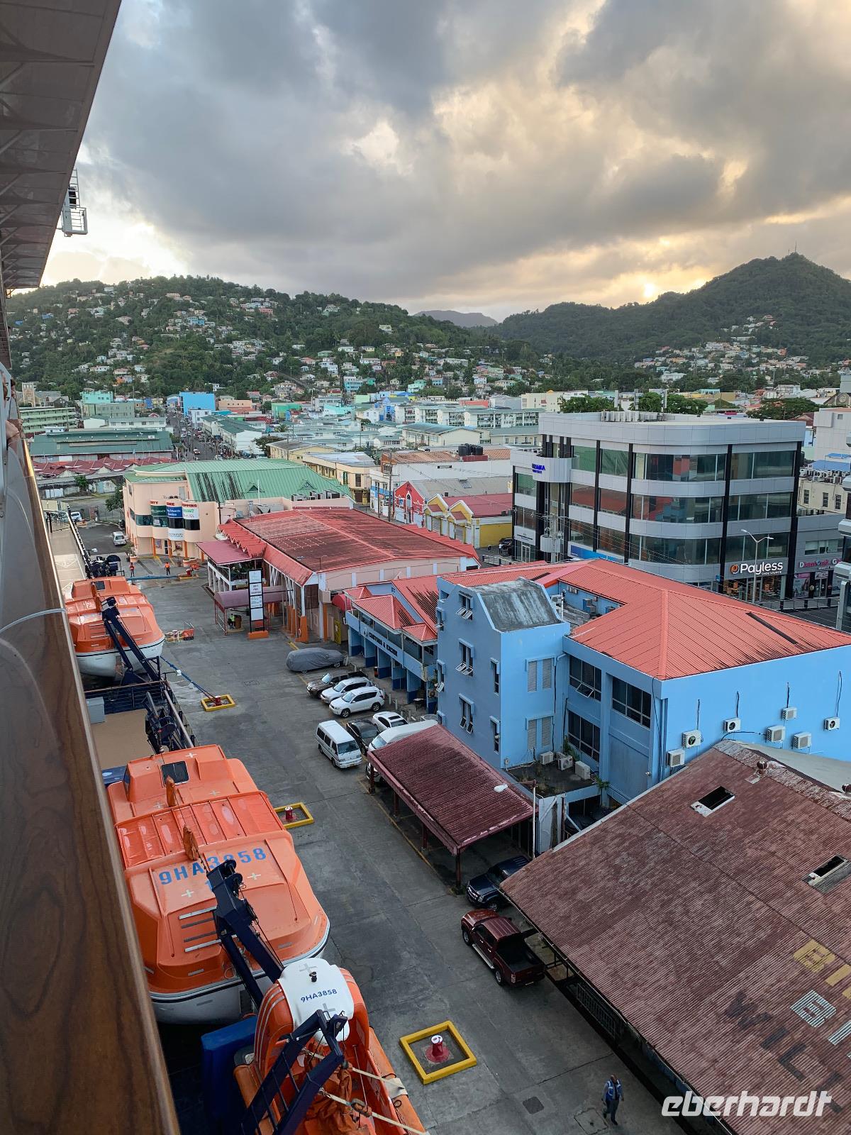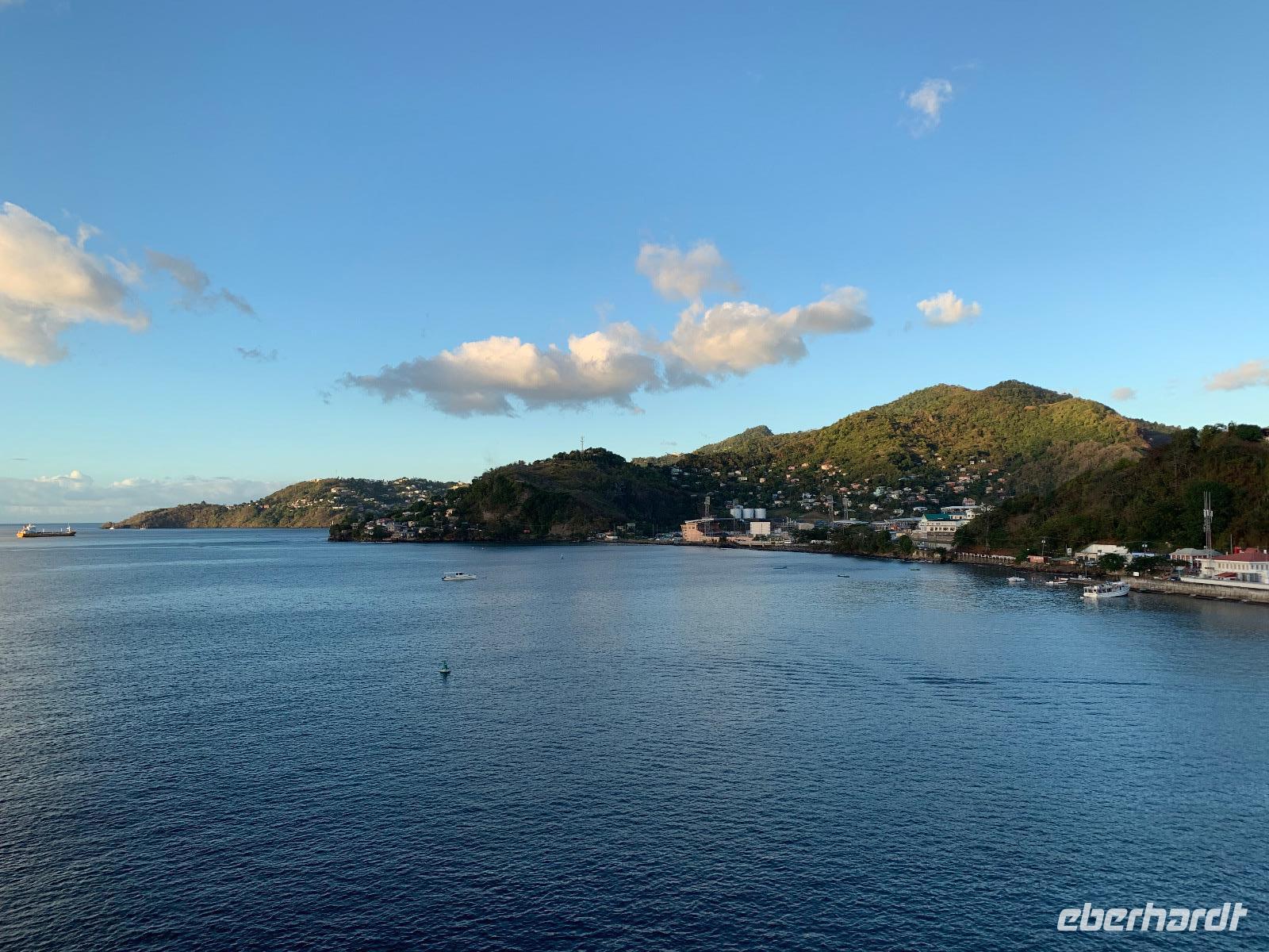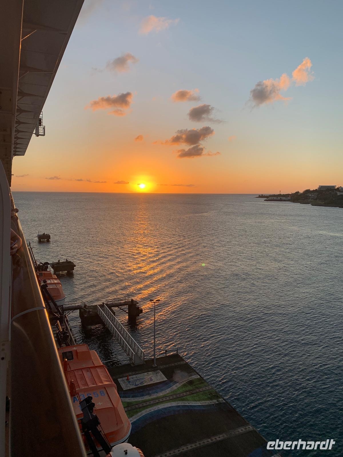 Wir besteigen unser exklusives Eberhardt-Boot und fahren ganz nah an der Star Clipper vorbei, die inzwischen vor Soufrière geankert hat und auch wir halten in der Bucht von Soufrière für einen erfrischenden Badestopp. Wir erfrischen uns im kristallklaren karibischen Meer und genießen den Panoramablick auf die beiden Pitons. Nach dem Bade- und Schnorchelausflug haben wir uns den Rumpunsch wohl verdient ??!Unsere Bootstour führt weiter entlang der Südostküste durch die Marigot-Bay zurück bis nach Castries. Unterwegs genießen wir den Blick auf die traumhaft schöne Küste mit den saftig grünen Palmen, die einen herrlichen Kontrast zu den schwarzen Sandstränden bilden. Begleitet von Reggae- und Salsaklängen sowie kühlem (Rum-) Punsch erreichen wir wieder die Mein Schiff 5.
