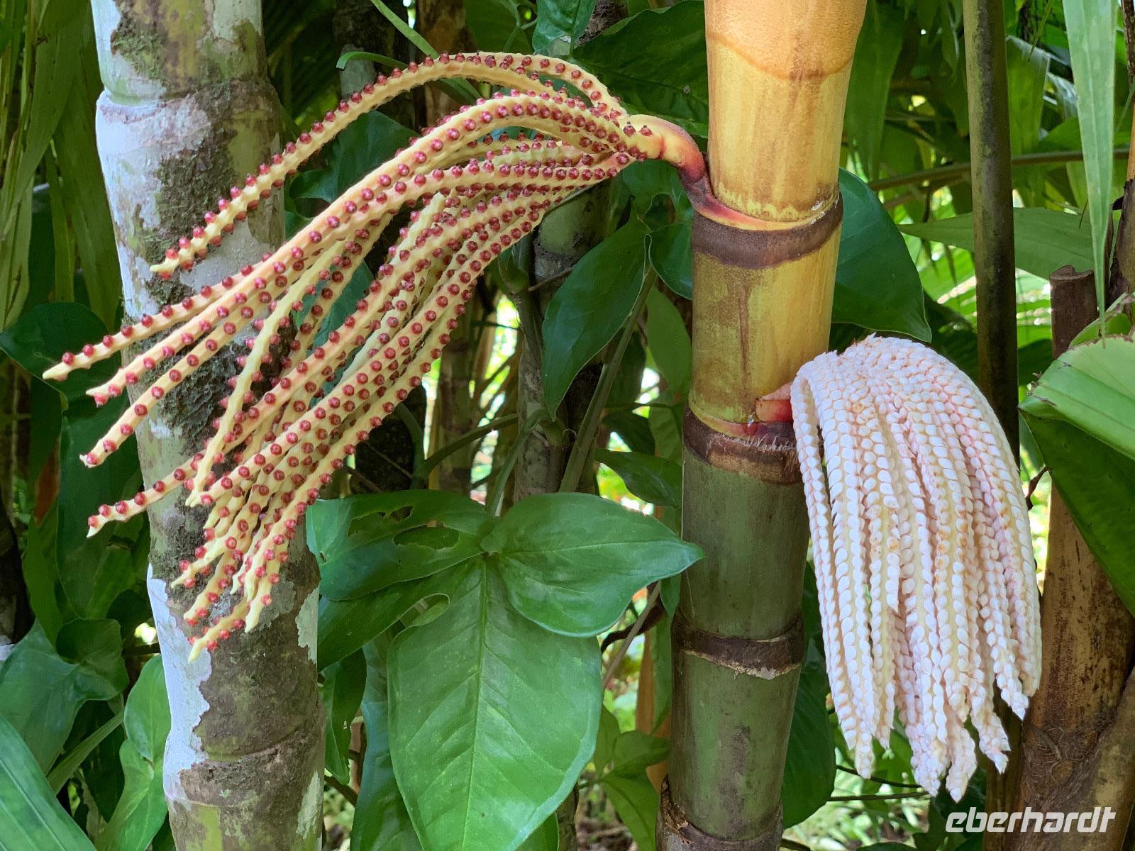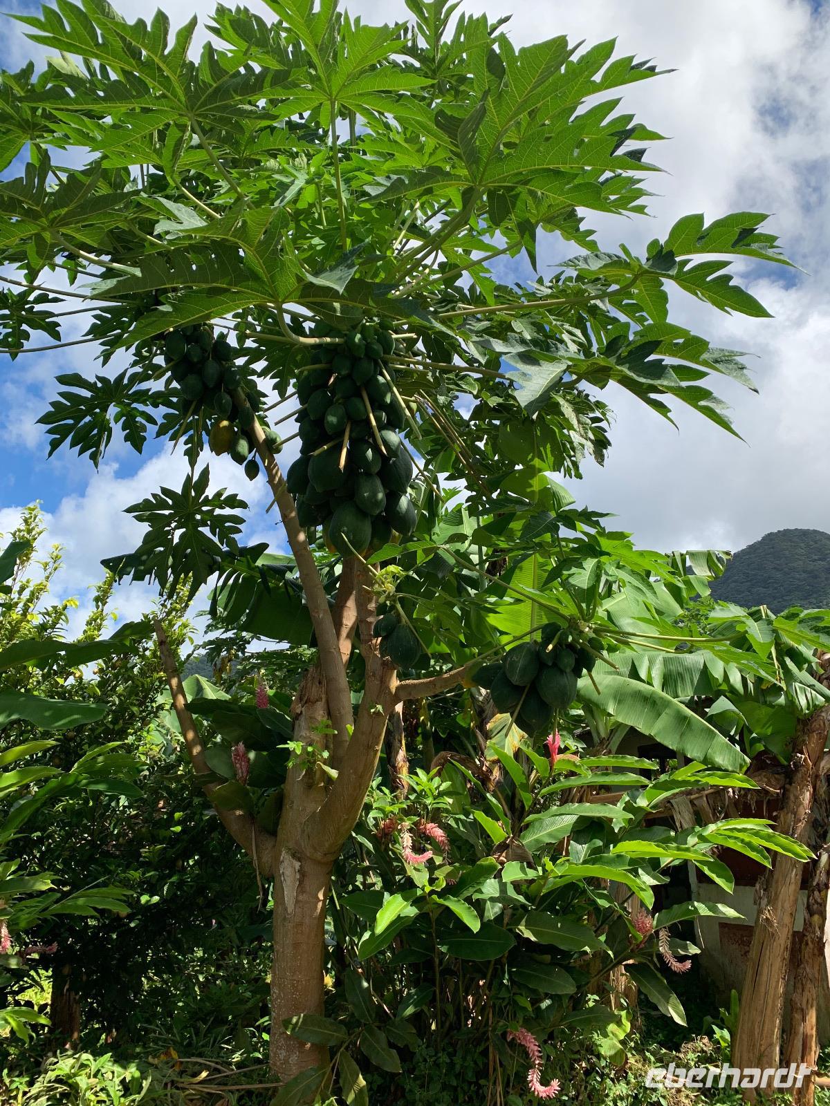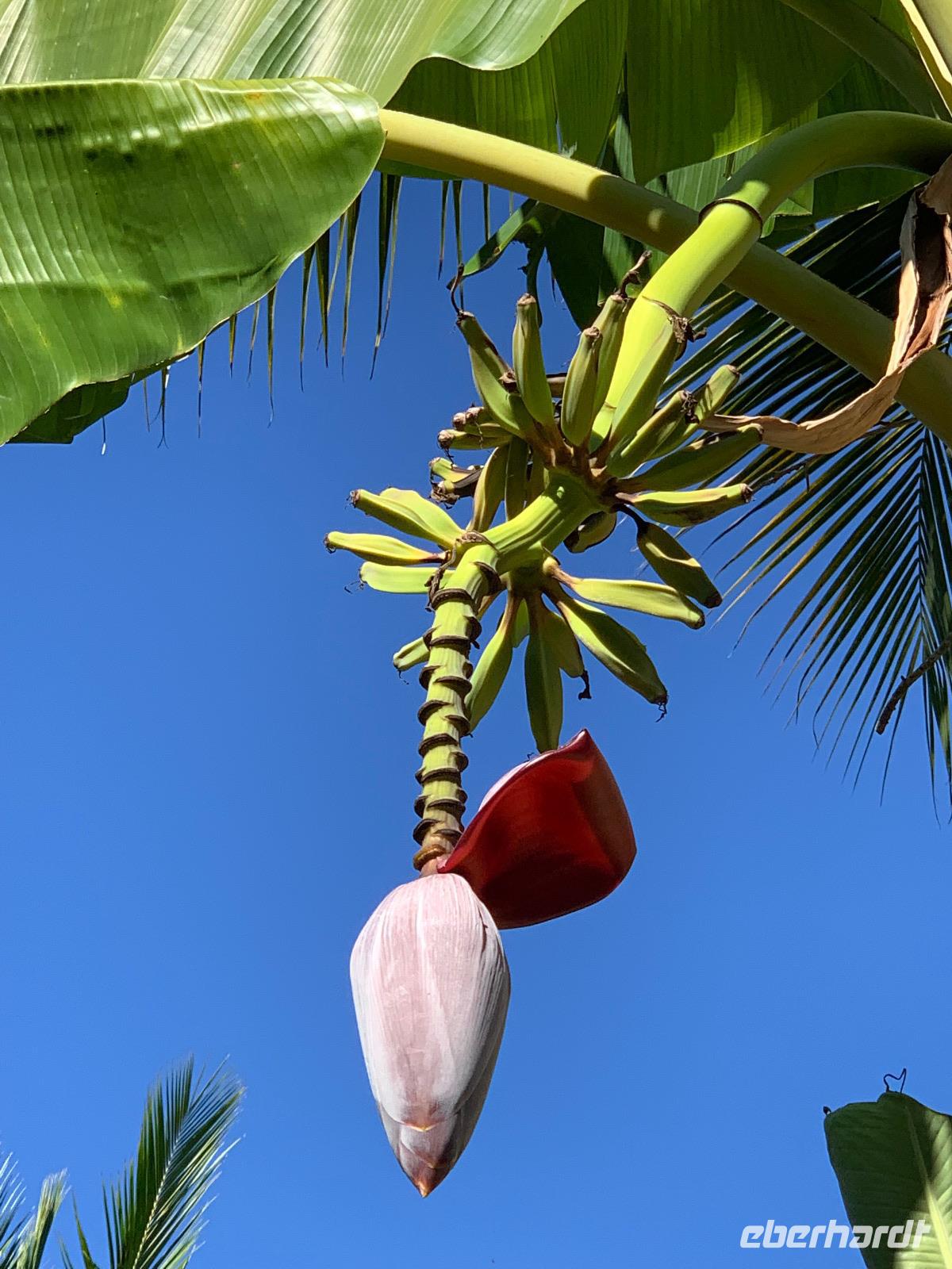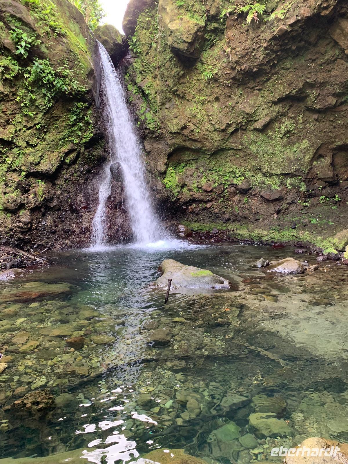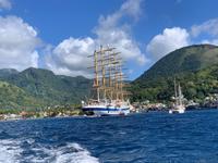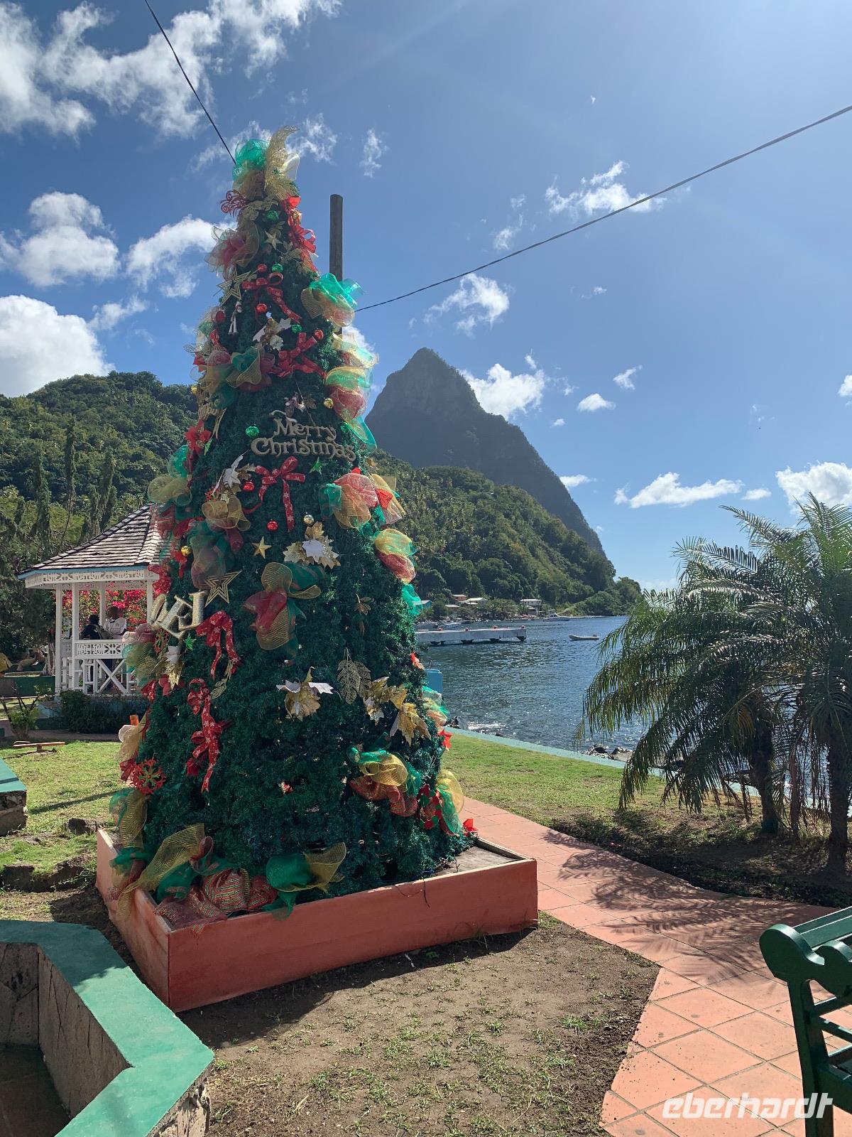 Über Nacht setzten wir nach St. Lucia über, wo wir pünktlich 7.30 Uhr unsere Anker vor der Hauptstadt Castries setzen. Bei unserem Eberhardt-Ganztagesausflug lernen wir die natürliche Vielfalt dieser karibischen Perle kennen. Unsere Reiseleiterin Christiane lebt seit über 10 Jahren auf der Insel und in all ihren Erklärungen hört man die Liebe und Verbundenheit zu ihrer neuen Heimat heraus. Zunächst fahren wir zu einem Aussichtspunkt, von wo wir einen tollen Blick auf unser Schiff im Hafen haben, eingebettet in die hügelige Küstenlandschaft der Bucht. Beim nächsten Stopp eröffnet sich uns der Blick auf die berühmte Marigot-Bay, wo nicht nur zahlreichen Villen prominenter Sternchen stehen, sondern heute auch die Star Clipper vor Anker liegt und ein diesem Foto-Motiv noch das I-Tüpfelchen aufsetzt. Wir fahren durch das alte Fischerdorf Canaries und oberhalb halten wir bei einem kleinen Laden, wo uns Christiane die heimischen exotischen Früchte der Mango- und Bananeninsel zeigt und wir diese sowie leckeres Bananenbrot verkosten dürfen.