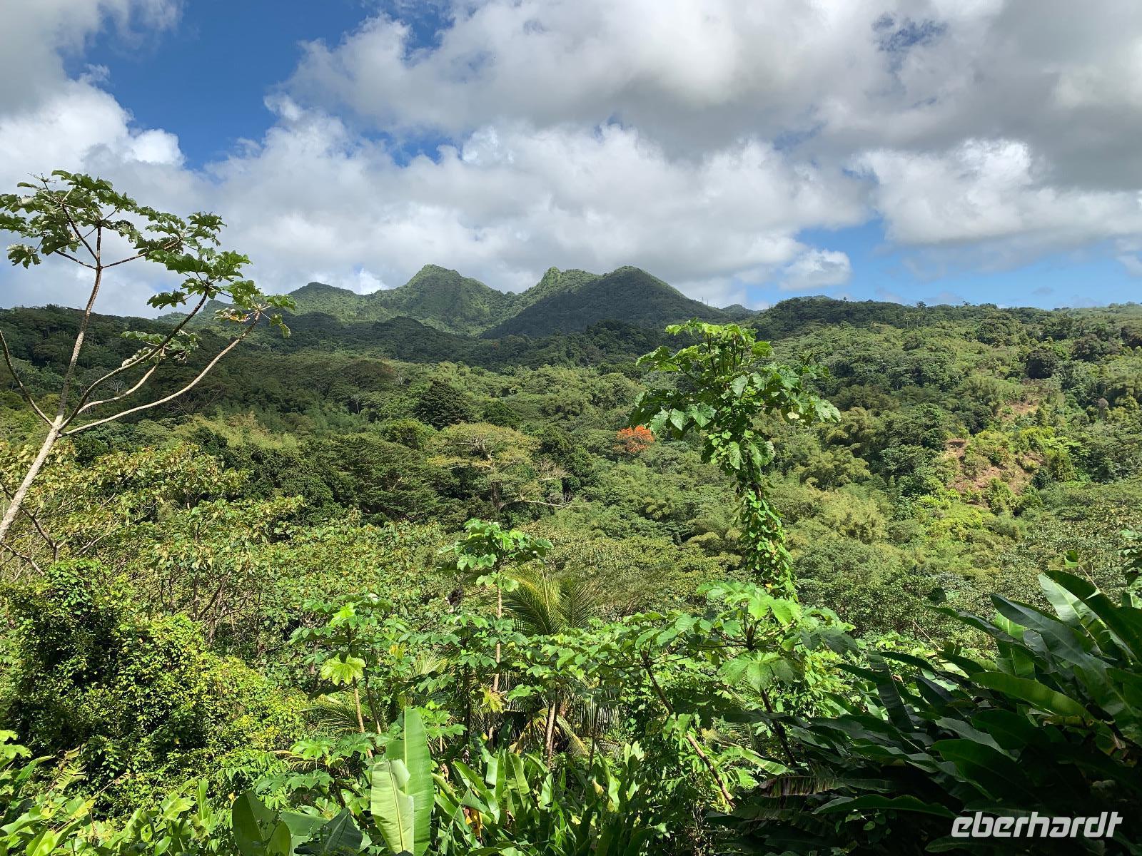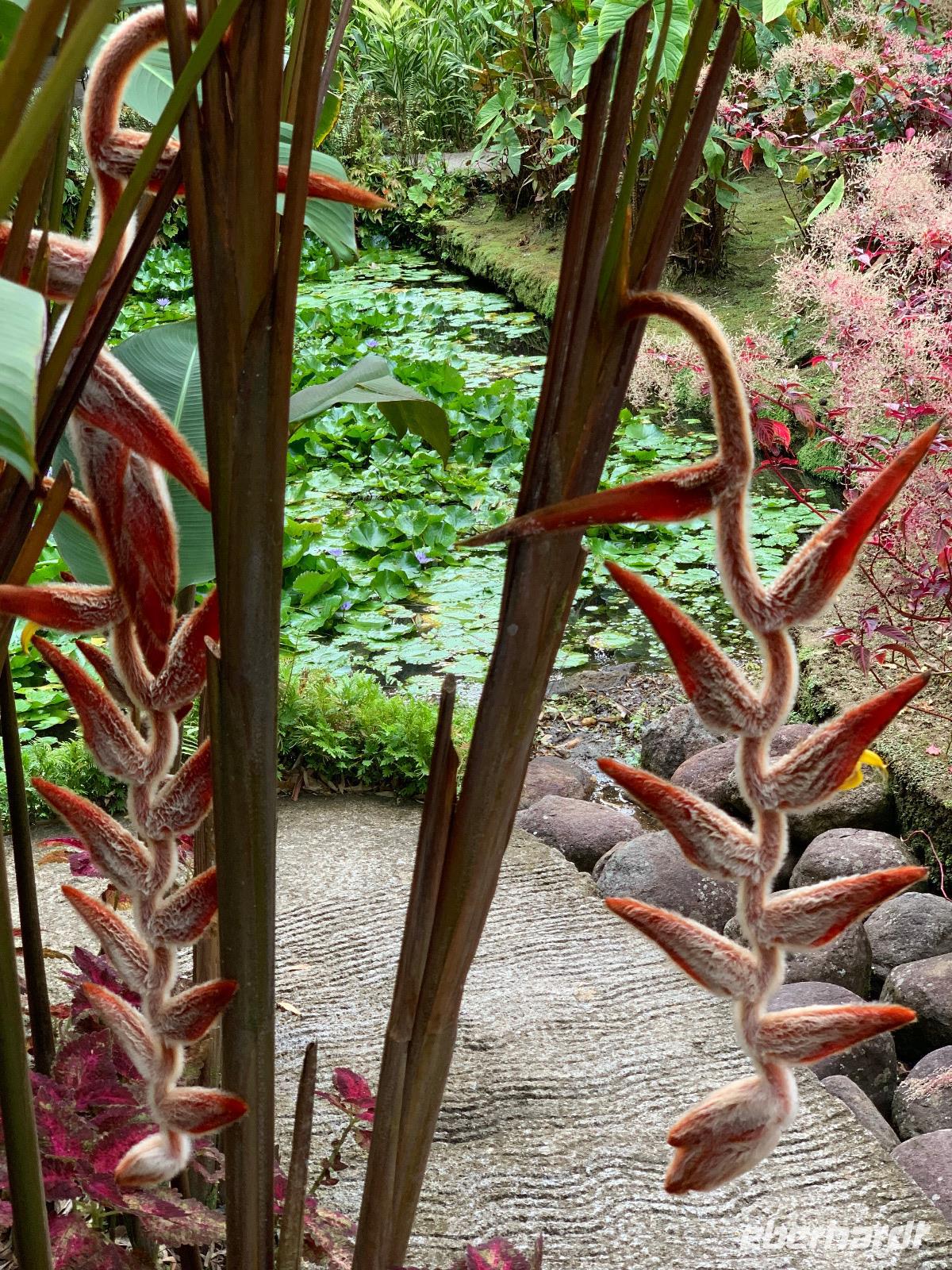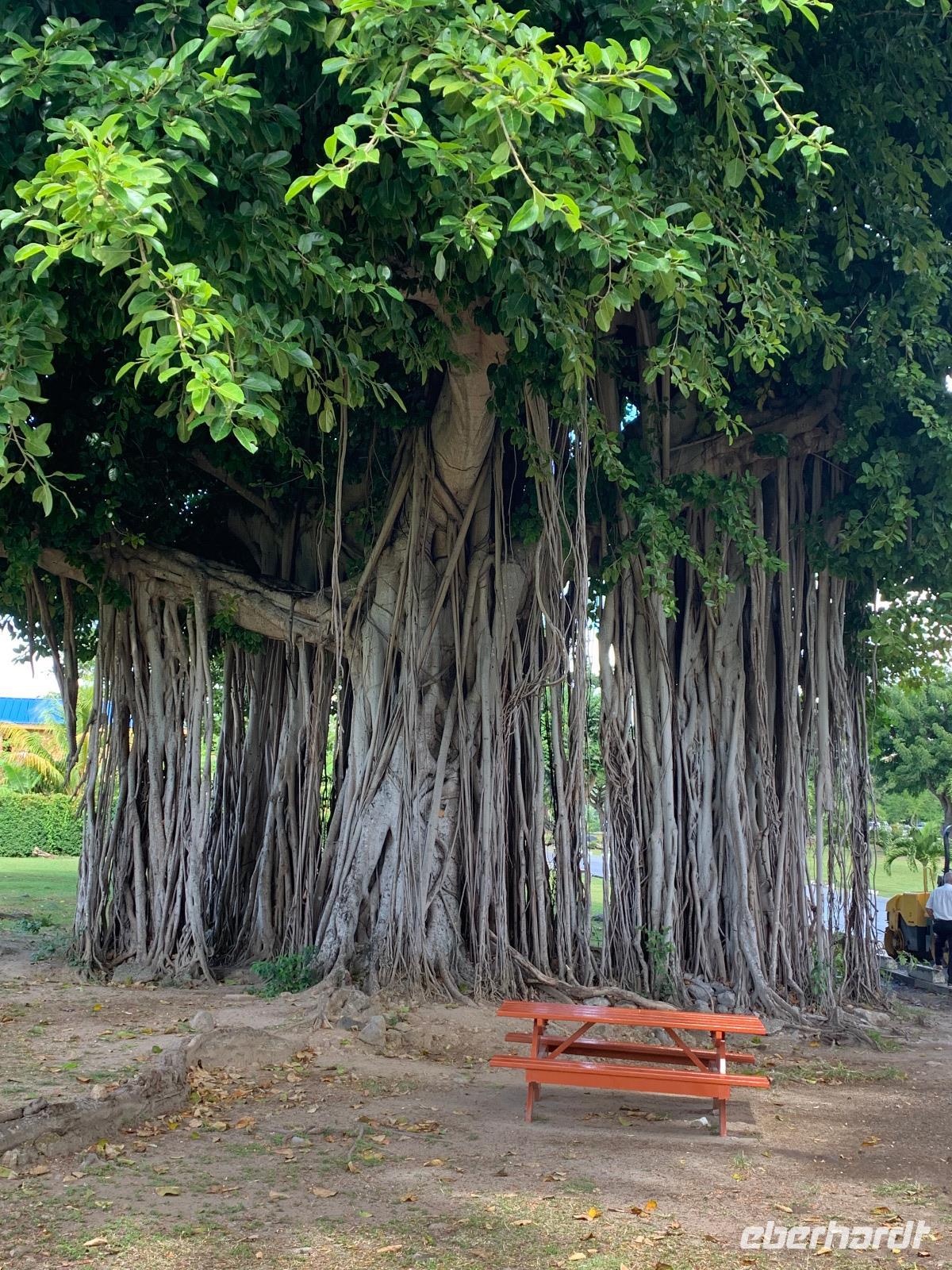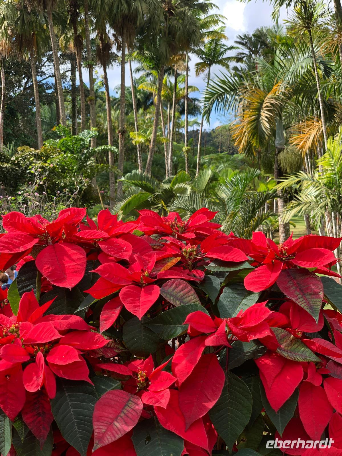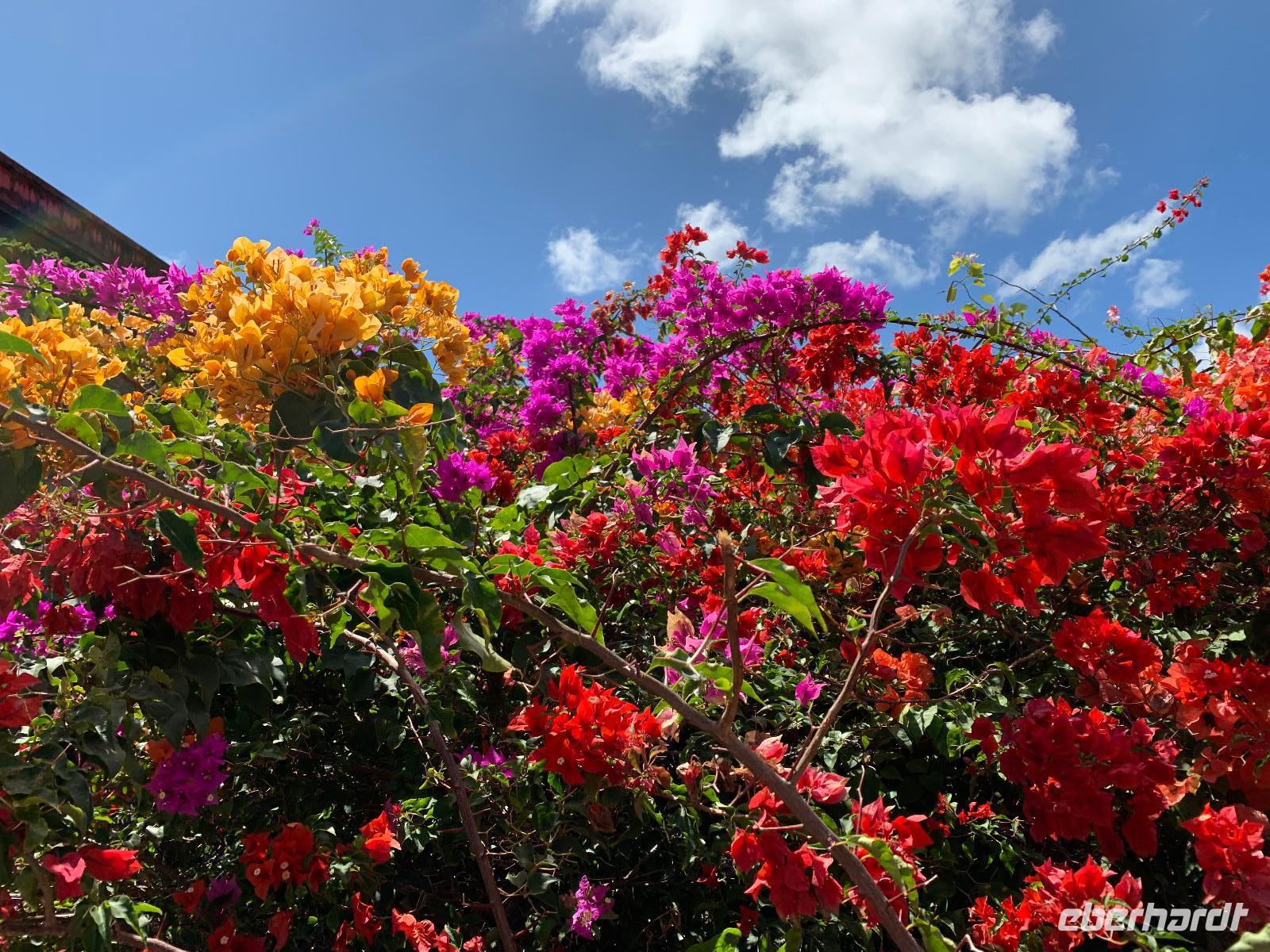 Weiter geht die Fahrt zum Balata-Garten, wo wir entlang eines befestigten Pfades alle tropischen Pflanzen in ihrer exotischen Farbenpracht und Vielfalt bestaunen können. Die Mutigen können über eine abenteuerliche Hängebrücke zwischen den Baumkronen laufen und werden mit einem herrlichen Ausblick von oben belohnt. Am Eingang kann man das rege Treiben der flinken Kolibris beobachten, die von den Wassertränken angelockt werden. Bevor wir in den Bus einsteigen, werden wir von ein wenig „liquid sunshine" überrascht. Aber dieser kleine tropische Regenguss stört bei den heißen Temperaturen nicht wirklich.