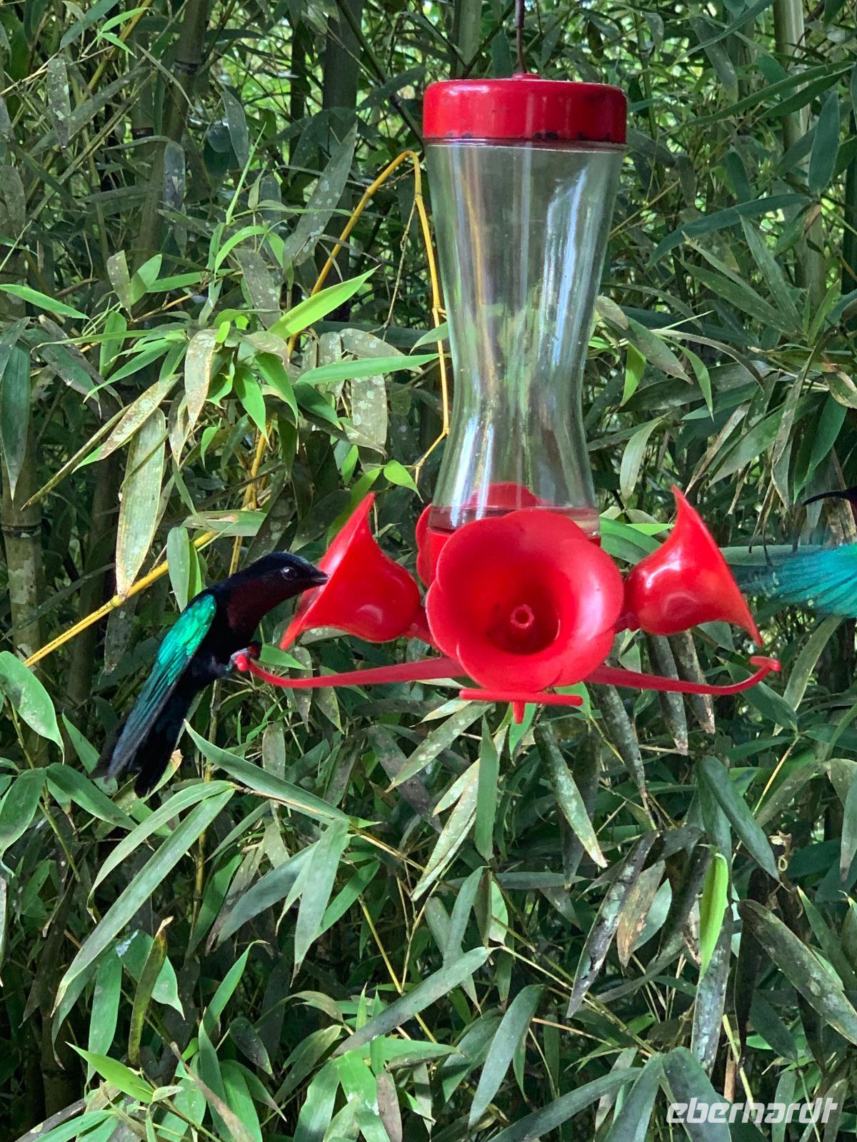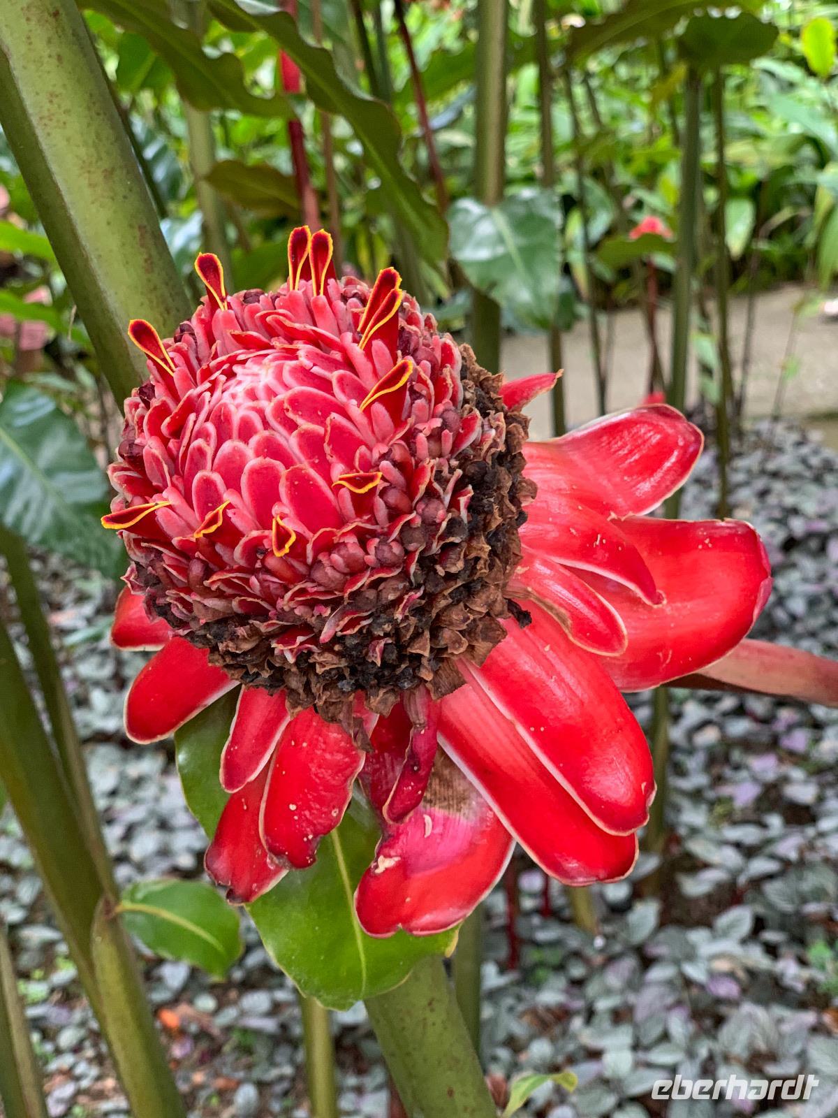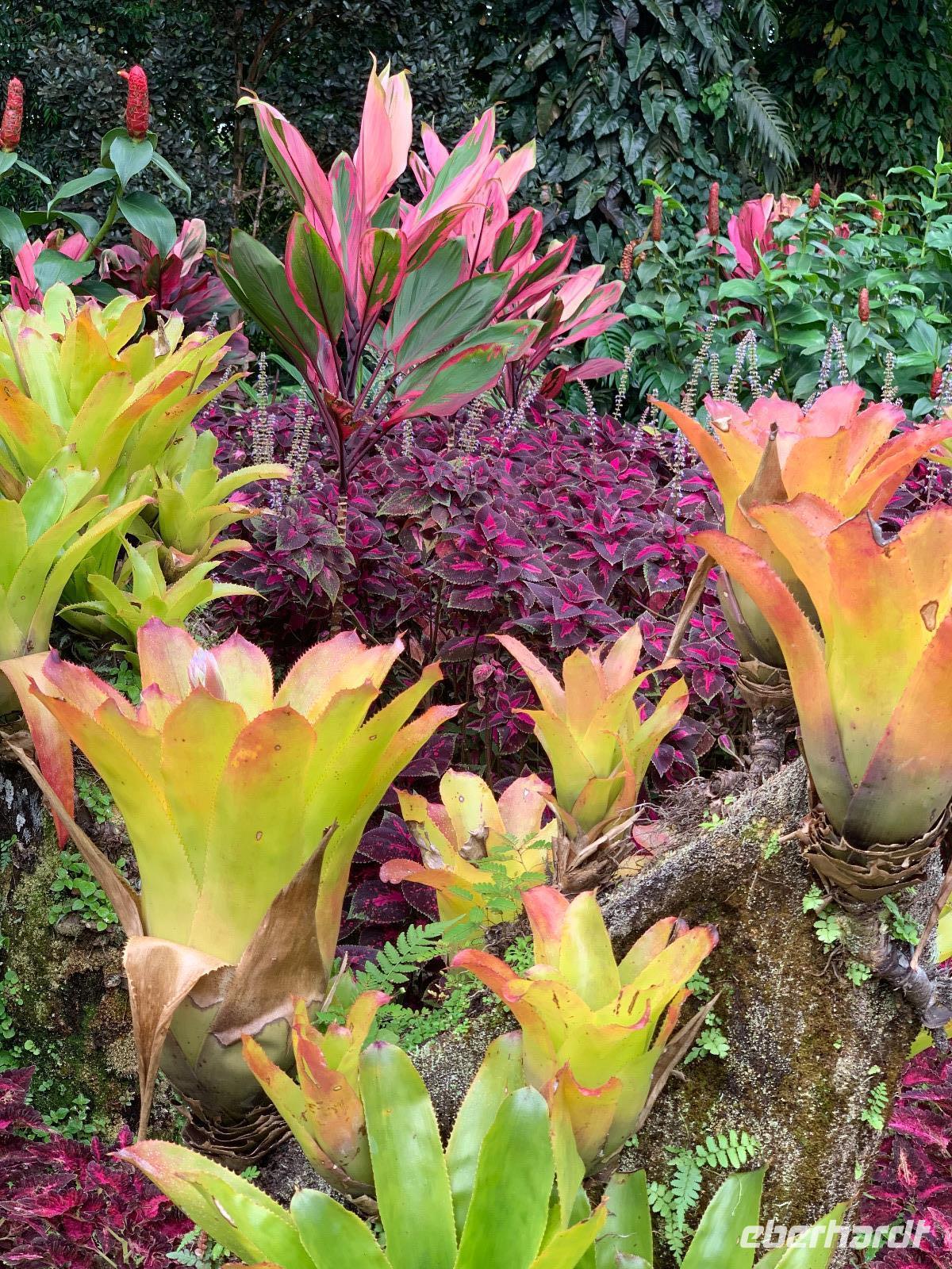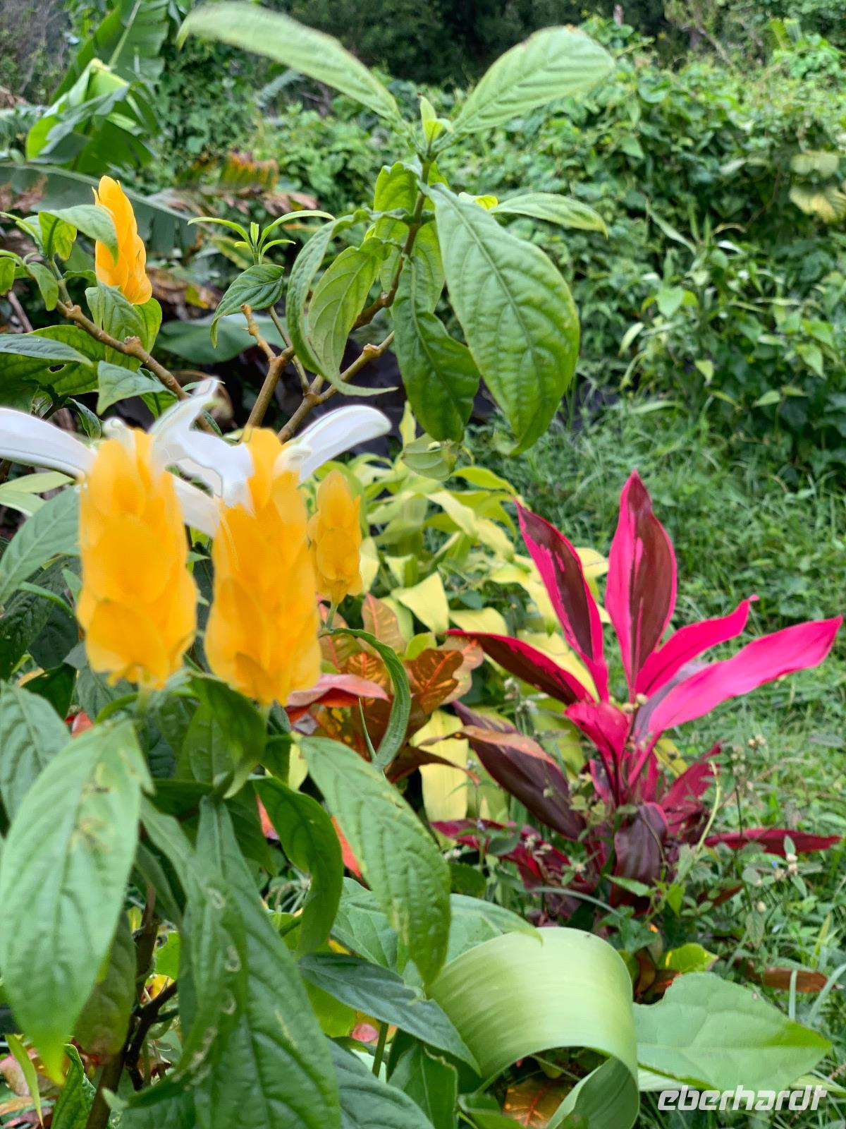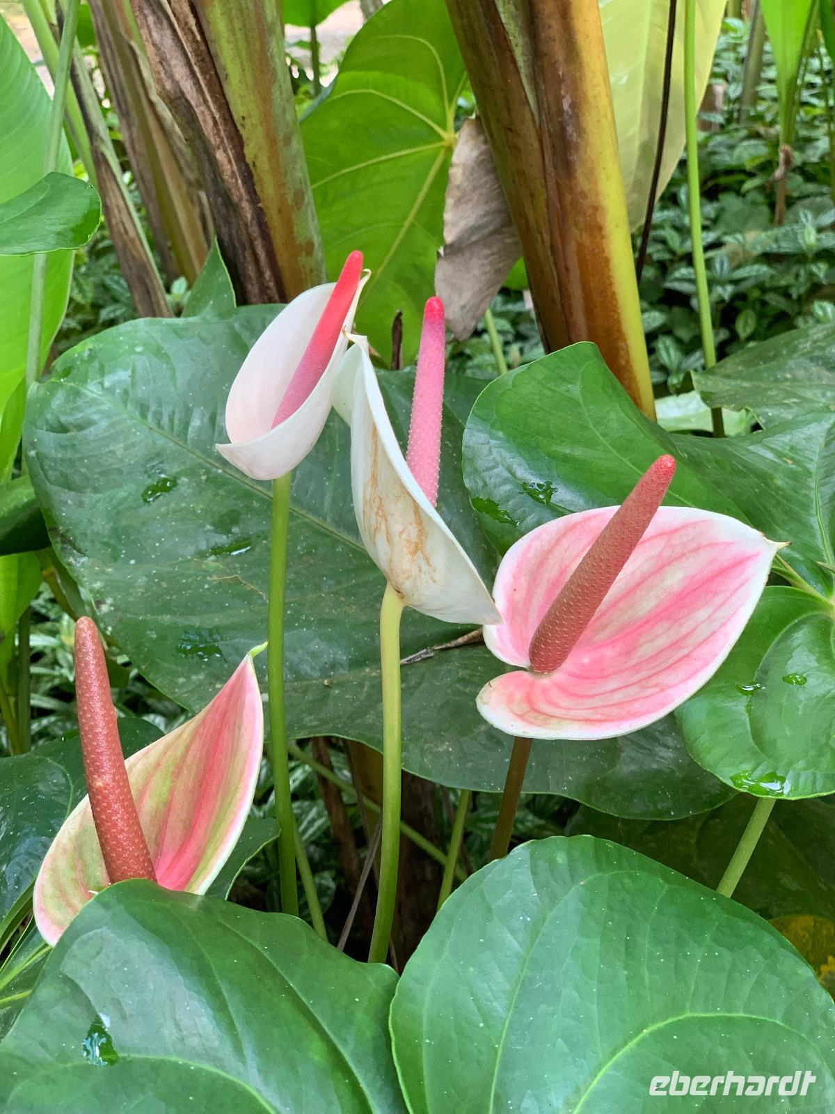Weiter geht die Fahrt zum Balata-Garten, wo wir entlang eines befestigten Pfades alle tropischen Pflanzen in ihrer exotischen Farbenpracht und Vielfalt bestaunen können. Die Mutigen können über eine abenteuerliche Hängebrücke zwischen den Baumkronen laufen und werden mit einem herrlichen Ausblick von oben belohnt. Am Eingang kann man das rege Treiben der flinken Kolibris beobachten, die von den Wassertränken angelockt werden. Bevor wir in den Bus einsteigen, werden wir von ein wenig „liquid sunshine" überrascht. Aber dieser kleine tropische Regenguss stört bei den heißen Temperaturen nicht wirklich.