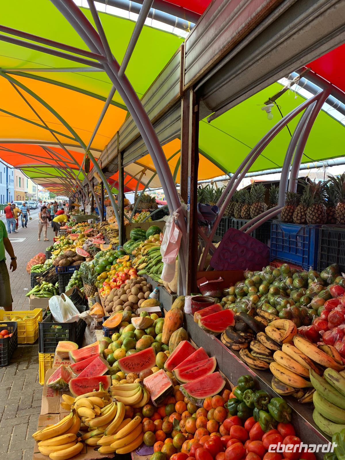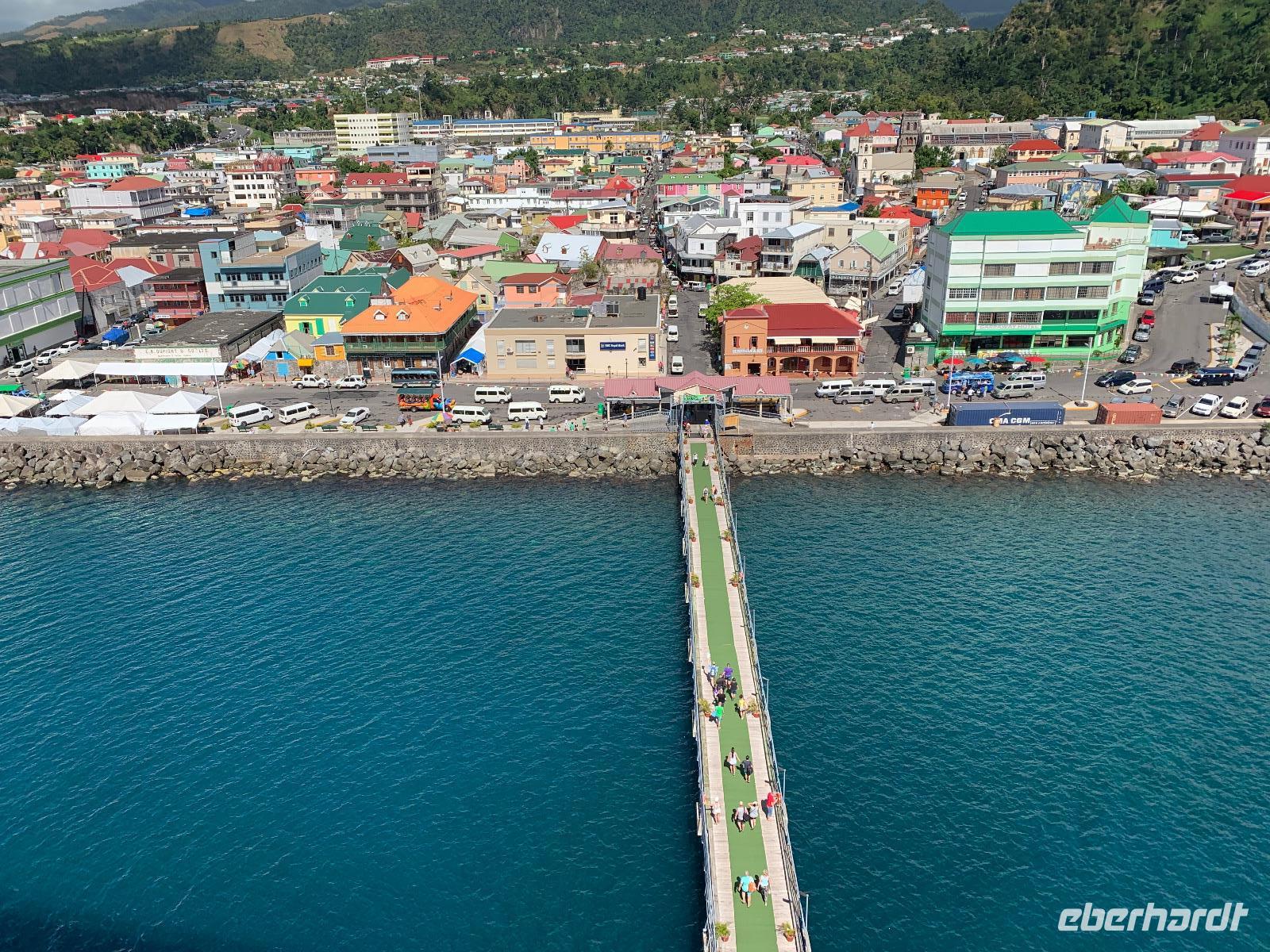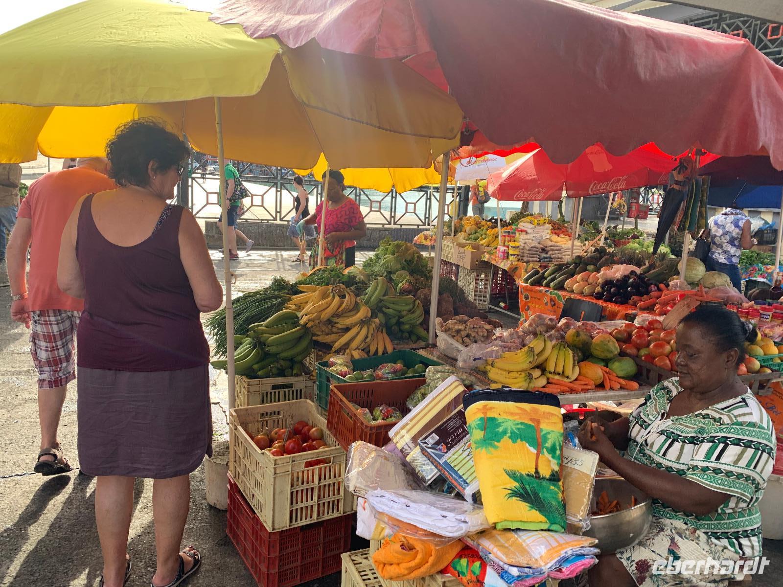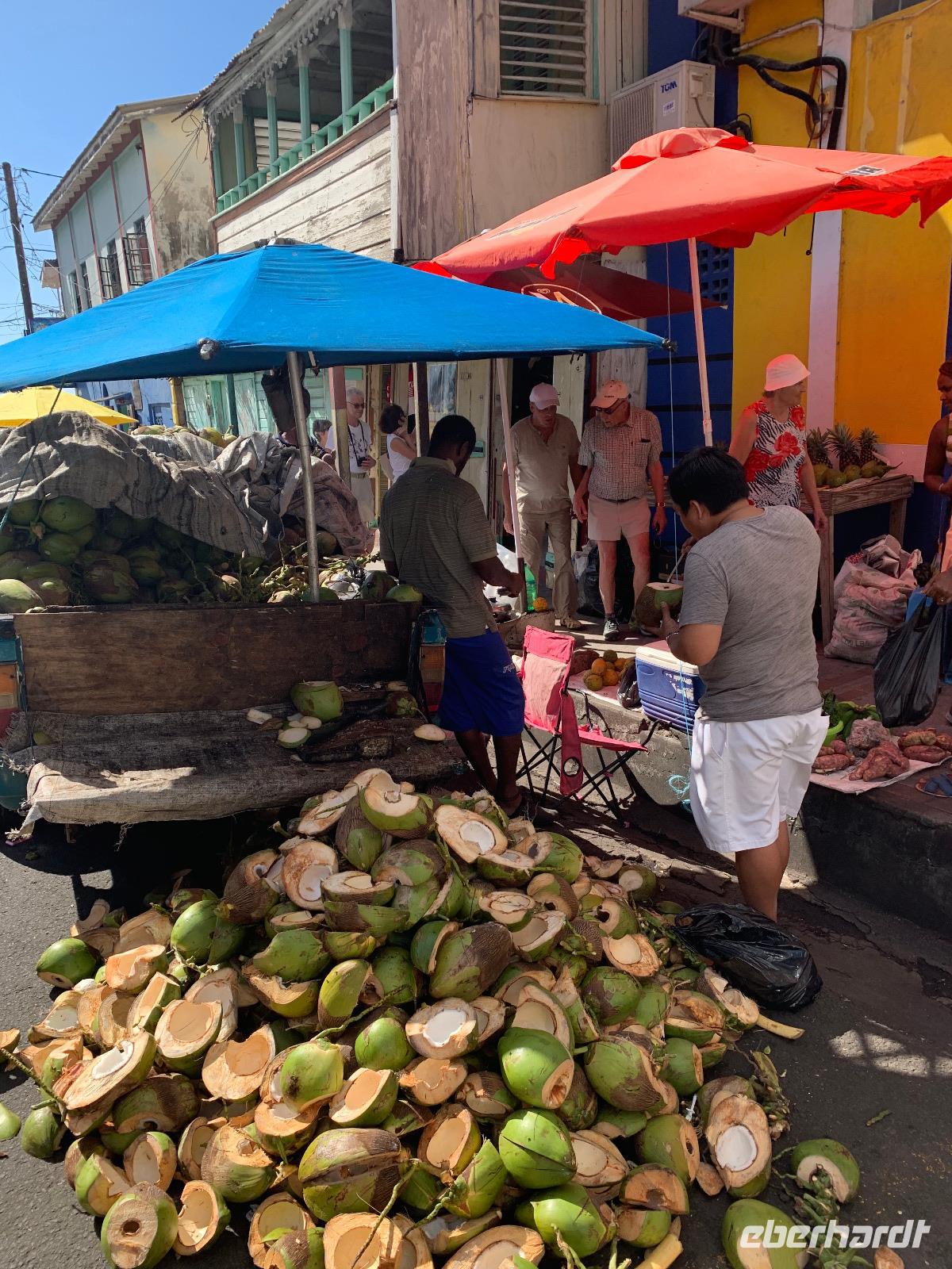 Auf der weiteren Fahrt bieten sich uns wunderbare Ausblicke auf die charakteristischen Vulkankegel des Petit Piton (743m) und Gros Piton (770m). Dann fahren wir zu den Schwefelquellen Sulphur Springs. Die bis zum 18. Jahrhundert noch als Heilbäder genutzten brodelnden Quellen sind heute lediglich von einer Plattform aus zu besichtigen, um Unfälle zu vermeiden. Nach einem kleinen Museumsbesuch und Spaziergang, begleitet vom "köstlichen" Schwefelgeruch, fahren wir weiter Richtung Soufrière, in die ehemalige Hauptstadt der Insel, als sie noch französische Kolonie war. Bei einem kreolischen Mittagessen stärken wir uns mit Hühnchen, Fisch und regionalem Gemüse. Während wir anschließend auf unser Boot warten, bummeln wir durch Soufrière und erleben das geschäftige (Markt-)Treiben der Einheimischen auf der Straße mit.