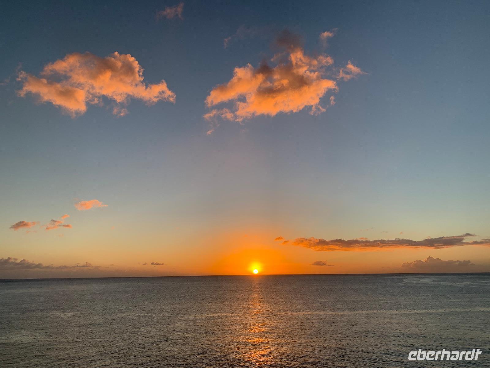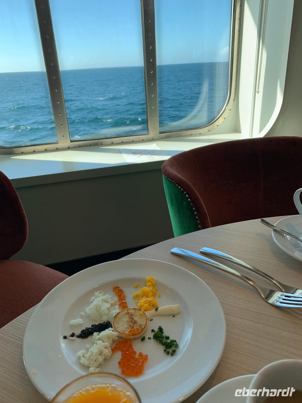 430 Seemeilen zwischen Grenada und Curacao bescheren uns diesen wohlverdienten Seetag unter wolkenlosem, sonnigem Himmel. Wir starten mit einem Kaviar-Gourmetfrühstück in den Tag.