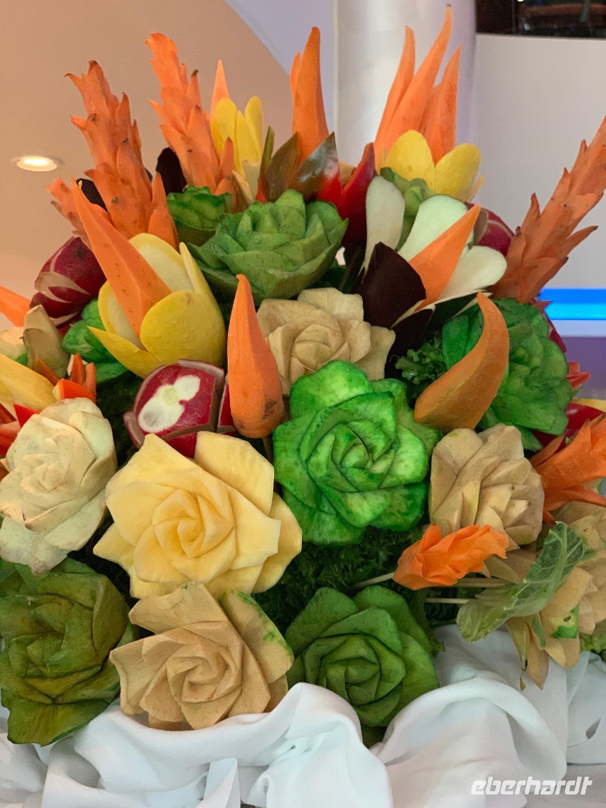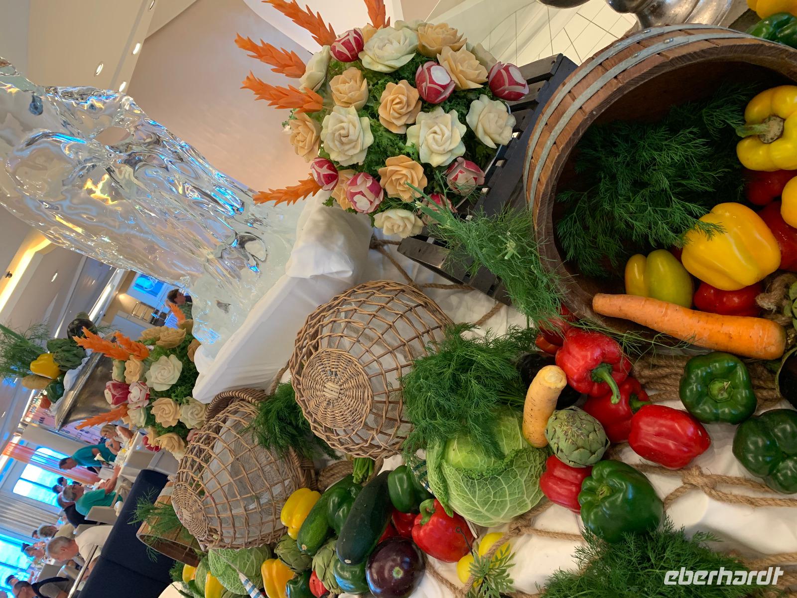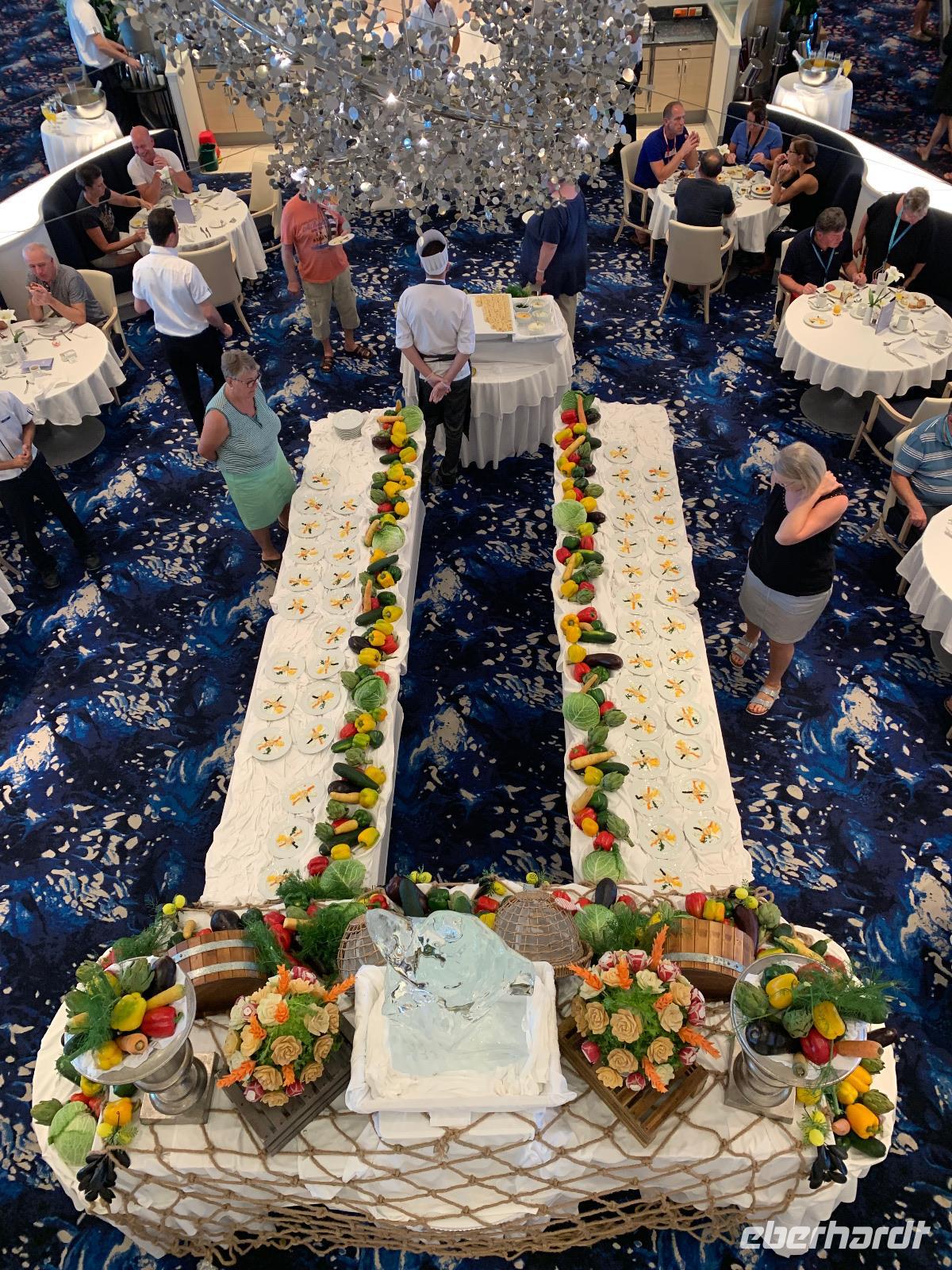 Trotz der verschiedenen á la Carte-Restaurants im Hotel, von asiatisch bis Seafood ist alles dabei - und inklusive - treffen sich die meisten im Buffet-Restaurant zum Abendessen wieder und wir schlemmen erneut nach Herzenslust und sind voller Vorfreude auf unser schwimmendes Hotel ab morgen ...