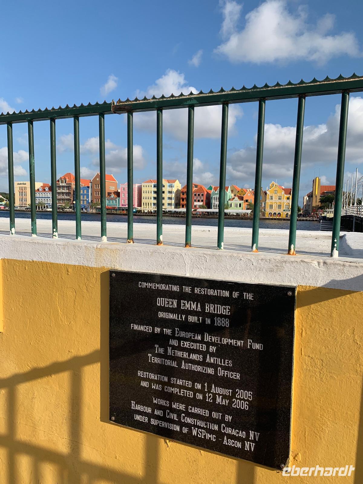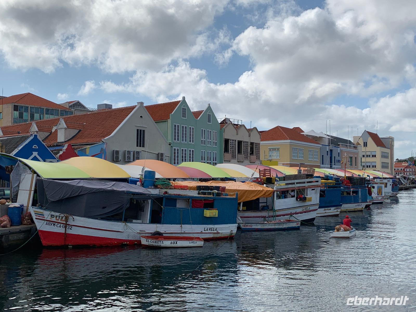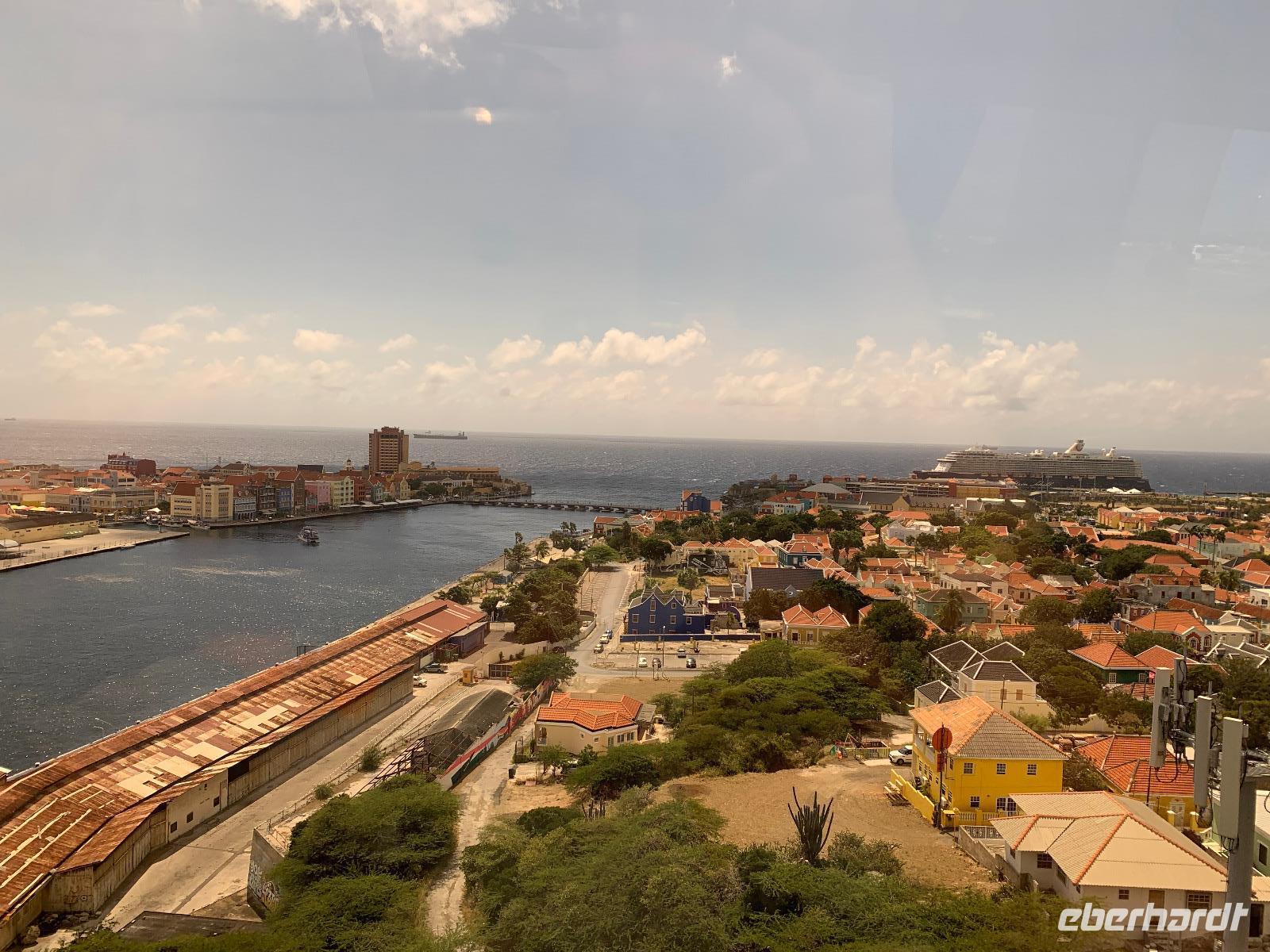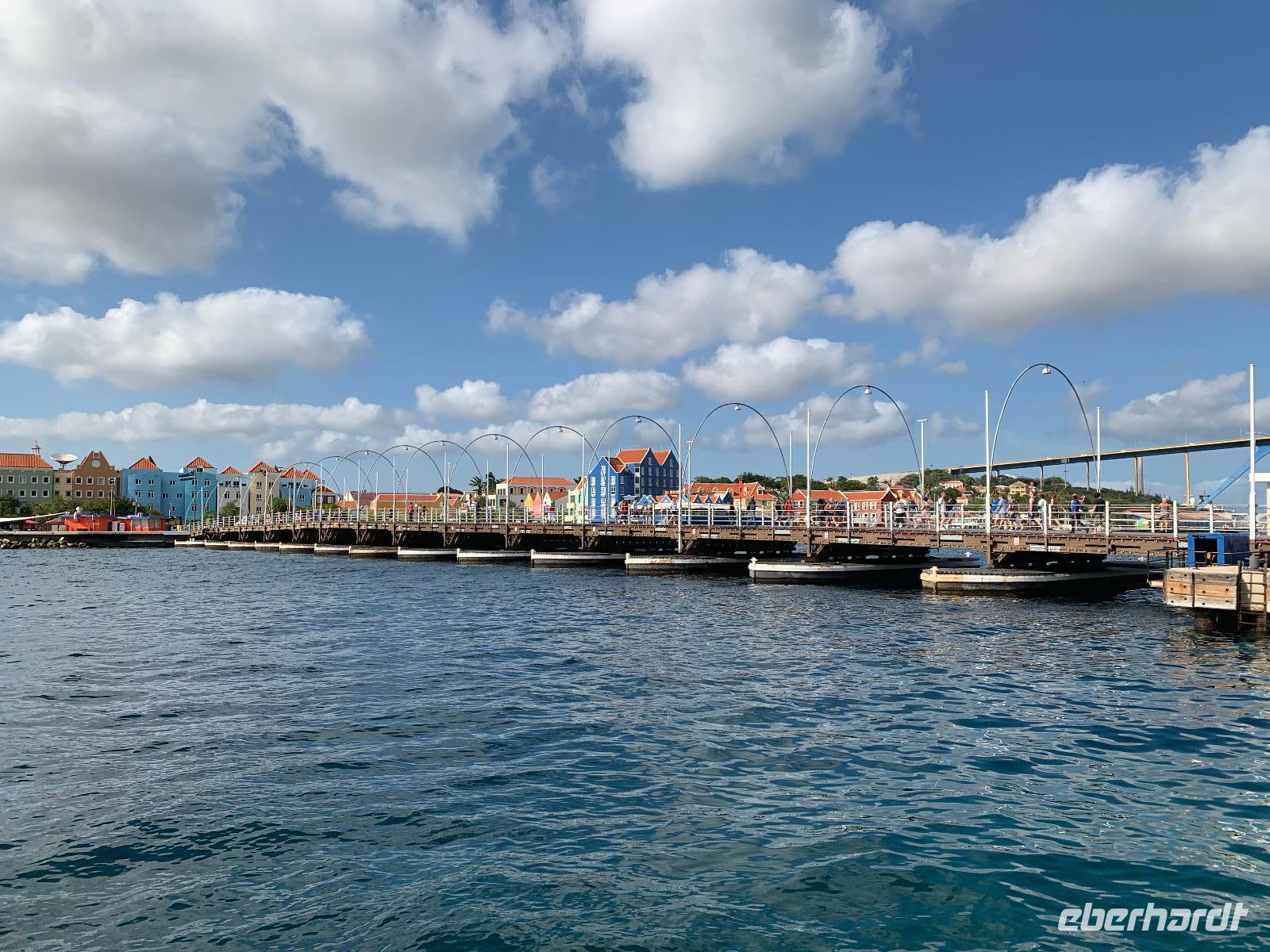 Wir liegen heute als einziges Schiff im Hafen von Willemstad. Vom Schiff aus sieht man den Meeresarm Sint Annabaai, der die Stadt in zwei Teile trennt: Otrobanda und Punda, das eigentliche Herz der Stadt. Zu Fuß erreicht man in 15 Minuten die Königin-Emma-Brücke und ist damit mitten im traumhaft schönen Zentrum von Willemstad.