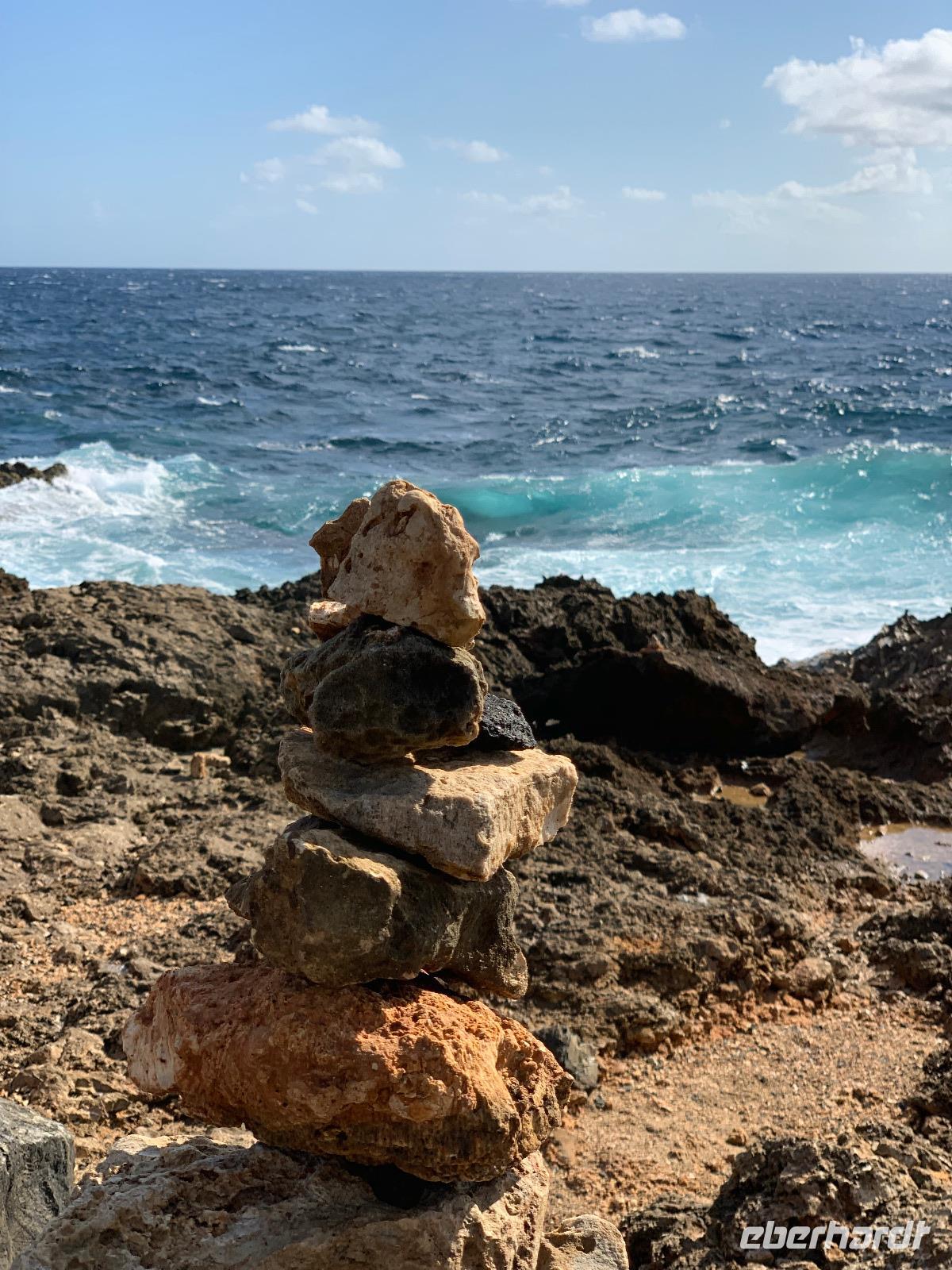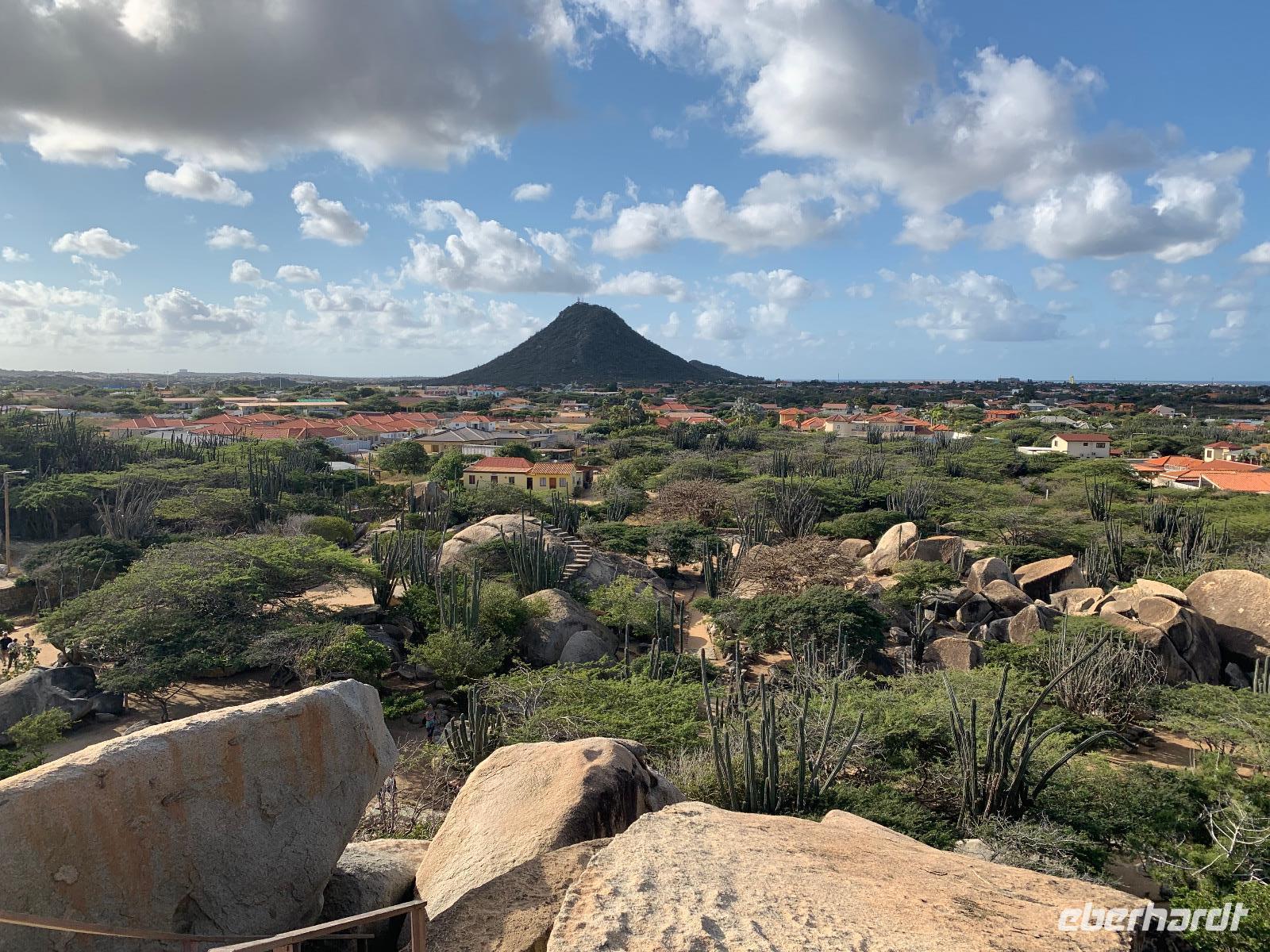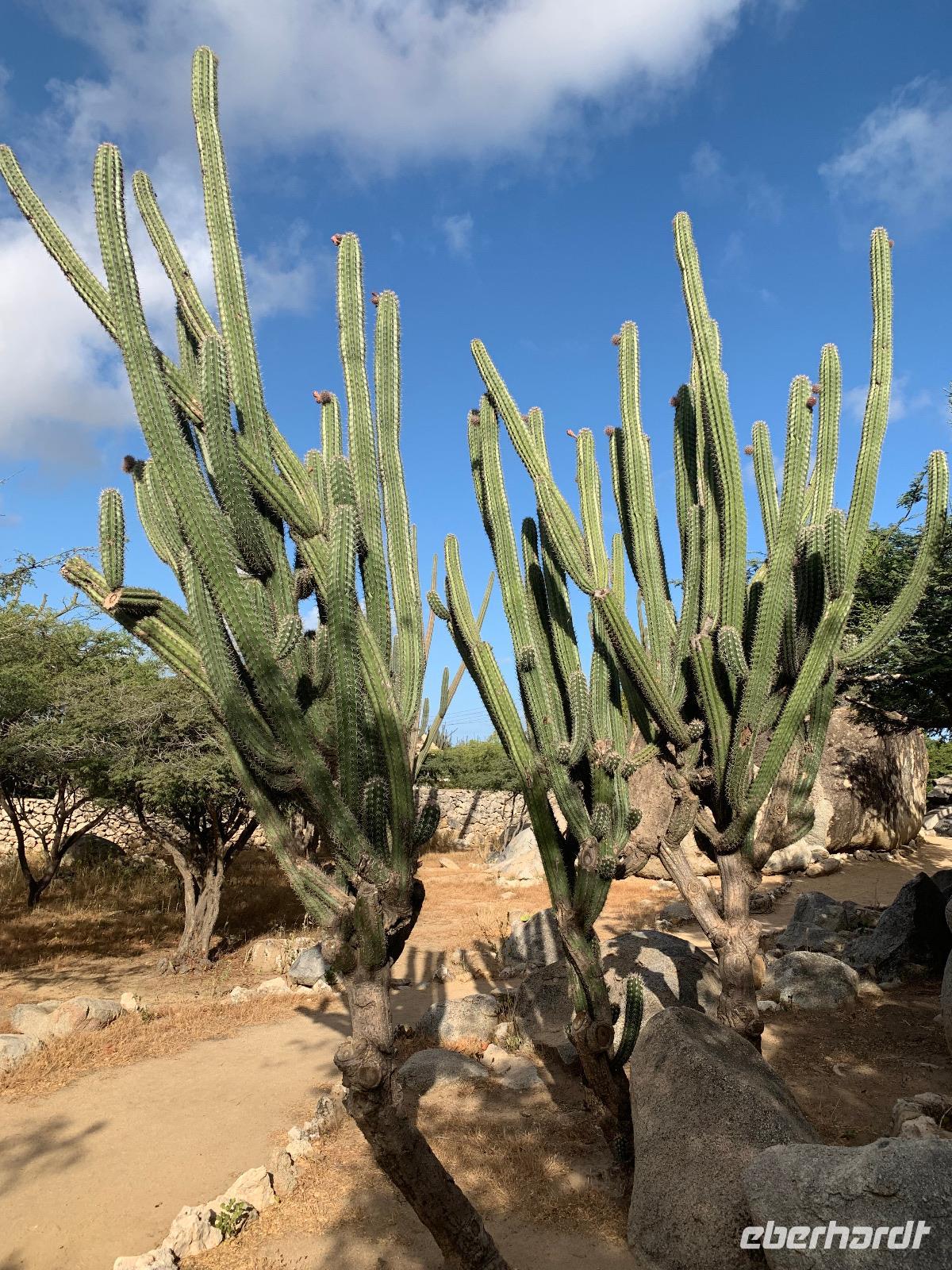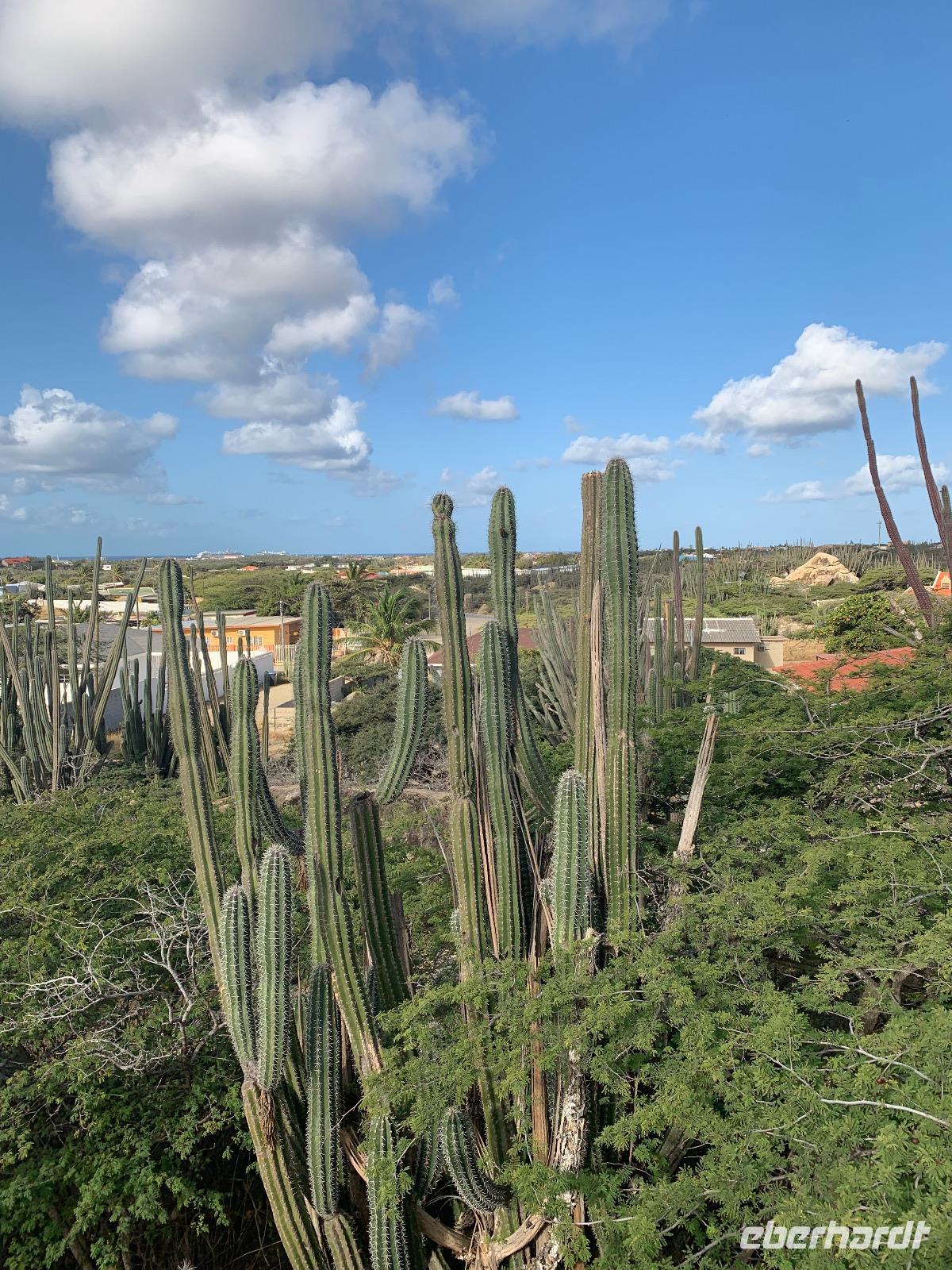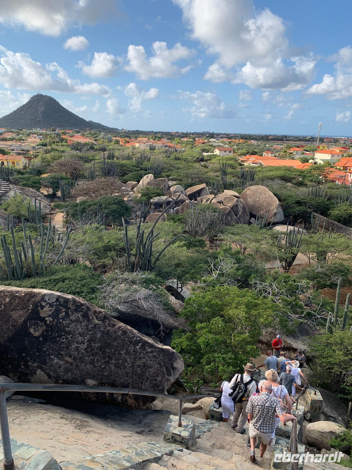 Am Vormittag lernen wir bei unserem Halbtagesausflug die kleine Insel gut kennen. Wir fahren zunächst zu den geheimnisvollen Casibari-Felsen ins Inselinnere. Wenn man die Dioritblöcke via Treppenstufen nach oben steigt, hat man eine herrliche Sicht über die flache Insel und auf den 167 Meter hohen kegelförmigen Hooiberg. Auch die meterhohen Kakteen sind ein Foto wert.