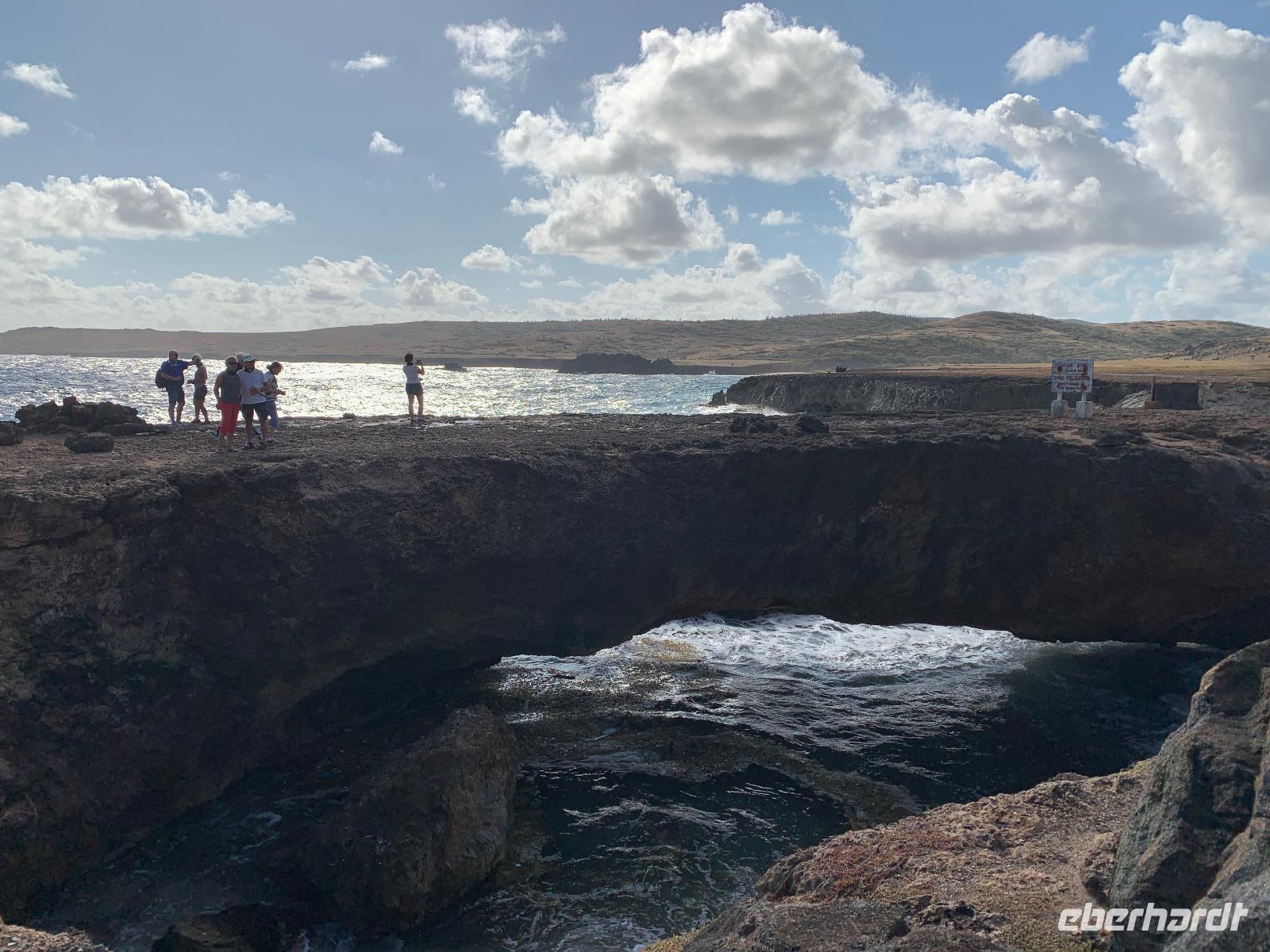 Nächster Halt ist die kleine neue Baby Bridge im Naturschutzgebiet an der Südostküste der Insel. Bis 2005 war die vom Wind und Meer geformte Natural Bridge mit 33 Metern die größte natürliche Brücke der Karibik aus Korallengestein, bis sie durch die Naturgewalten an dieser rauen Küste über die Jahre hinweg zerstört wurde.