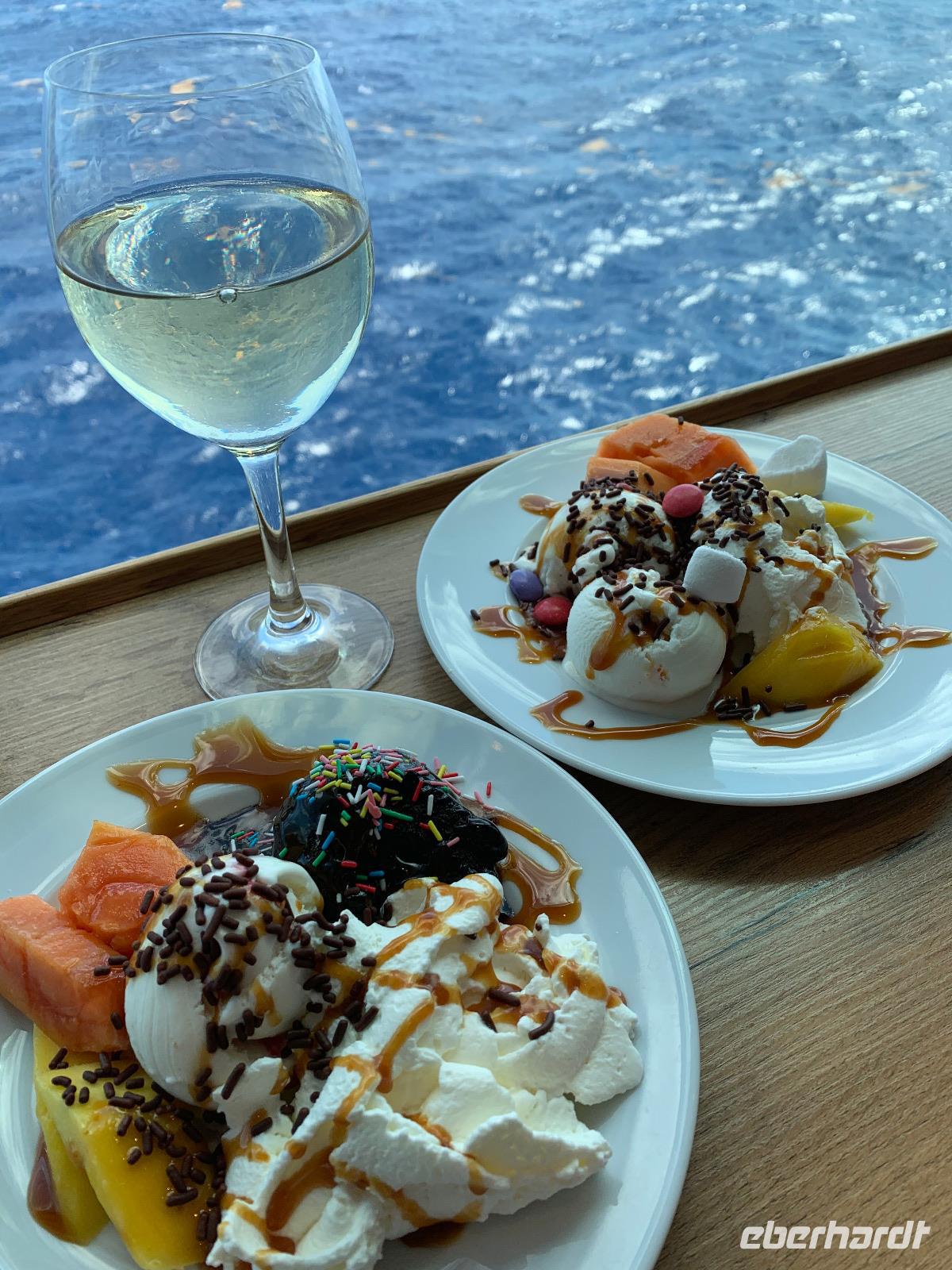 An diesem Seetag ist erneut unendliche Abwechslung in Sicht. Angefangen beim Lachsfrühstück im Atlantik-Klassik oder Gosch, über die Steak-Verkostung am Mittag im Surf & Turf bis hin zur Kaiser- und König-Kaffeestunde im Schmankerl ist das kulinarische Angebot zum Vernaschen.