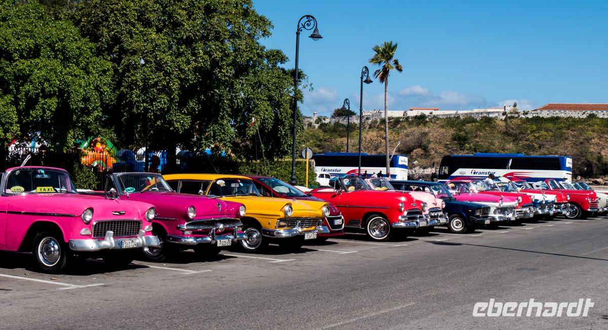 Der erste Morgen startet mit einem reichhaltigen Frühstück auf der Terrasse des Hotels. Anschließend treffen wir unseren Reiseleiter Louis - er ist ein echter Havanero und wir freuen uns, dass er uns seine Heimatstadt Havanna näher bringt. Gleich zu Beginn steht ein Highlight unseres Programmes auf dem Plan: die Stadtrundfahrt per Oldtimer. Die letzten Modelle wurden 1961 in Kuba eingeführt und werden seit dem gehegt und gepflegt. Ersatzteile sind ausgesprochen schwierig zu bekommen und so muss man sich zu helfen wissen - Not macht eben erfinderisch. Mit den bonbonfarbenen Schlitten lernen wir die Hauptstadt Kubas nun näher kennen. Wir halten am Platz der Revolution und am Malecón, der 8 Kilometer langen Uferpromenade von Havanna, sowie nahe der Altstadt. An jeder Station tauschen wir die Besetzung, so dass jeder Reisegast die unterschiedlichen Oldtimer auf unserer Tour einmal kennenlernt. Neben den schmucken Oldtimern, sehen wir in den Straßen von Havanna überwiegend russische oder chinesische Autos. Nur wenige moderne PKW sind zu sehen und wenn, dann gehören diese Regierungsbeamten. Selbst wer Geld besitzt, kann auf Kuba kein Auto kaufen... es gibt keine Autohäuser! In Kuba ist eben alles etwas anders. Als Tourist kann man sich auch per Fahrradtaxi oder Pferdekutsche chauffieren lassen. Ersteres sieht oft nach Marke Eigenbau aus und rostige Stellen werden notdürftig geflickt. Das Thema Transport ist eben ein besonderes Problem in Kuba... ganz zu schweigen von den kraterähnlichen Schlaglöchern in den maroden Straßen. Nach dem Mittagessen fahren wir noch zum Friedhof von Havanna und bestaunen die prunkvollen Gräber. Anschließend haben wir Freizeit und können die Sonne am Pool des Hotels genießen. Am Abend besuchen wir schließlich noch die weltbekannte Tropicana Show. Vor einer faszinierenden Kulisse unter freiem Himmel präsentieren die Sänger und Tänzer schwungvoll kubanische Klänge. Eine besondere Augenweide sind die prächtigen Kostüme (und natürlich die bildhübschen Frauen). Mit einer guten Portion Rum-Cola geht ein langer Tag zu Ende.