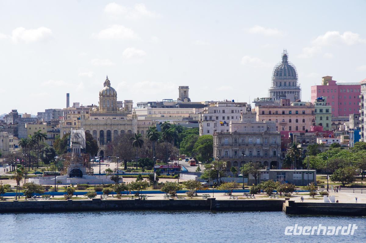Heute begeben wir uns mit Louis auf die Spuren von Ernest Hemingway. Für sein Werk „Der alte Mann und das Meer" erhielt er den Nobelpreis und für sein Lebenswerk den Pulitzerpreis. Auf Kuba fühlte er sich wohl und konnte hier ungestört seine literarischen Werke verfassen. Mit dem Bus verlassen wir das Zentrum Havannas und gelangen in den Stadtteil San Francisco. Es ist Sonntag, so dass auf den Bauernmärkten reges Treiben herrscht. Auf Kuba herrscht immer noch Mangelwirtschaft und Lebensmittel werden rationiert. Weiterhin gilt hier der Grundsatz: Nichts ist so beständig, wie die Veränderung. Und so erleben wir „Kuba real" als wir feststellen, dass seine einstige Villa, die heute als Museum dient, plötzlich geschlossen ist. Wir fahren also weiter in das kleine Fischerdorf Cojimar, wo der leidenschaftliche Angler seinerzeit seine Yacht liegen hatte. In der Bar La Terraza tun wir das, was auch Hemingway gern tat: einen erfrischenden Drink zu uns nehmen. Auf alten Fotos und Bildern können wir Ausschnitte aus seinem Leben entdecken. Weiter geht die Fahrt durch den Stadtteil Habana del Este. Der hier vorherrschende Plattenbau-Charme erinnert an vergangene DDR-Zeiten. Den besten Blick auf die Stadt bietet die Festung Castillo de los Tres Reyes del Morro. Weiter geht der Spaziergang über Havannas Flaniermeile Paseo del Prado. Auch hier sieht man glanzvolle, schick renovierte Gebäude unmittelbar neben halbverfallenen Häusern mit brüchigen Balkonen - dennoch wohnen hier noch Menschen! Am Ende des Prado befindet sich das Capitol, der zukünftige Sitz des kubanischen Parlaments, architektonisch dem Weißen Haus in Washington nachempfunden. Nun wird es aber Zeit für einen Drink! Also kehren wir ein in der Bar El Floridita und probieren hier einen eisgekühlten Daiquiri. Von Hemingway stammt der Ausspruch: „My Mojito in La Bodeguita, my Daiquiri in El Floridita" und dieses Vorhaben wollen auch wir zugleich umsetzen. Vor der Bar La Bodeguita del Medio tümmeln sich Menschen, um einen original Mojito zu ergattern und der live Musik zu lauschen. Es ist eine lockere und beschwingte Stimmung und nach all dem Vitamin R ist es Zeit für das Mittagessen. Am Hafen verabschieden wir uns später von unserem Chauffeur Roberto und unserem Reiseleiter Louis, denn heute verlassen wir Havanna. Vor dem Auslaufen steht noch die obligatorische Seenotrettungsübung an. Mit einem Glas Champagner in der Hand und der Hymne Conquest of Paradise im Ohr, heißt es Sail away und Segel setzen... Adios Grand Dame!
