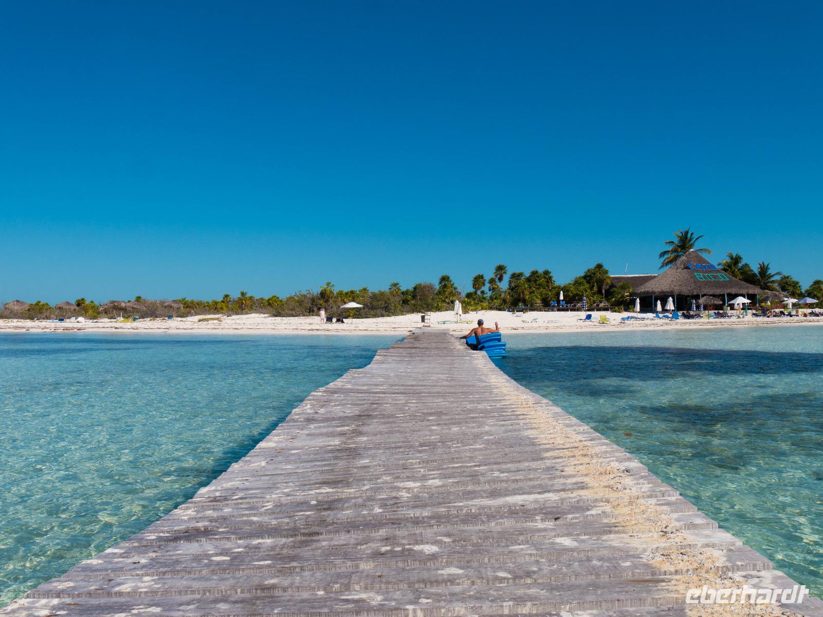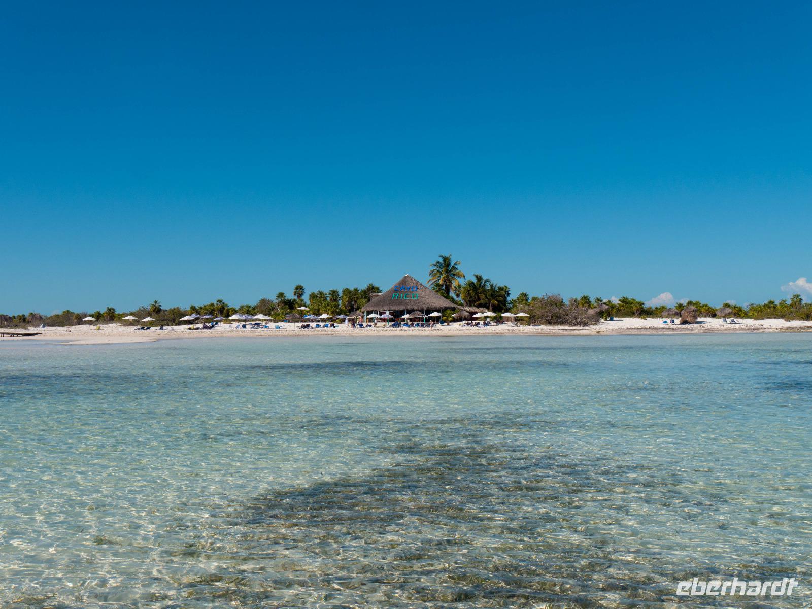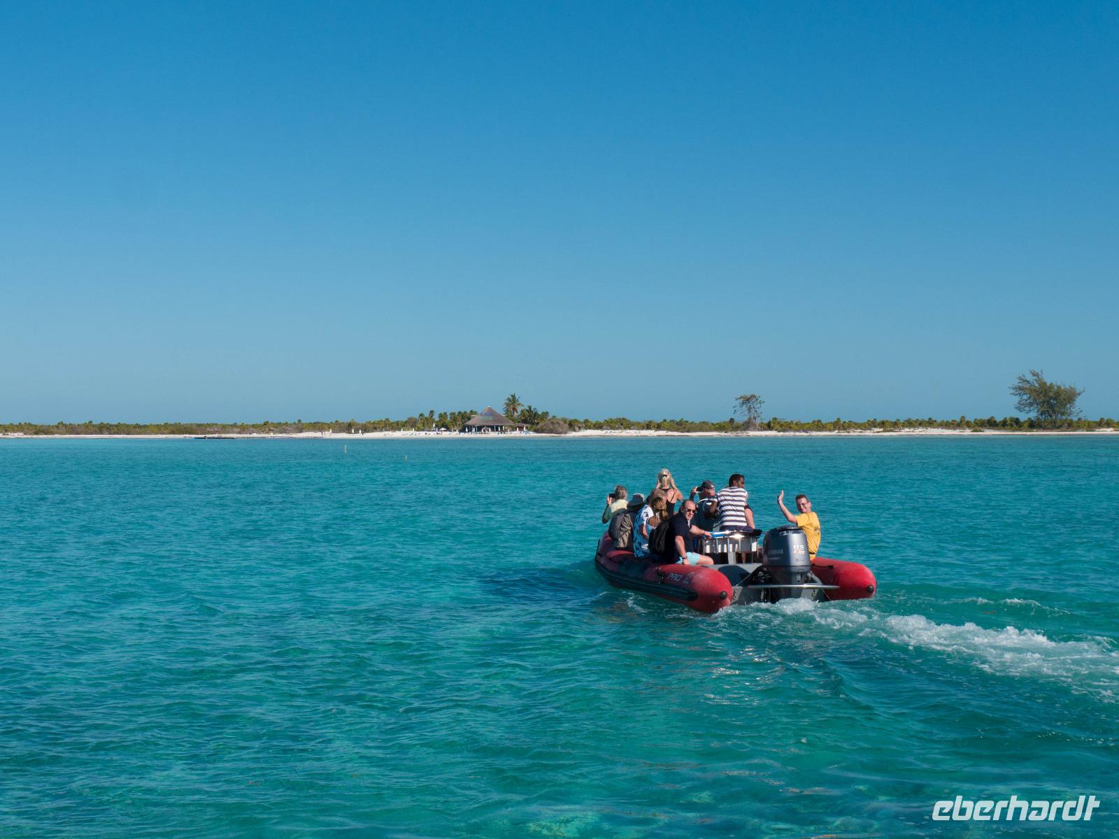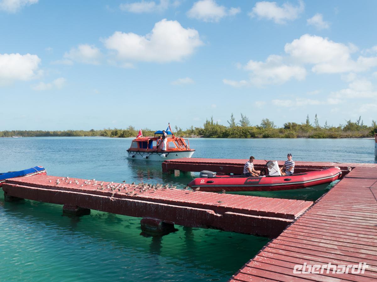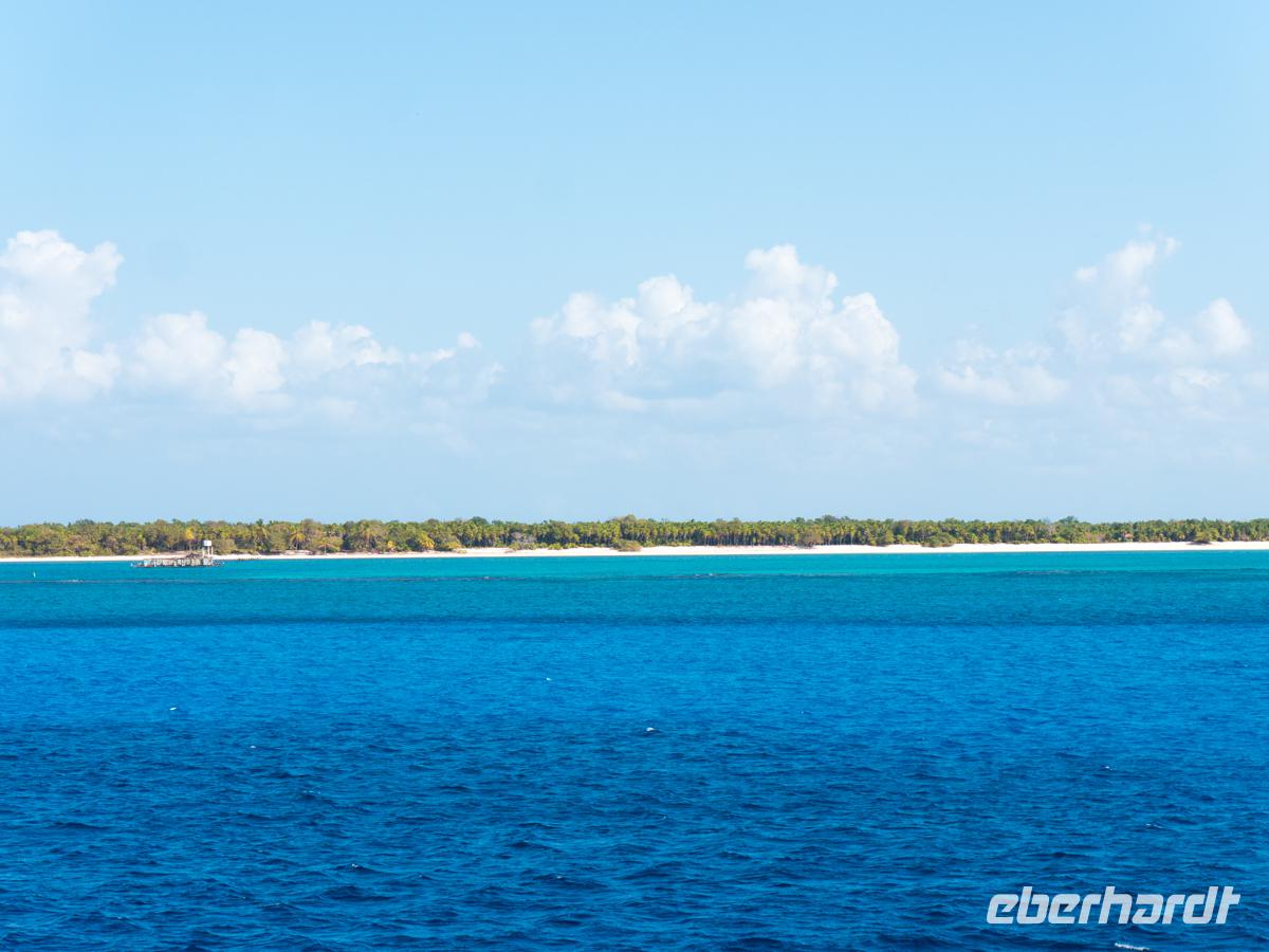Kurz vor 8 Uhr kommt der Lotse an Bord und bald darauf wird der Anker gesetzt. Mit den Tenderbooten setzen wir nach Cayo Largo über. Hier erwartet uns ein wahrer Karibik-Traum: Palmen, scheeweißer Sandstrand, türkisblaues Wasser. Wir genießen die Sonne und den Strand in vollen Zügen. Zur Abwechslung setzen wir mit dem Zodiac noch kurz auf die Hauptinsel über, wo wir eine kleine romantische Marina, eine gemütliche Bar und eine Schildkrötenfarm vorfinden. Die freiwilligen Helfer des Schutzzentrums sammeln die Eier während der Brutsaison ein und sorgen somit für den Fortbestand der Tiere. Nach diesem entspannten Strandtag stimmen wir uns bei einem kleinen Eberhardt-Umtrunk auf den Abend an Bord ein. Hotelmanager Arnold plaudert etwas aus dem Nähkästchen und so erfahren wir viel über das Leben der Crew an Bord. Wir können uns auf dieser Reise ausgesprochen glücklich schätzen, denn angeblich gab es in den letzten 4 Jahren auf dieser Reiseroute nur 2 Mal solch ruhige See wie jetzt. Wir liegen also auch über Nacht vor Anker, um uns morgen zu neuen Ufern auf zu machen.